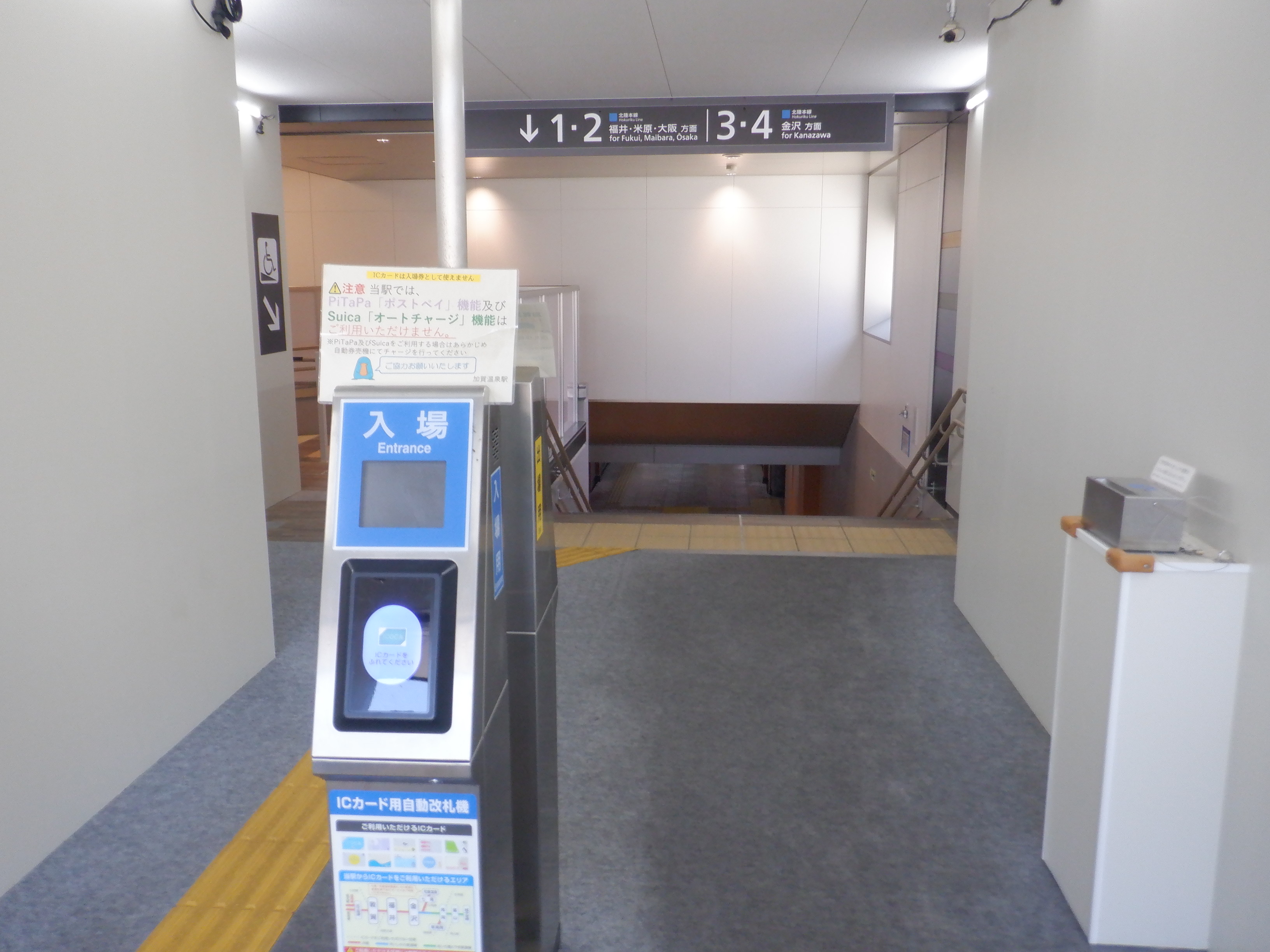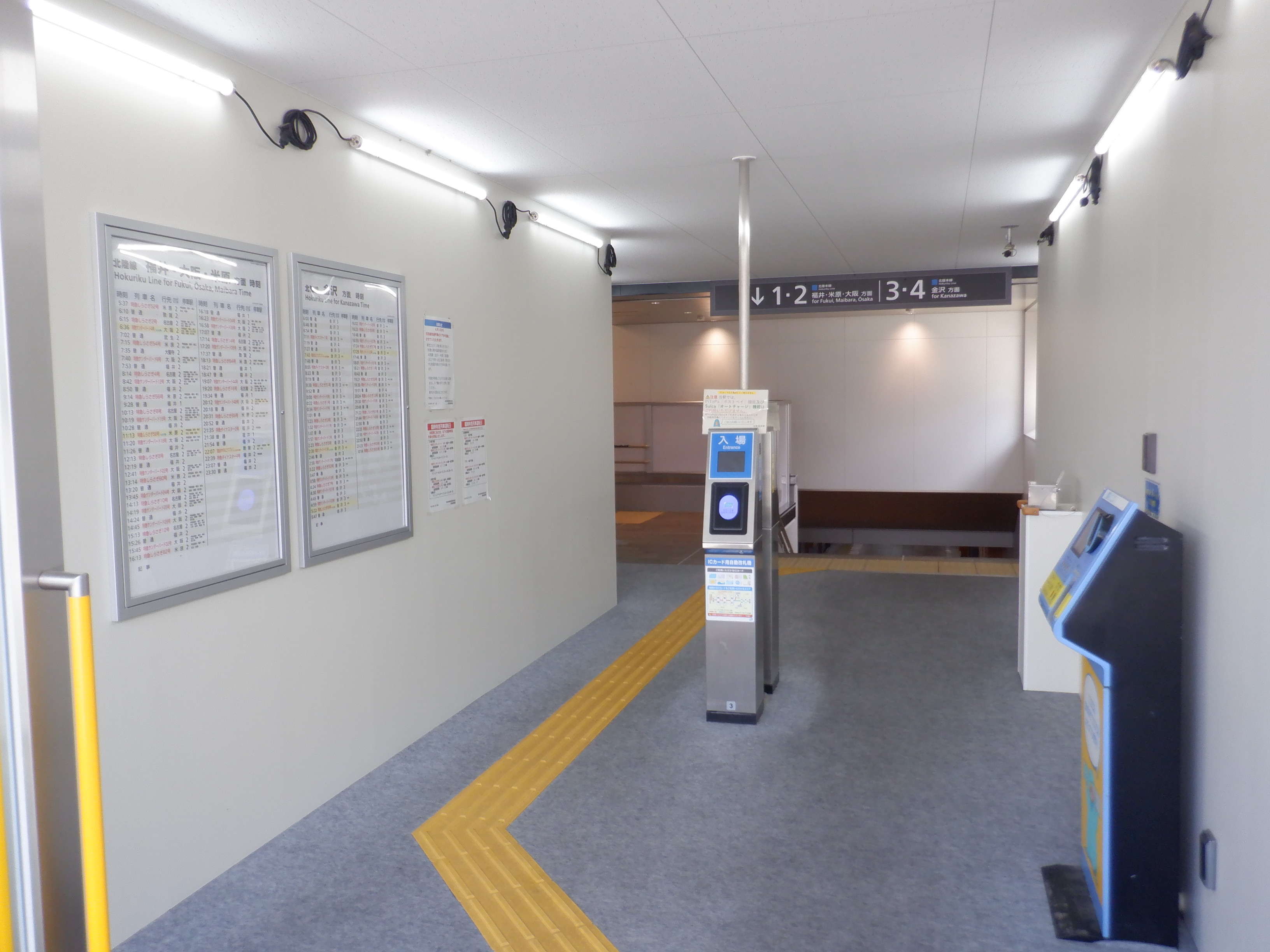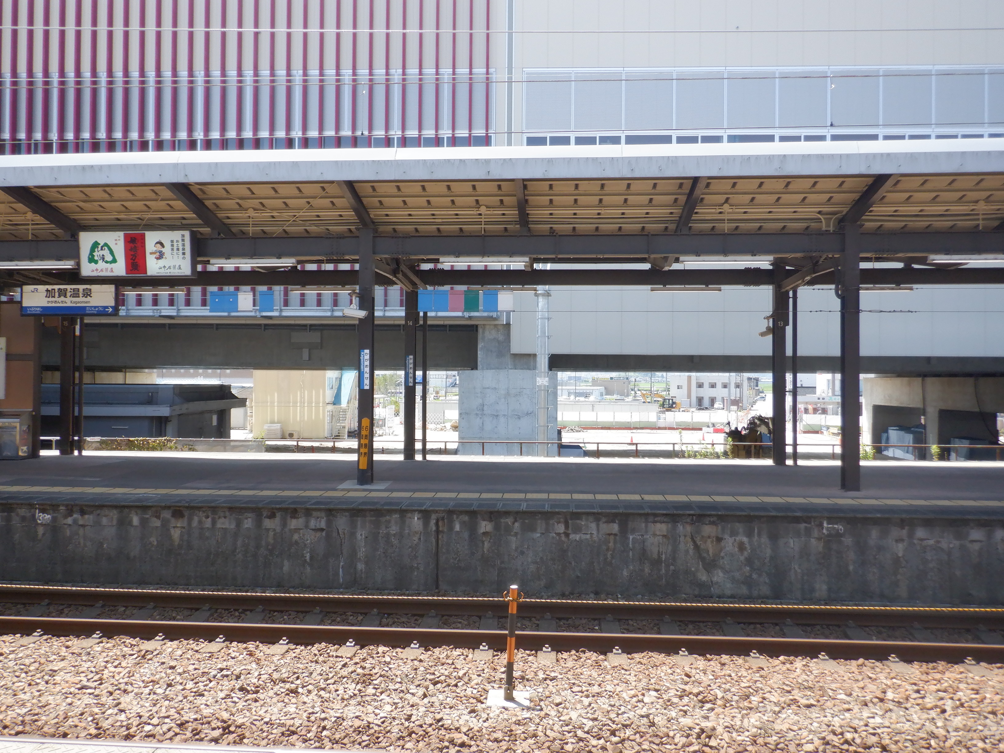 仮設通路を通りホームへ。IRいしかわ鉄道の文字が見えるようになりました。