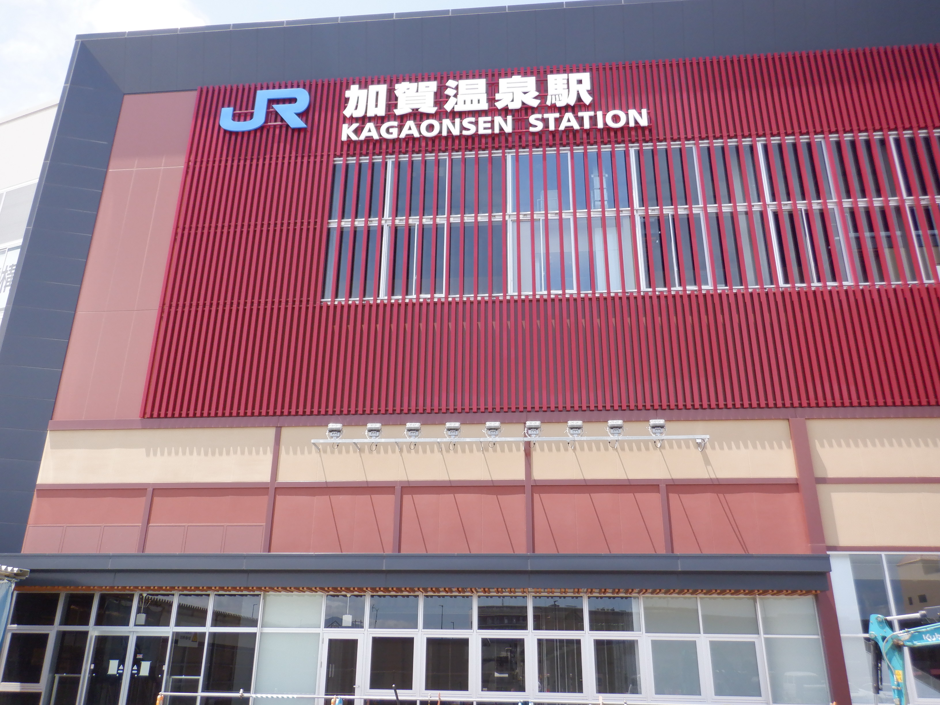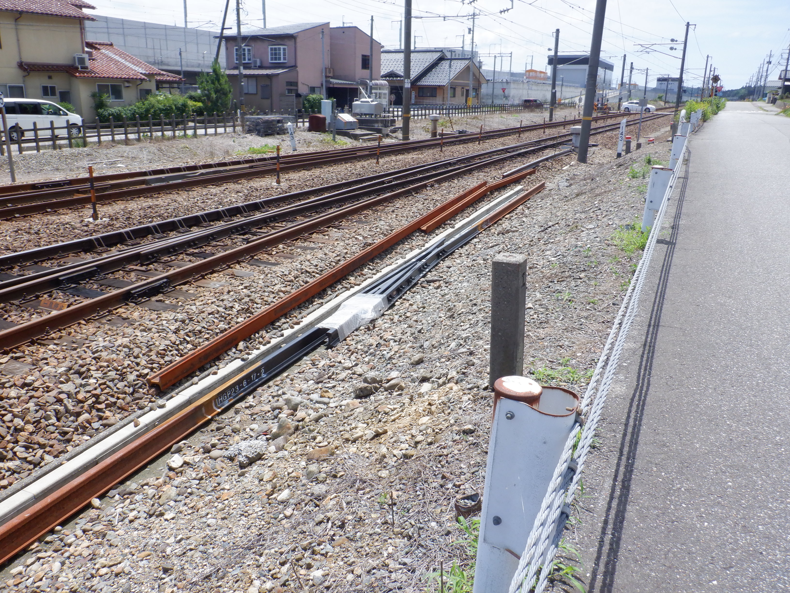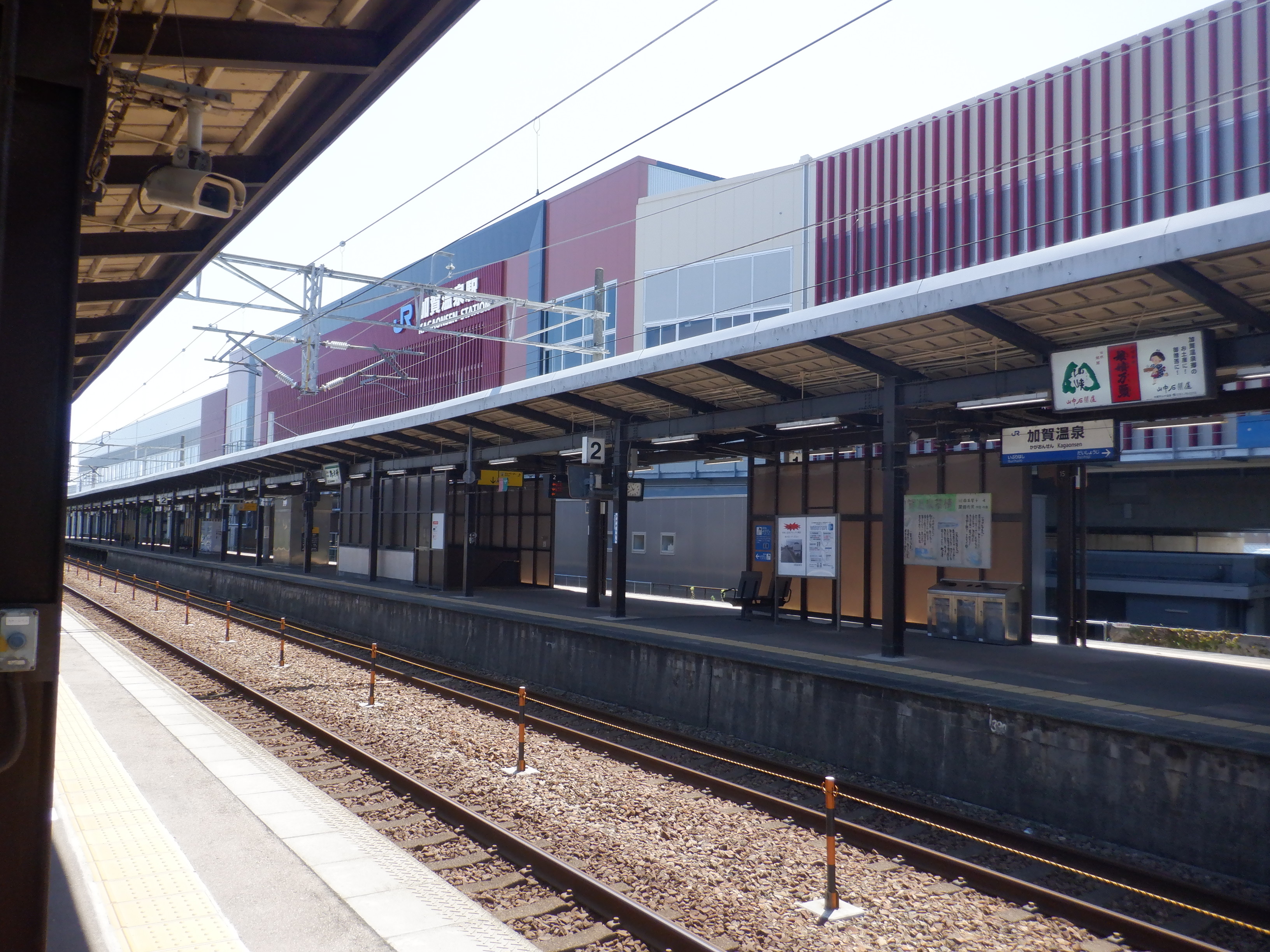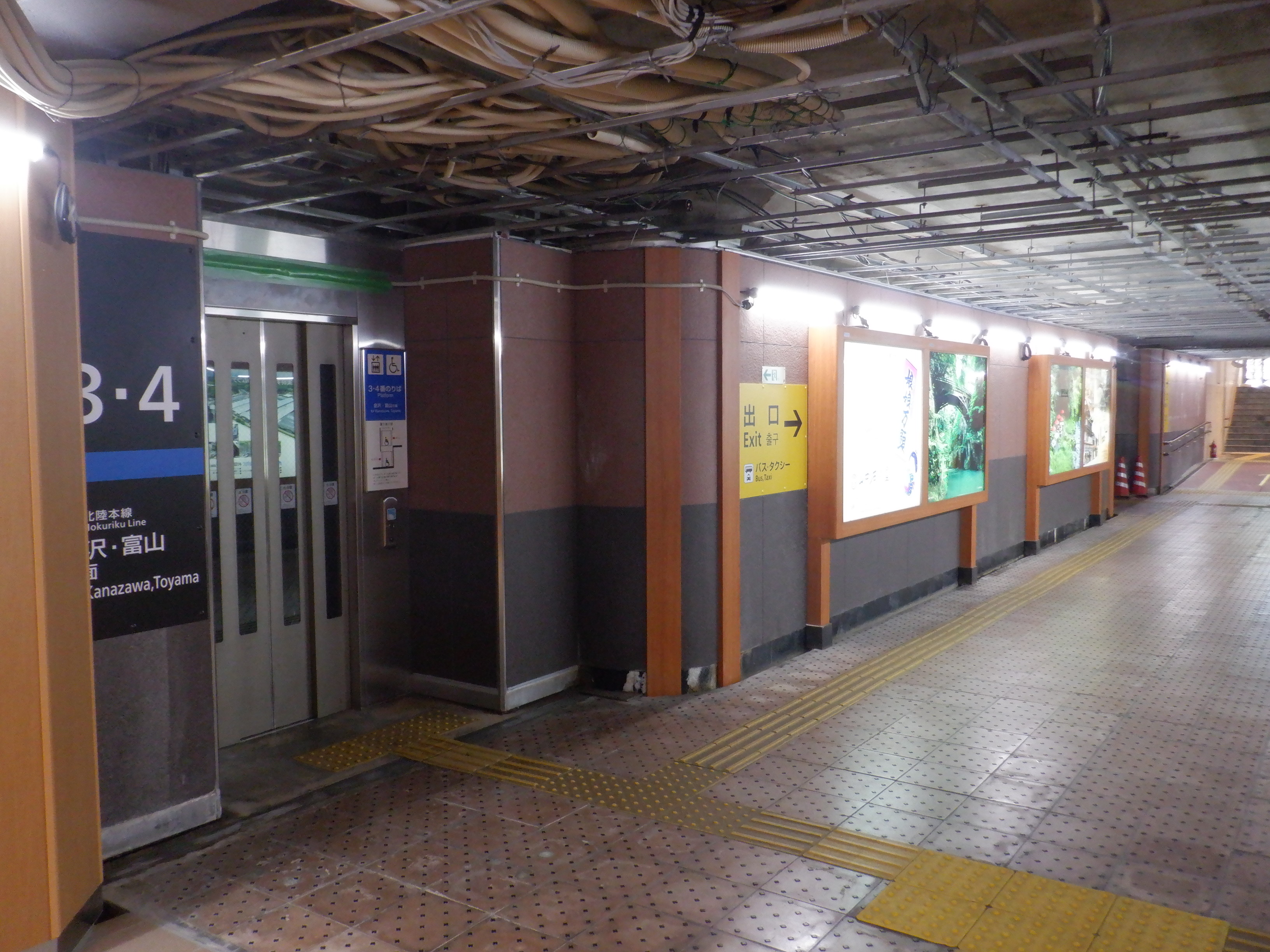 仮設通路を通りホームへ。IRいしかわ鉄道の文字が見えるようになりました。