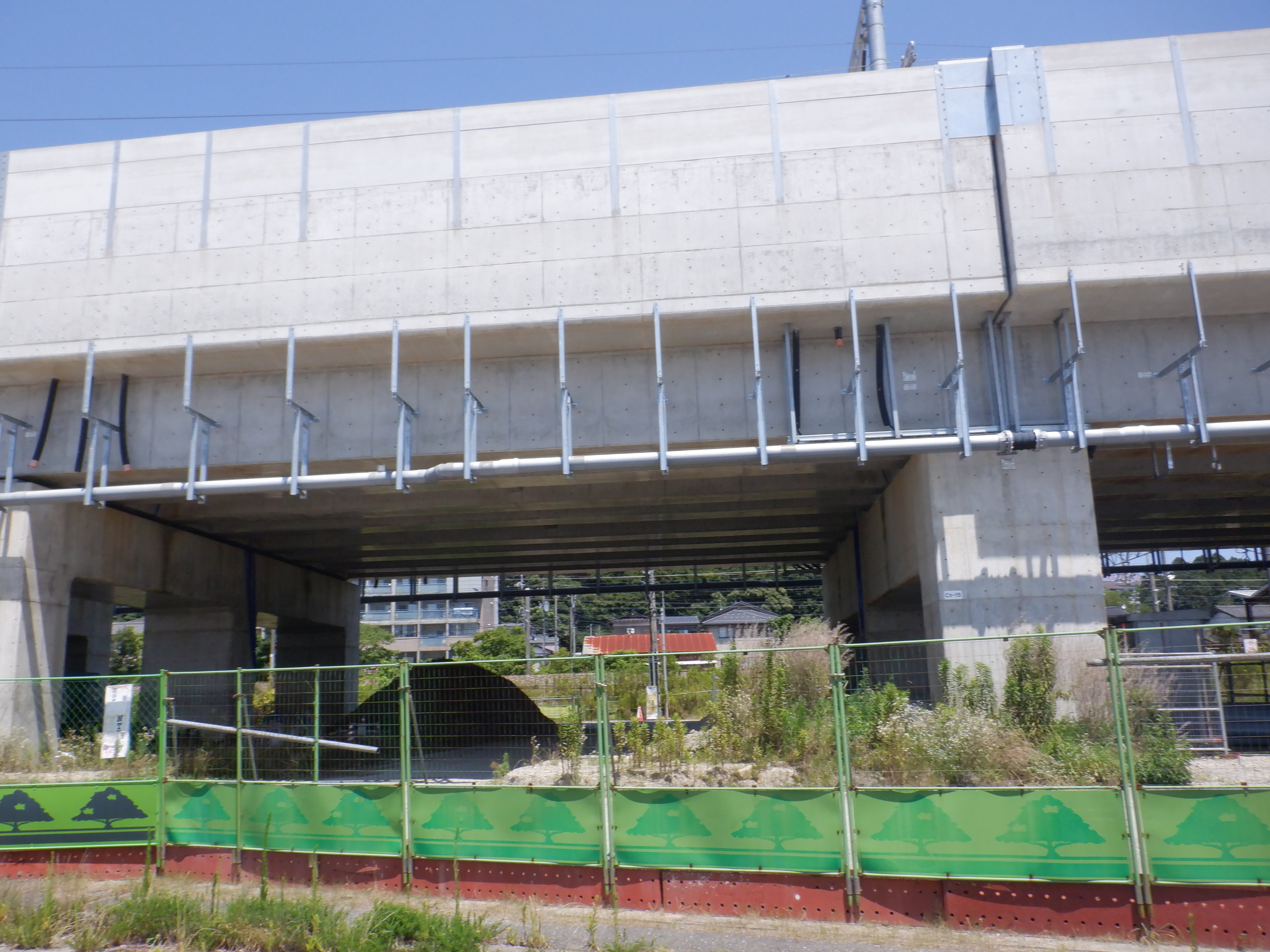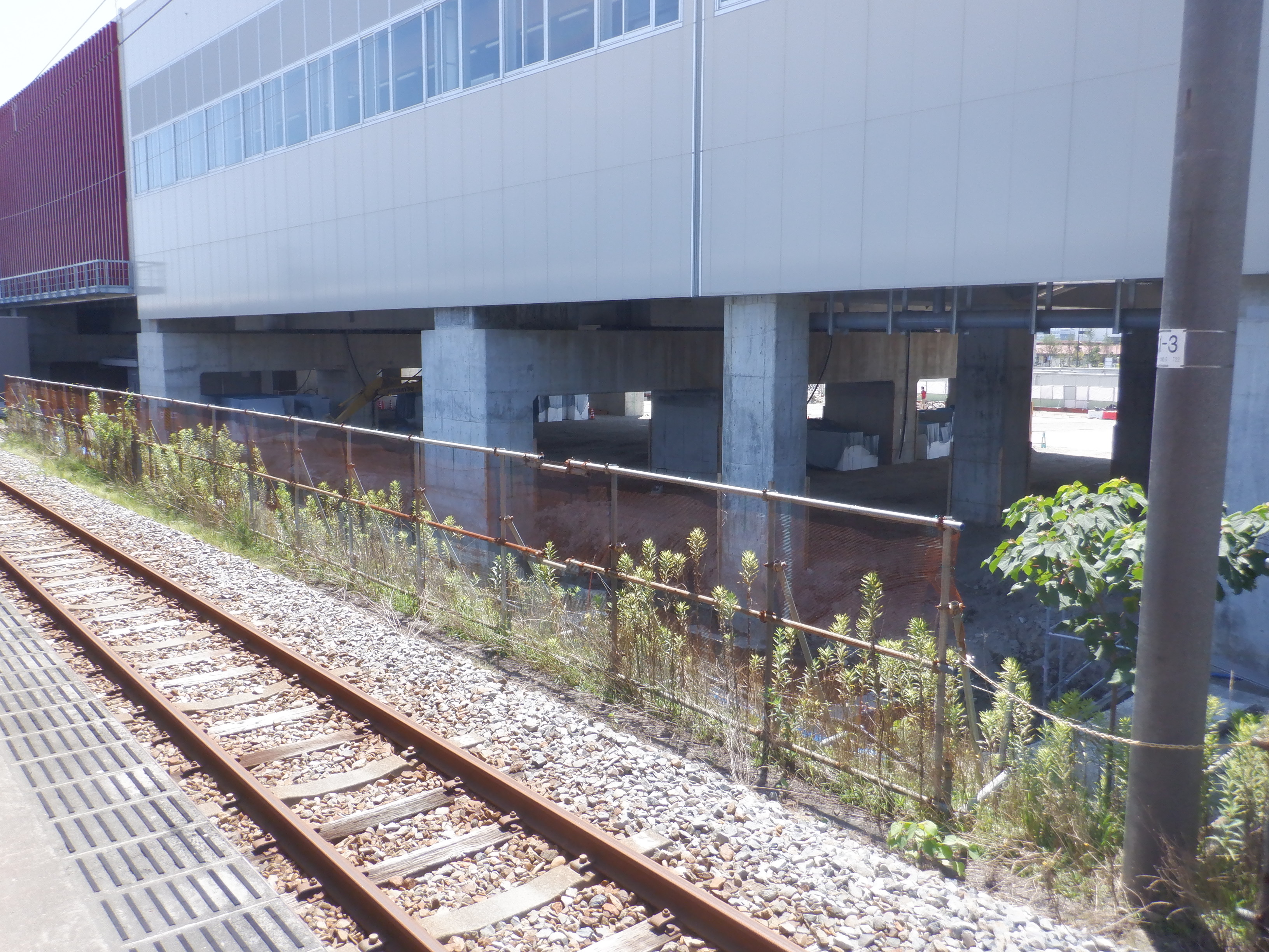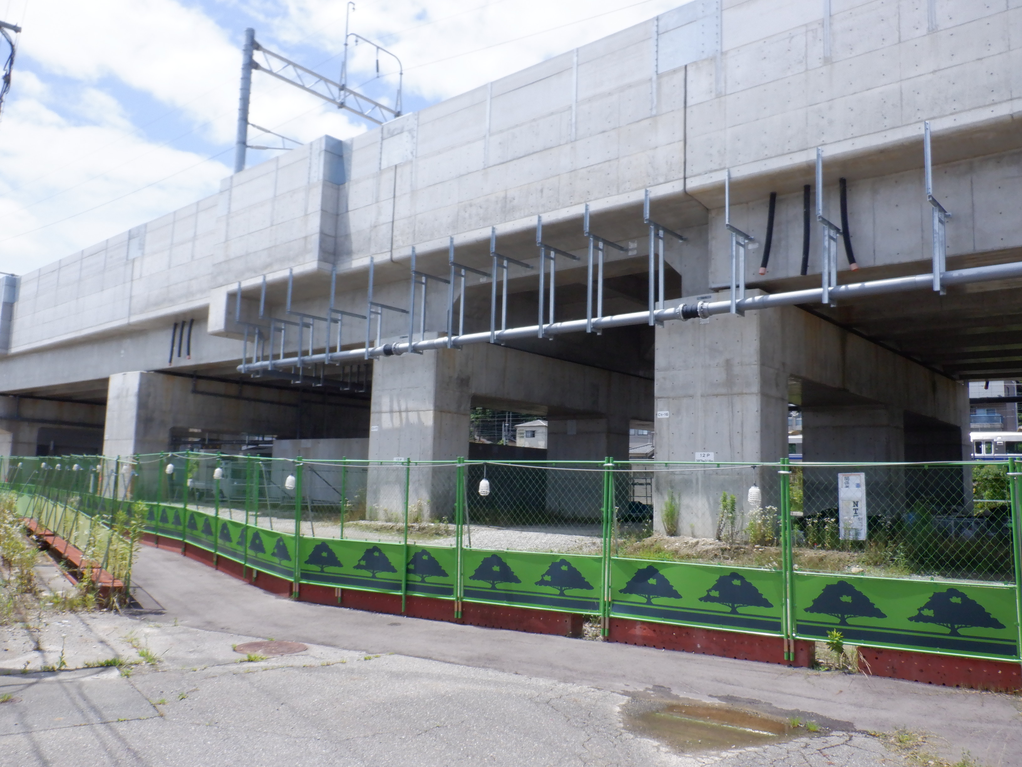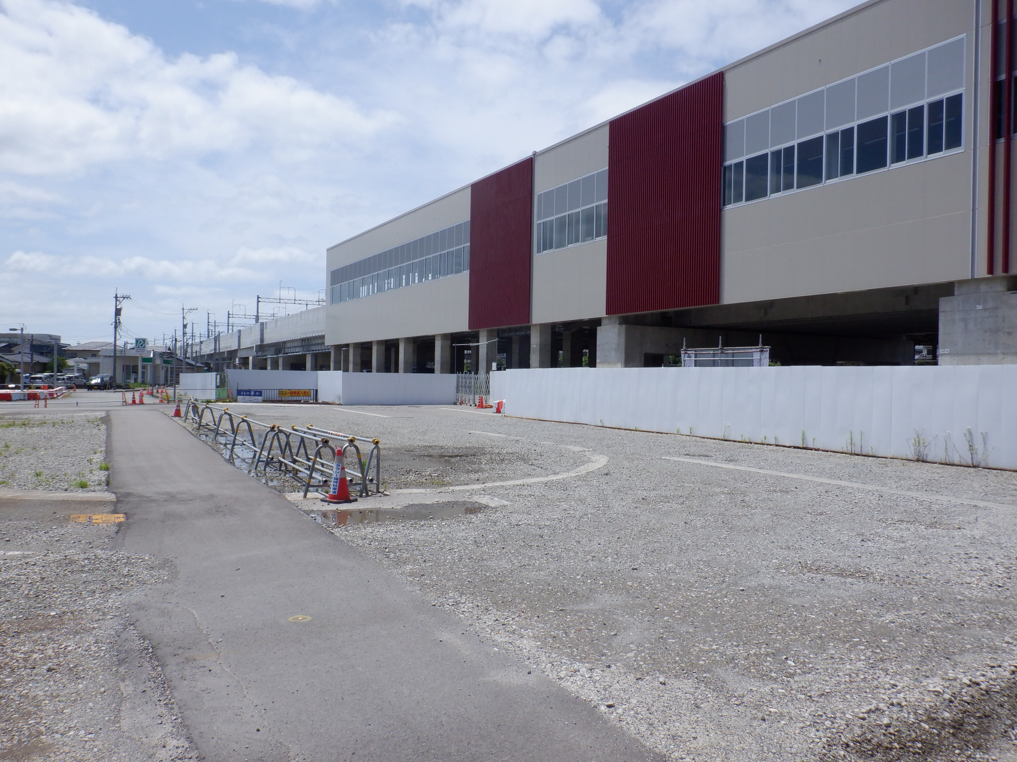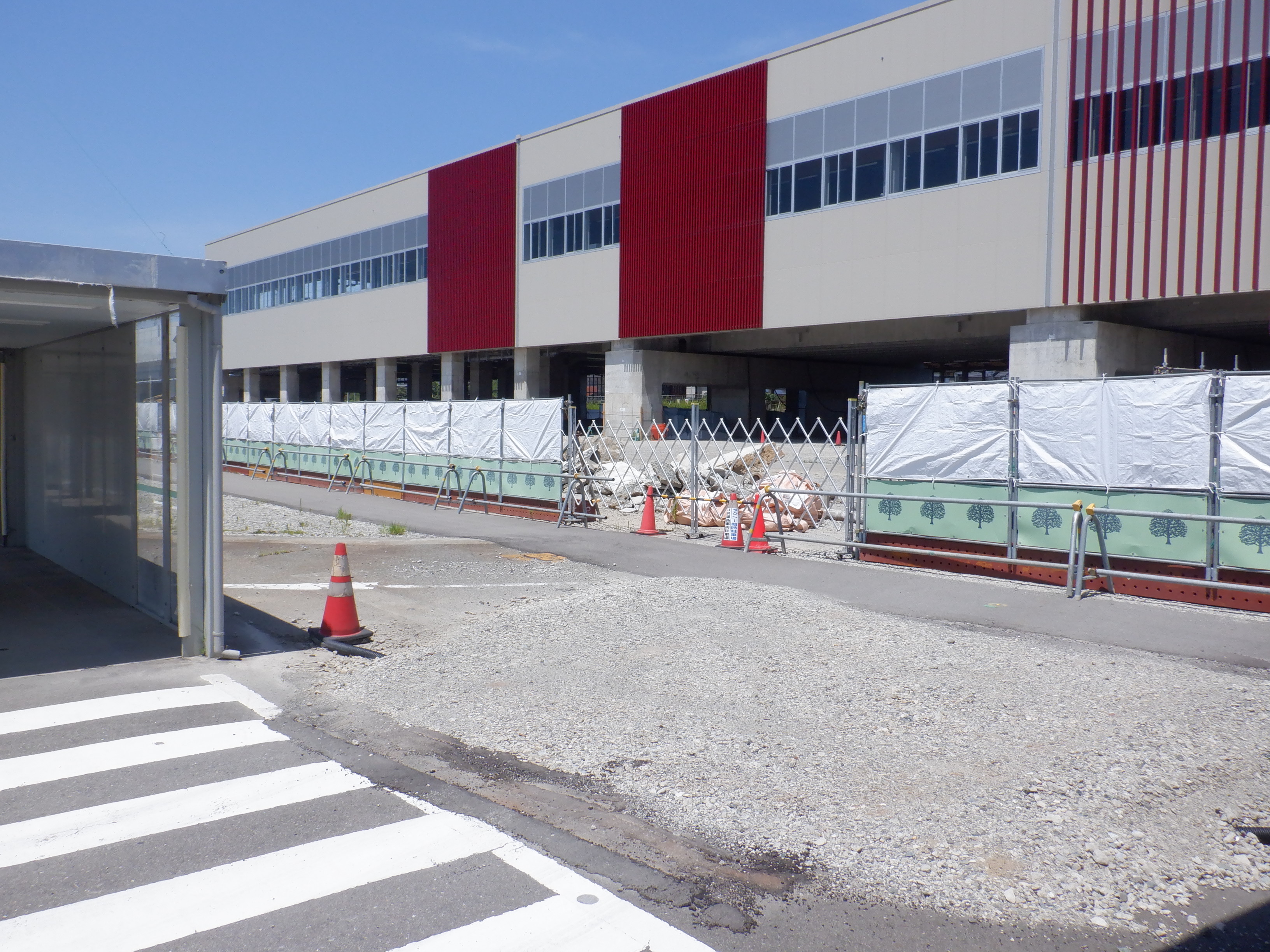 アルプラザ側から見たシェルター工事と新幹線駅舎。