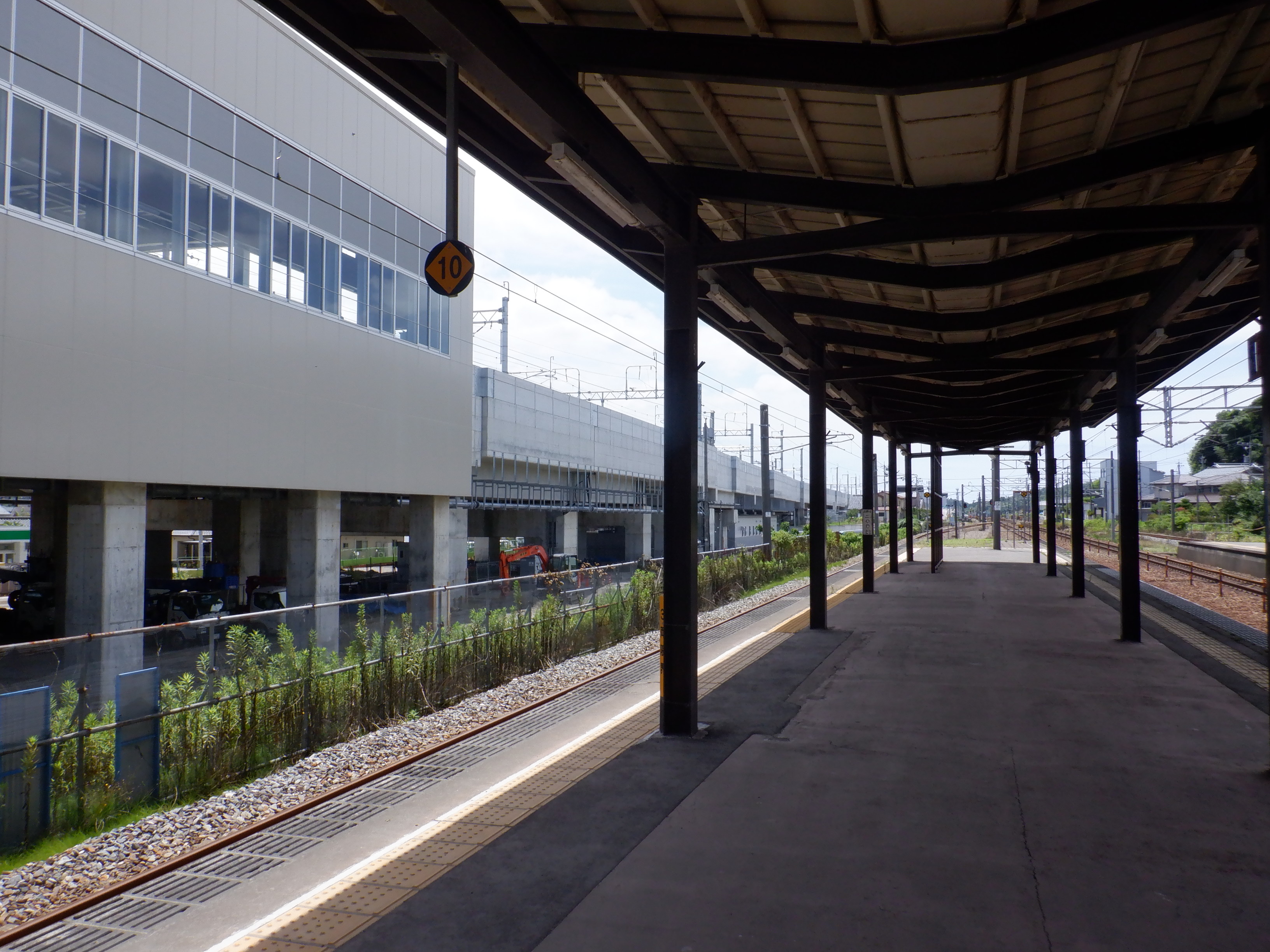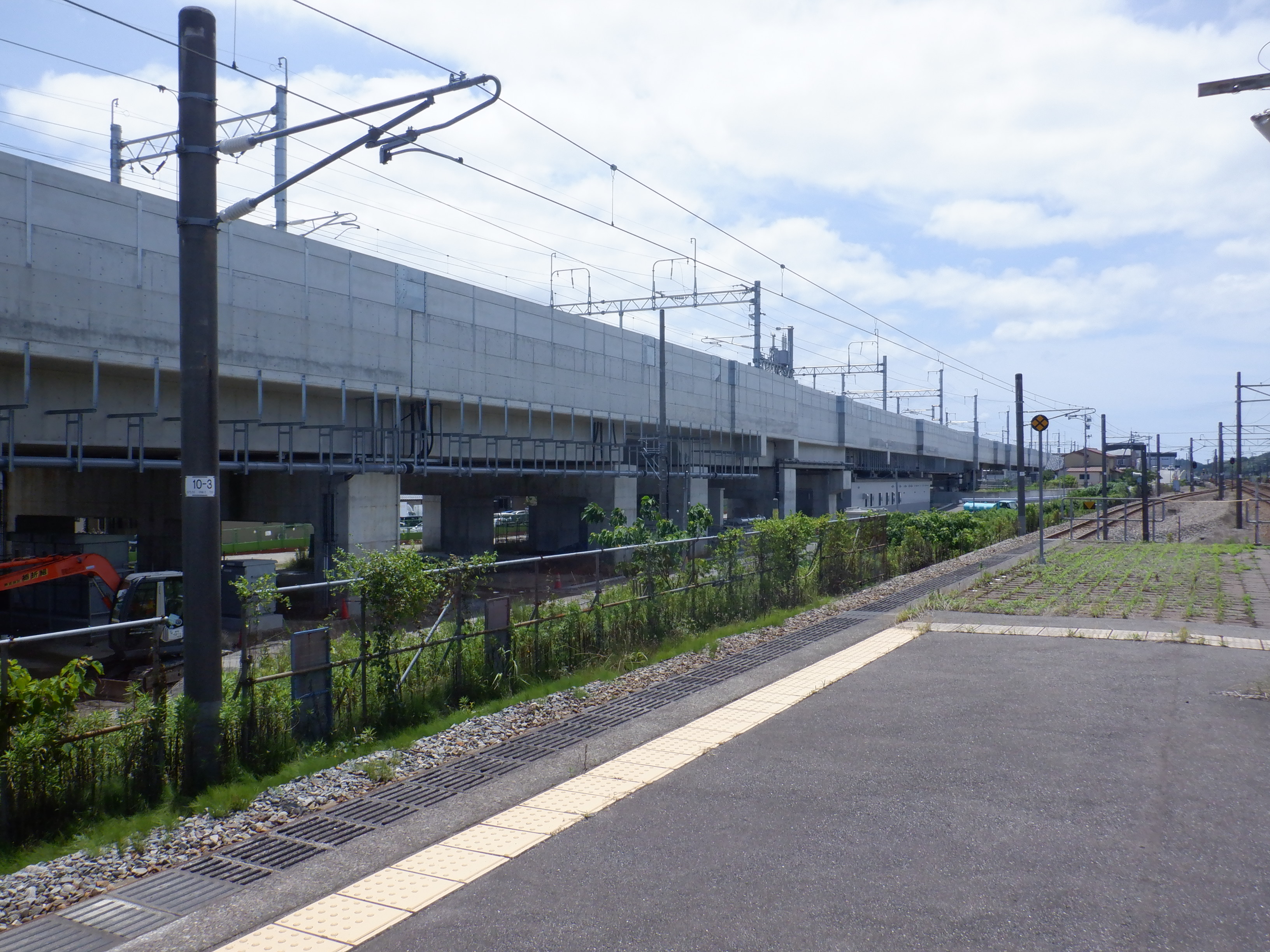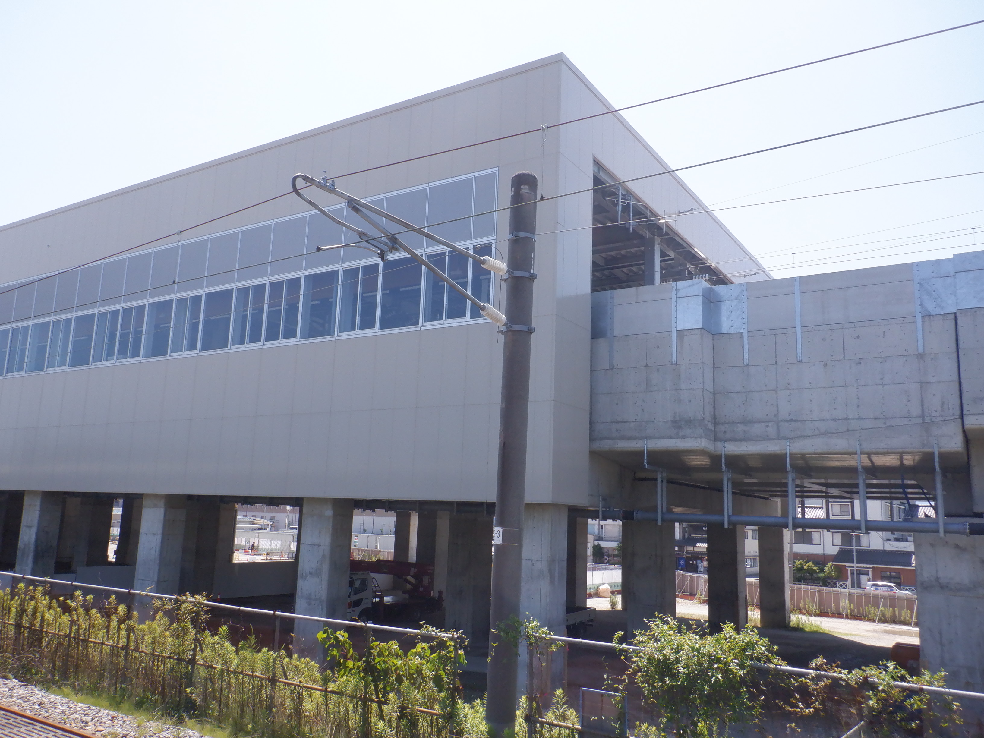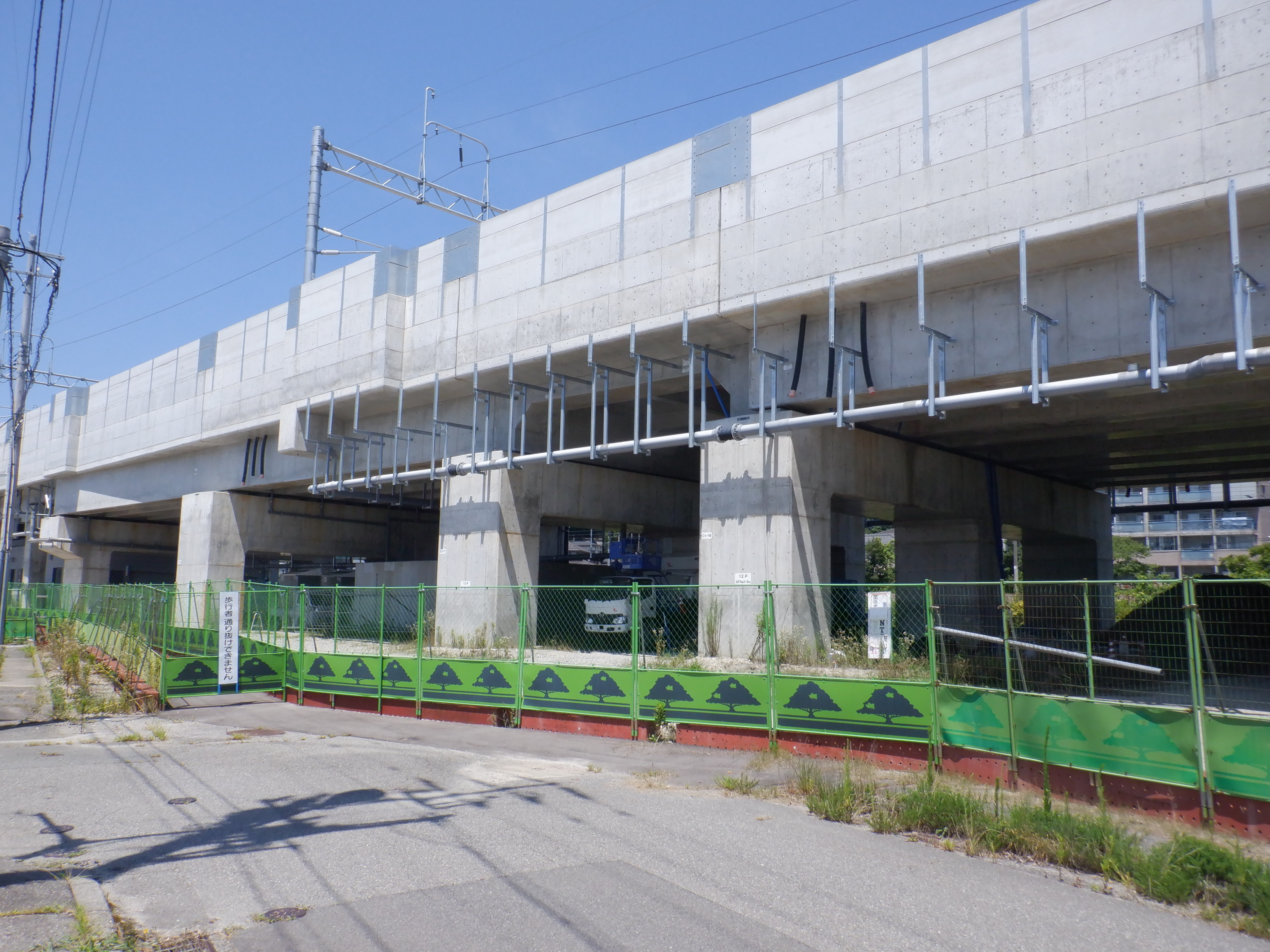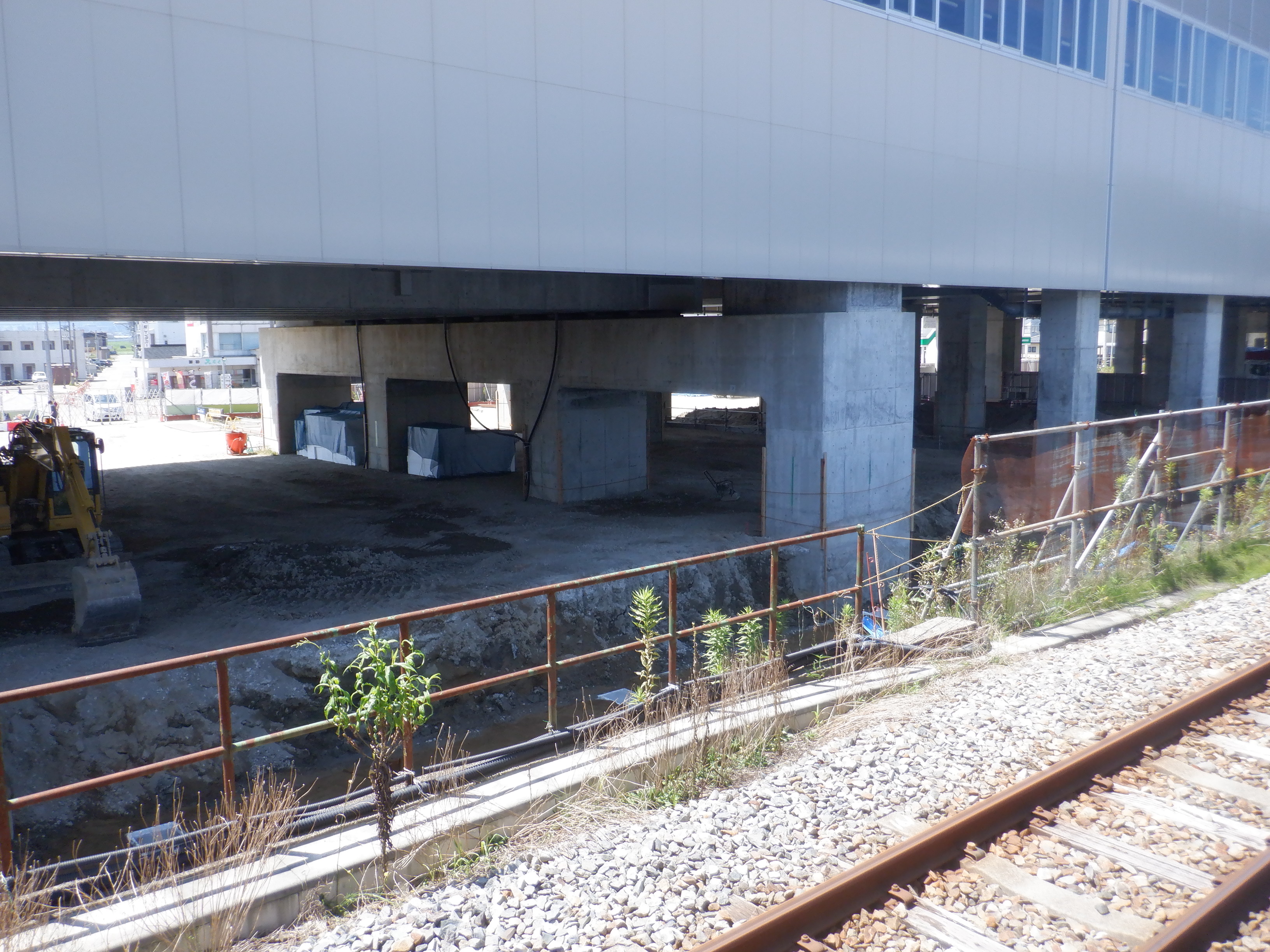 アルプラザ側から見たシェルター工事と新幹線駅舎。