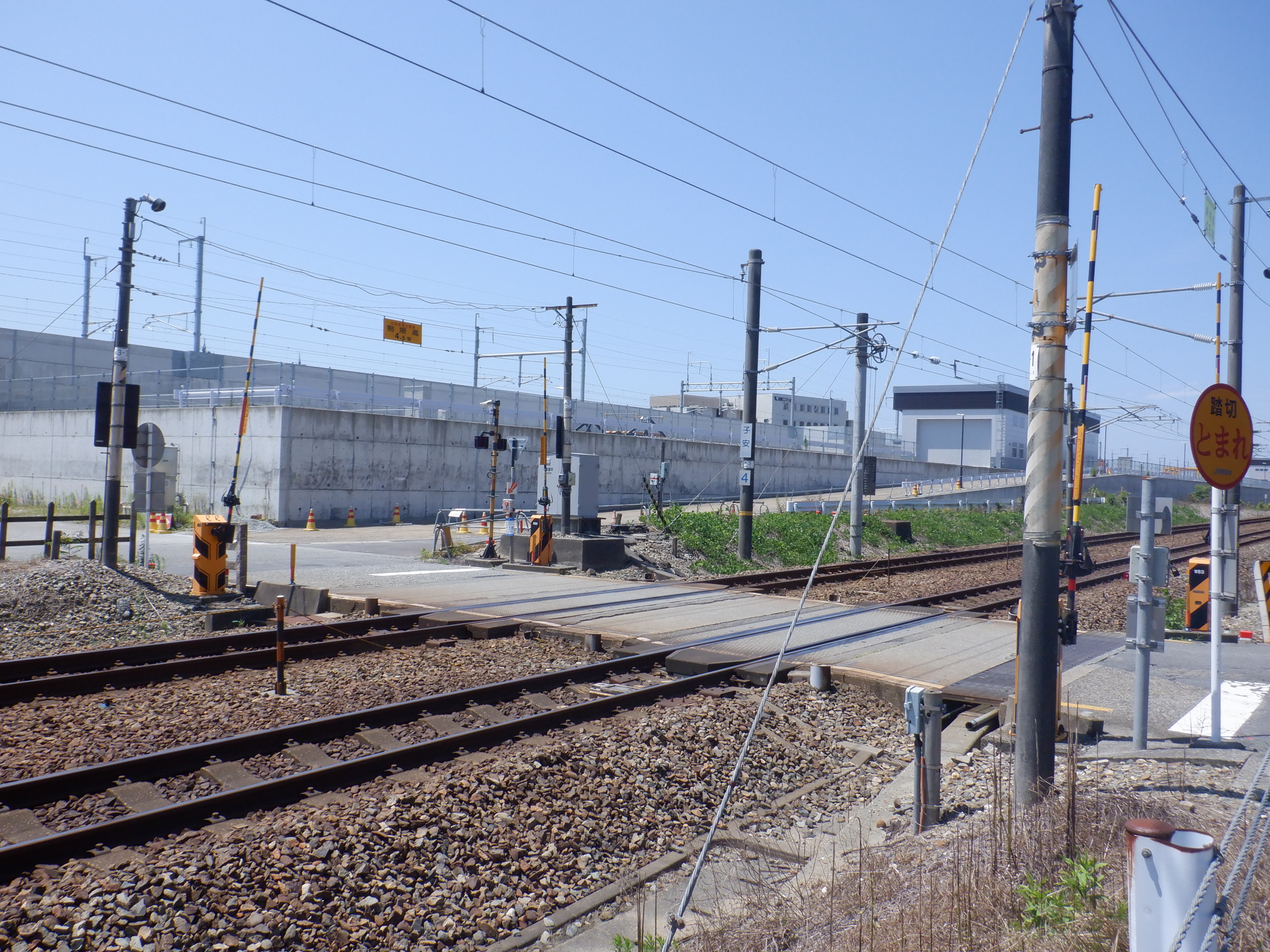 新幹線の高架を通った後、すぐに高架沿いに通れる道が通行止めになりました。そのためさらに迂回が必要になりました。通行止めの道の前後の様子。