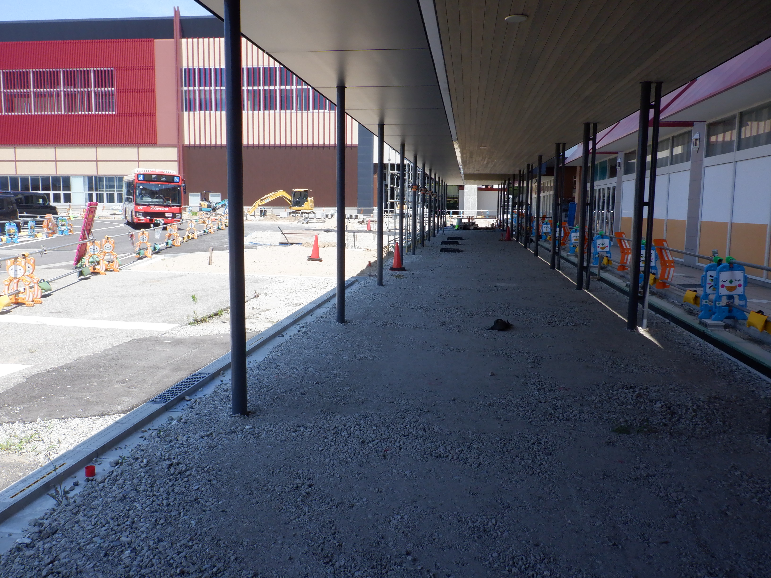 コンビニ・待合室等となるところ付近と仮設バスのりばだったところ。
