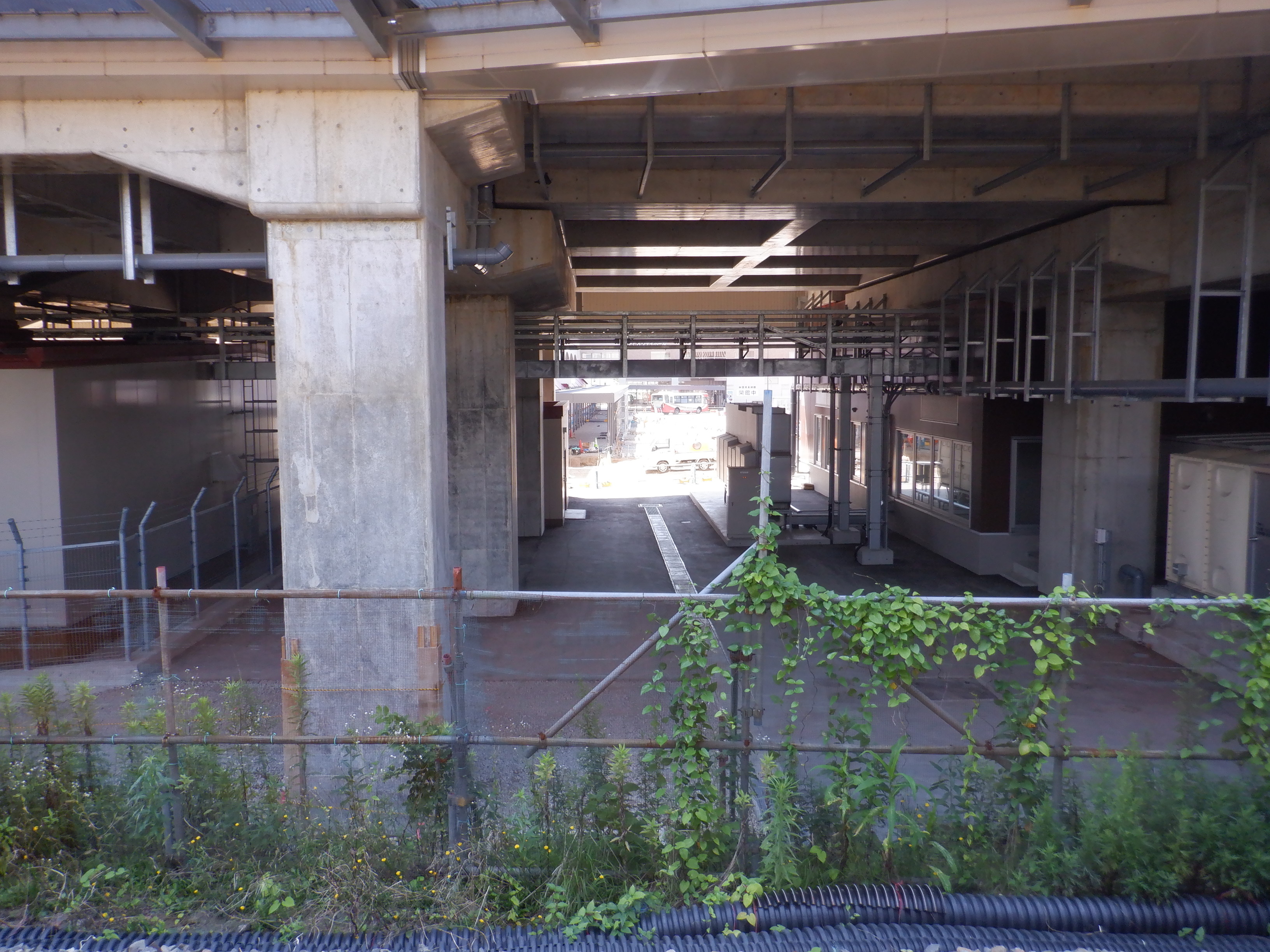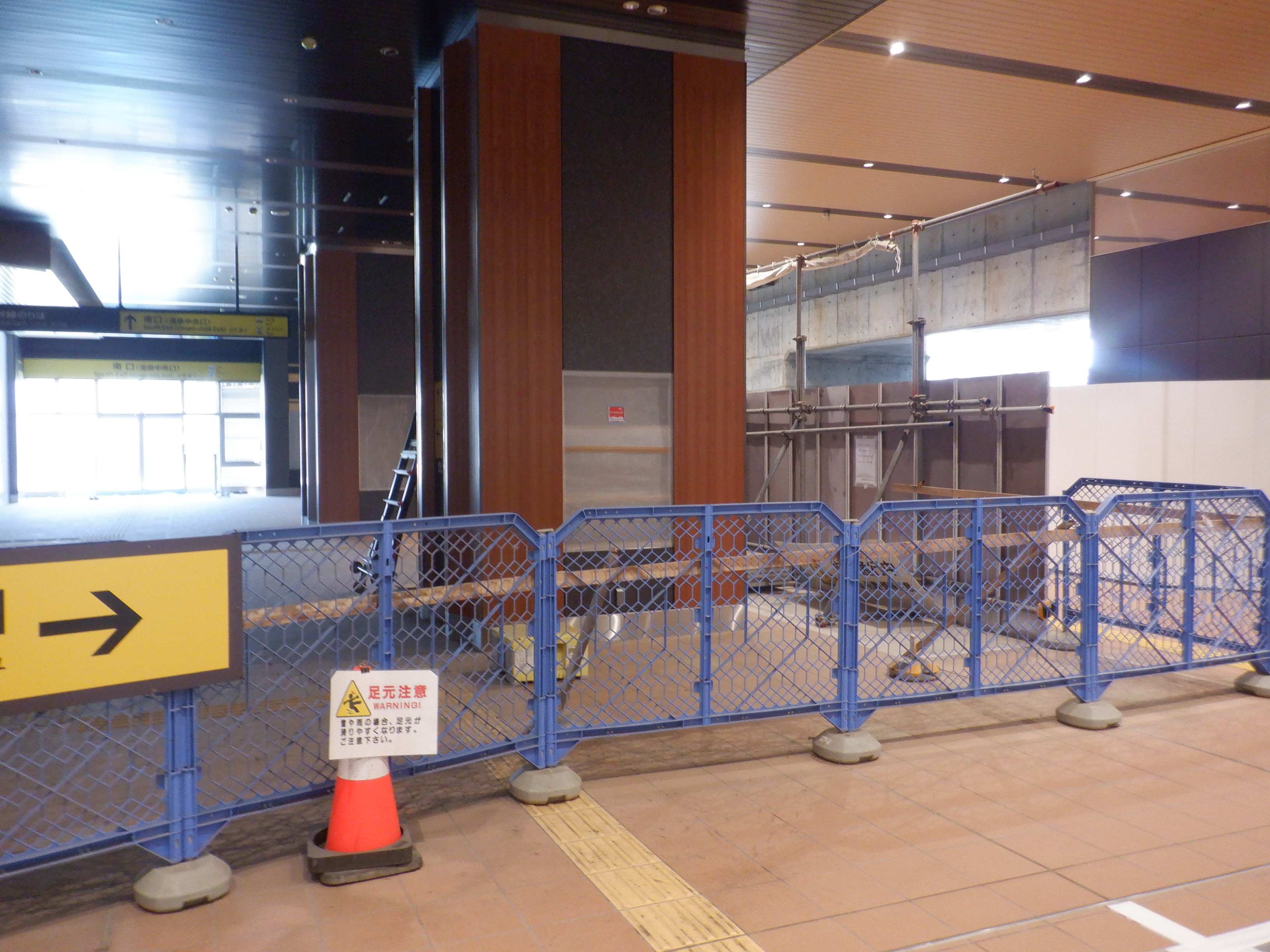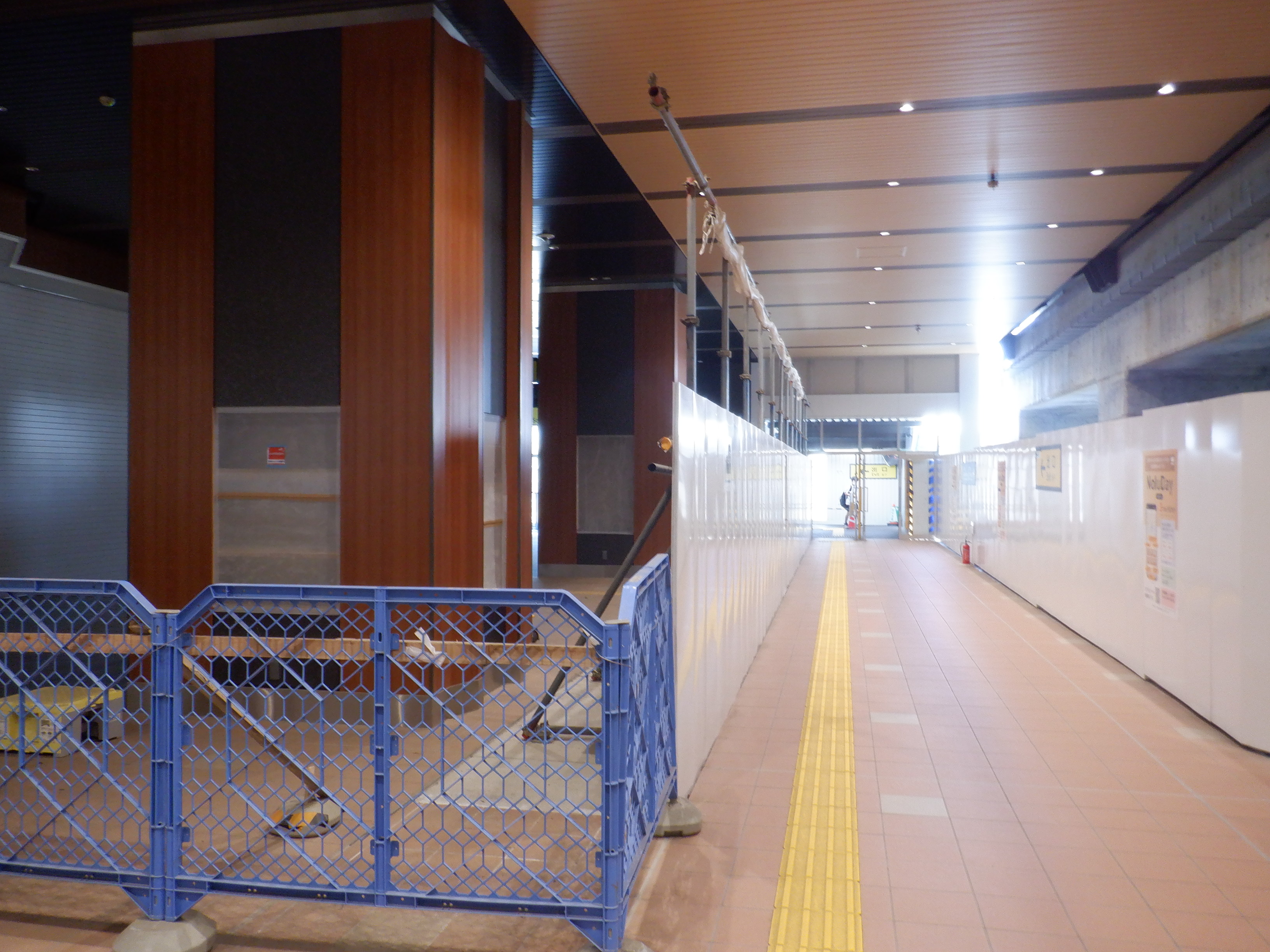 1・2番のりばから見た地下自由通路を再建設中のところとコンビニ・待合室等となるところ。