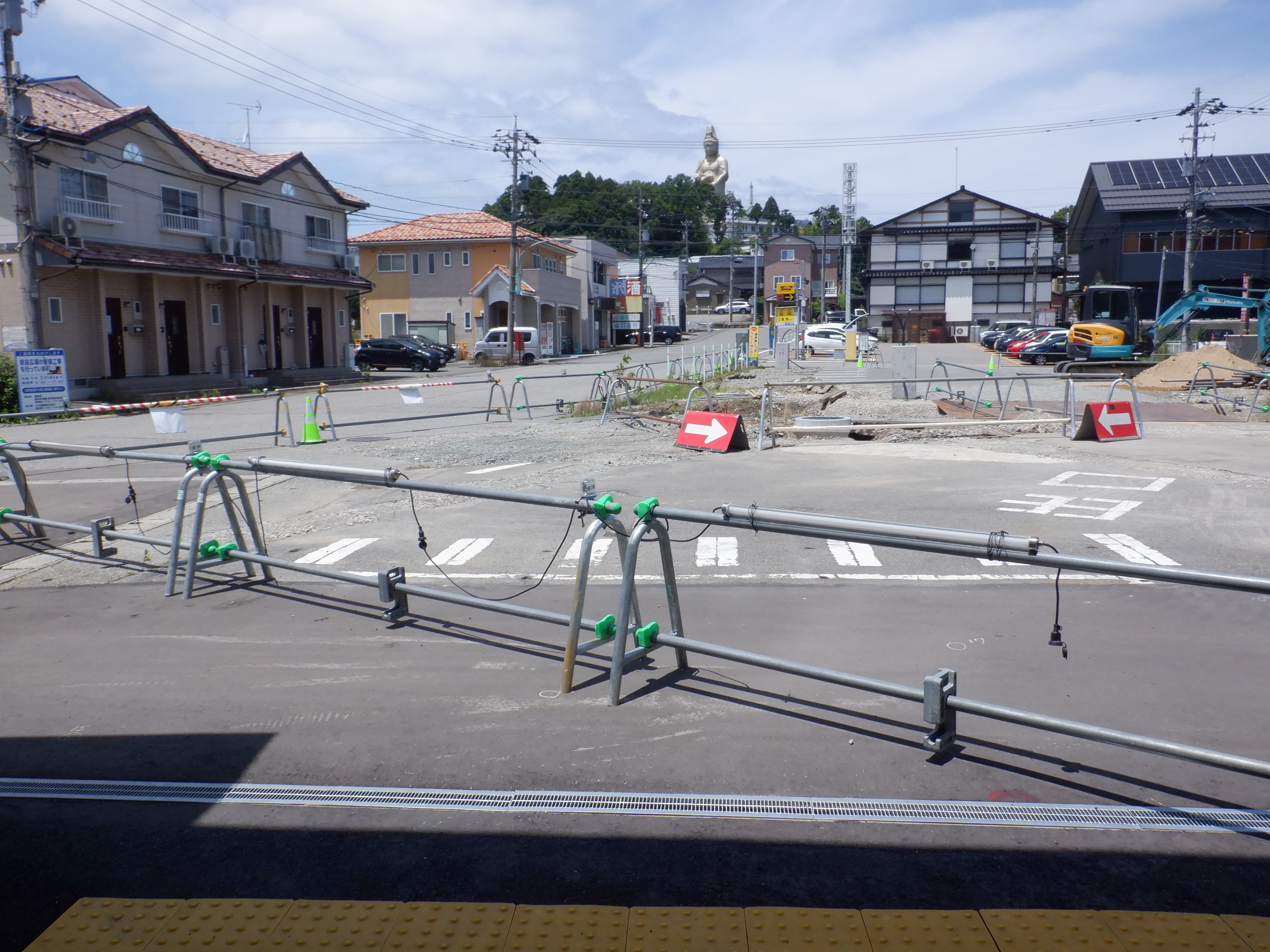 仮設バスのりばだったところは通行ができるのでそこを抜けて仮設駅舎へ。