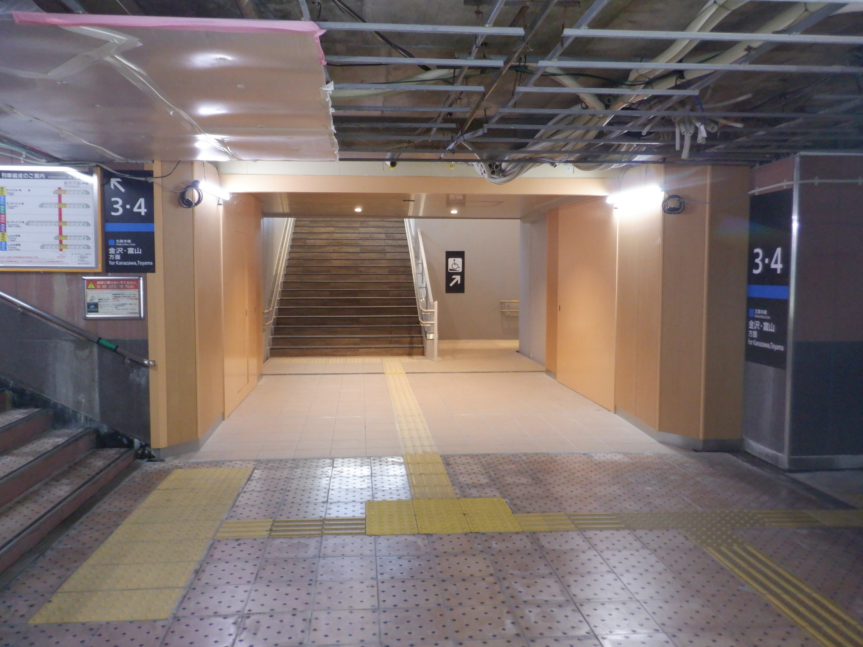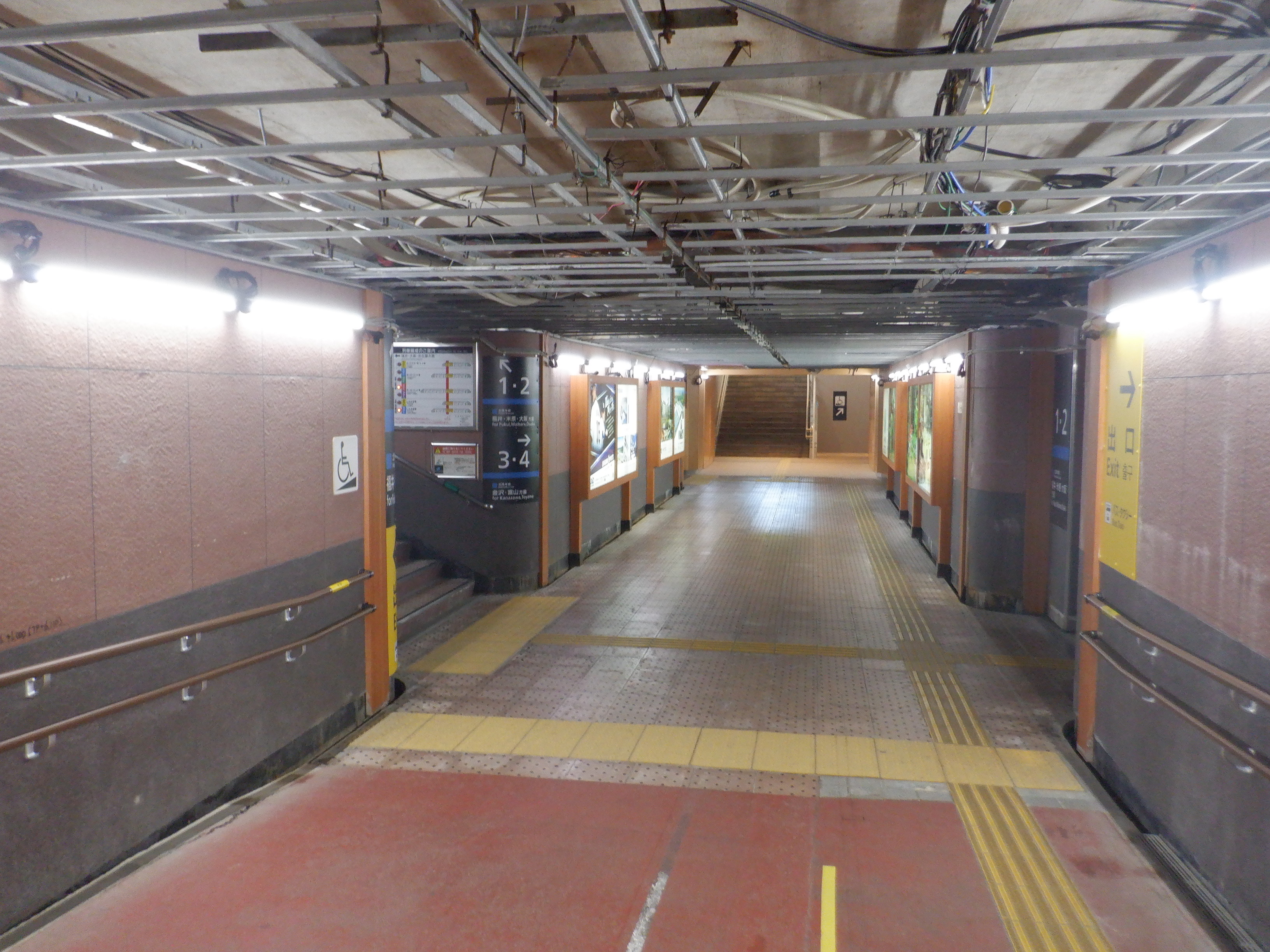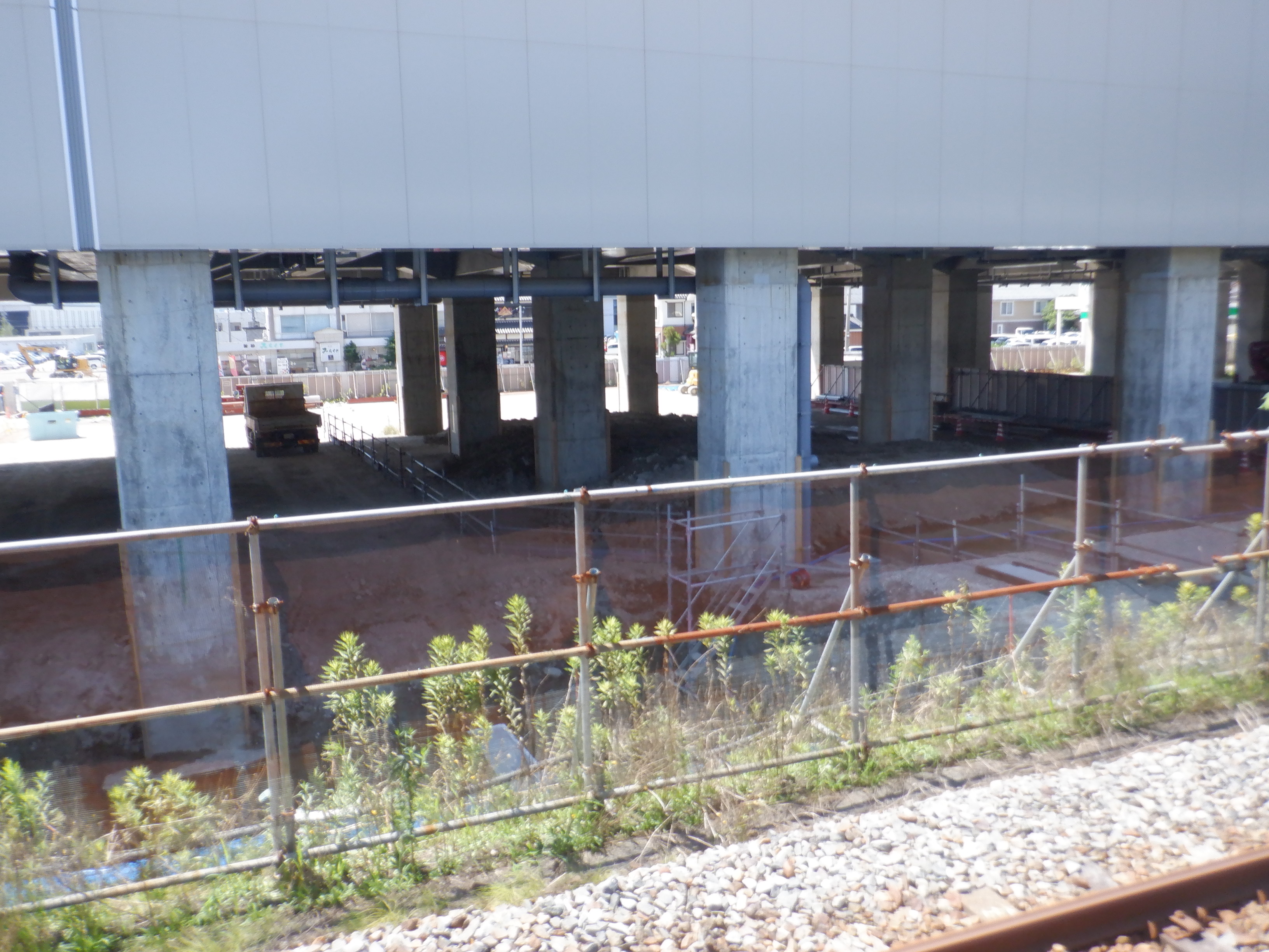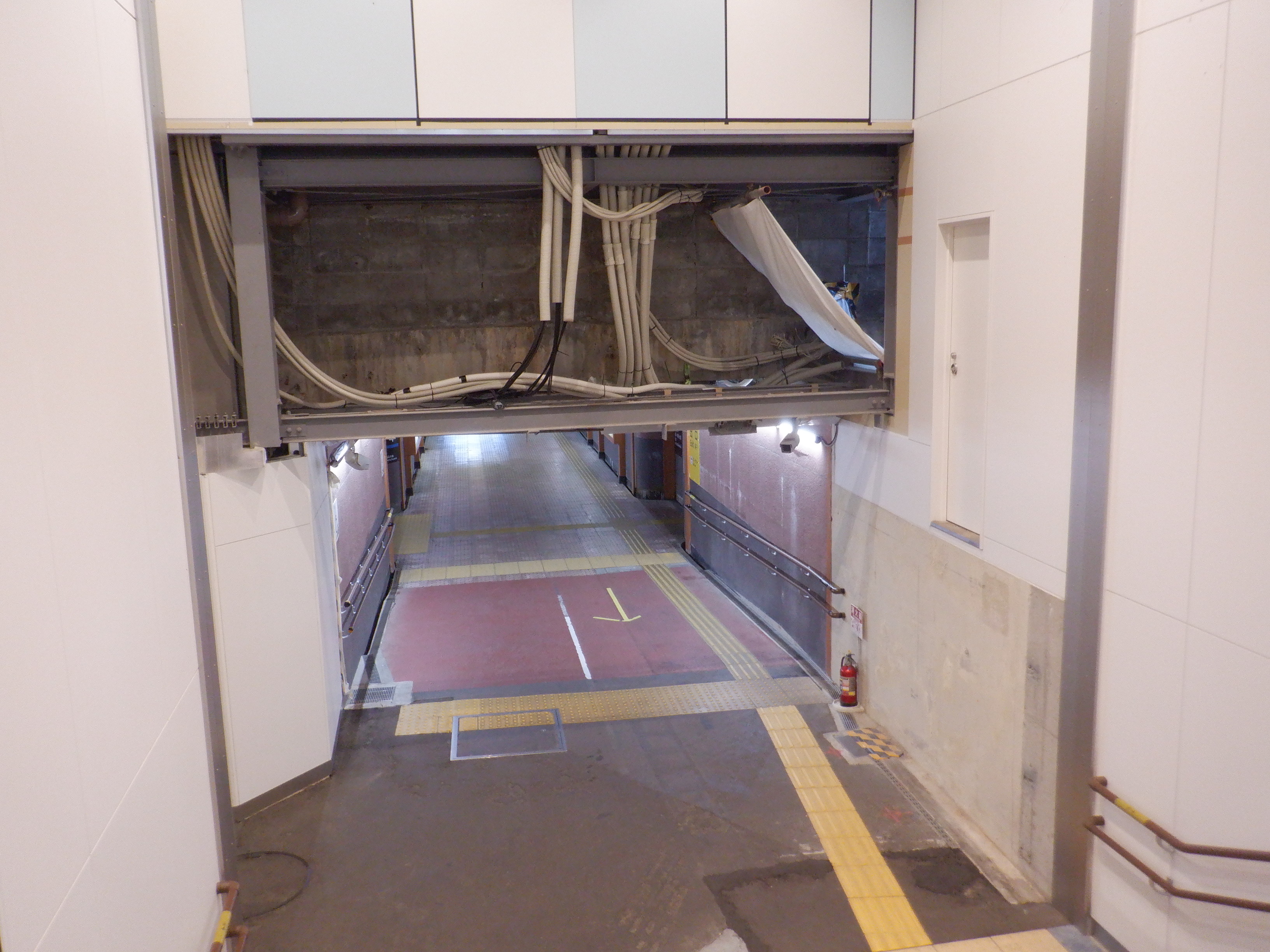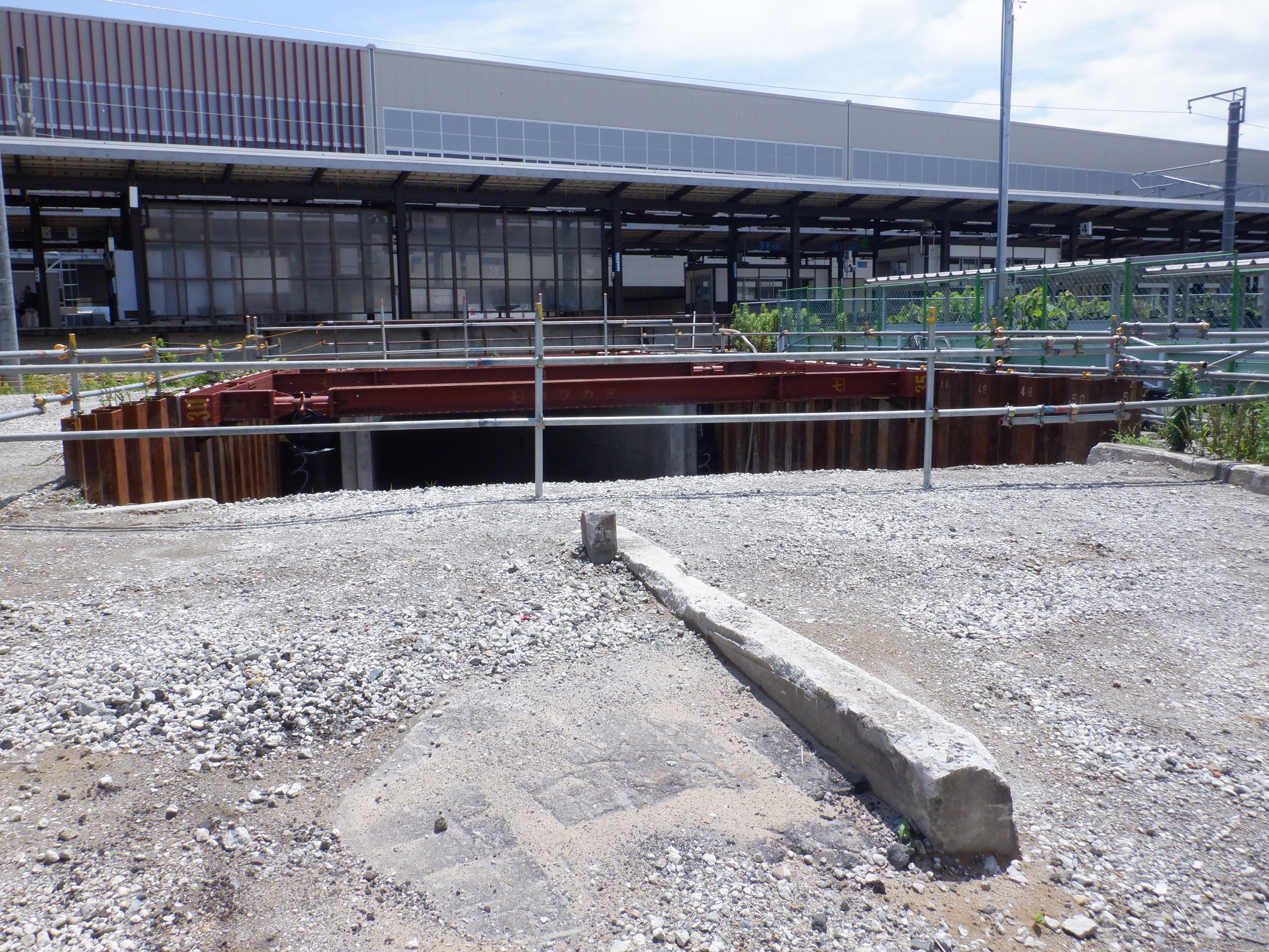 3・4番のりばから見た地下自由通路を再建設中のところ。