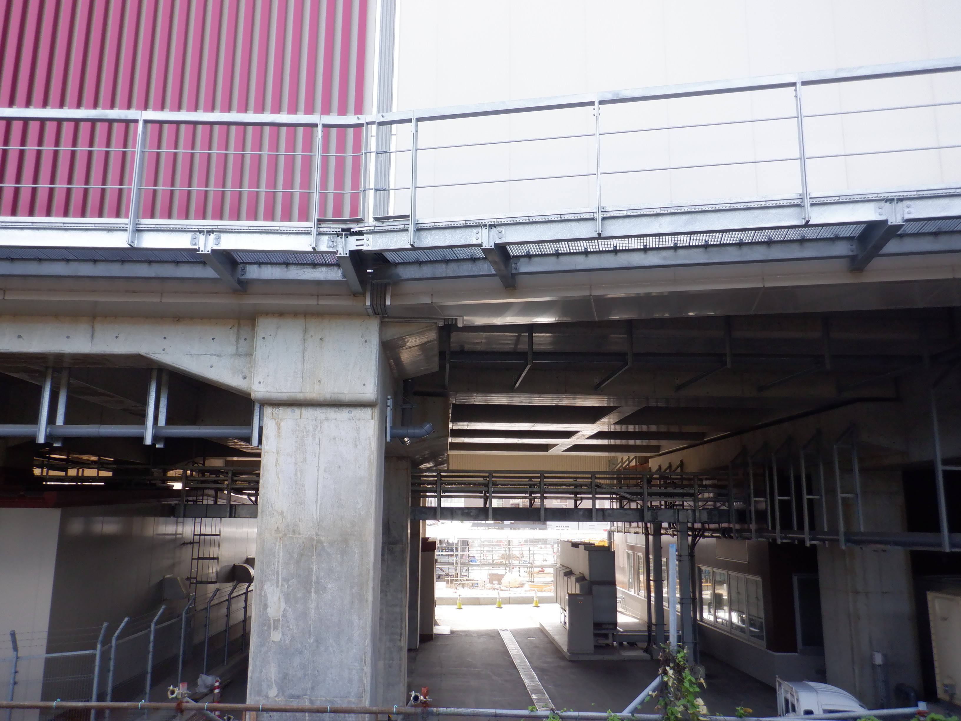 仮設通路となっている新幹線のりばコンコースとなるところ。