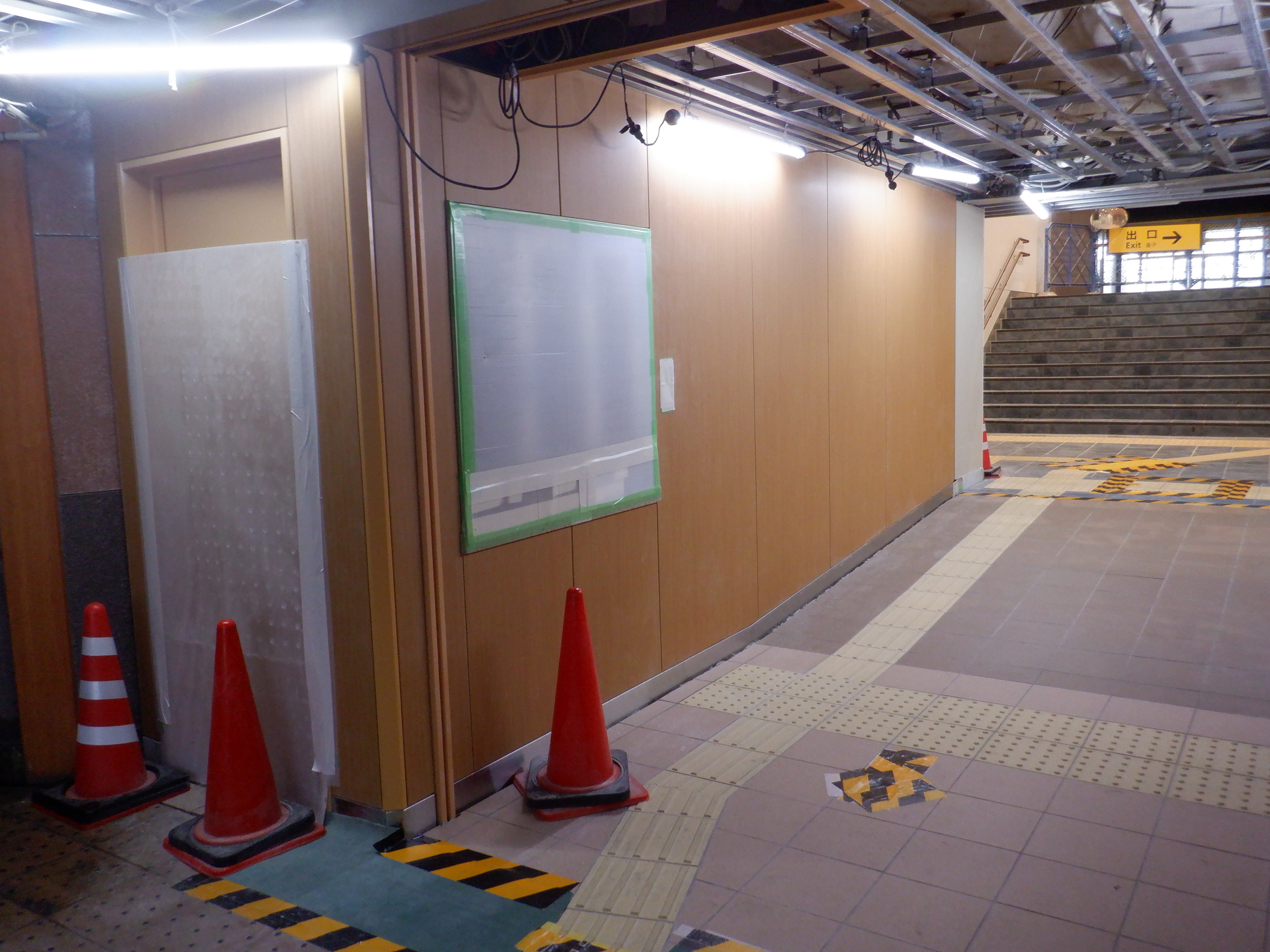北口への地下自由通路への通路だったところ。バスのりばの跡もまだ残っています。