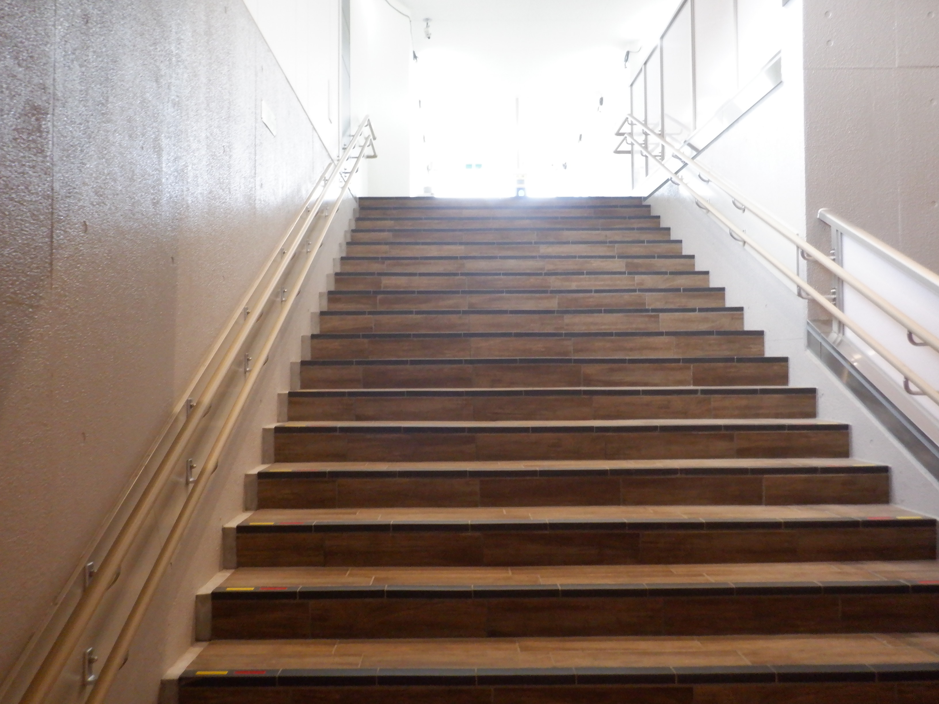 1・2番のりばの階段。壁の部分が塗装されたようです。