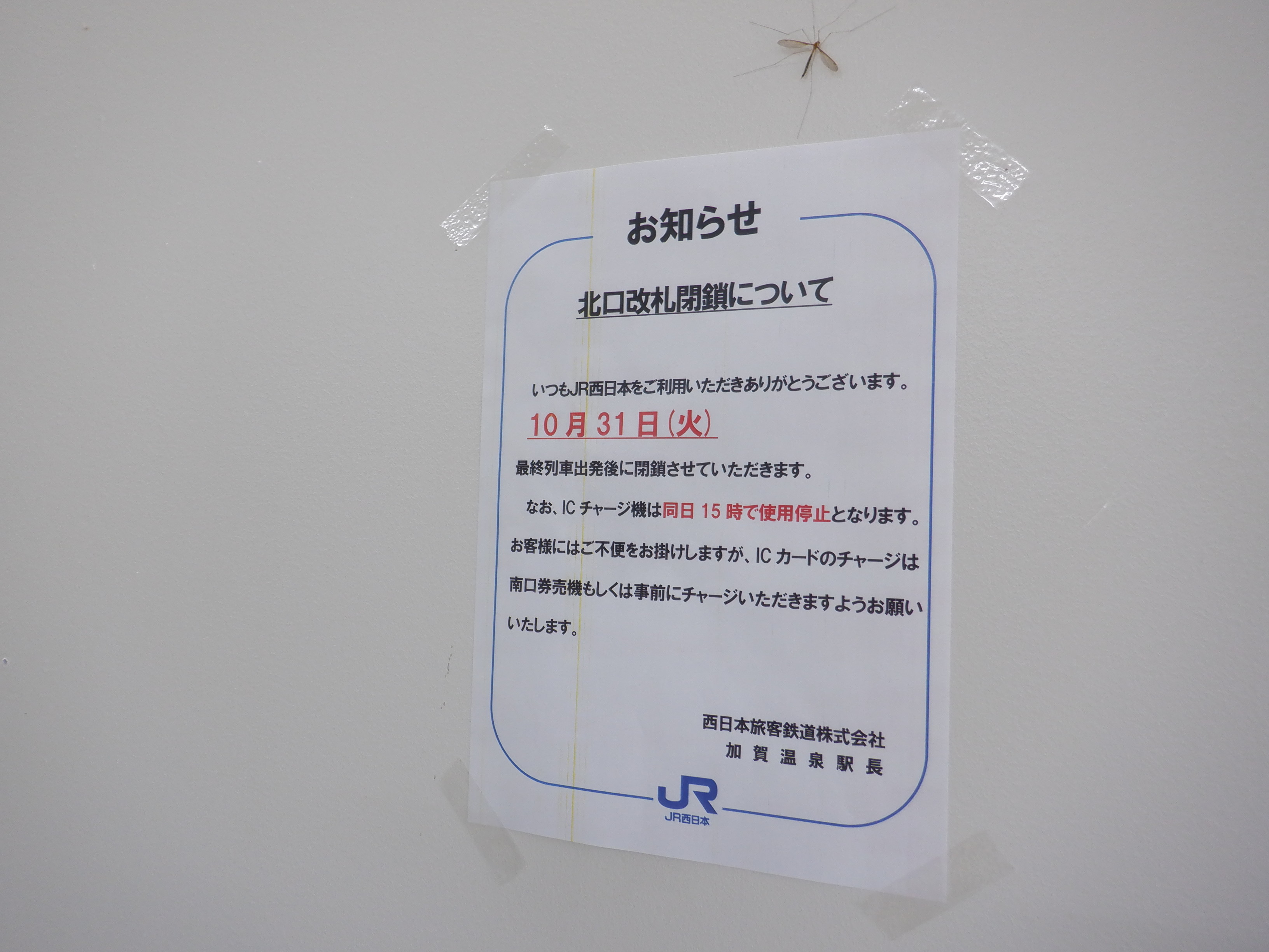 暫定北口の利用は今回で最後になります。案内も貼られていました。