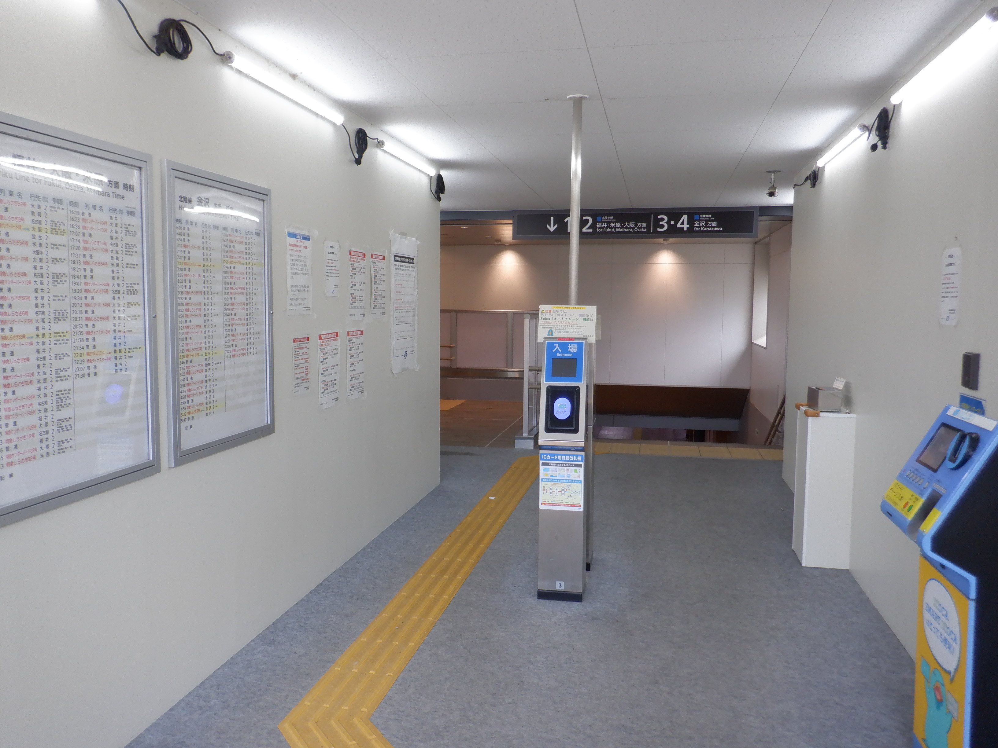 地下道の出入口、IRいしかわ鉄道の改札口となるところ。
