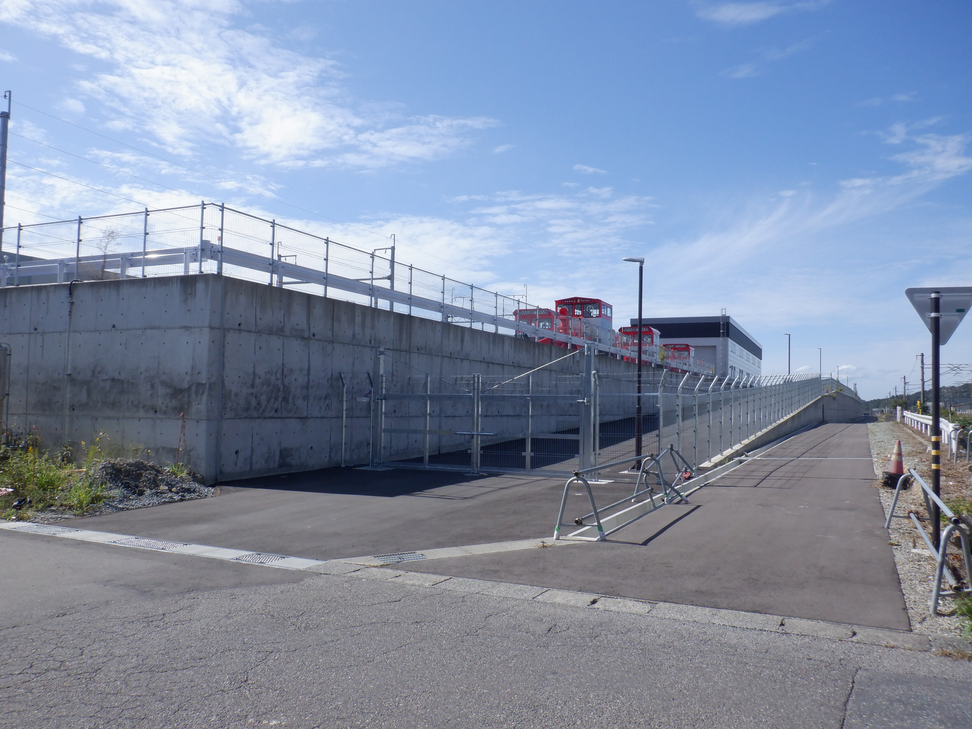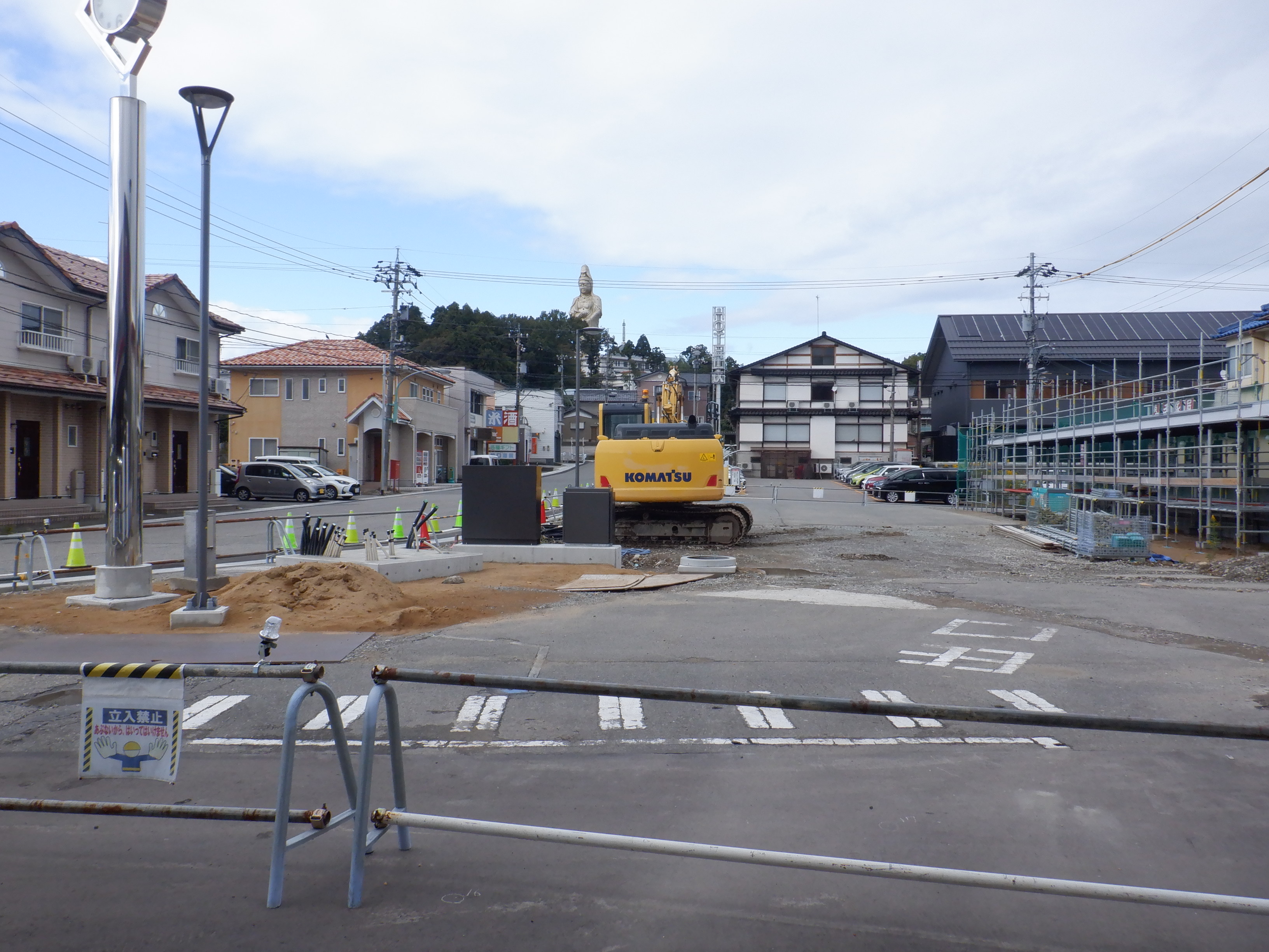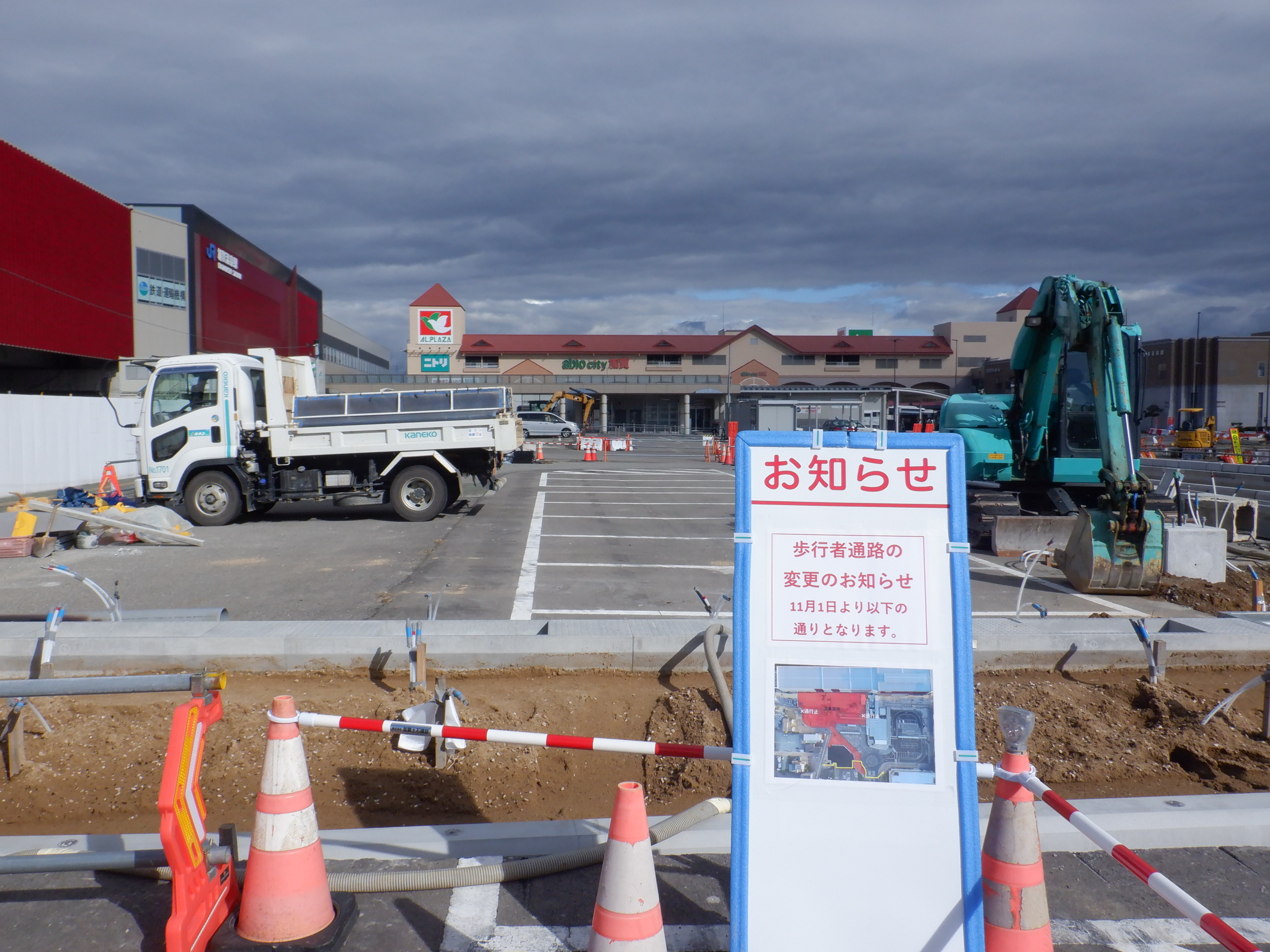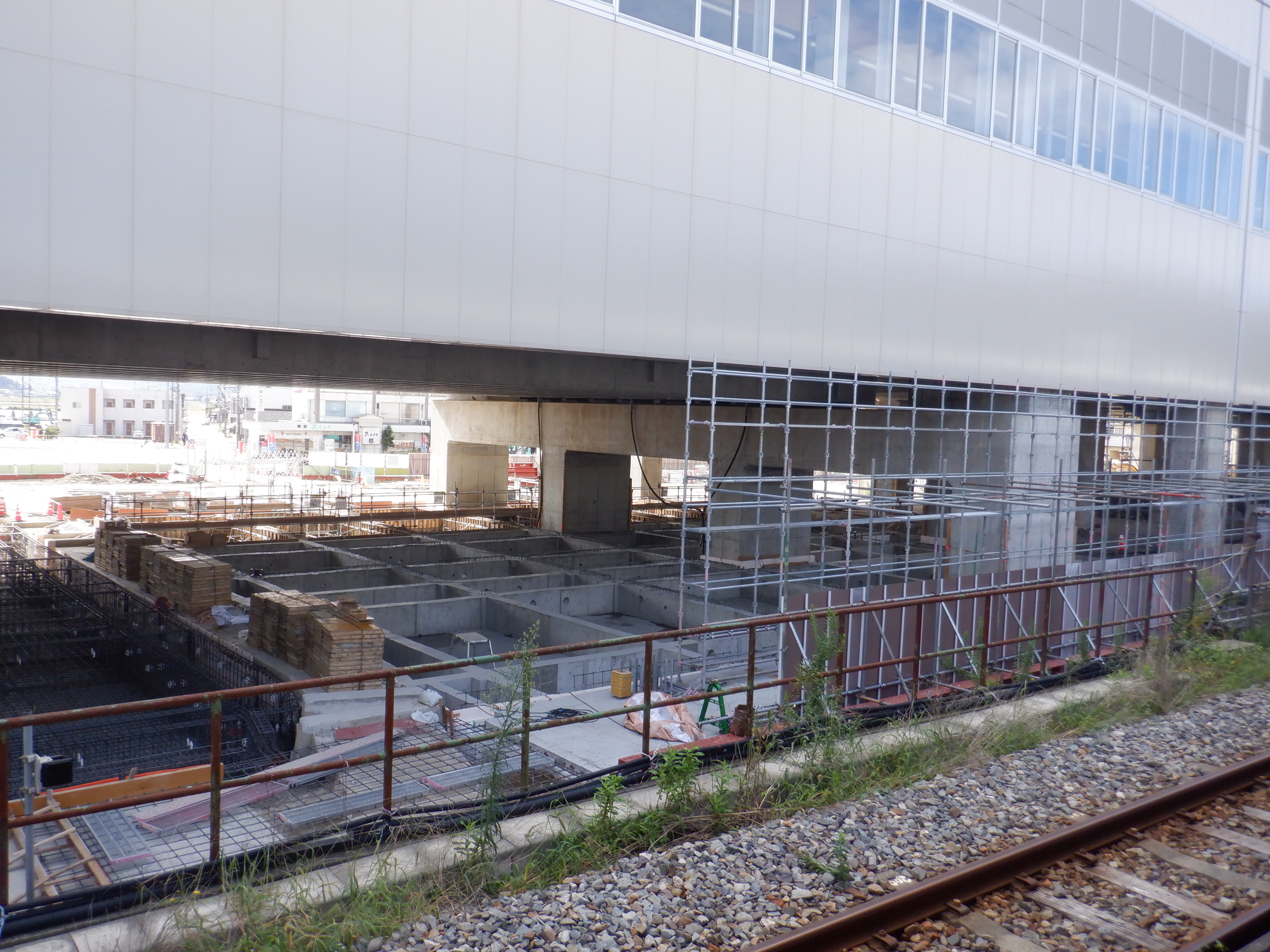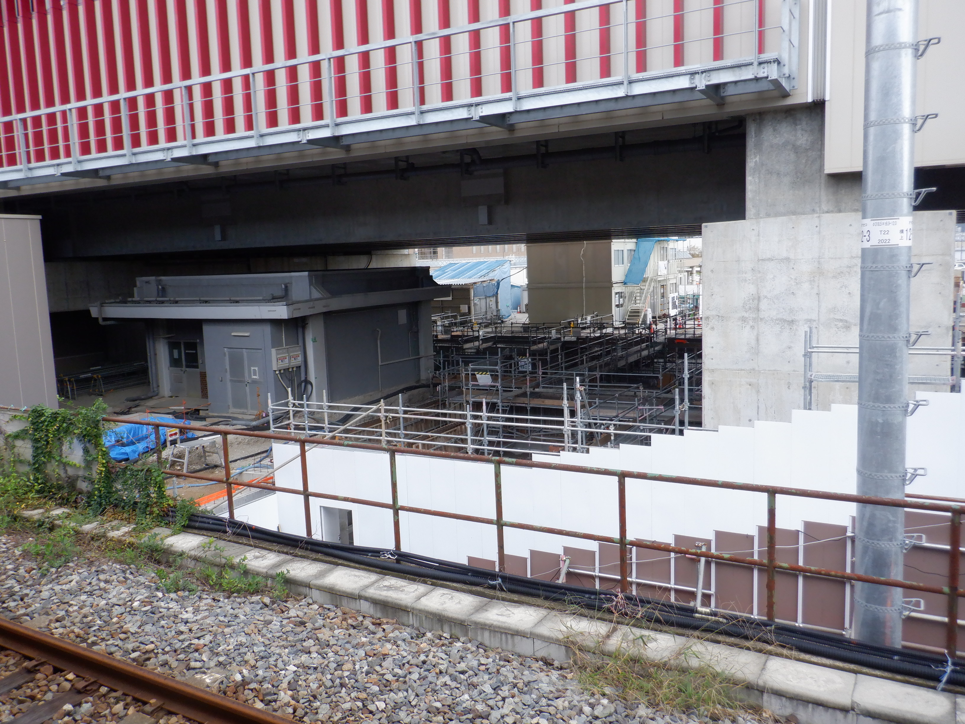 暫定北口を通るのがこの10月いっぱいということが案内されていました。それに向けて、コンビニ・待合室等建設中のそばが少し変化してきています。