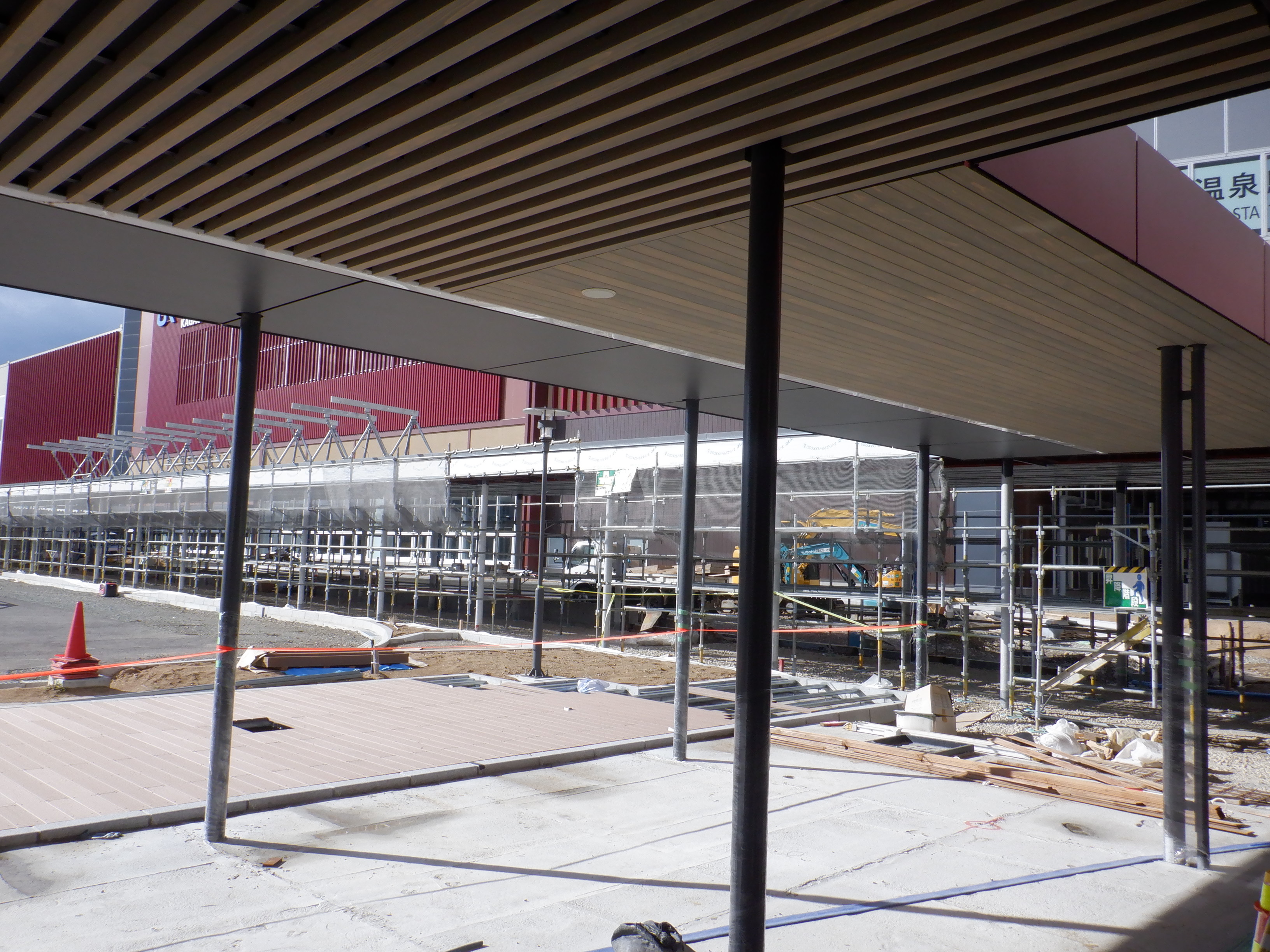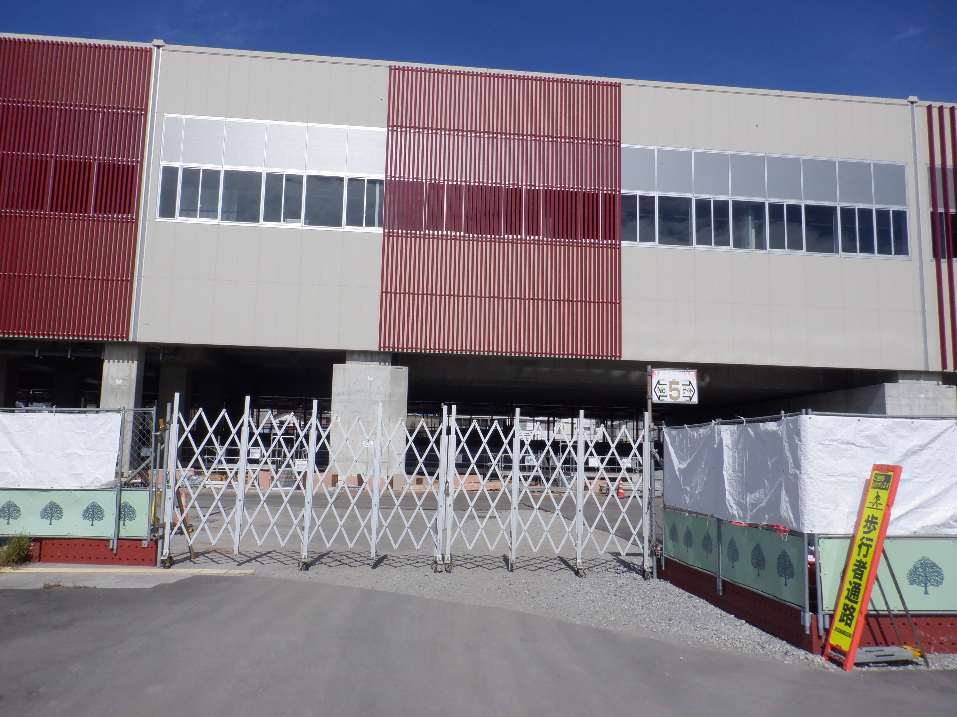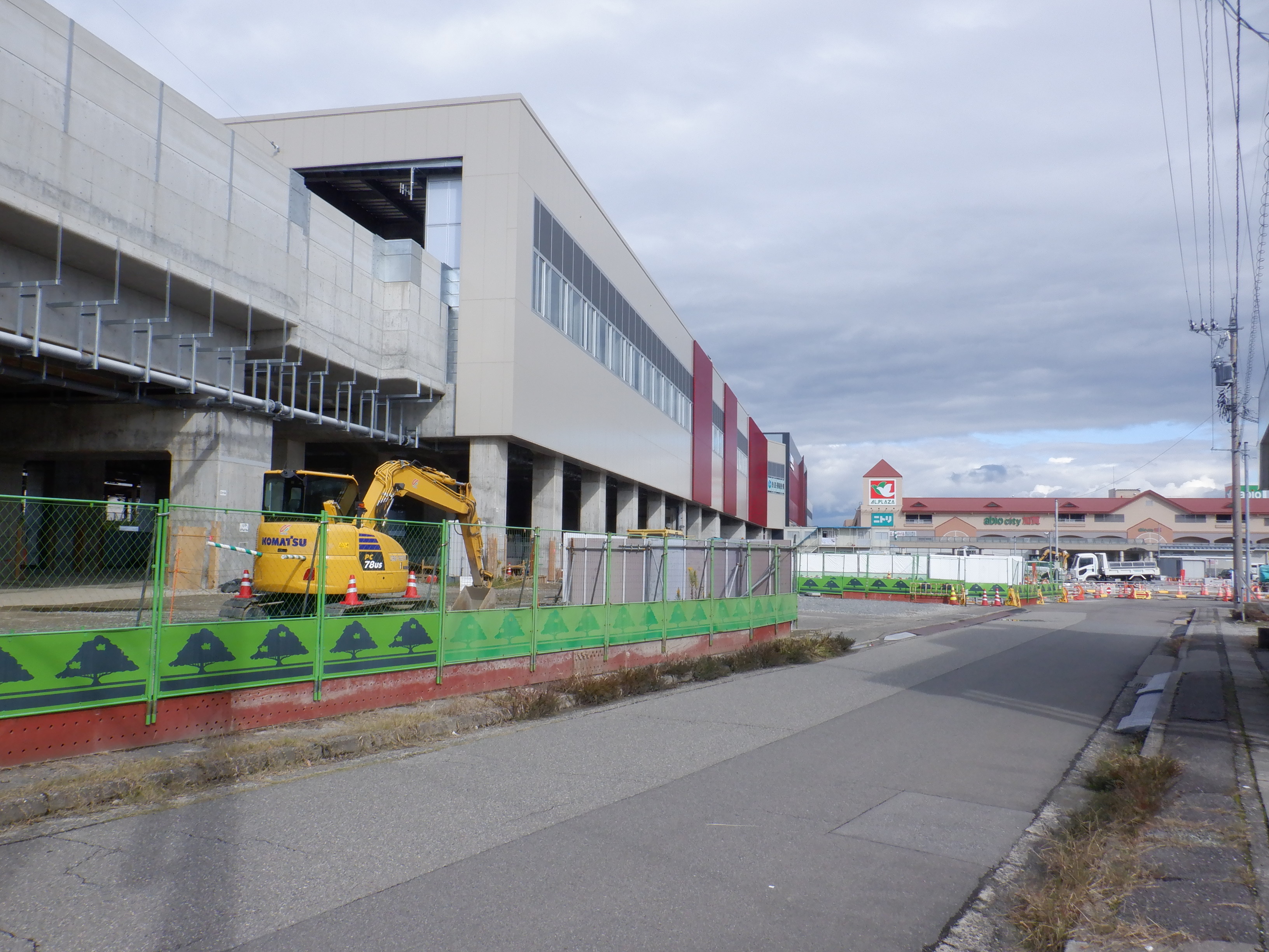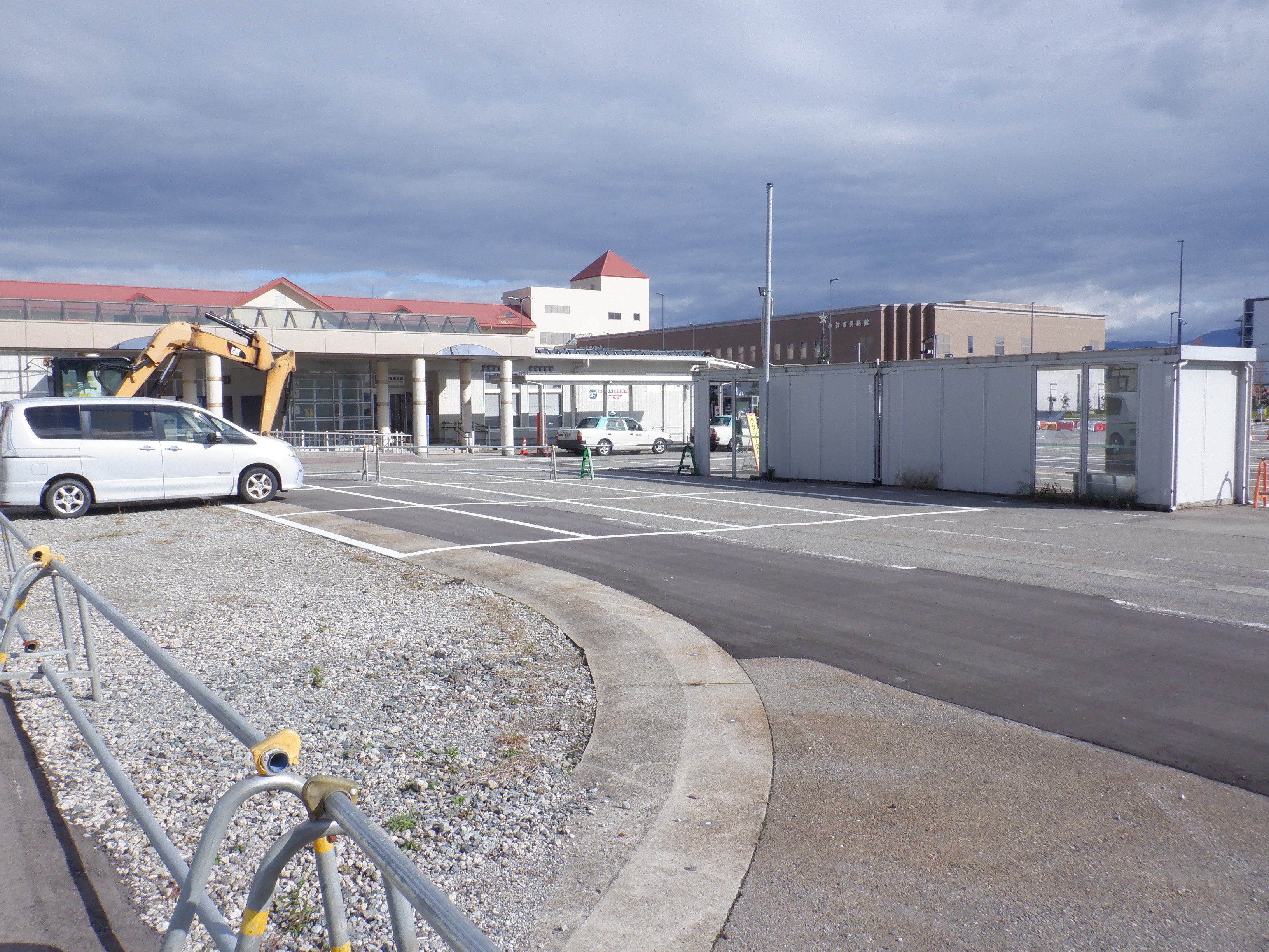 アルプラザ側のシェルター建設中のところと新幹線駅舎。