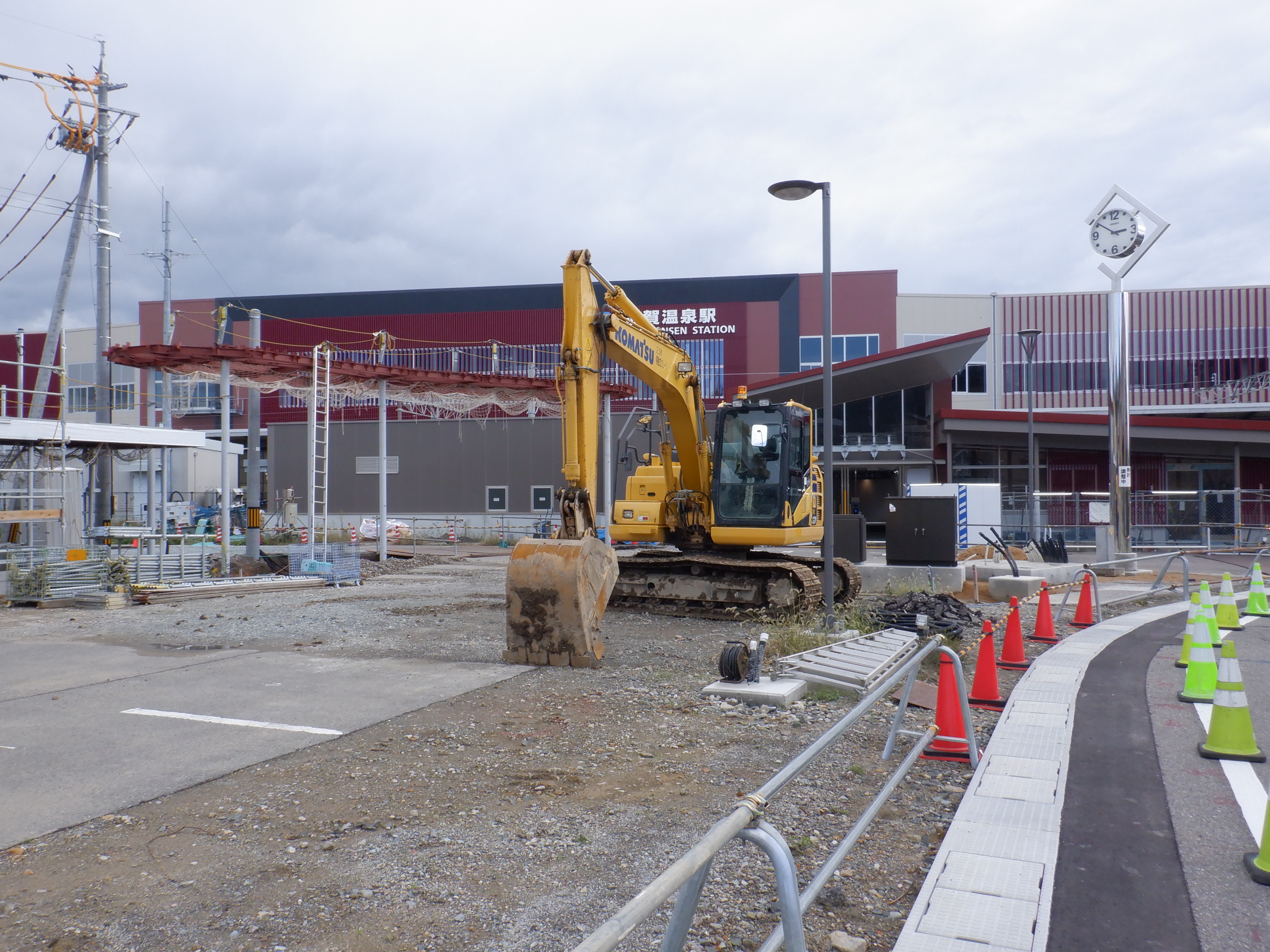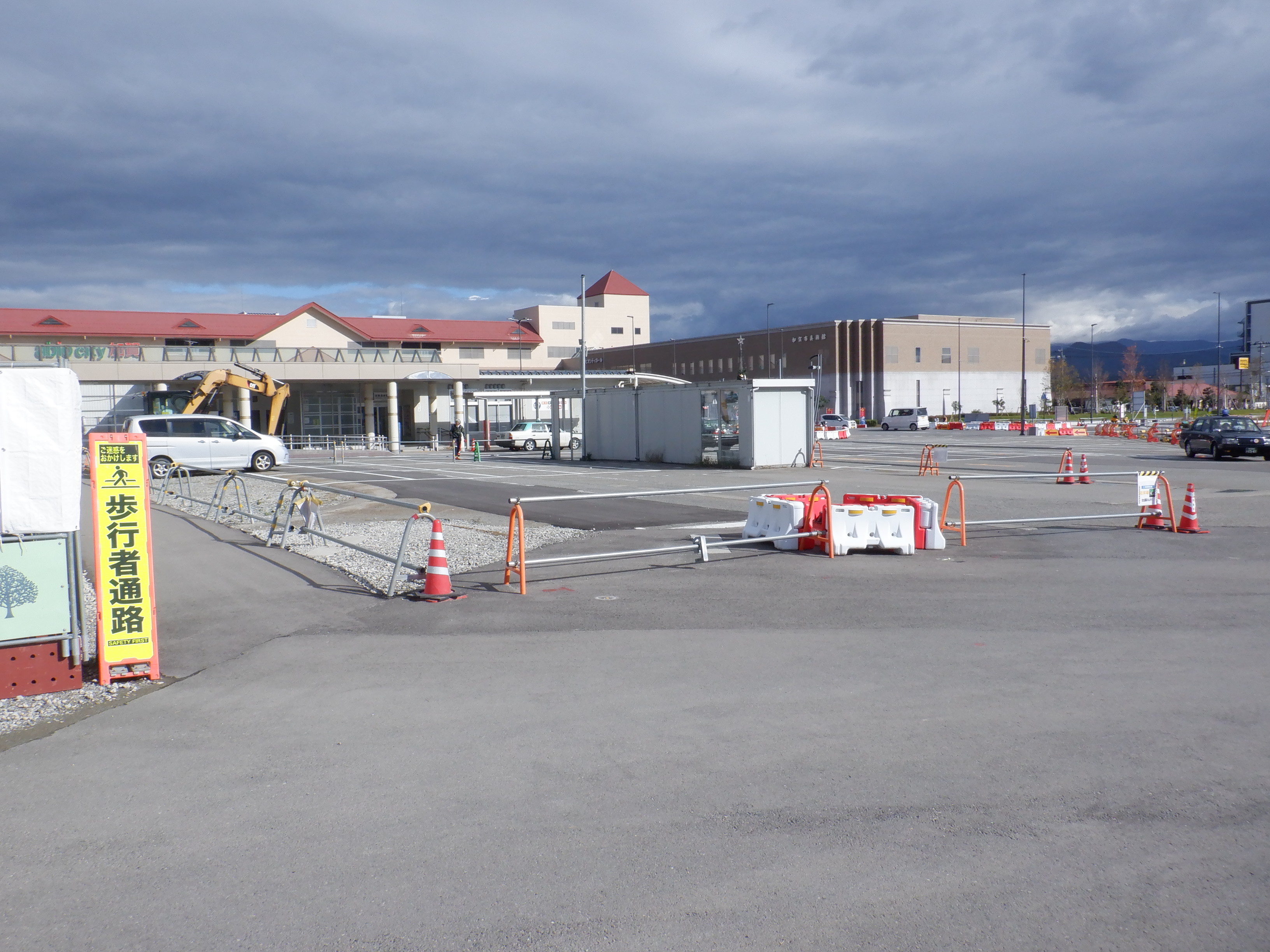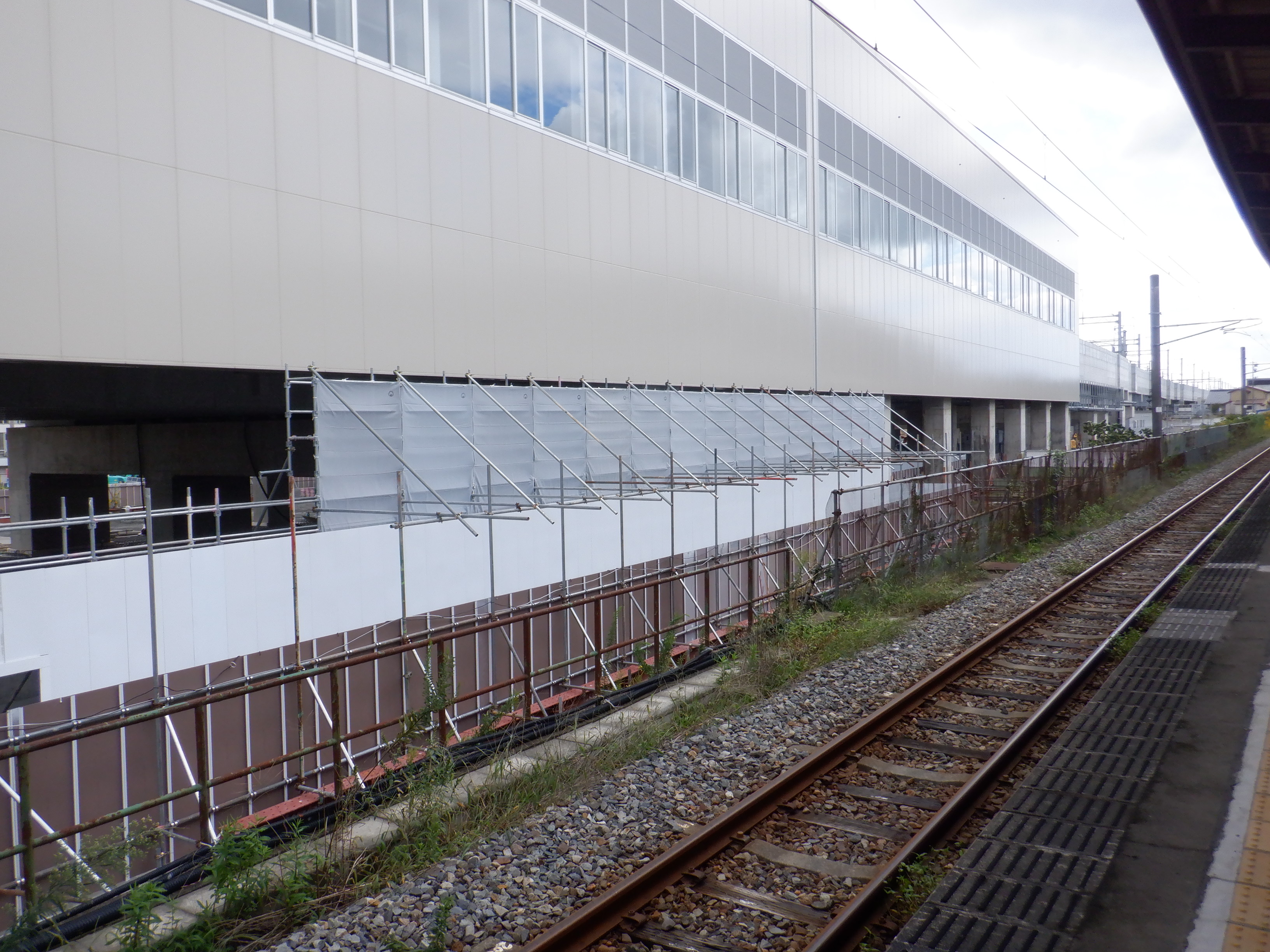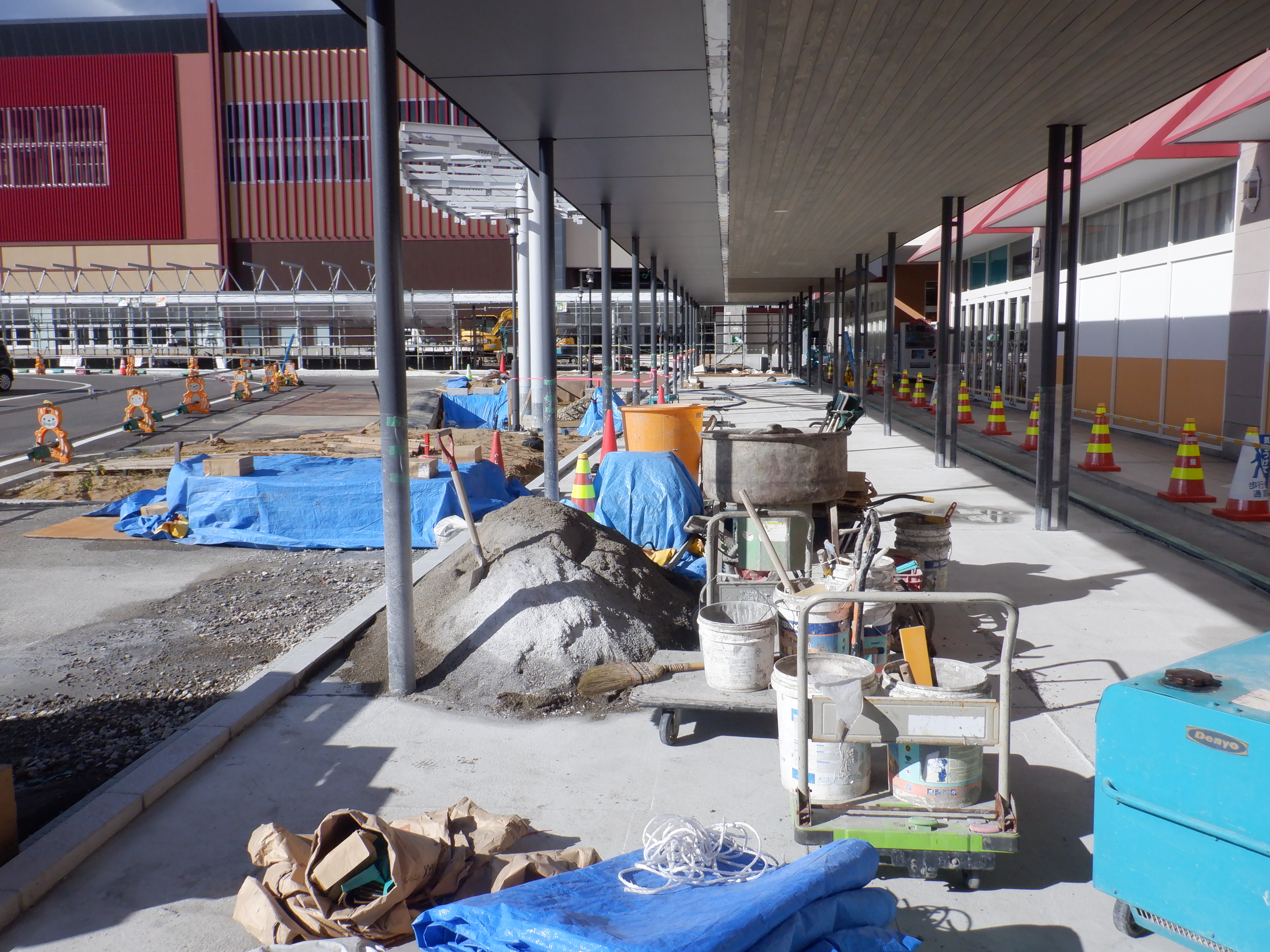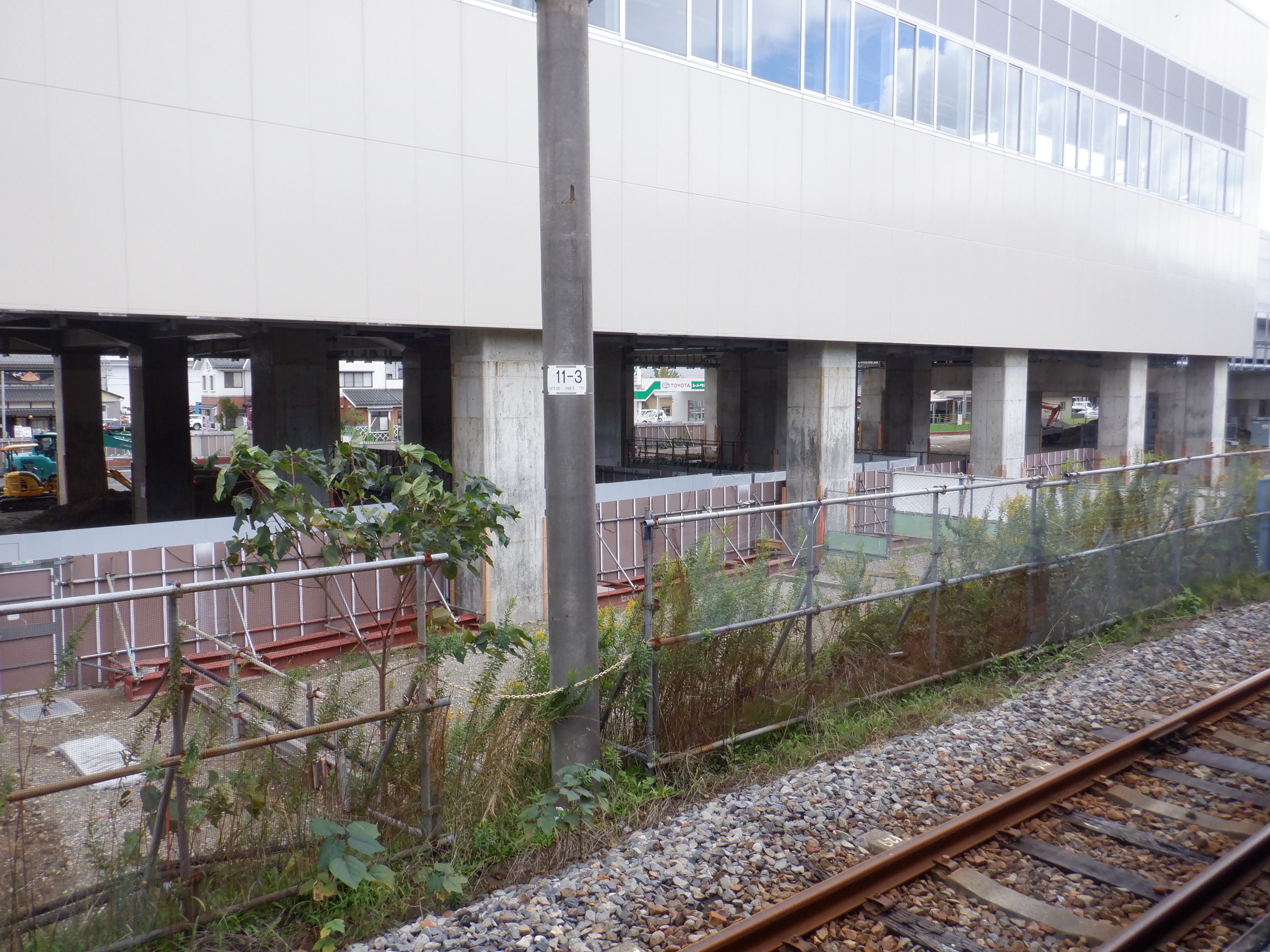 アルプラザ側のシェルター建設中のところと新幹線駅舎。