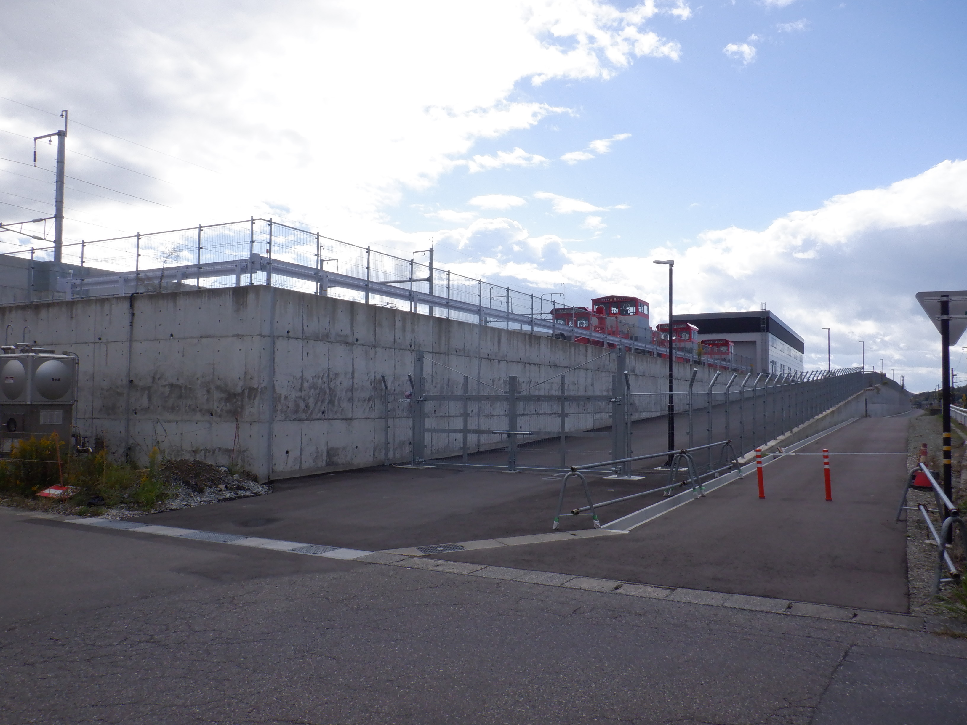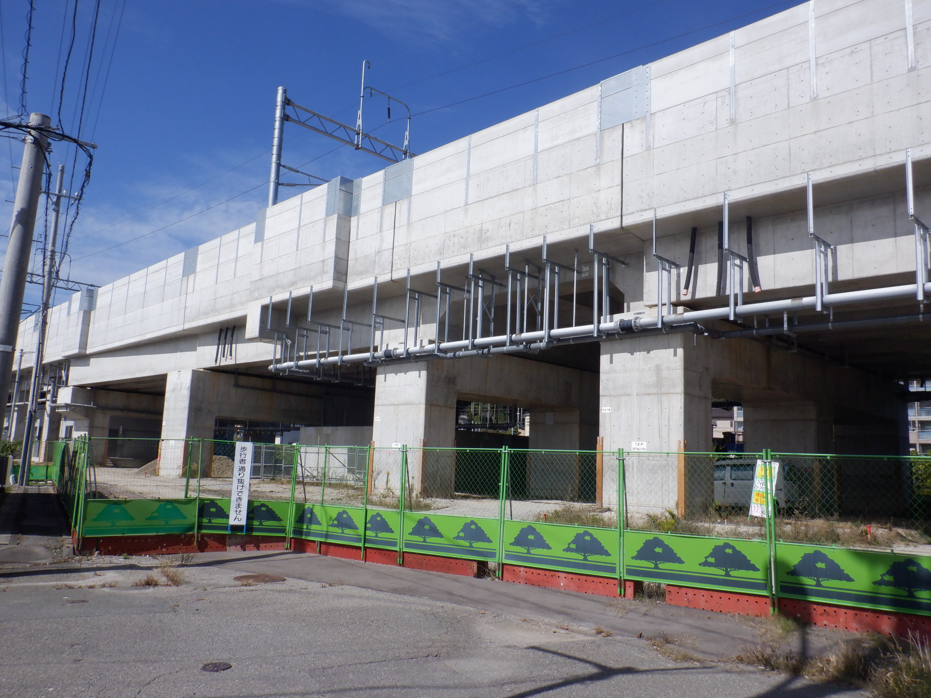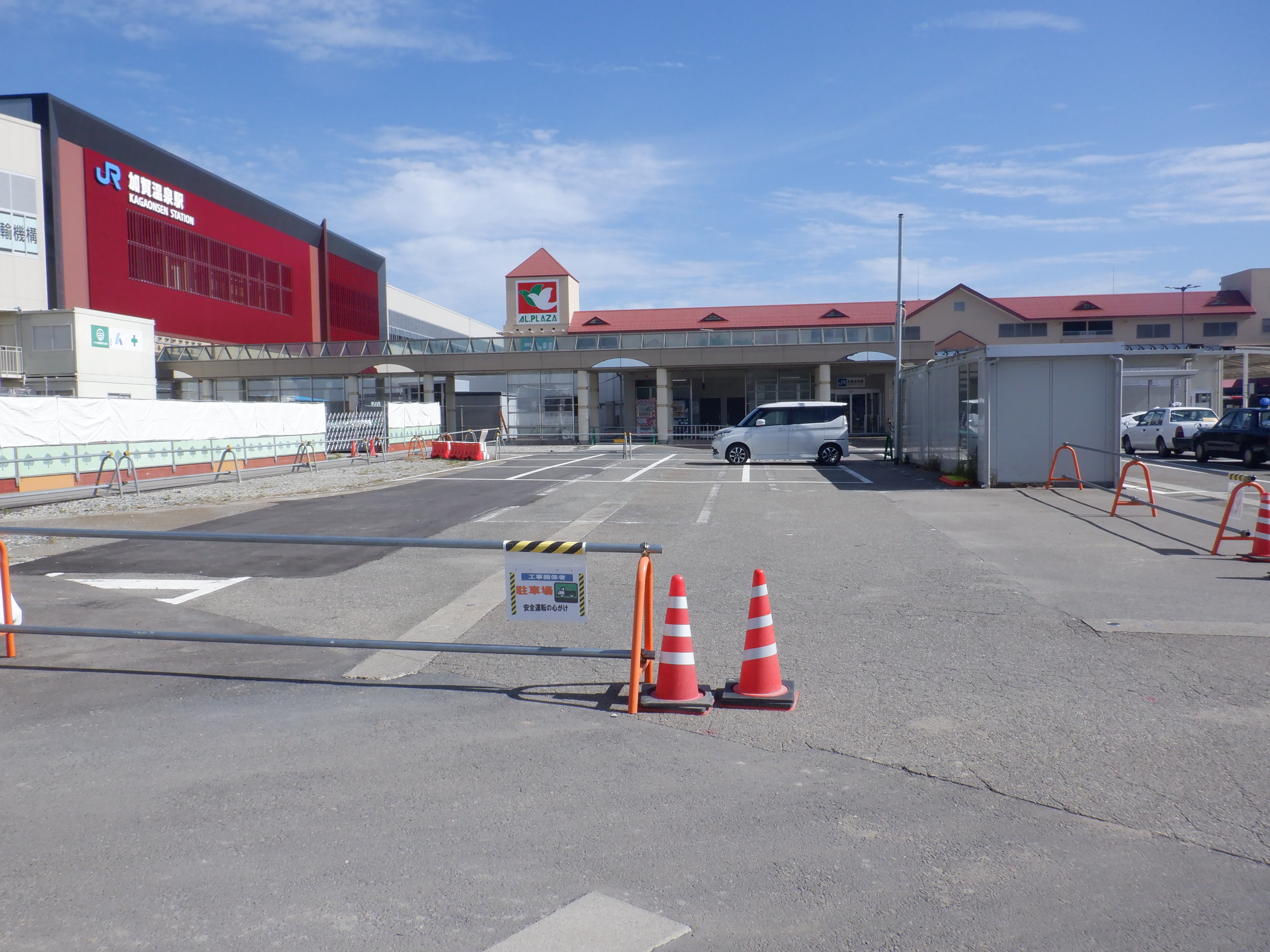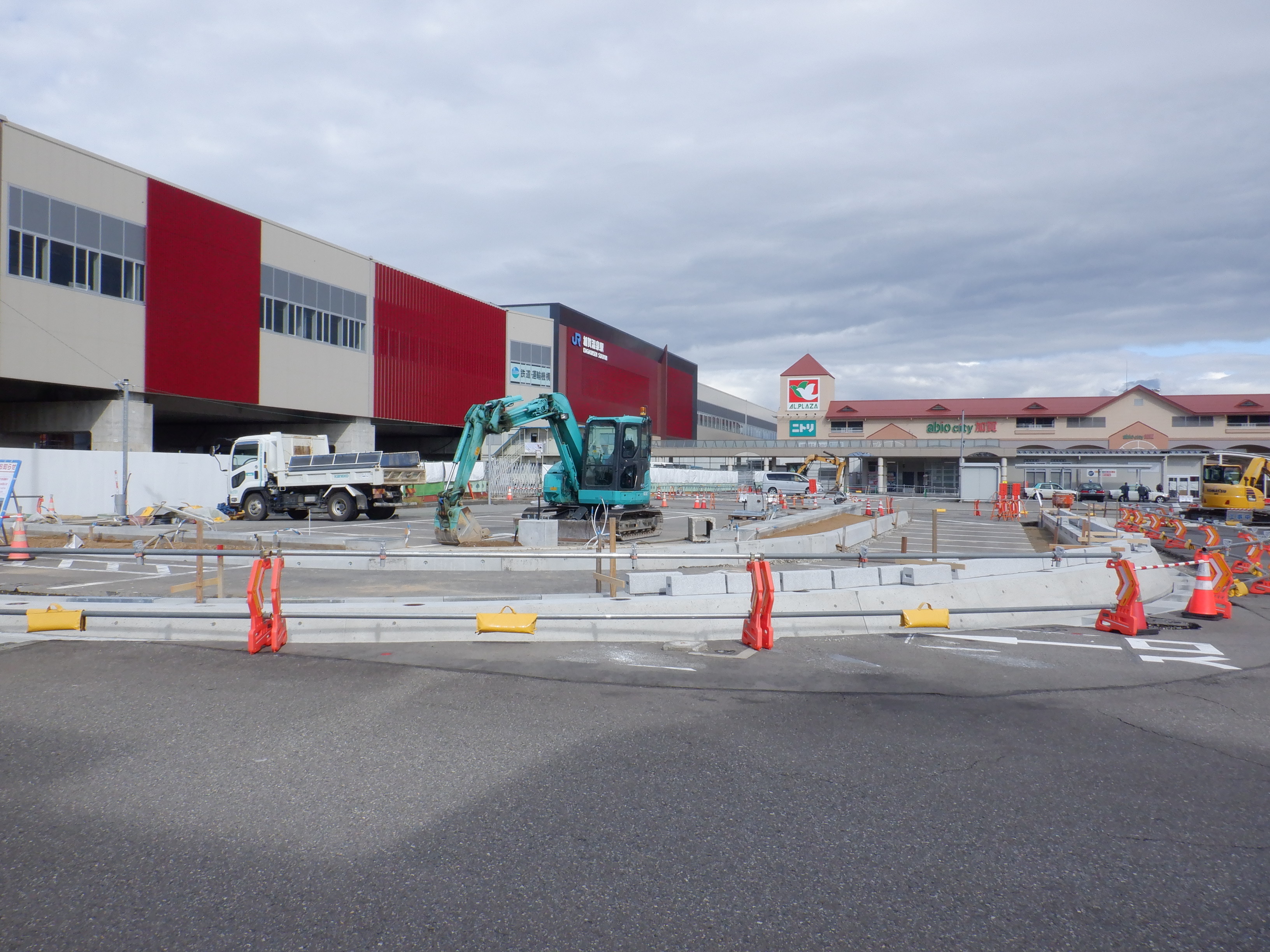 アルプラザ側のシェルター建設中のところと新幹線駅舎。