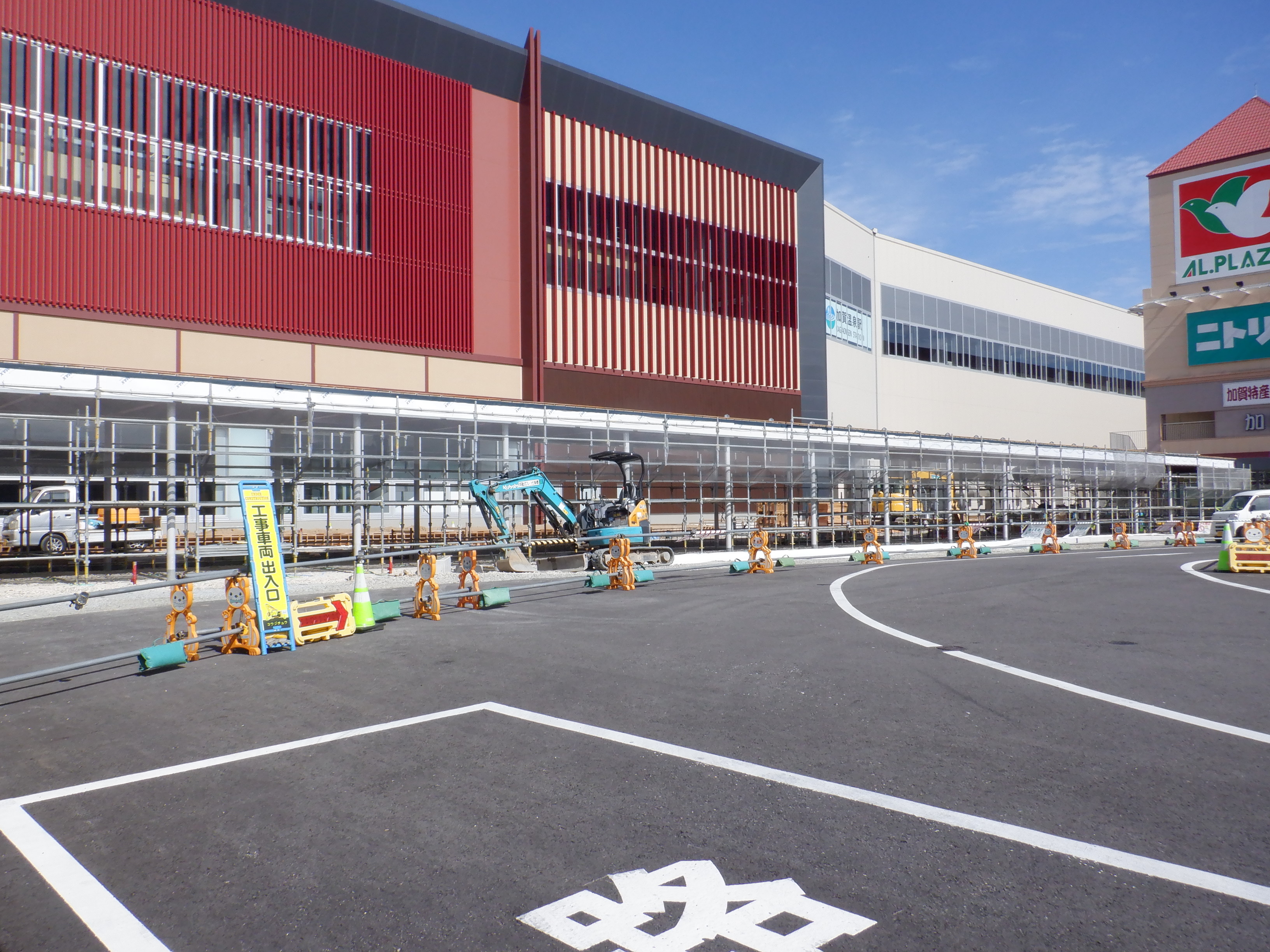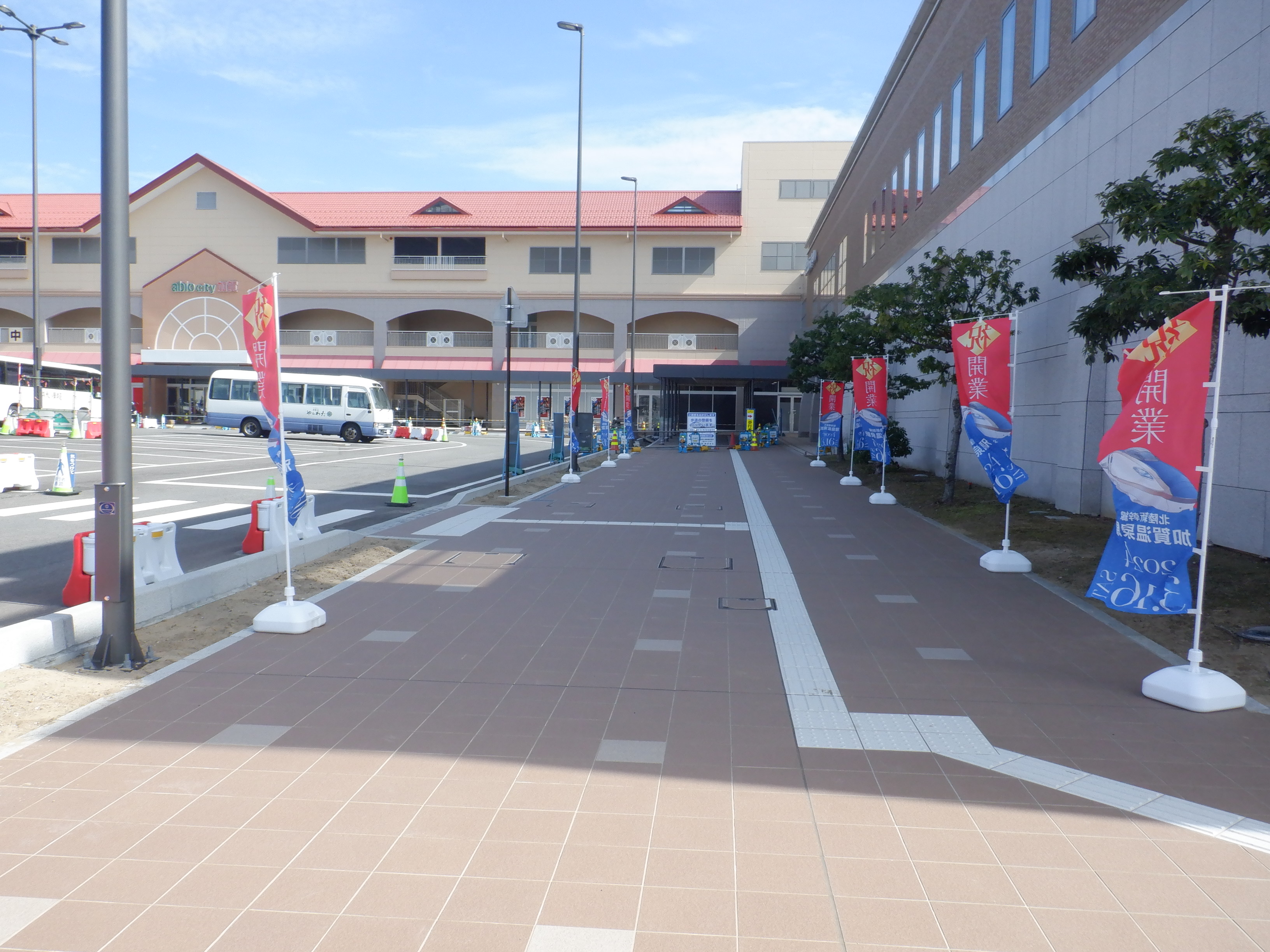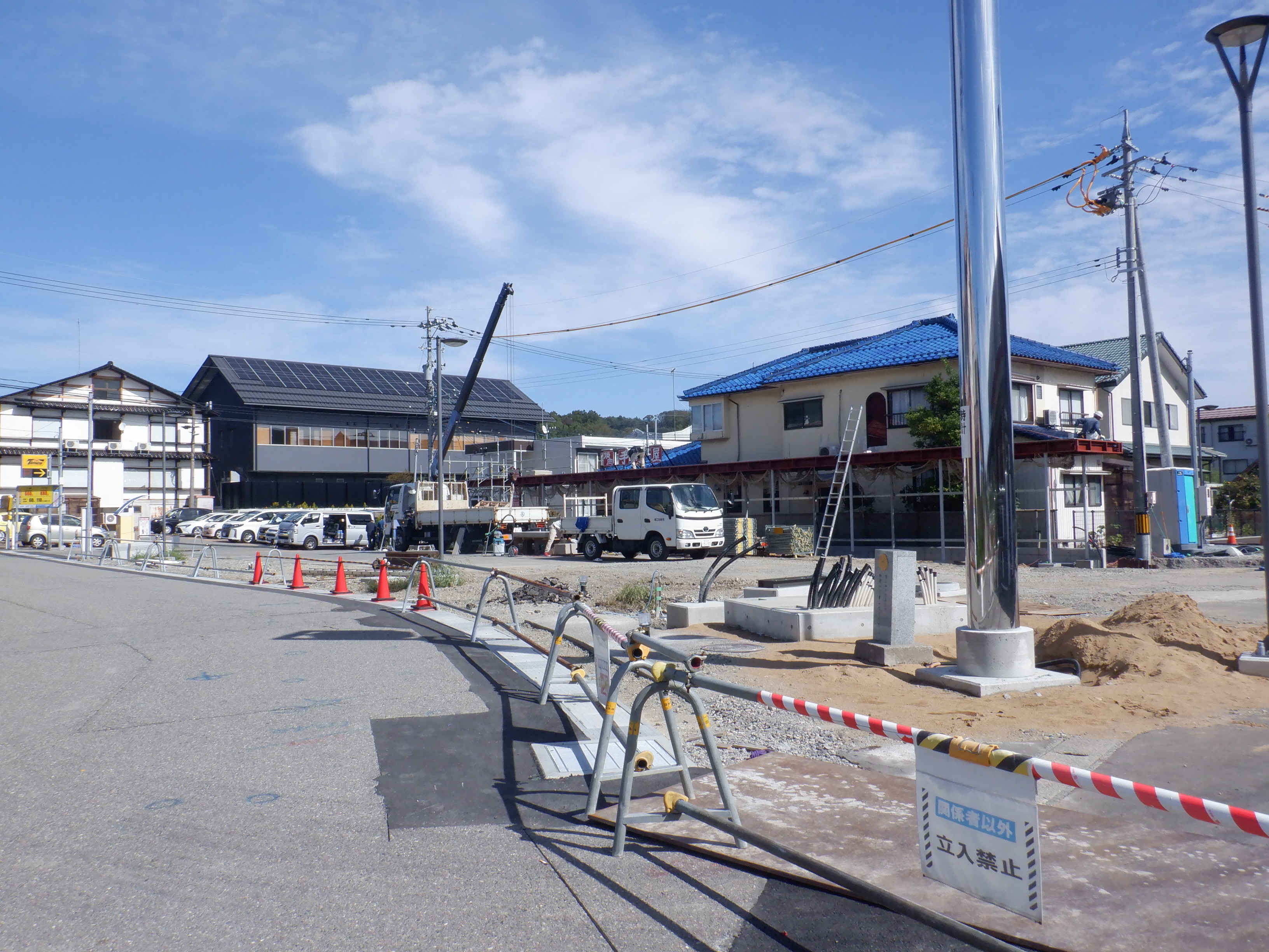 正面付近と、正面の道路のアルプラザ側の歩道が整備されたところ。
