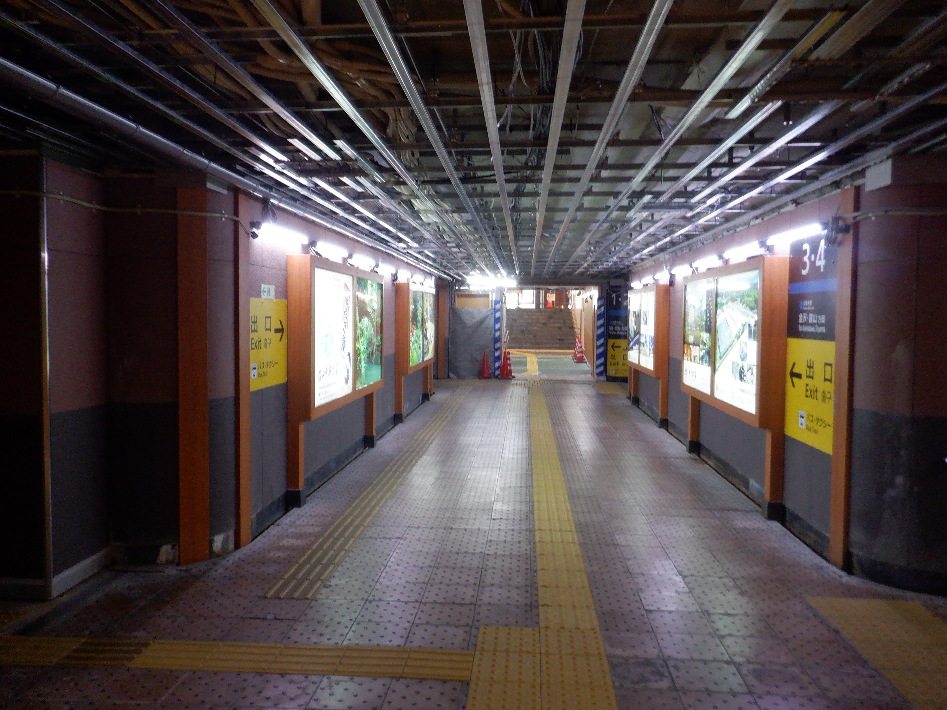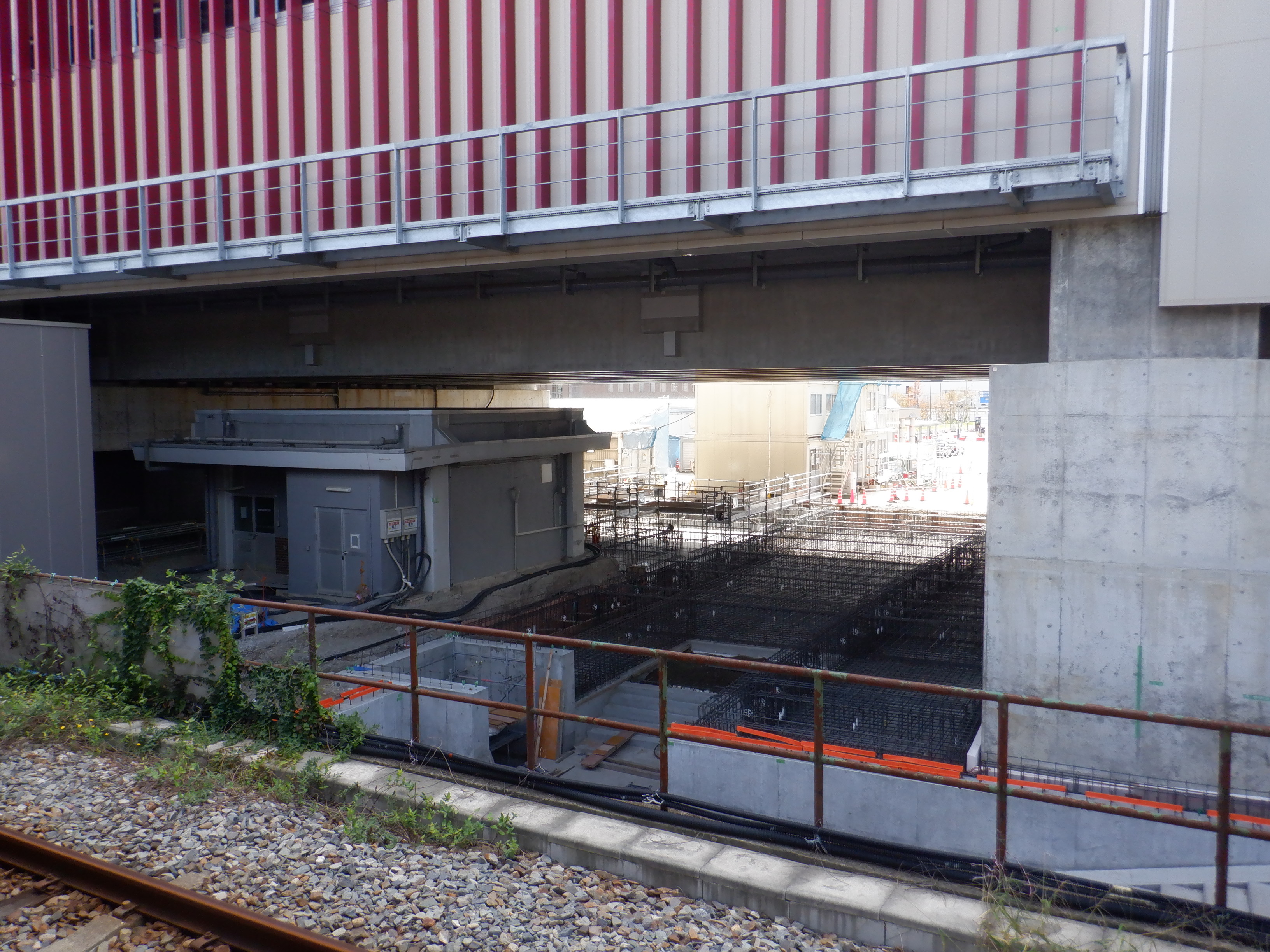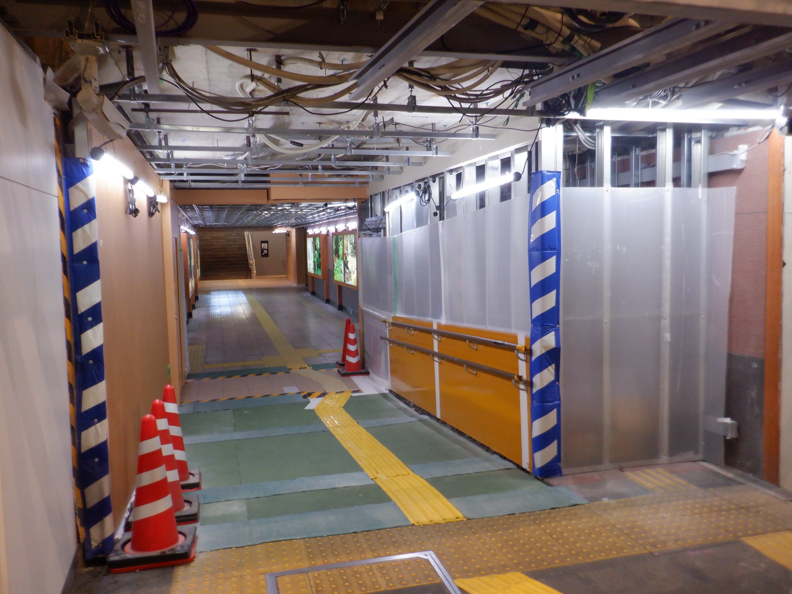 3・4番のりばから見た地下自由通路を再建設中のところ。