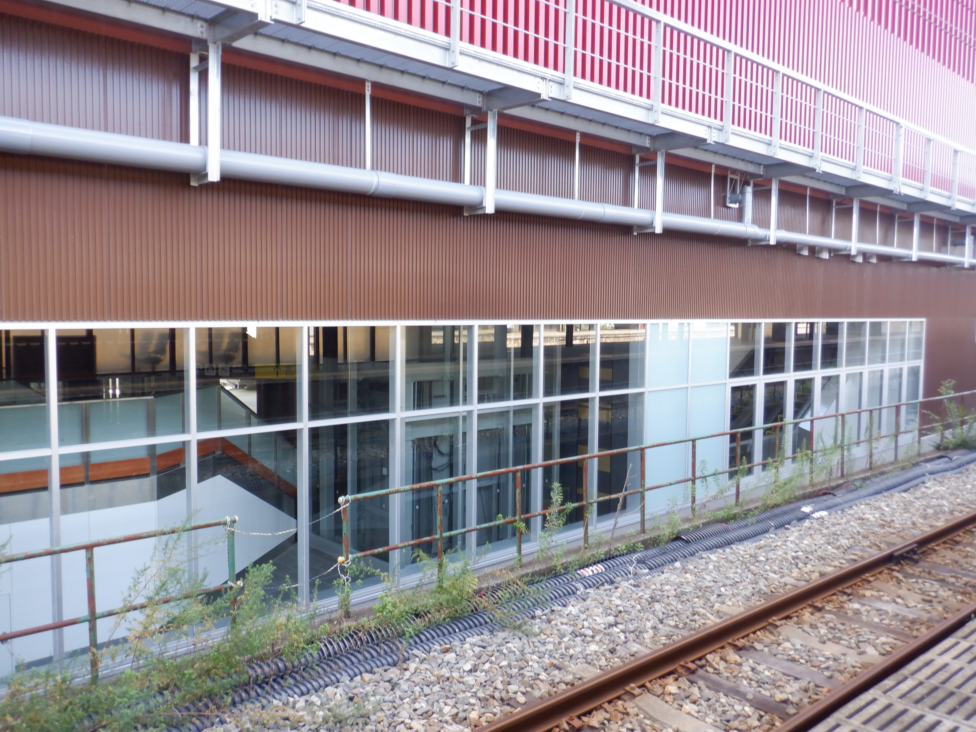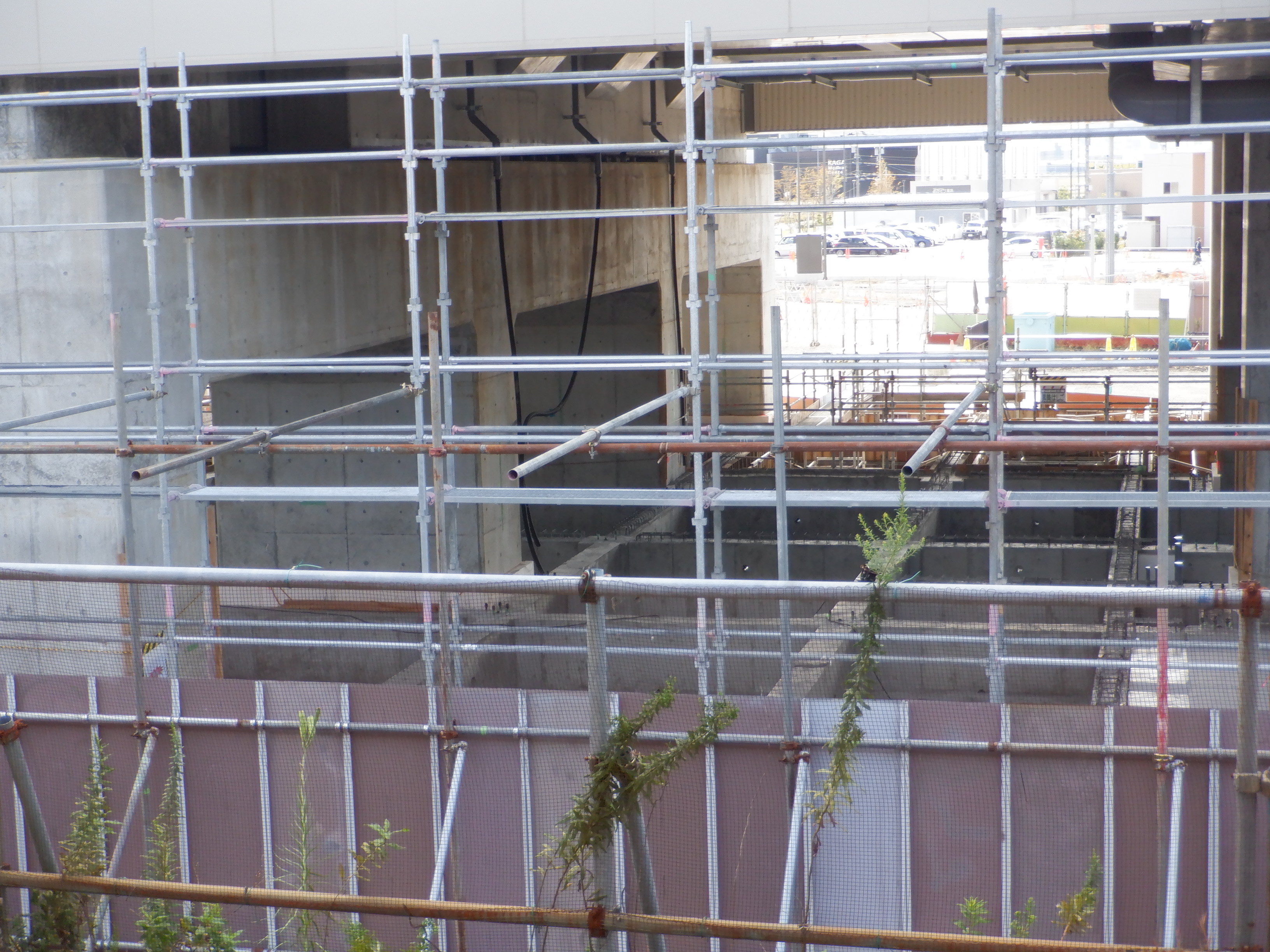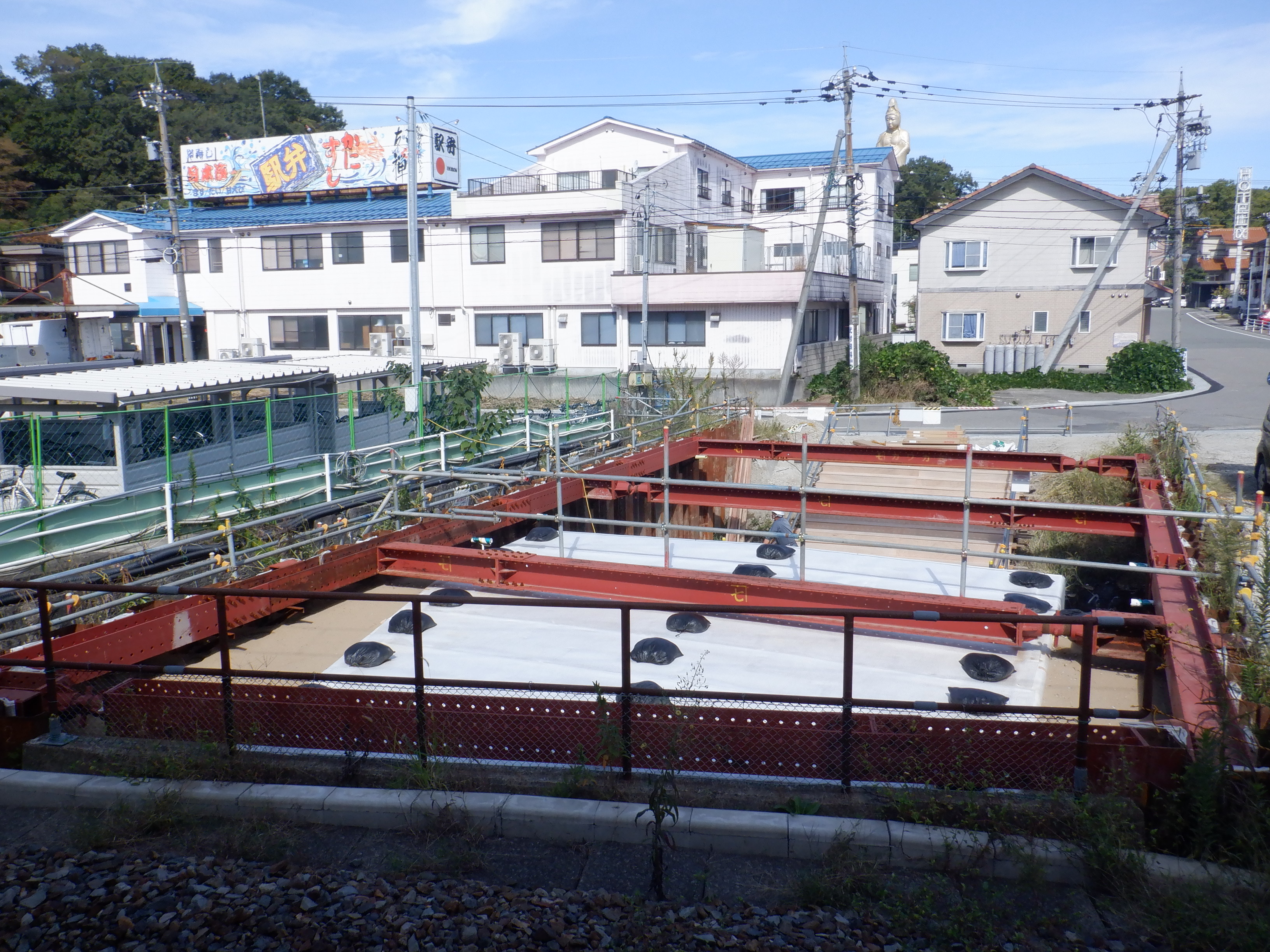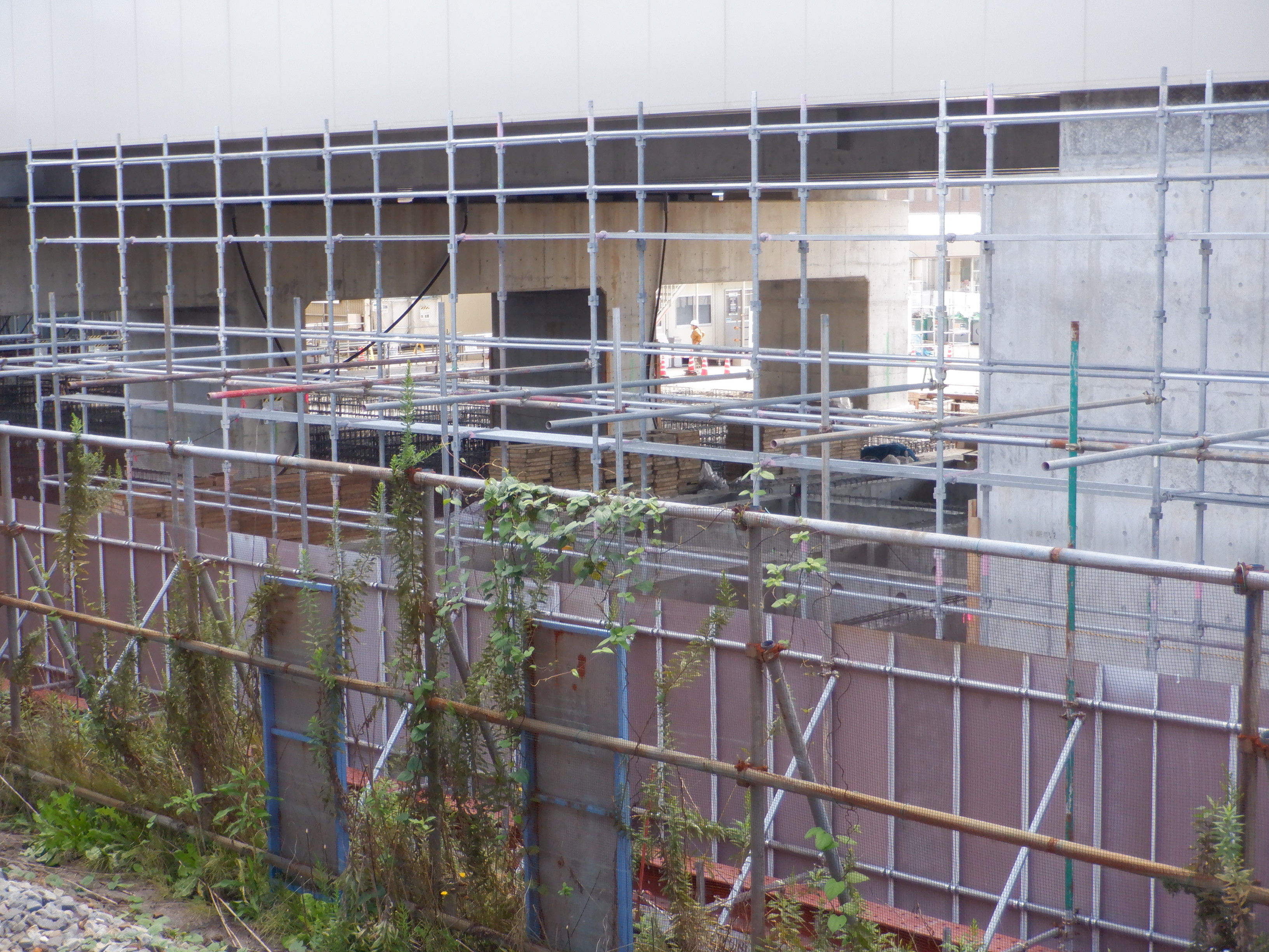 1・2番のりばから見た地下自由通路を再建設中のところとコンビニ・待合室等を建設中のところ。囲いができはじめています。