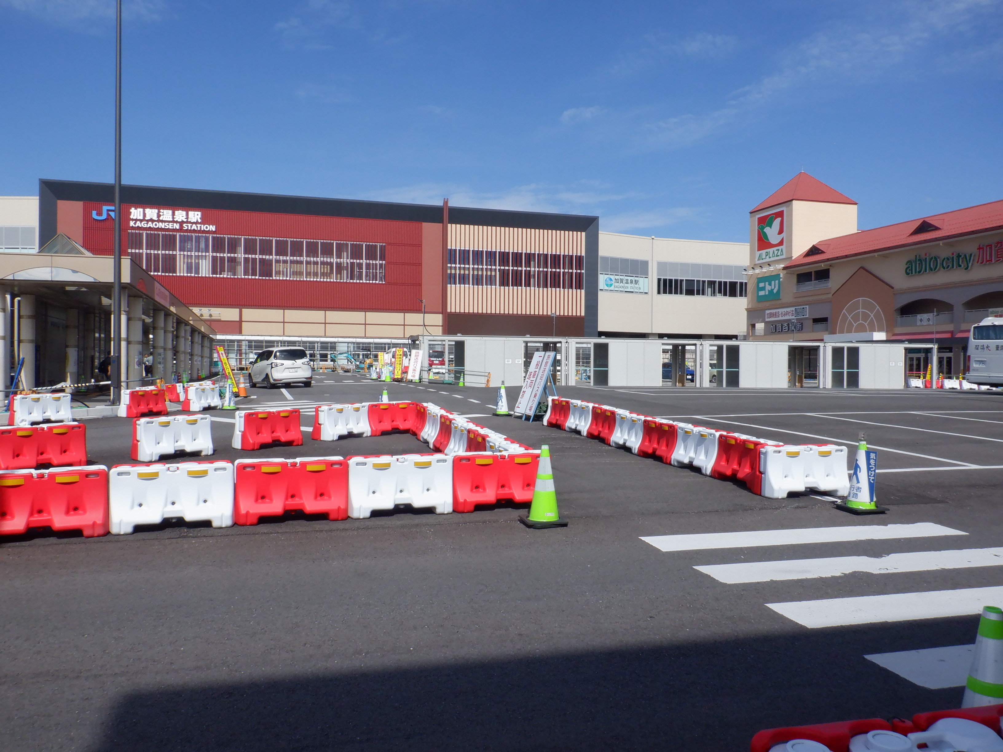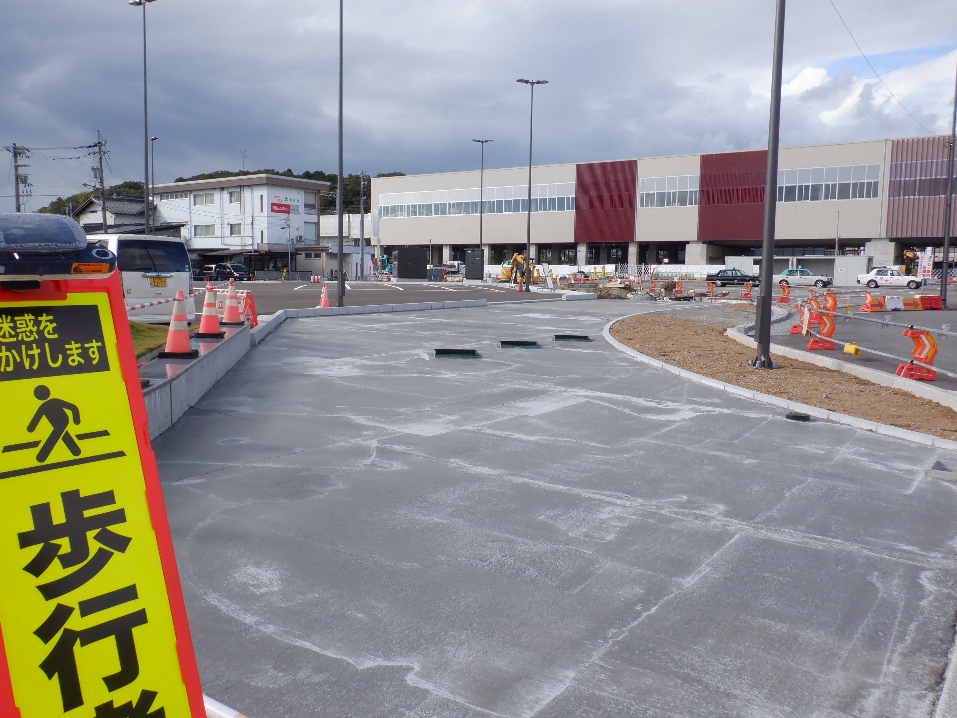 コンビニ・待合室等の前と仮設バスのりばだったところ。