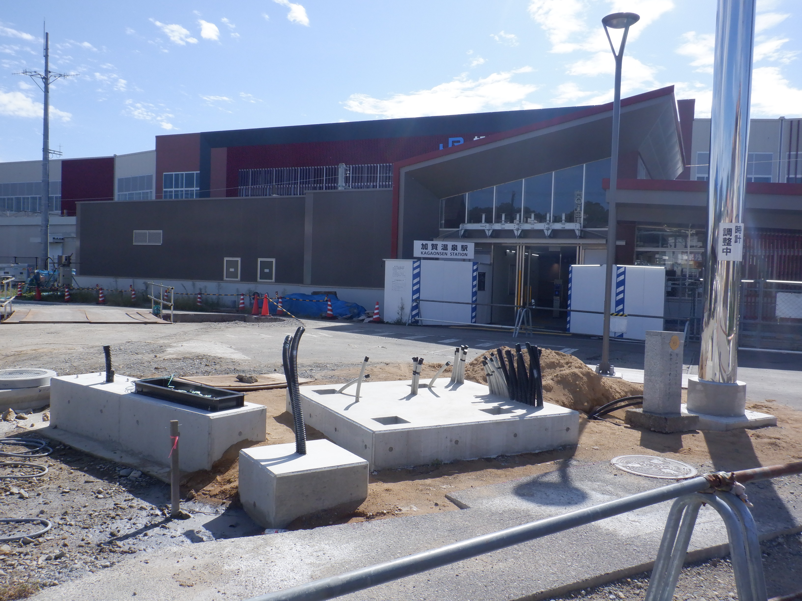 IRいしかわ鉄道の改札口となるところ。券売機が設置されるところも分かるようになってきました。