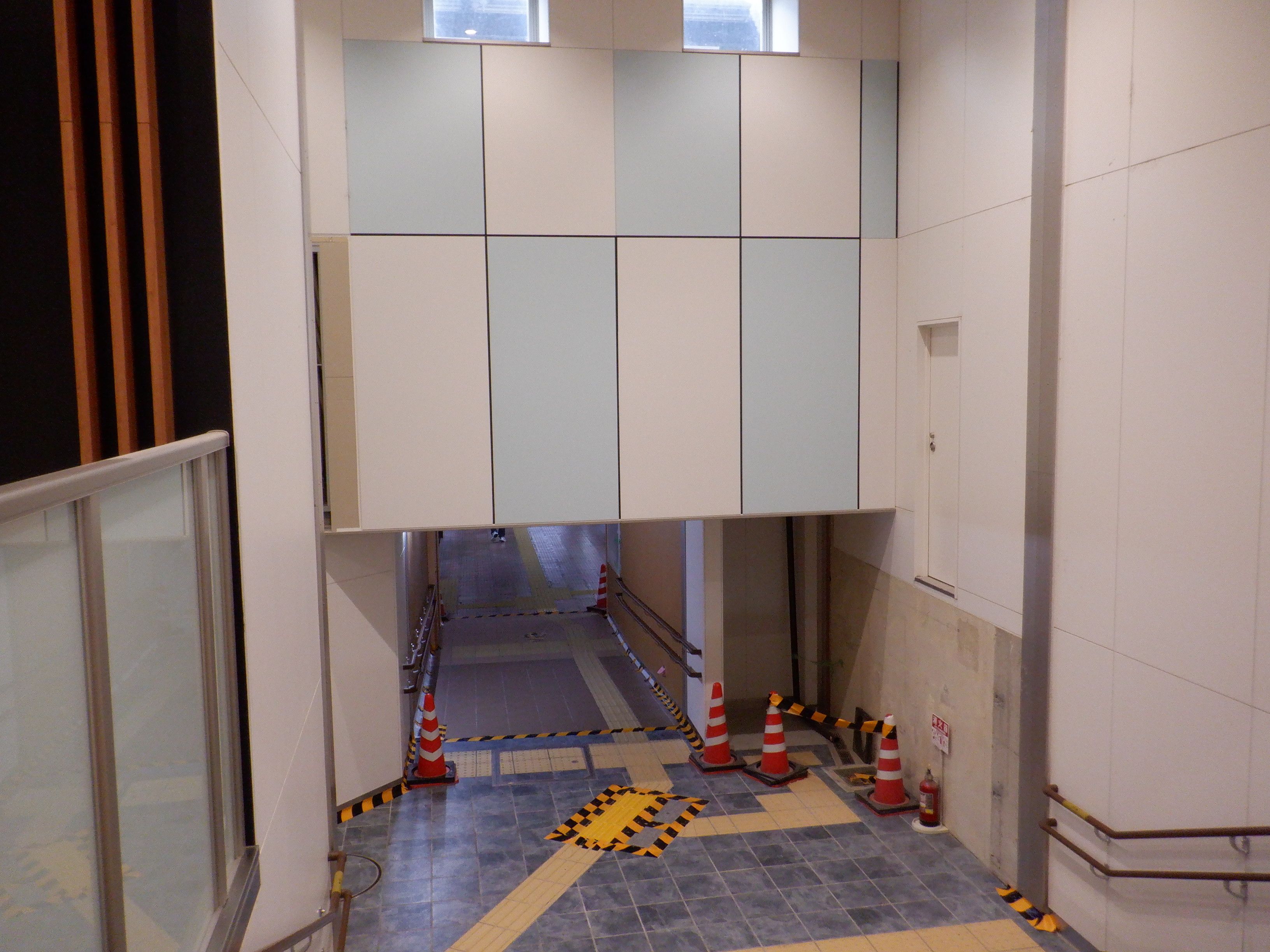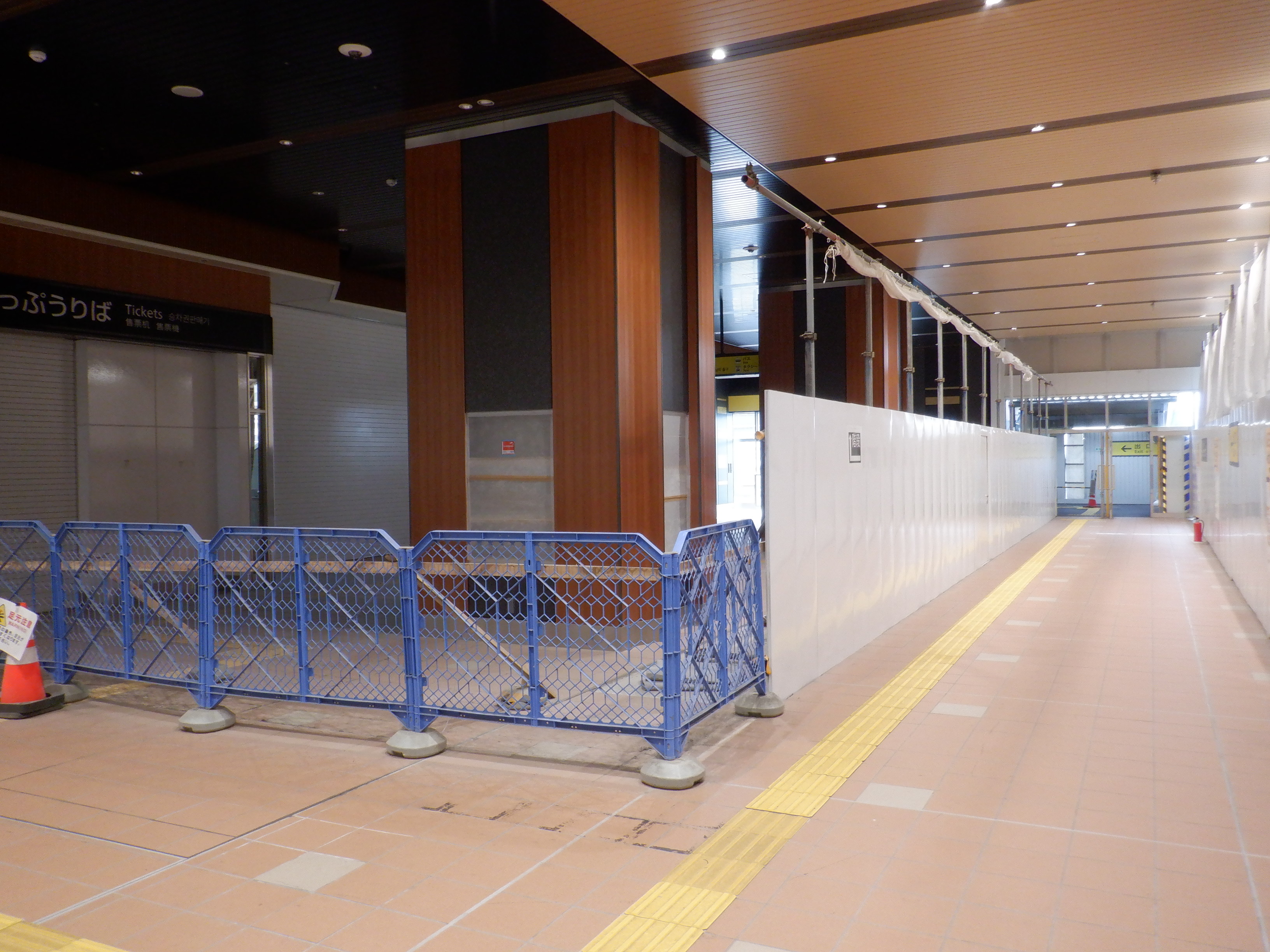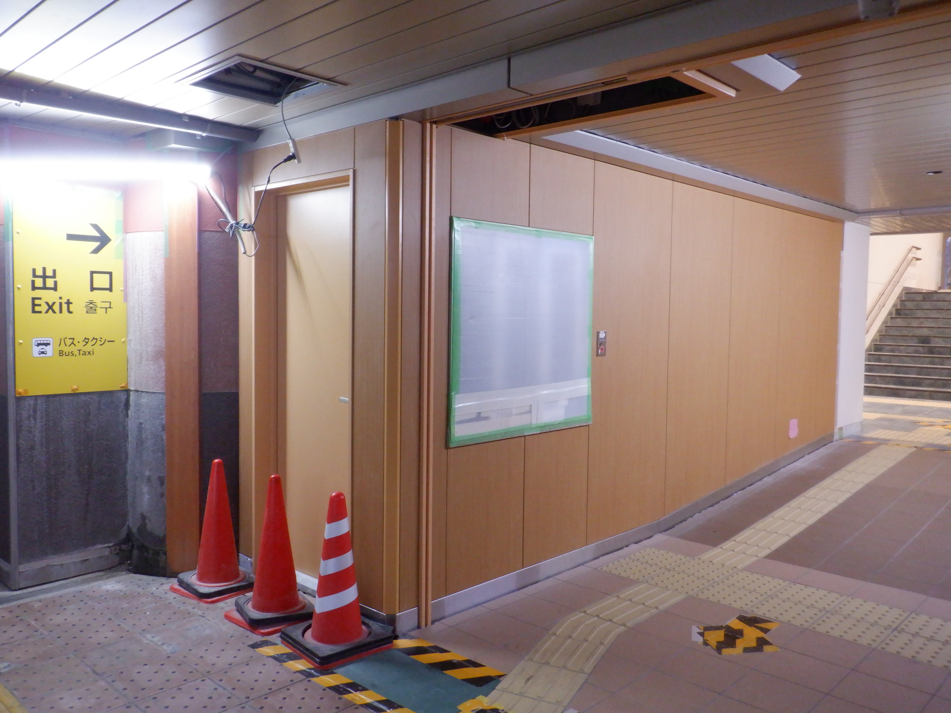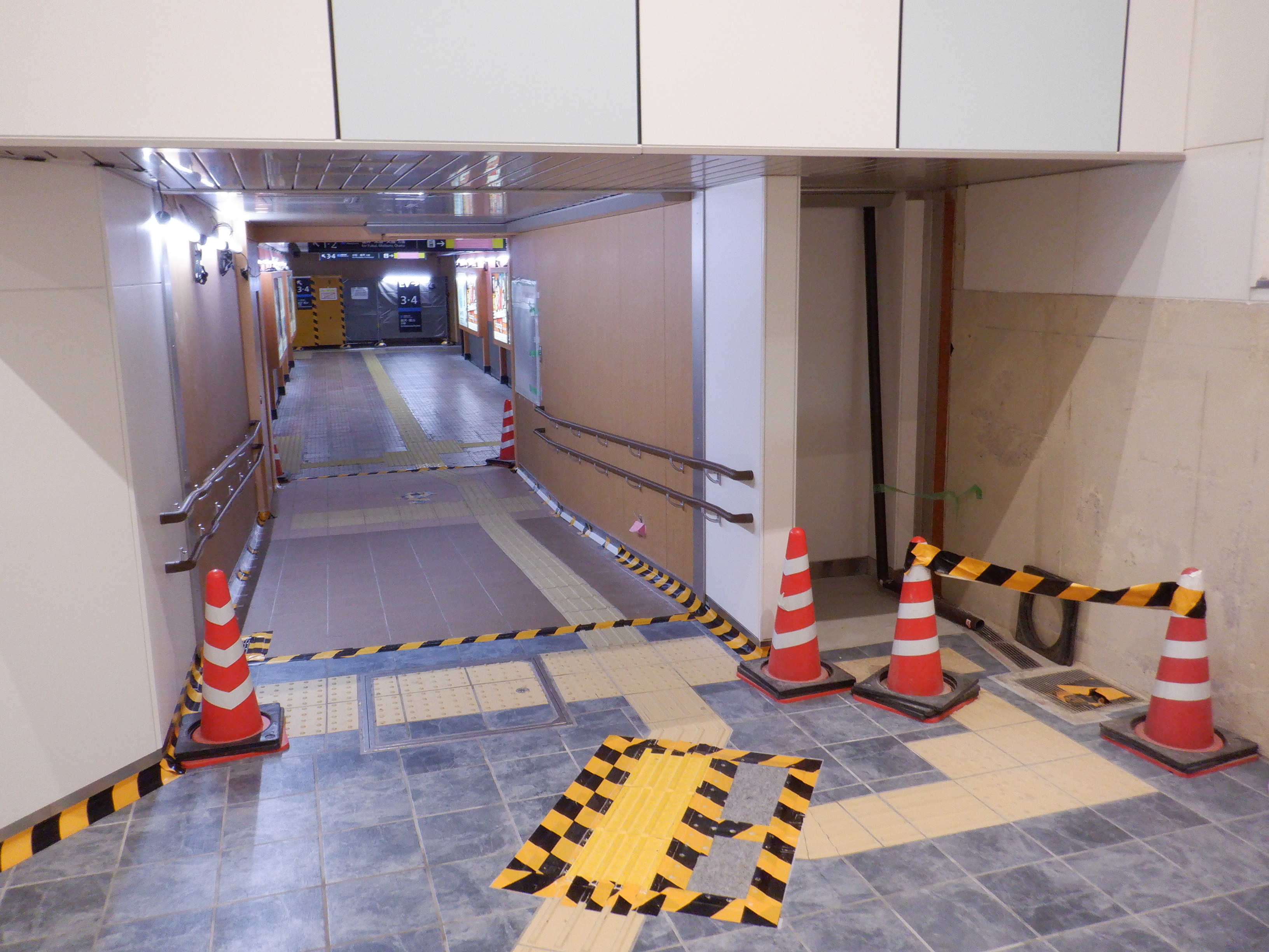 3・4番のりばから見た地下道の仮設出入口付近。