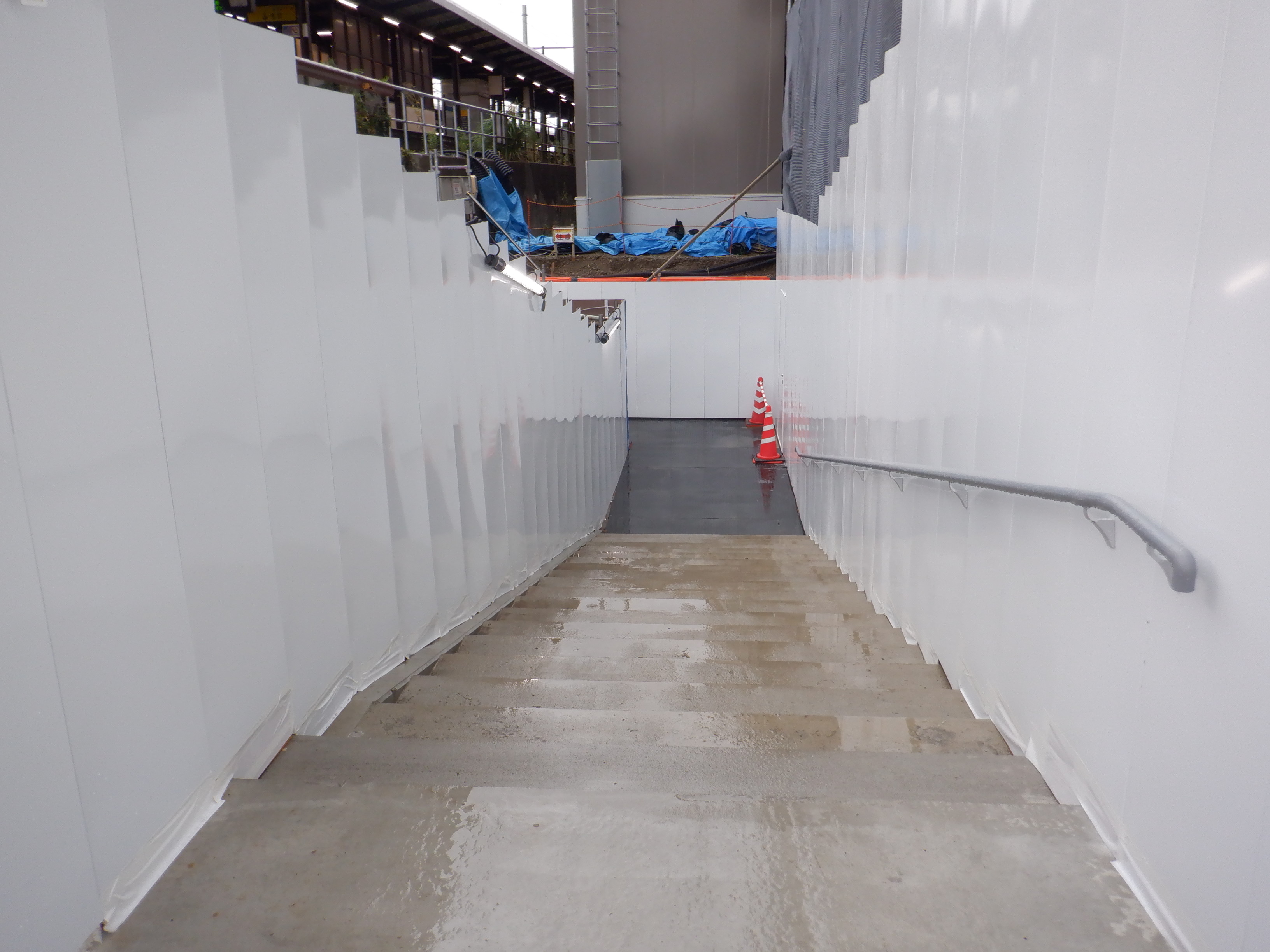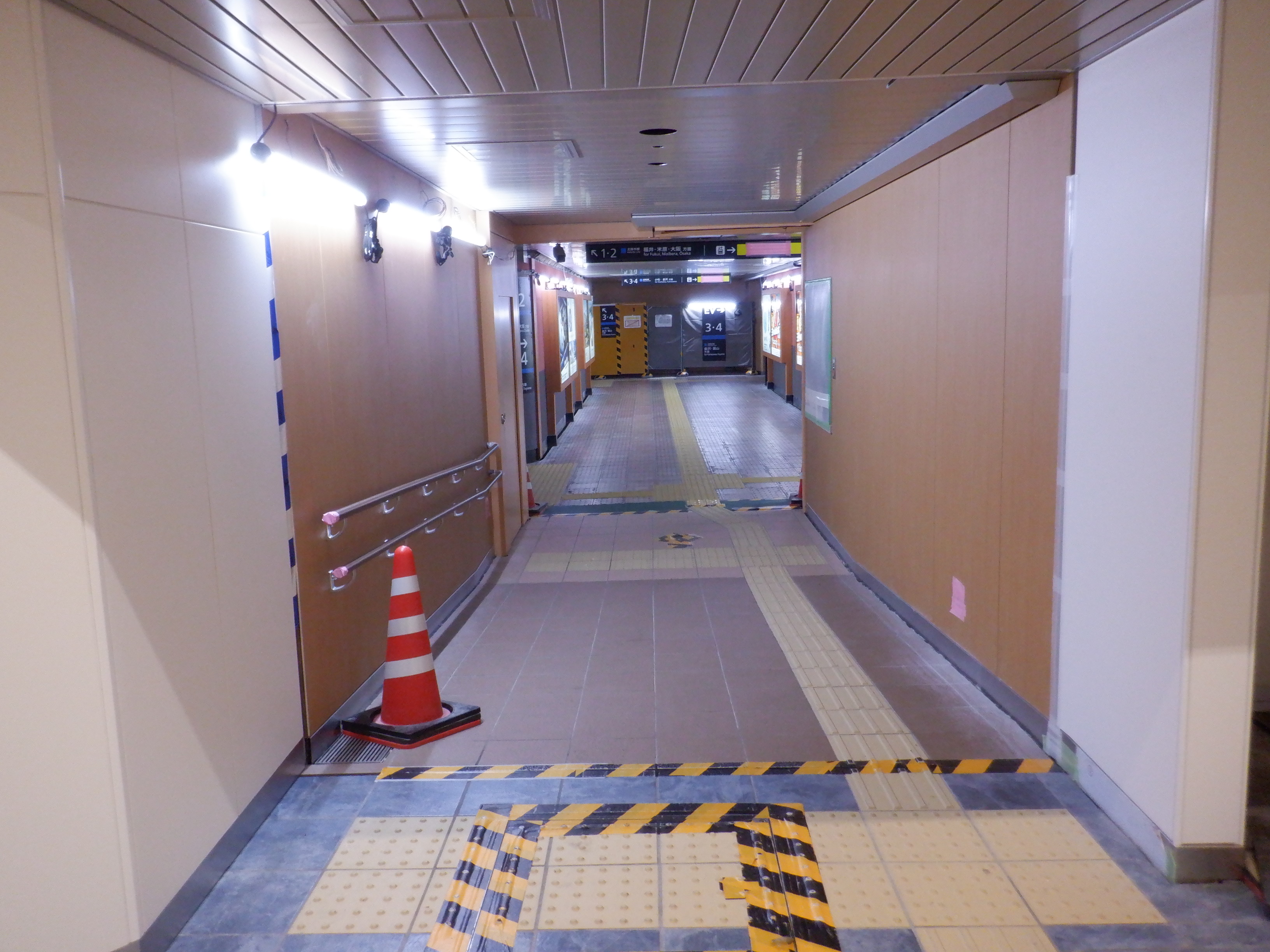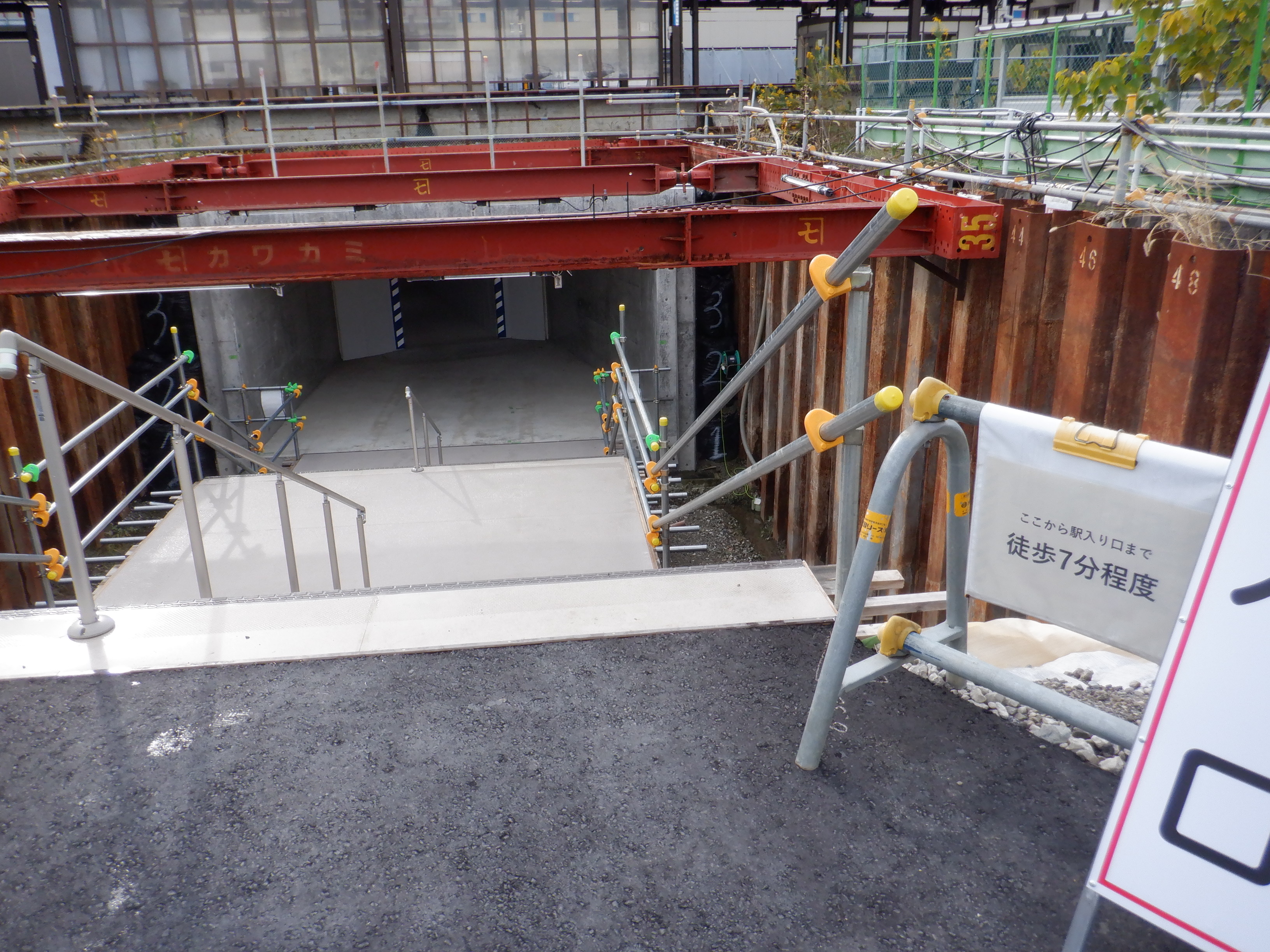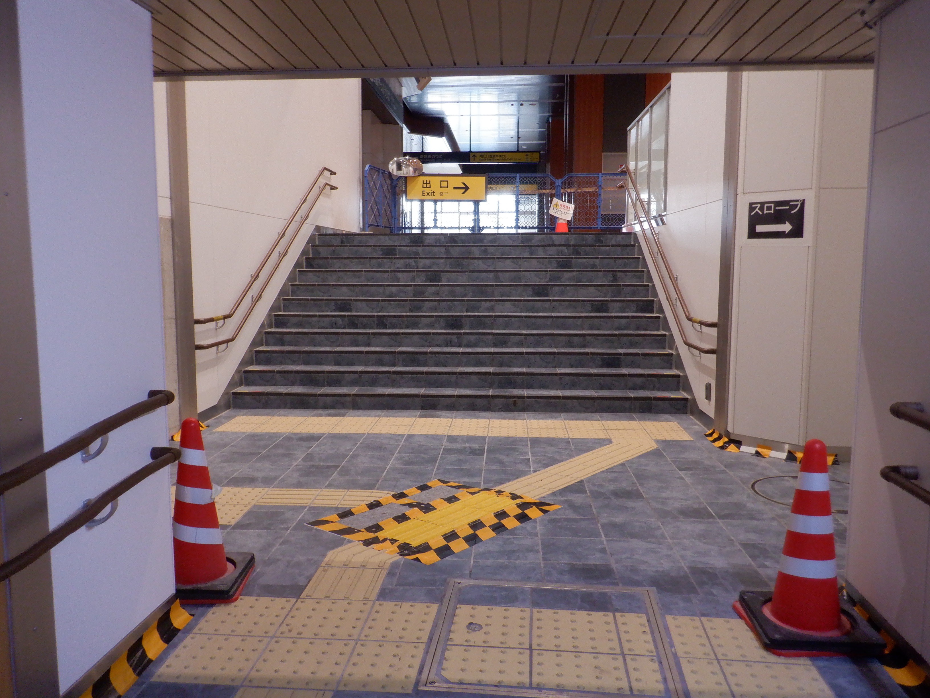 3・4番のりばから見た地下道の仮設出入口付近。