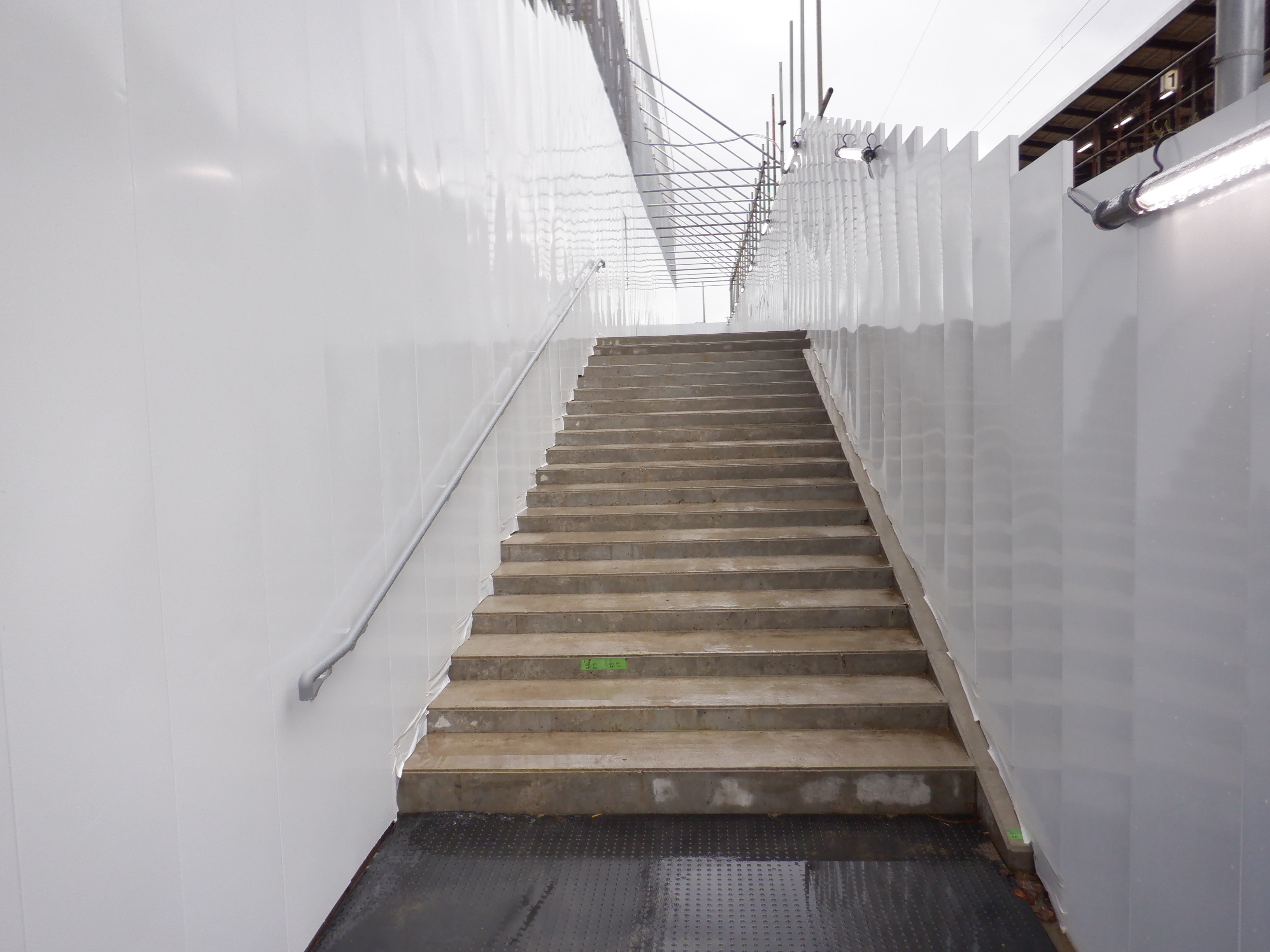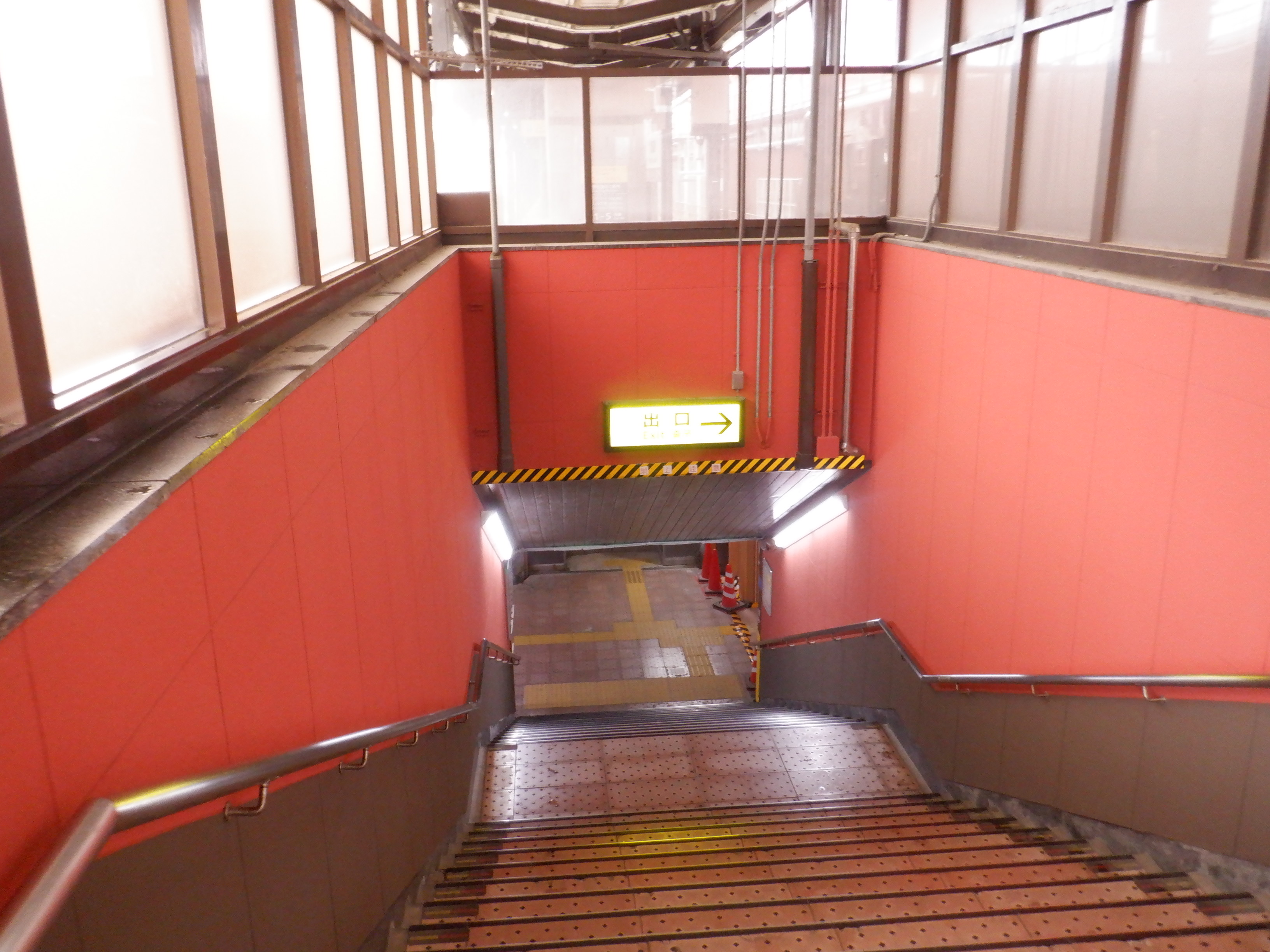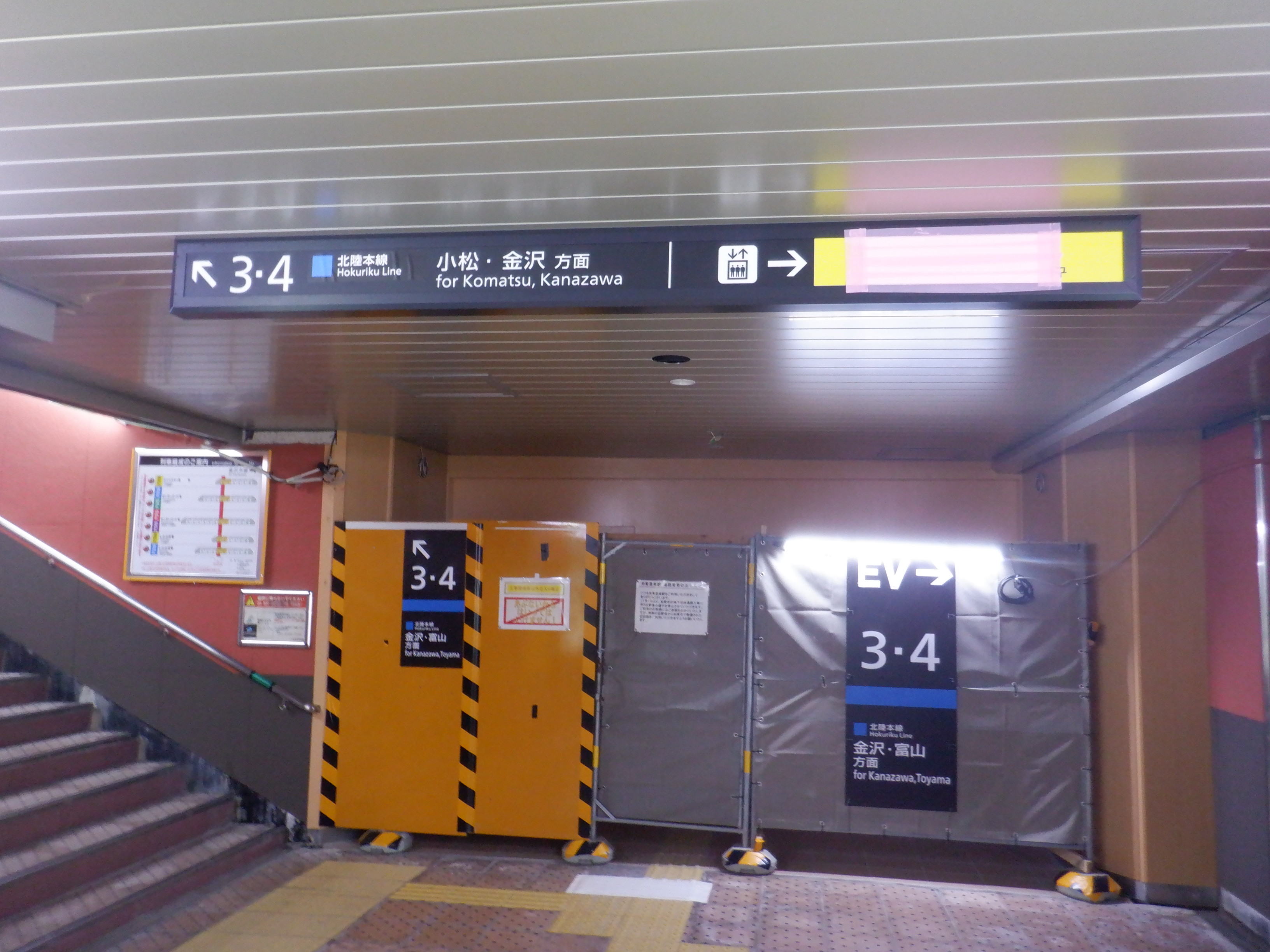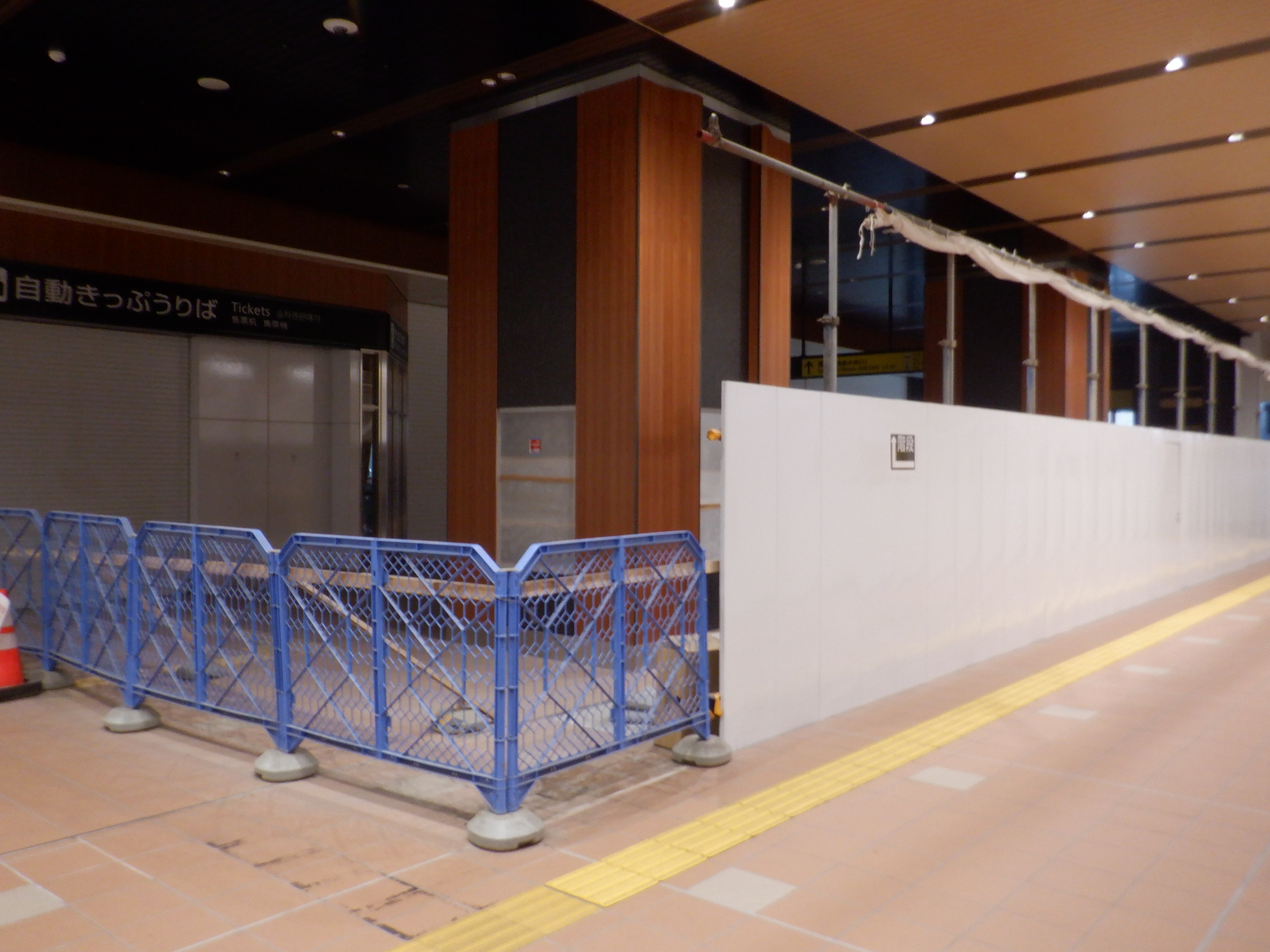 3・4番のりばから見た地下道の仮設出入口付近。