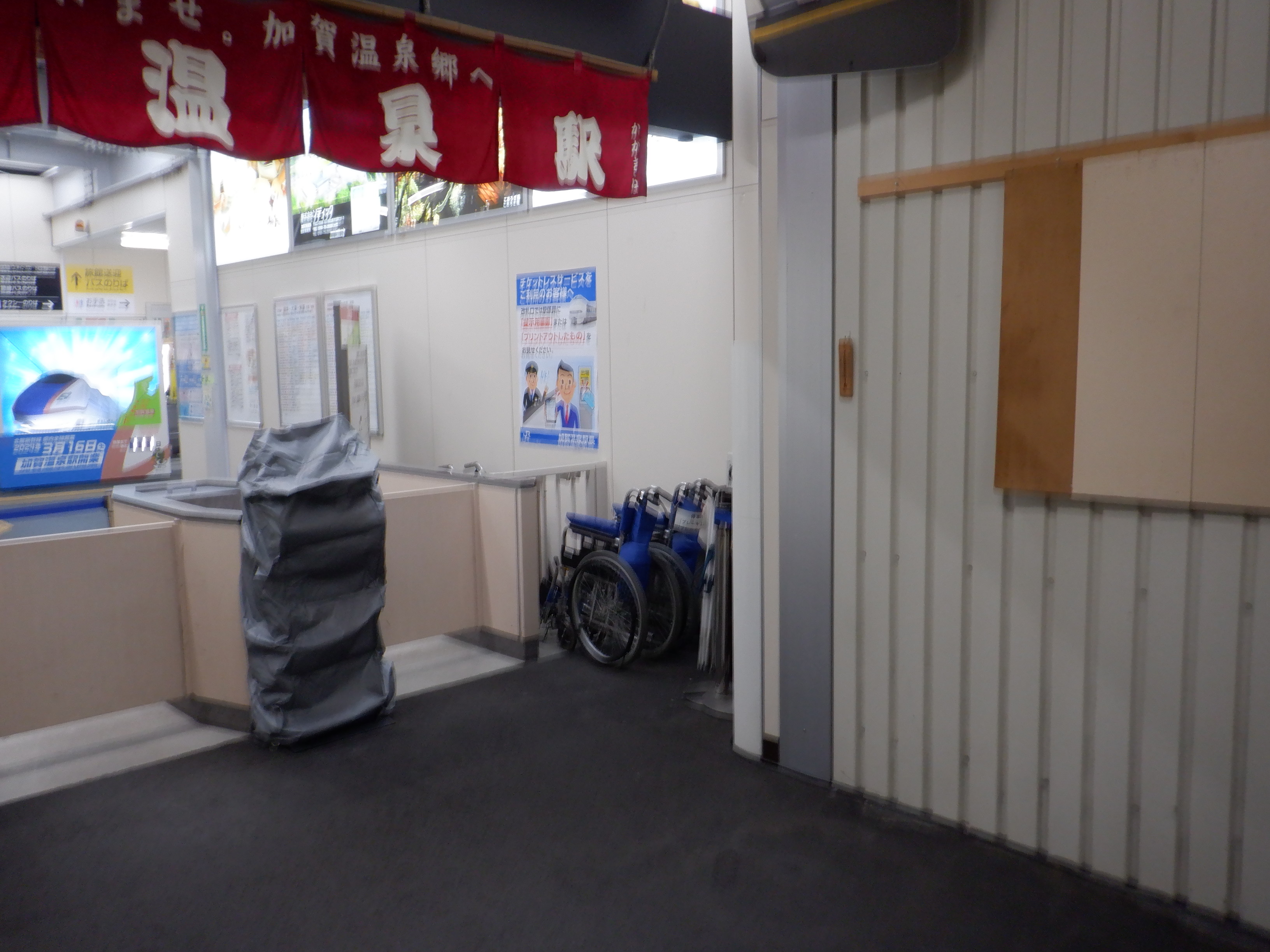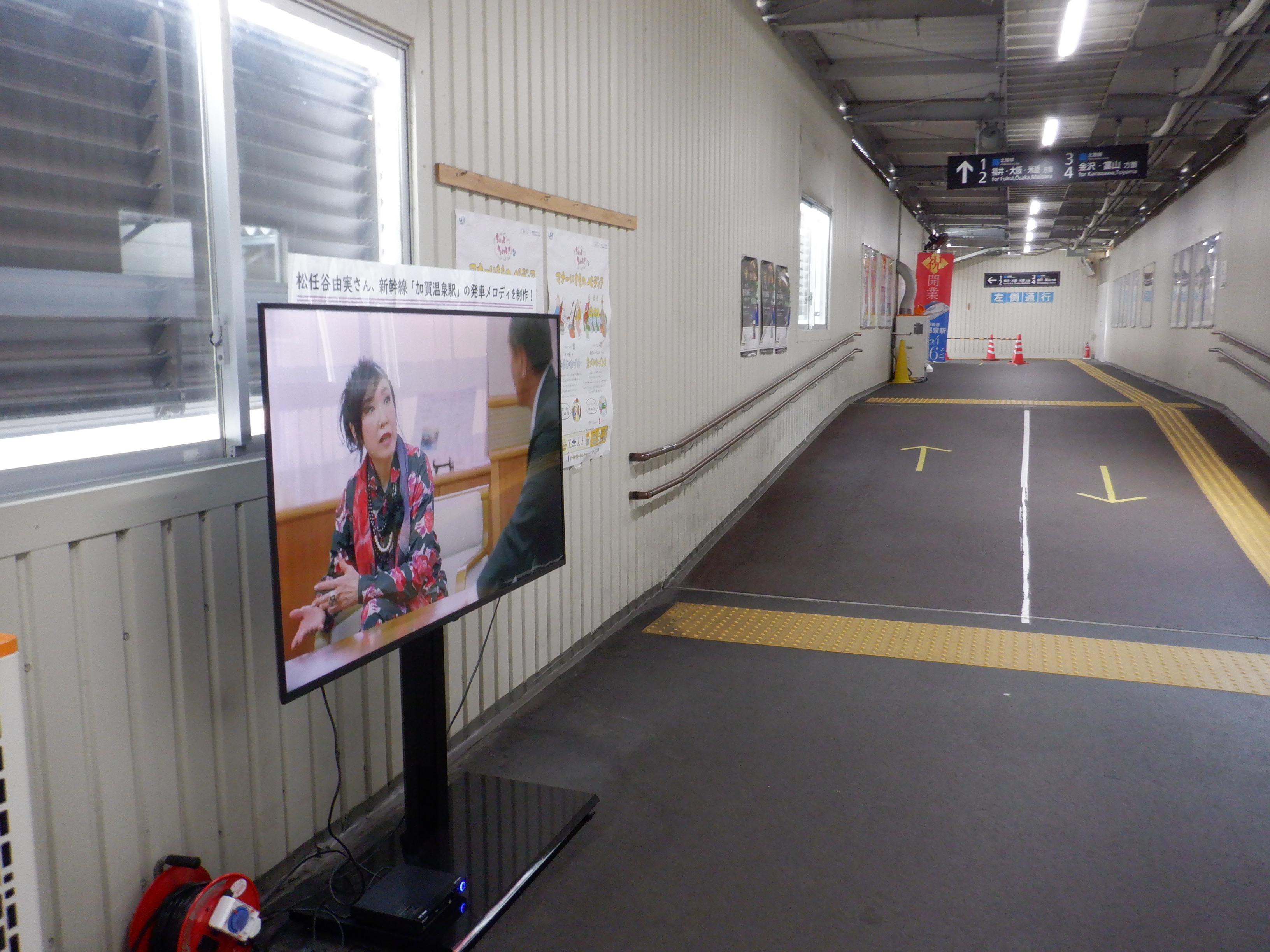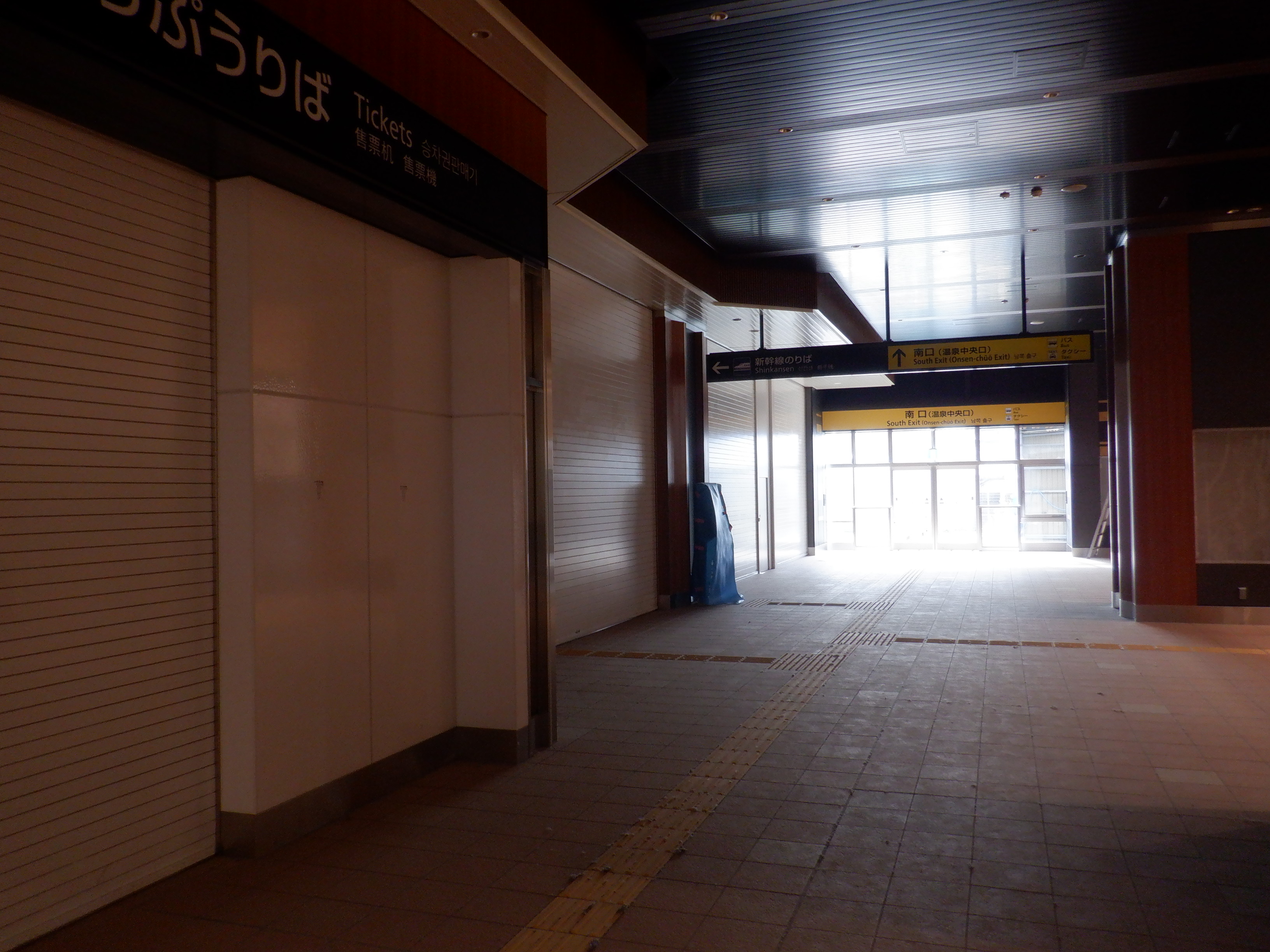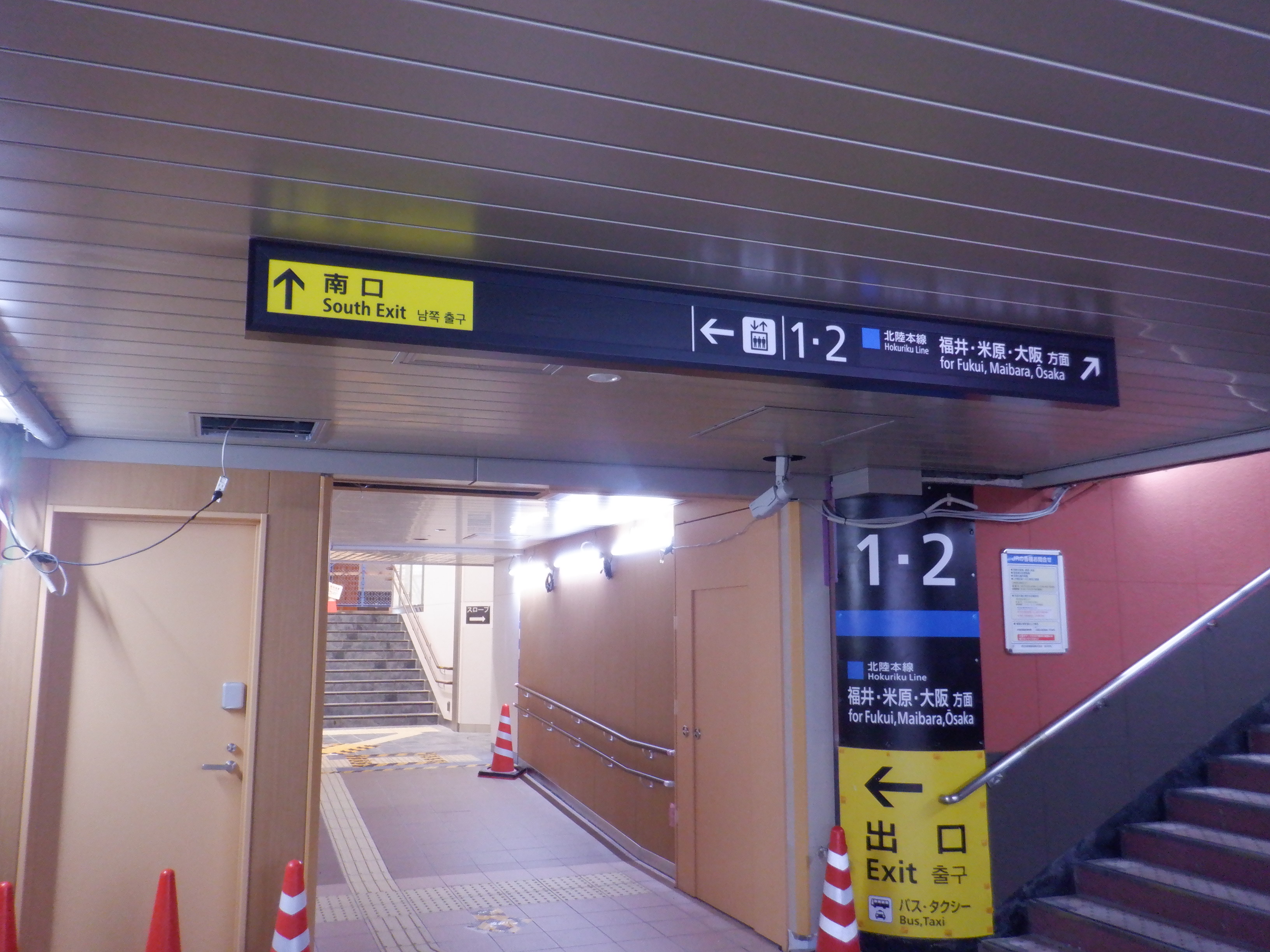 3・4番のりばから見た地下道の仮設出入口付近。
