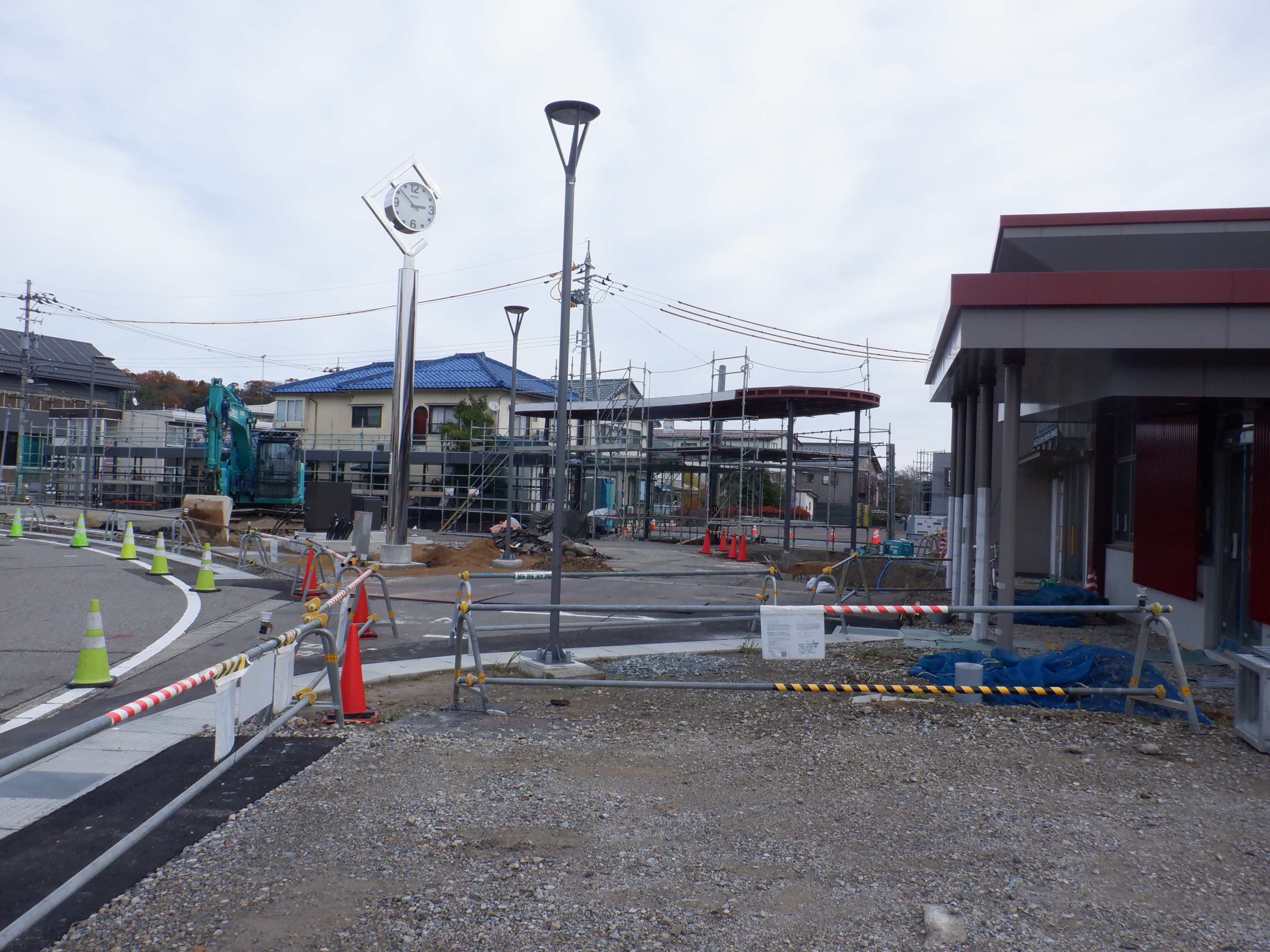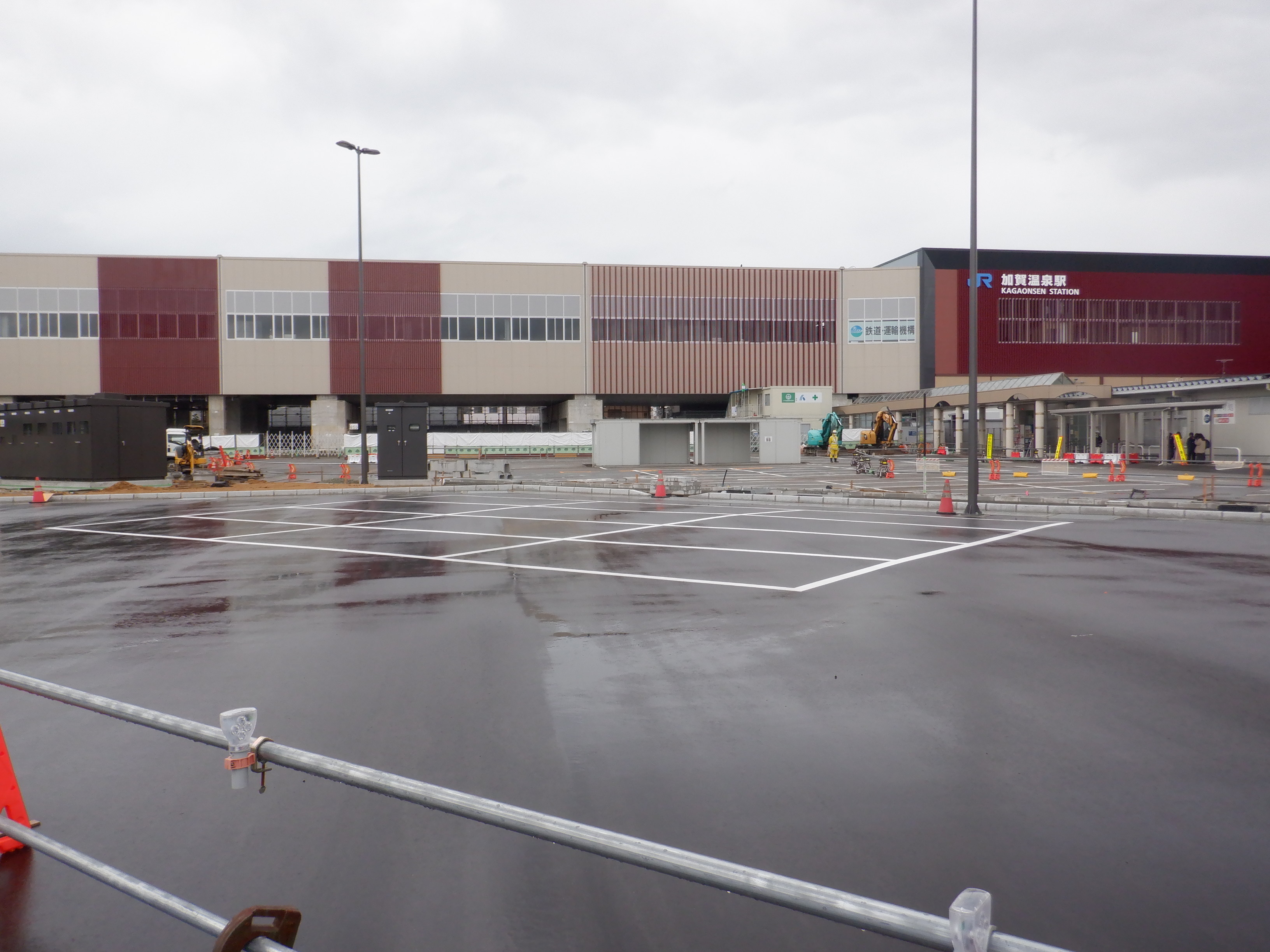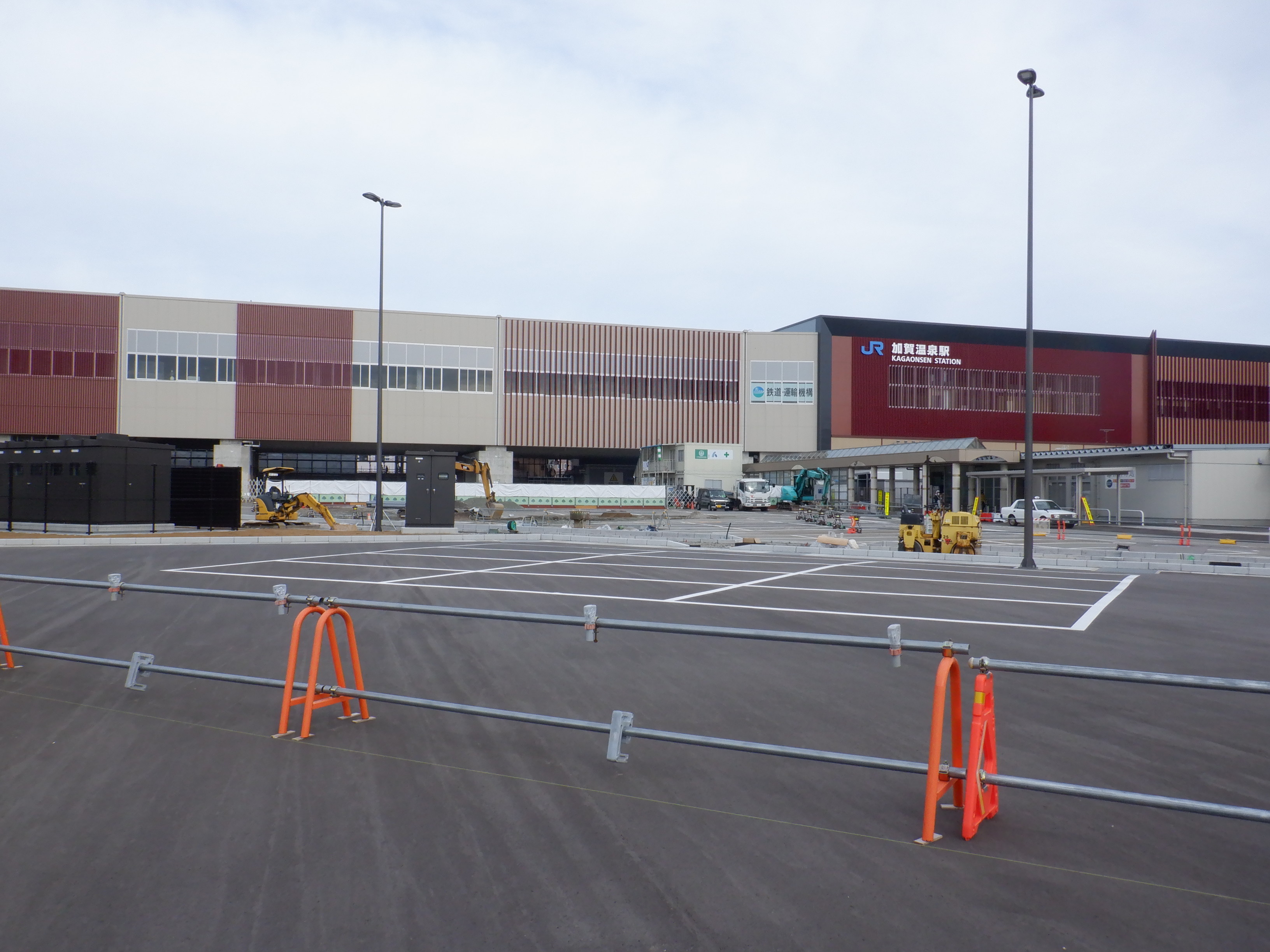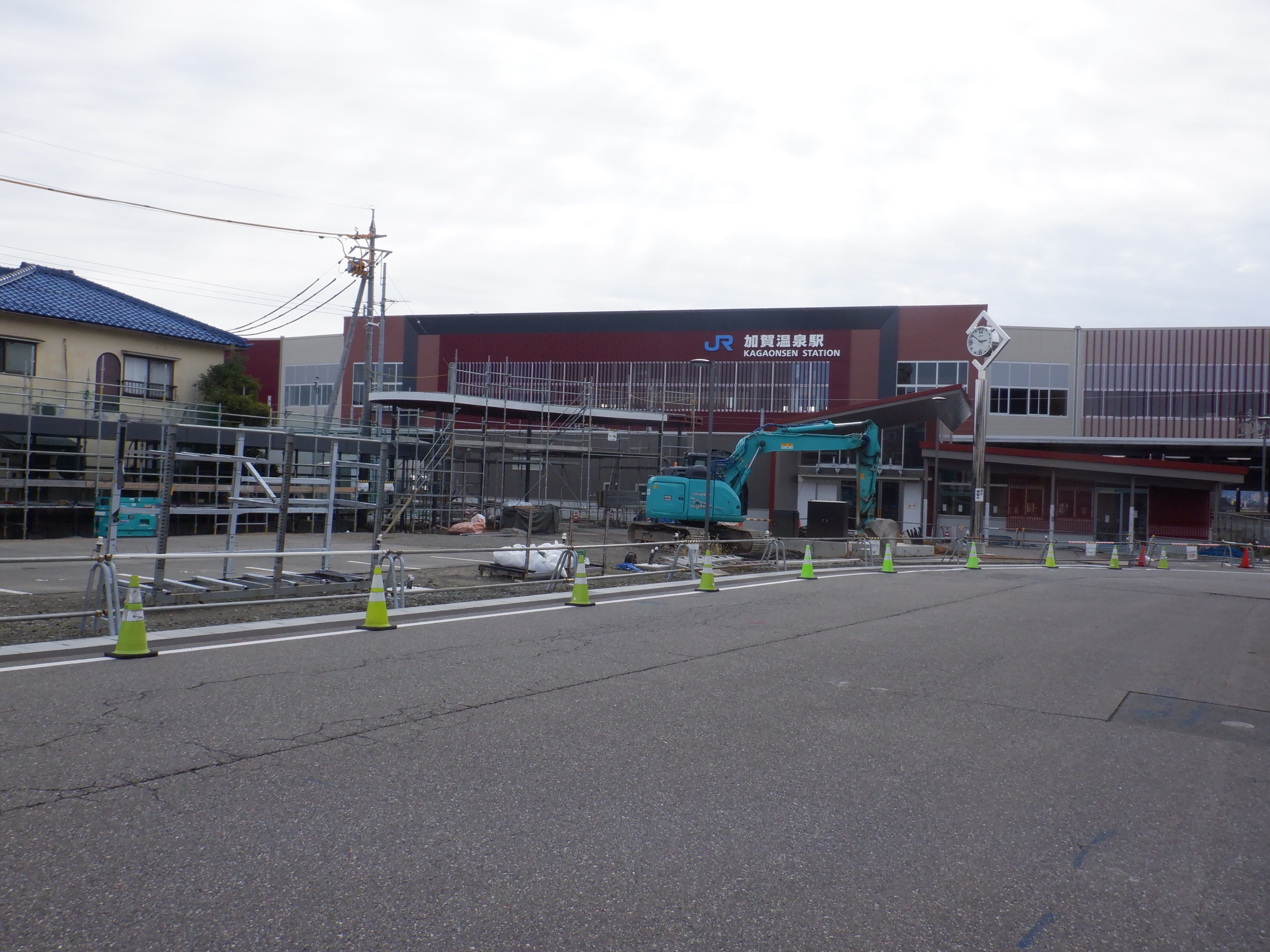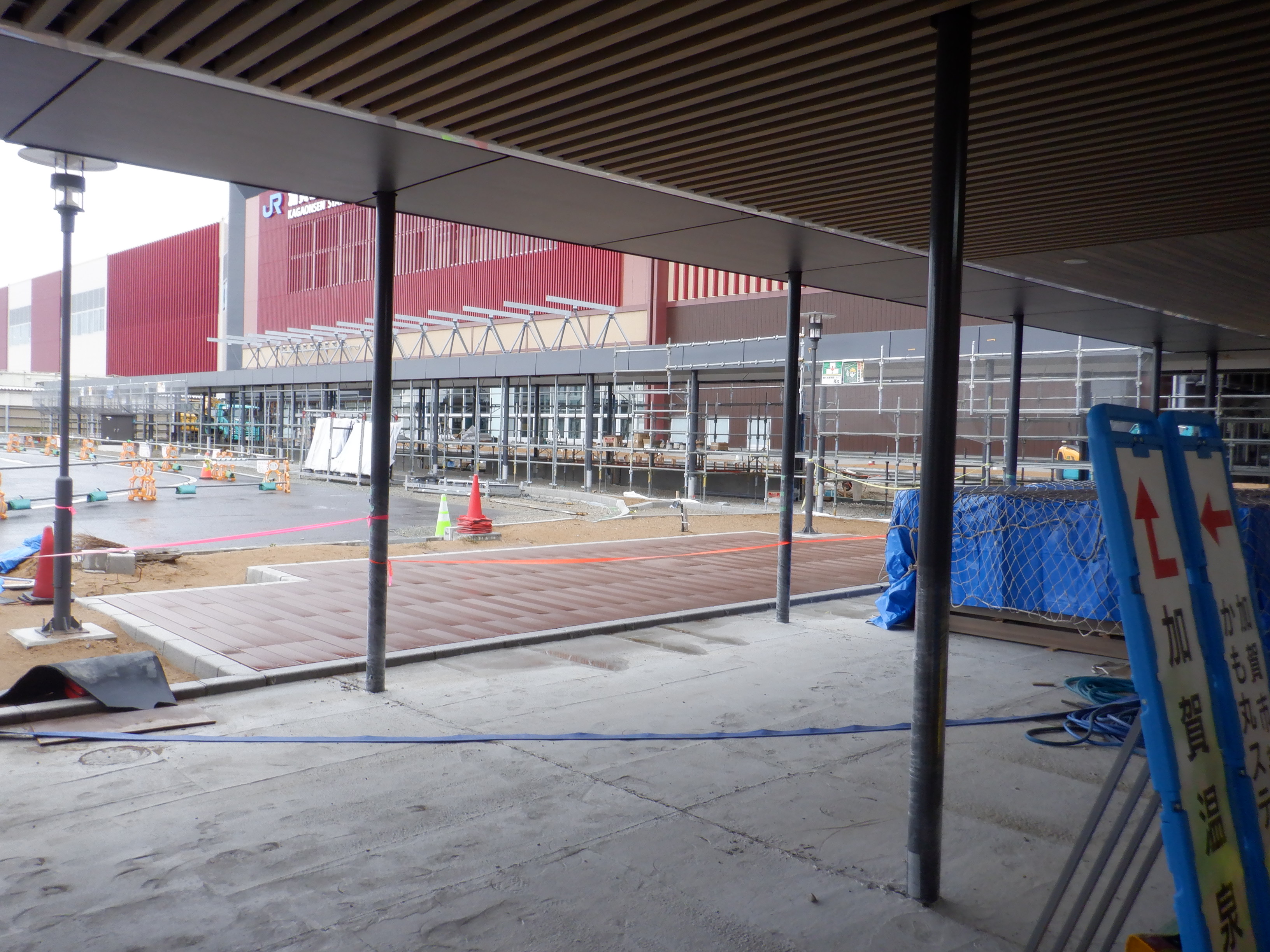 大聖寺駅側。右側にレンタカー屋さん建設中の様子が見えます。
