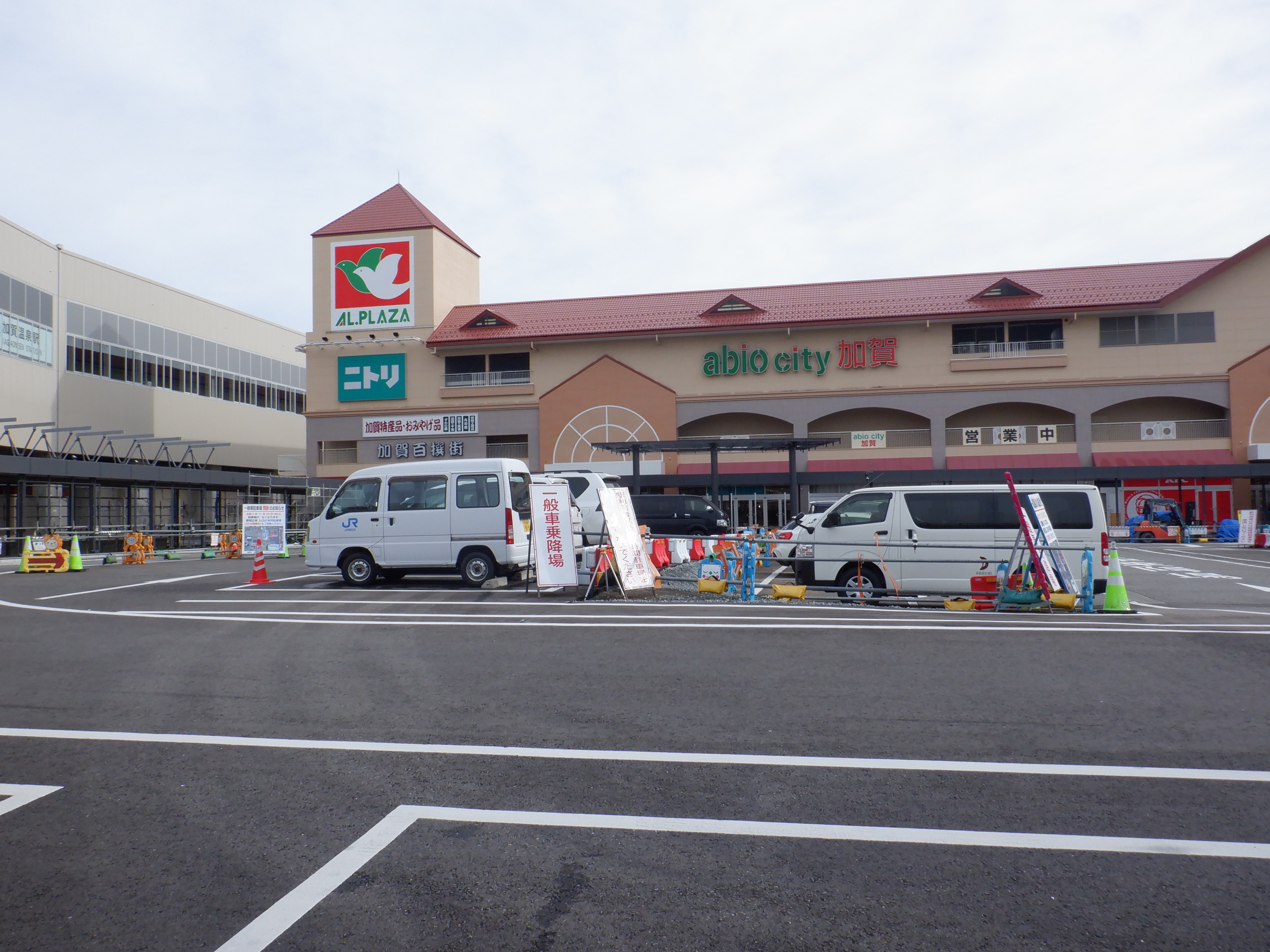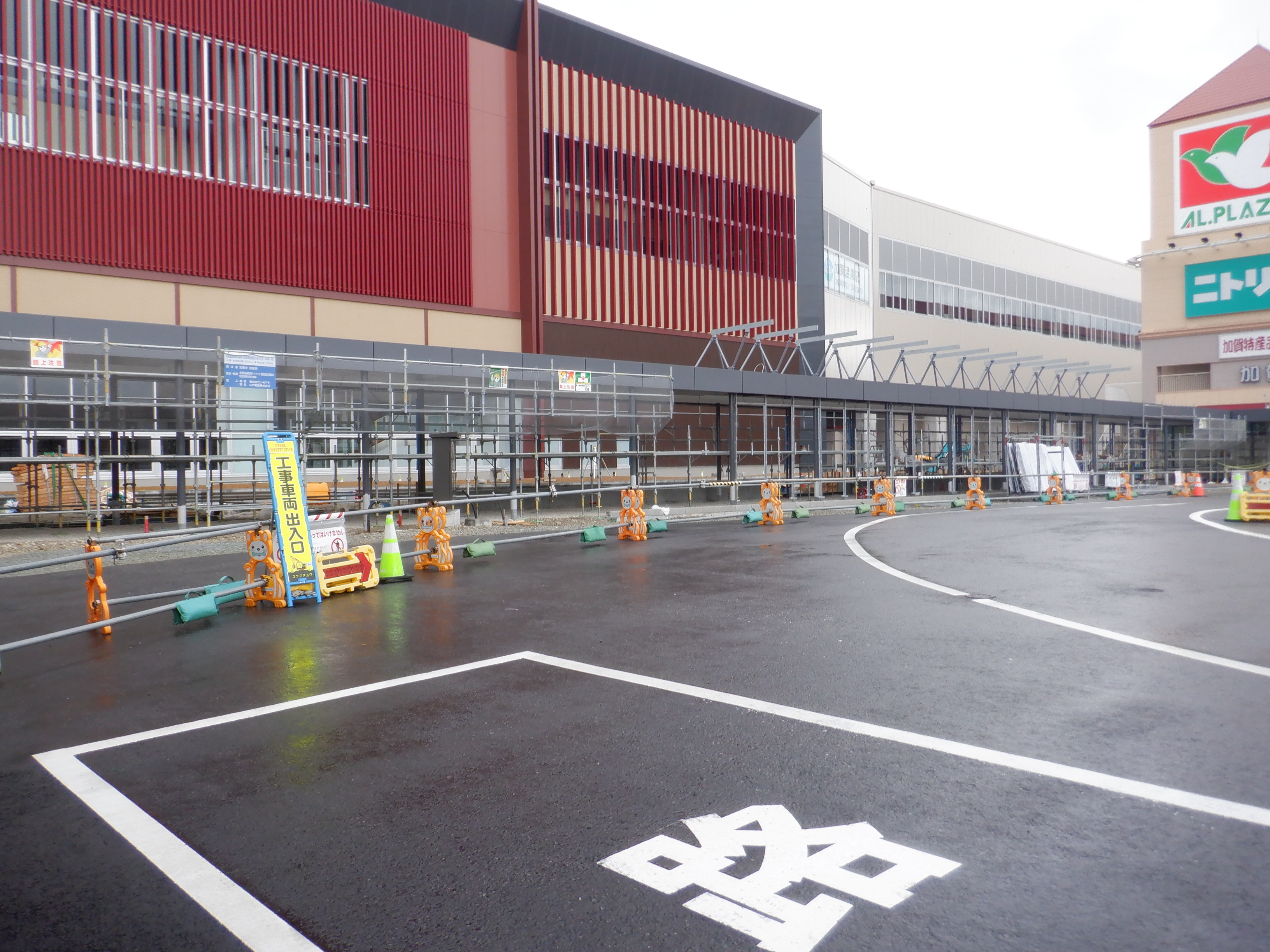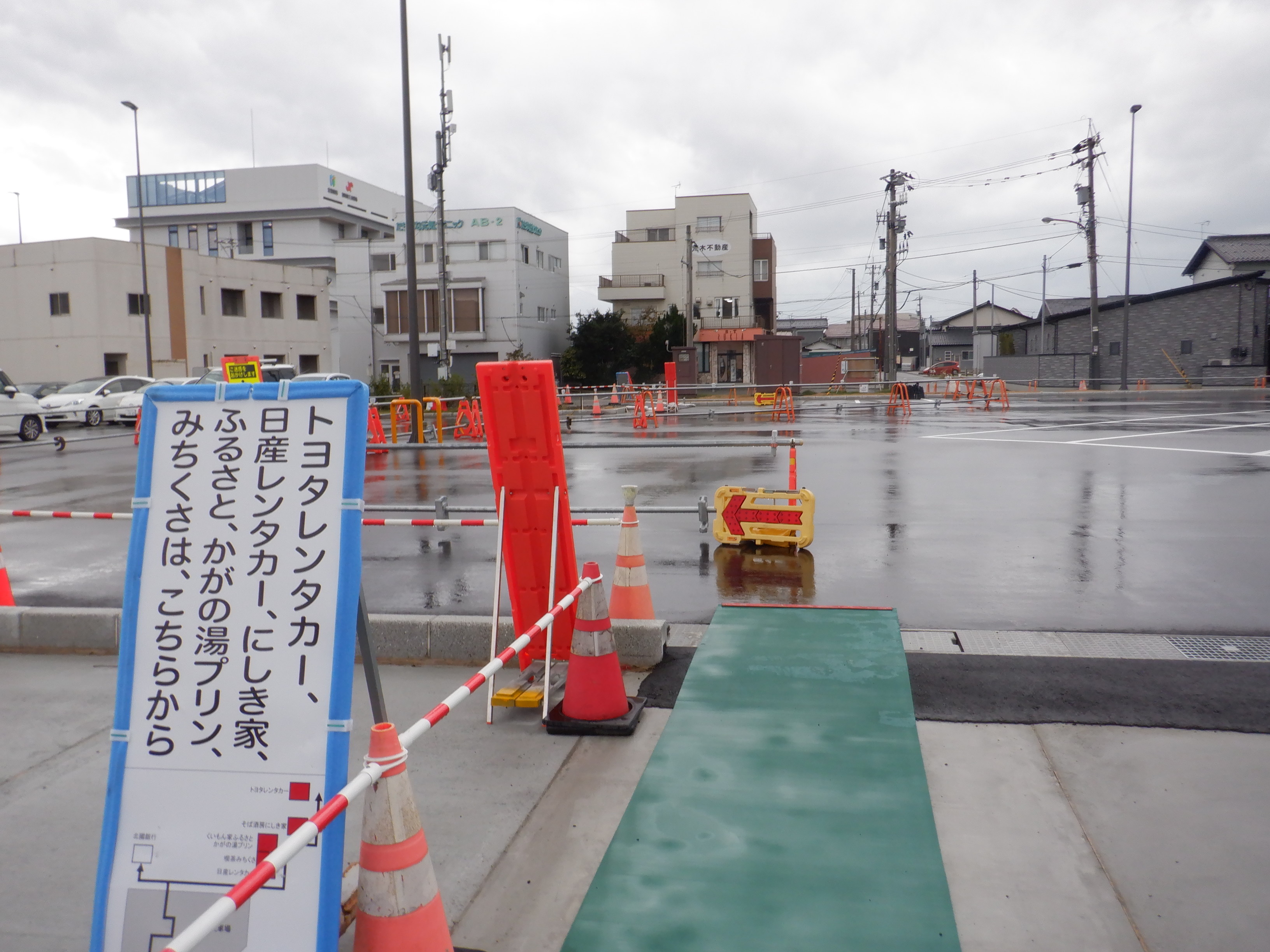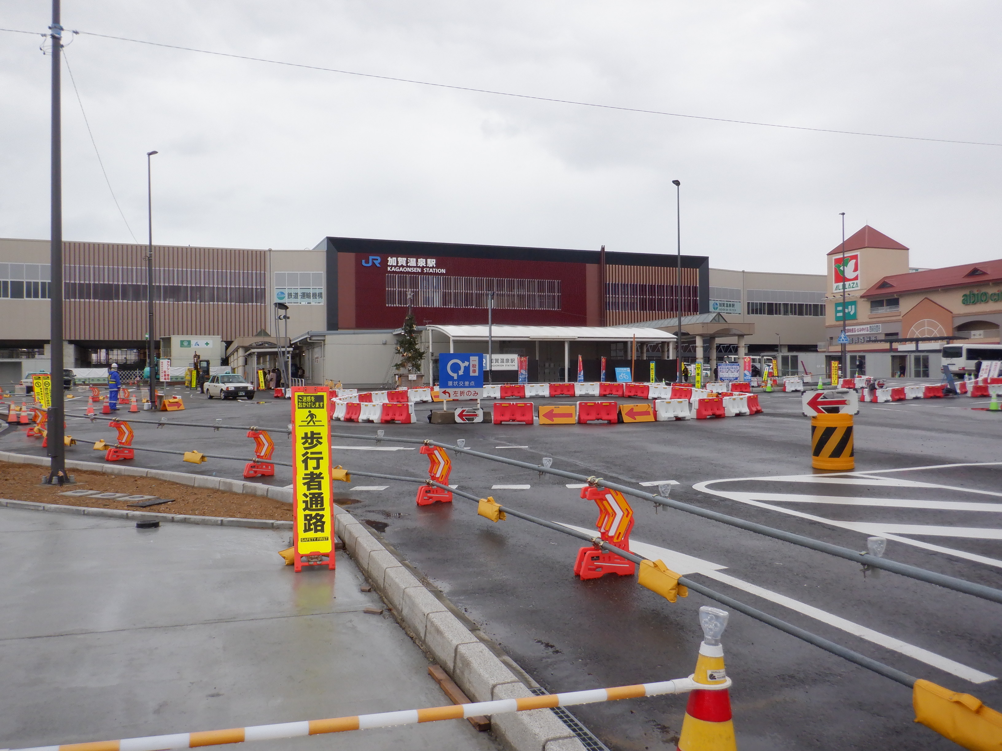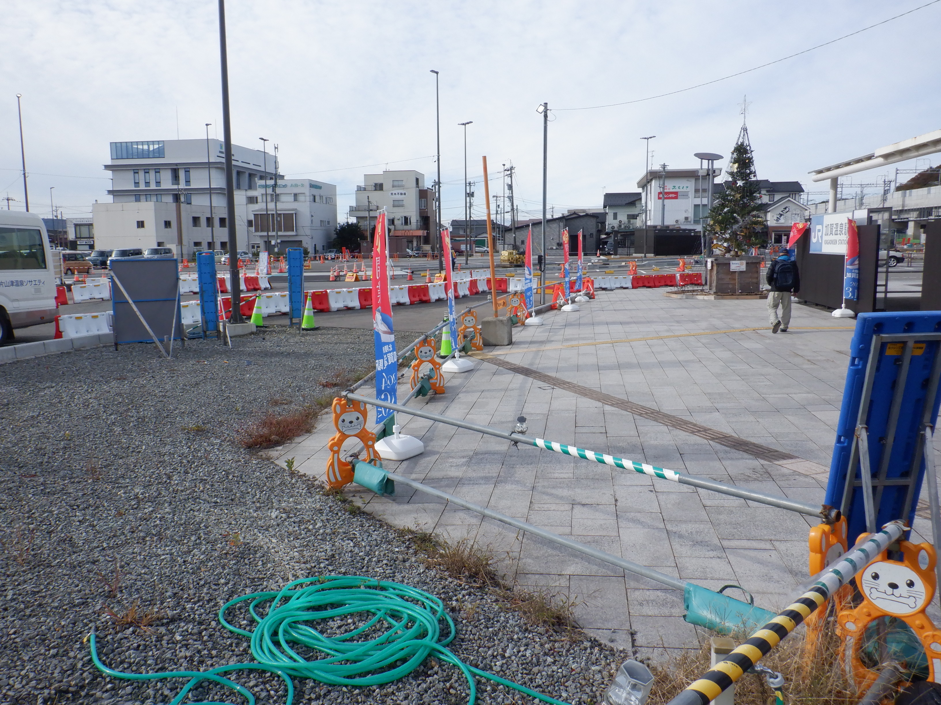大聖寺駅側。右側にレンタカー屋さん建設中の様子が見えます。