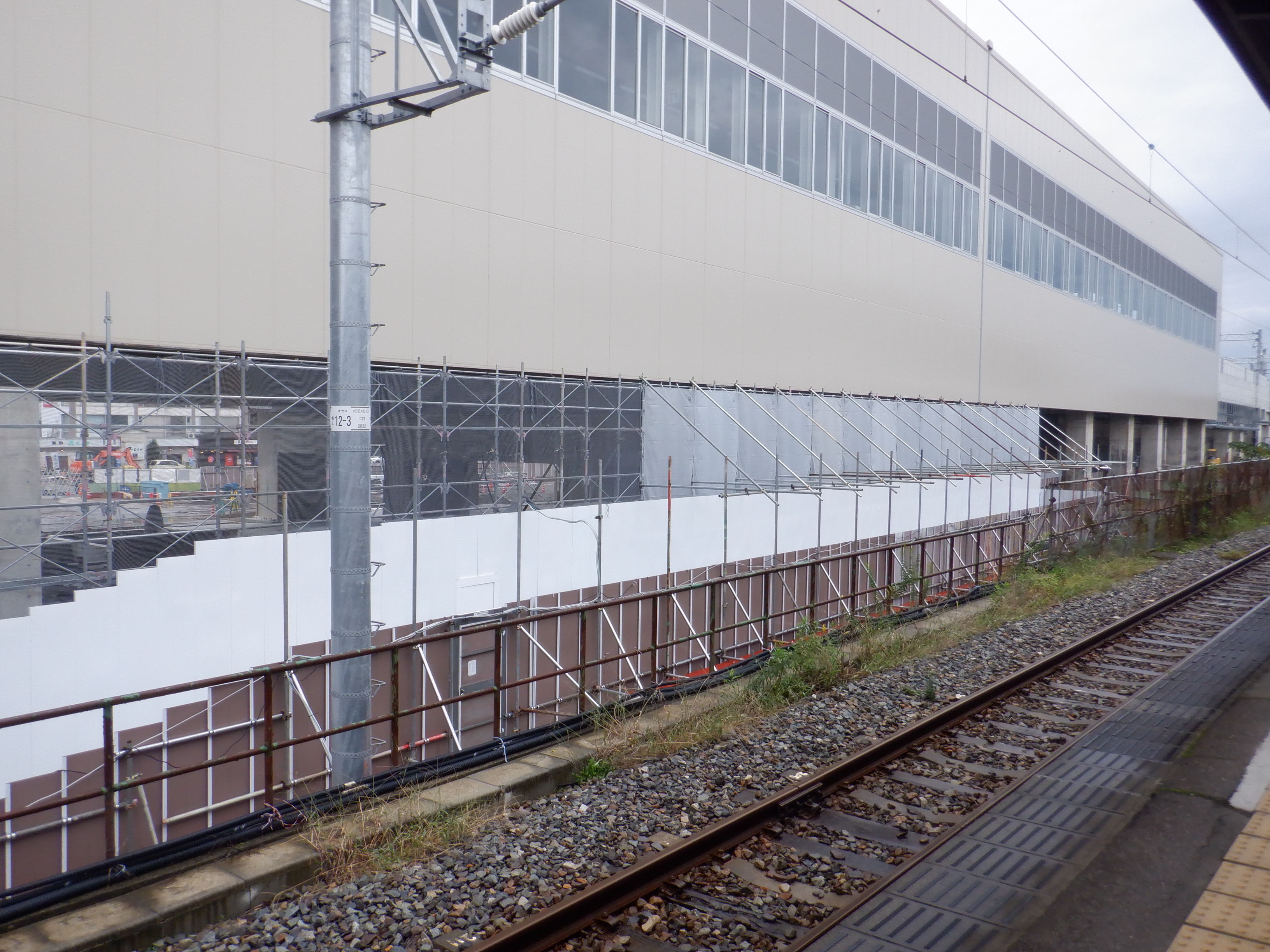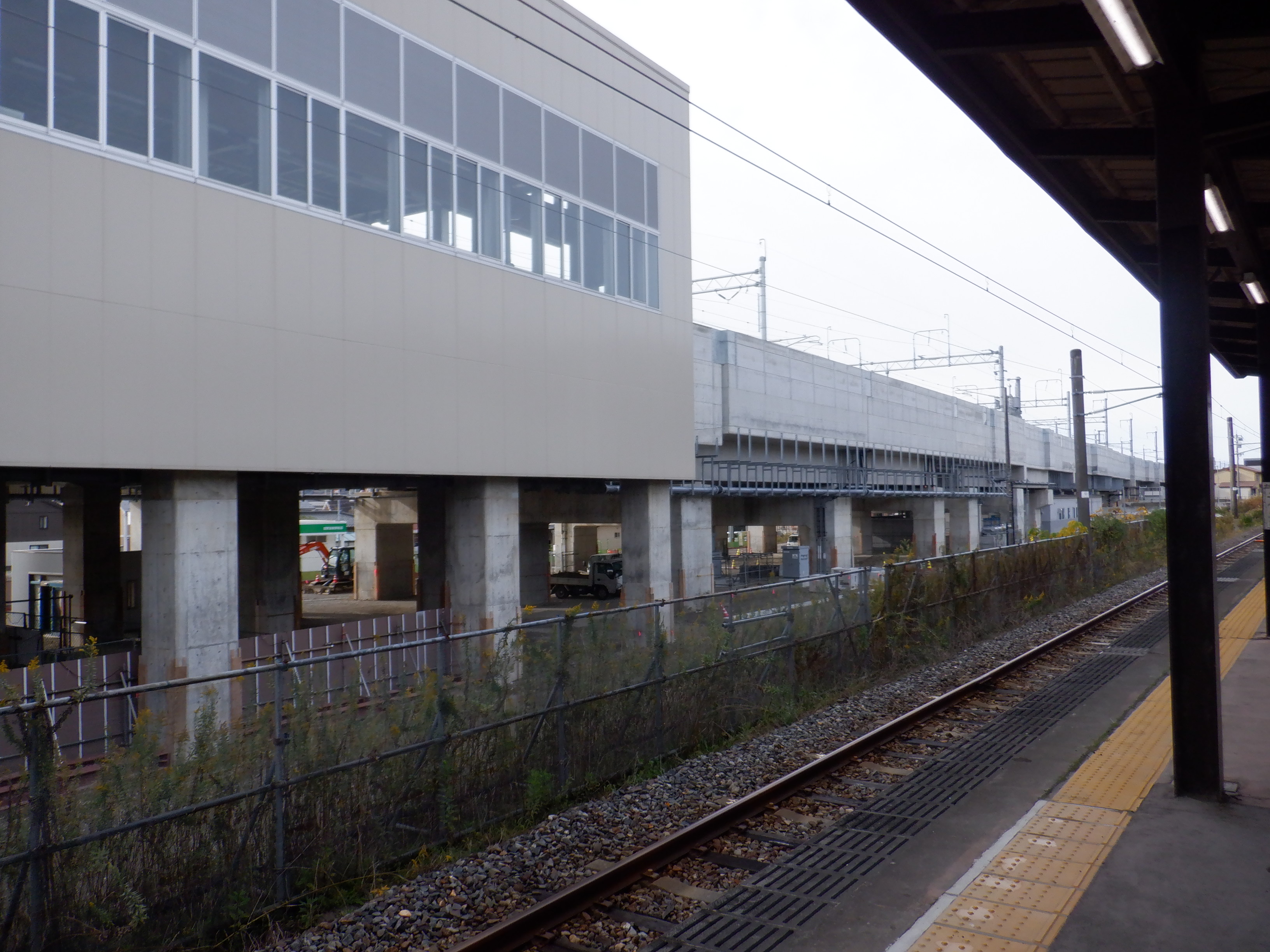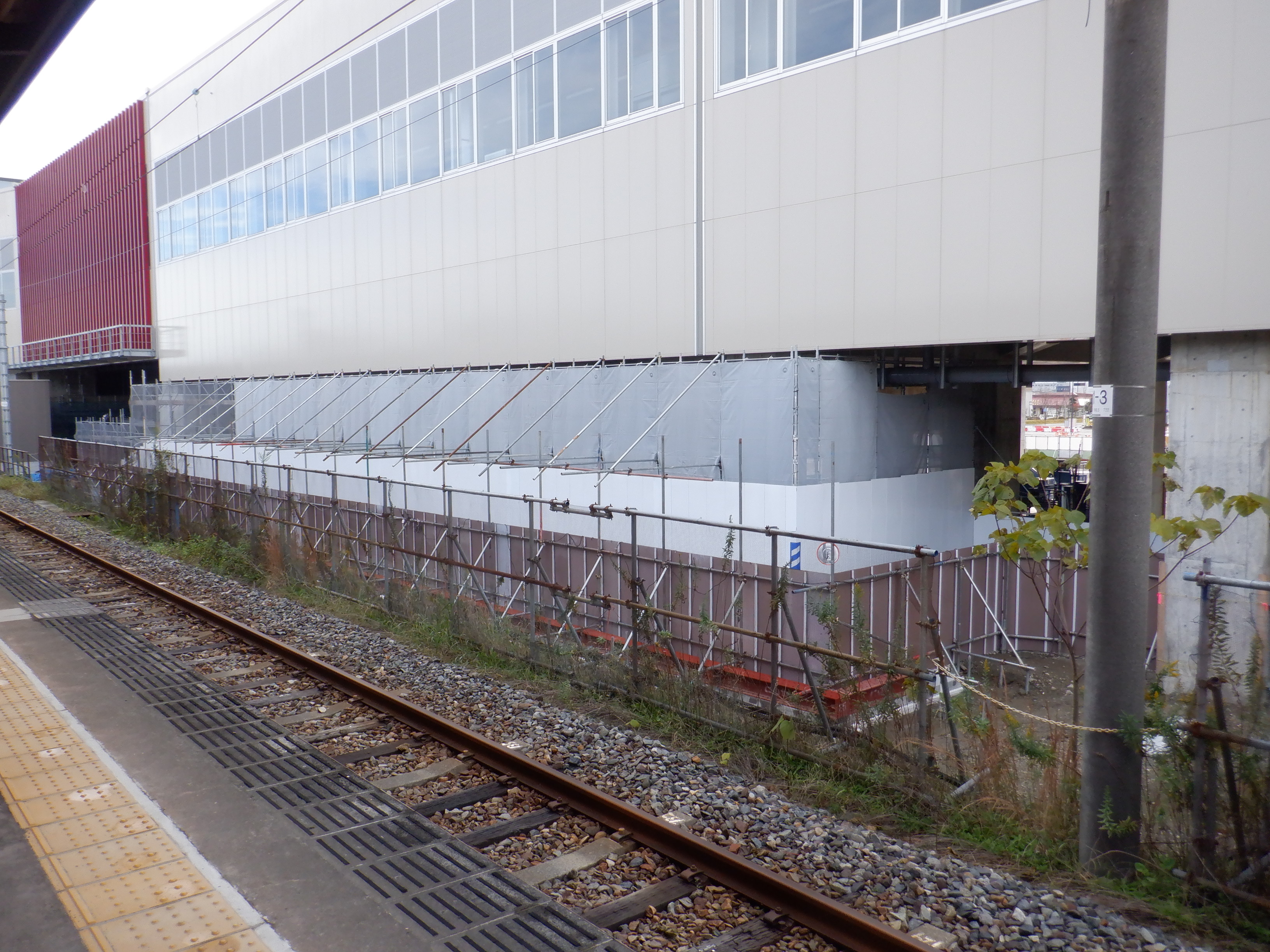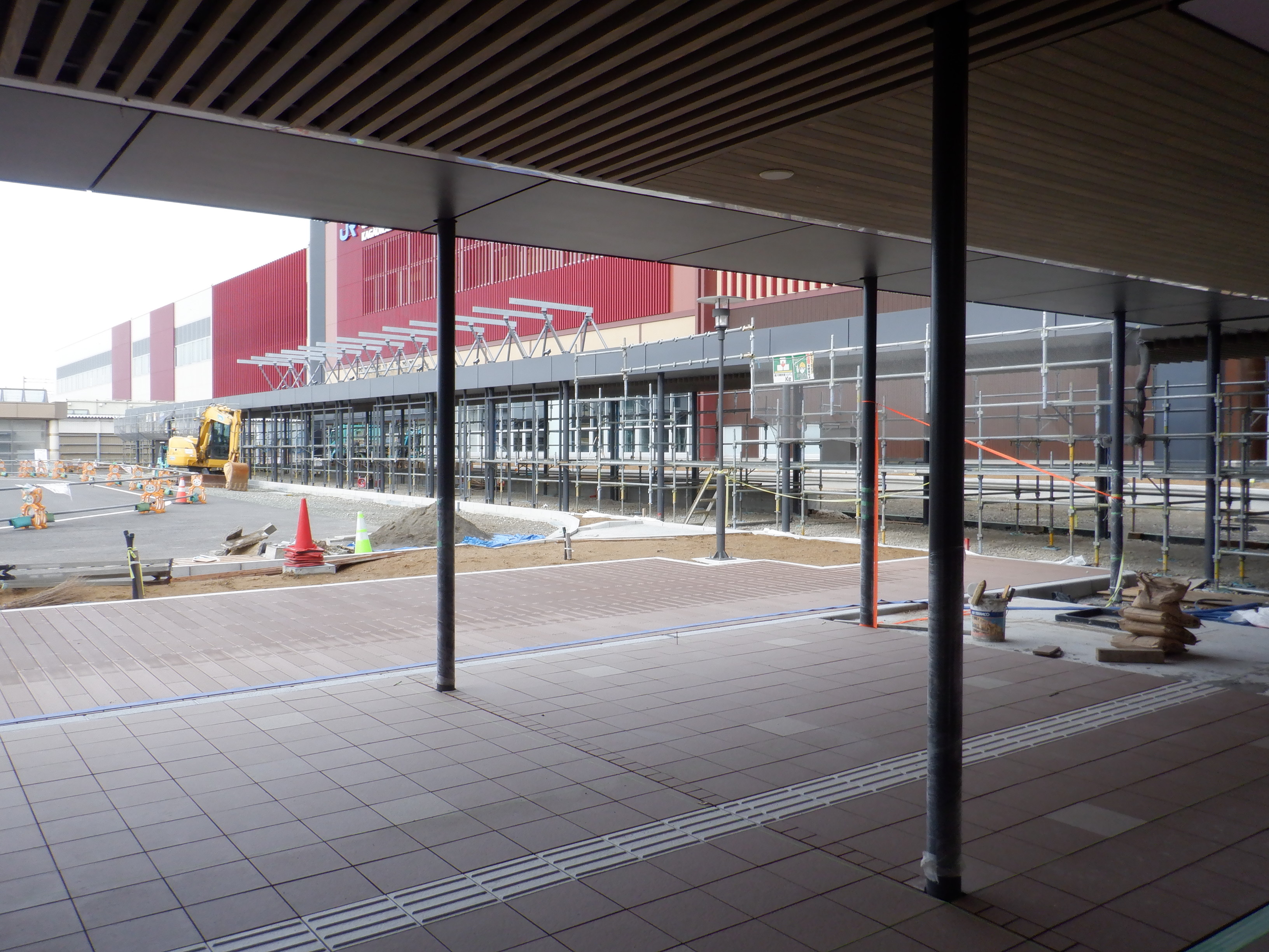 アルプラザ側のシェルター建設中のところと新幹線駅舎。