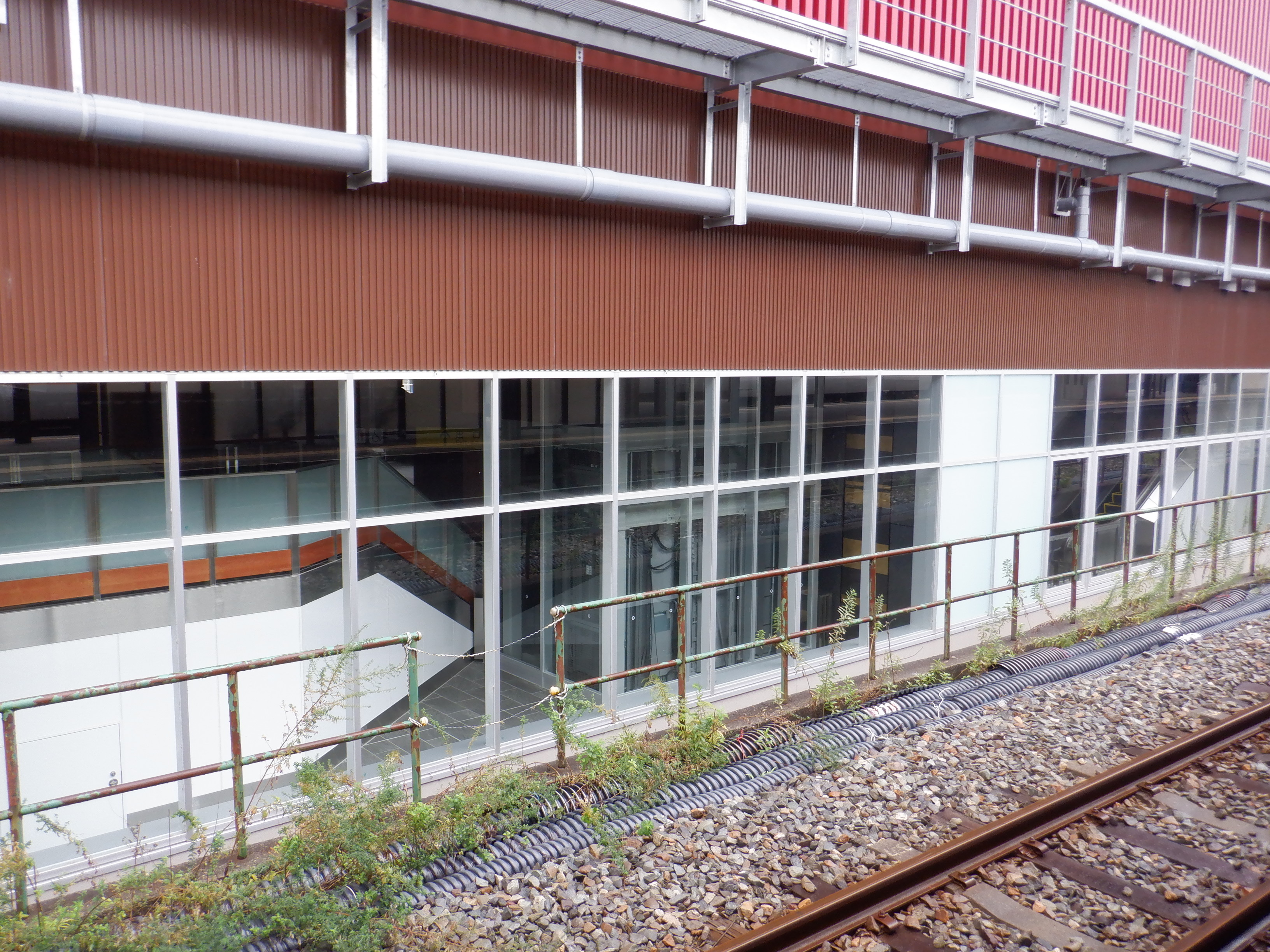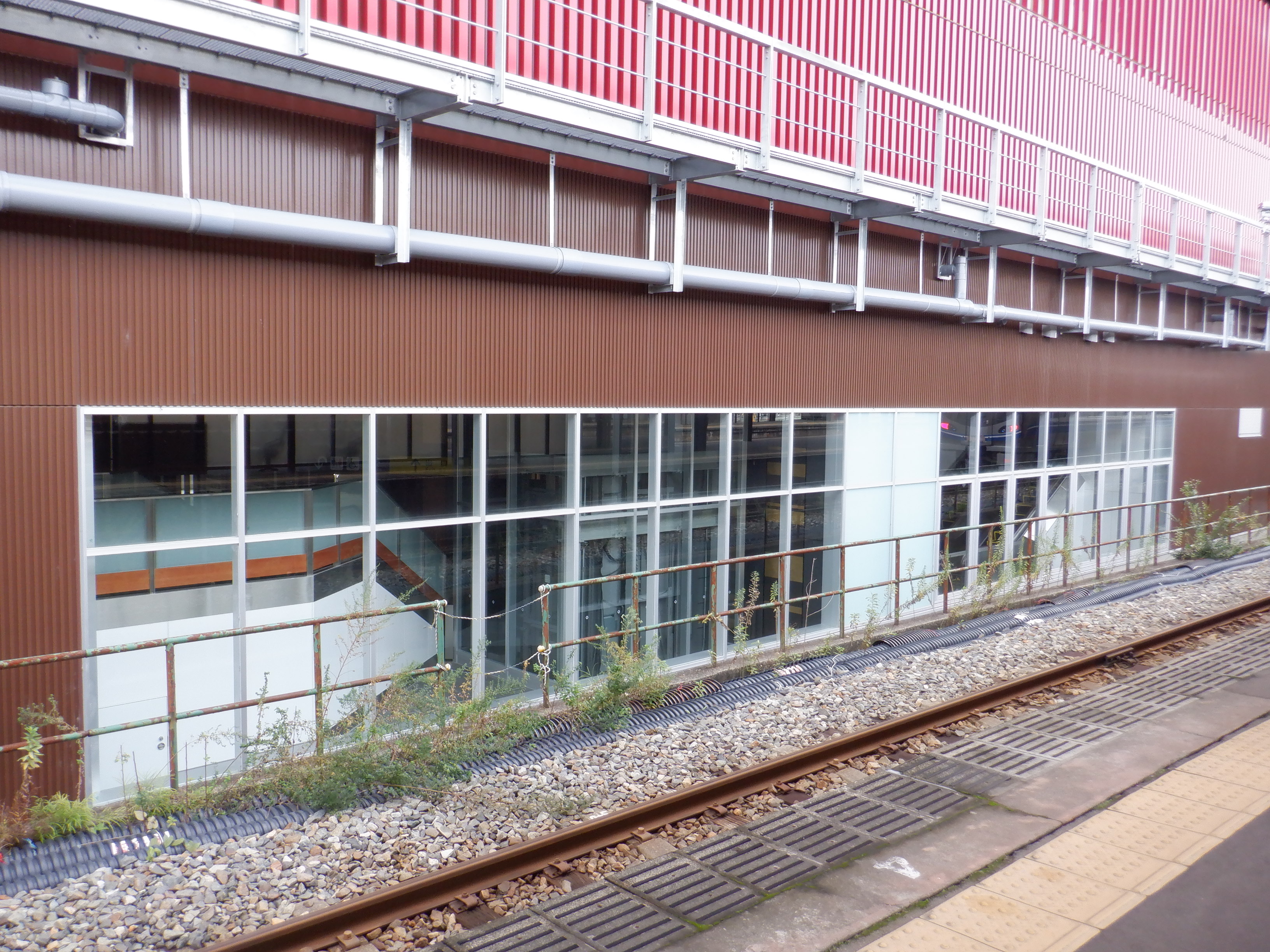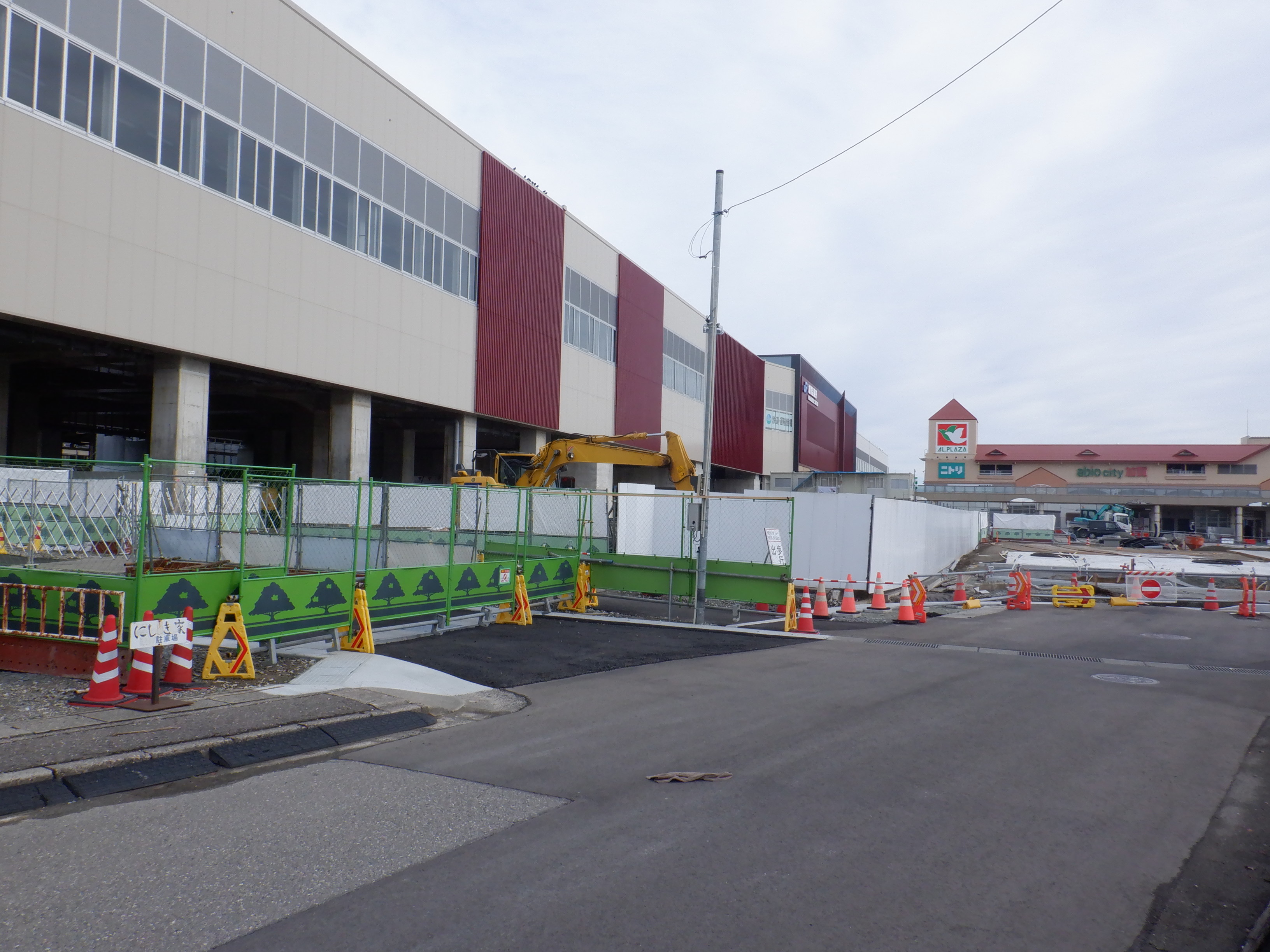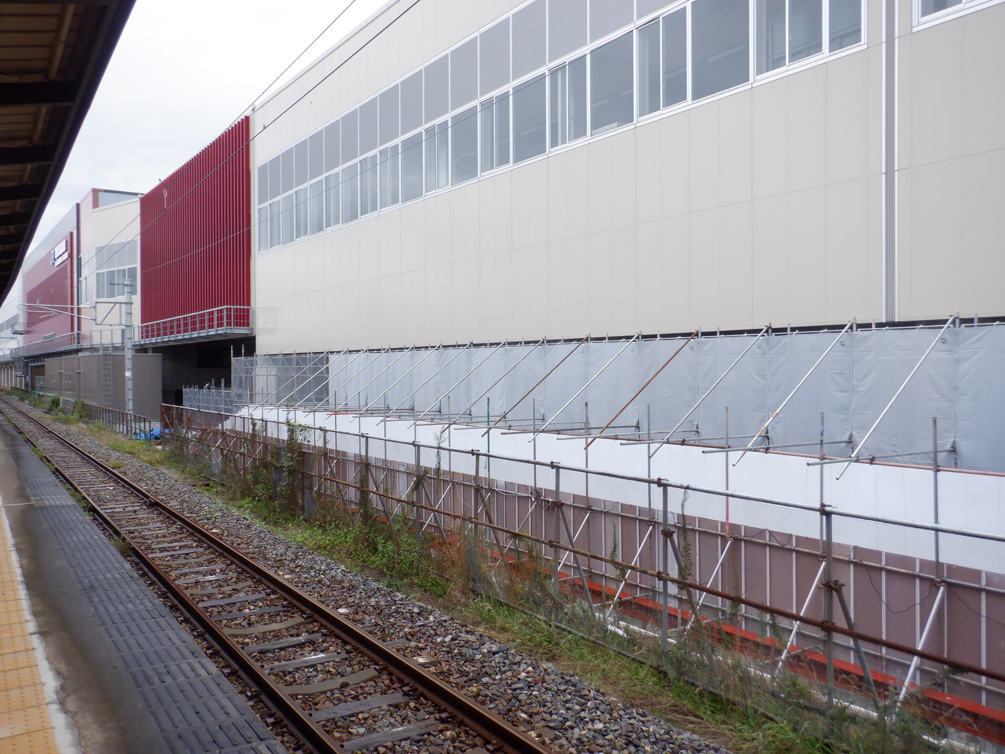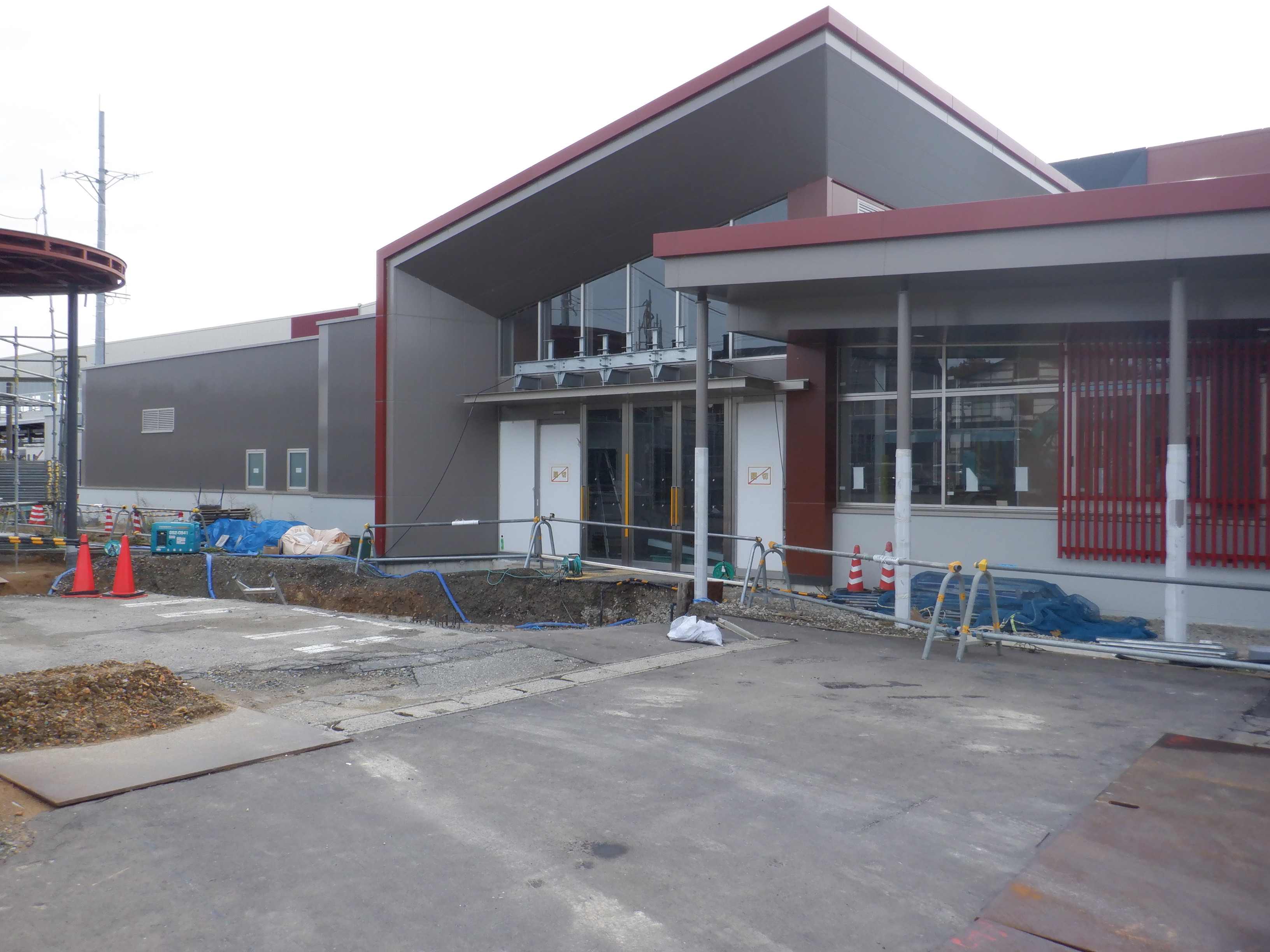 アルプラザ側のシェルター建設中のところと新幹線駅舎。