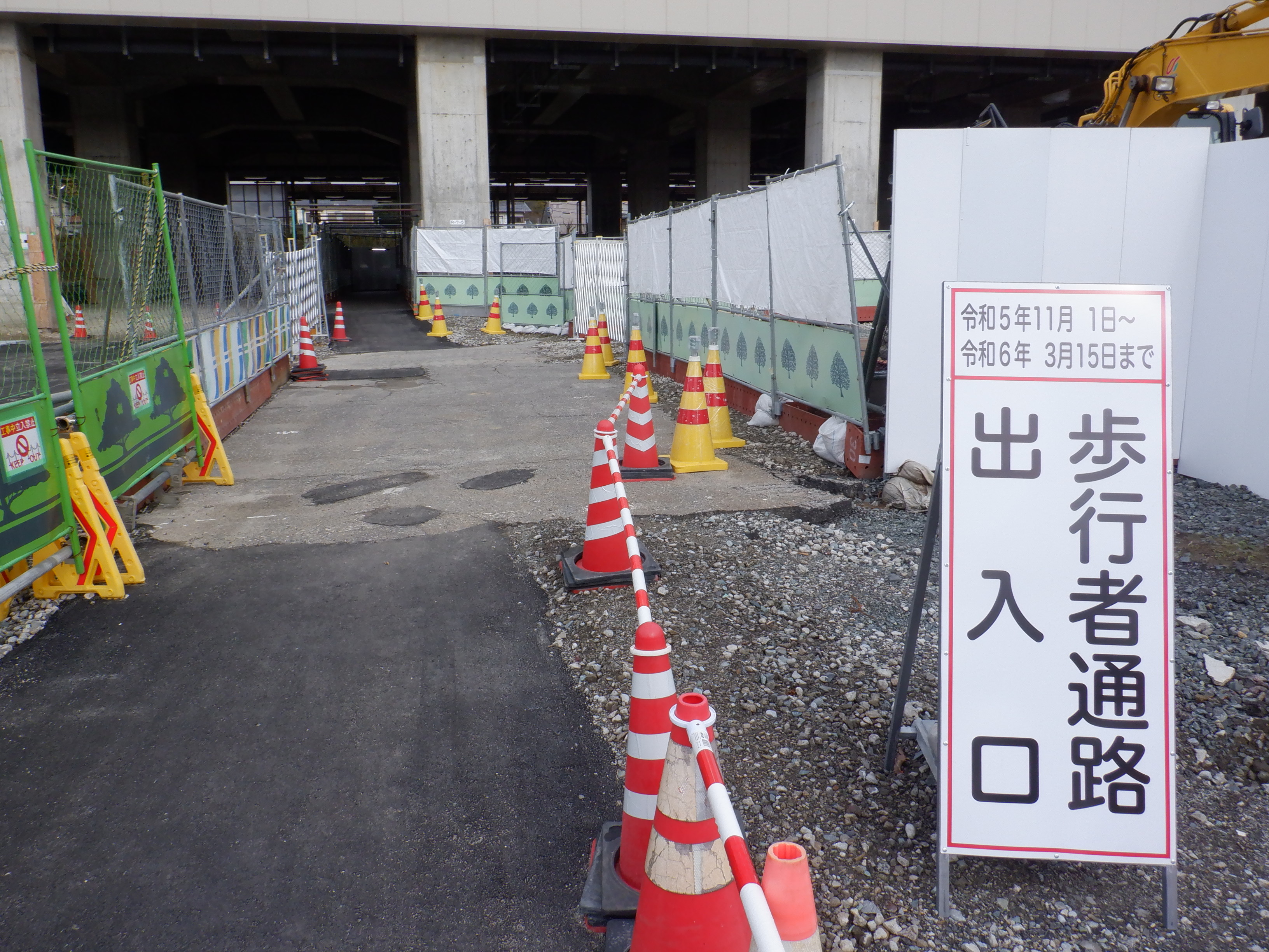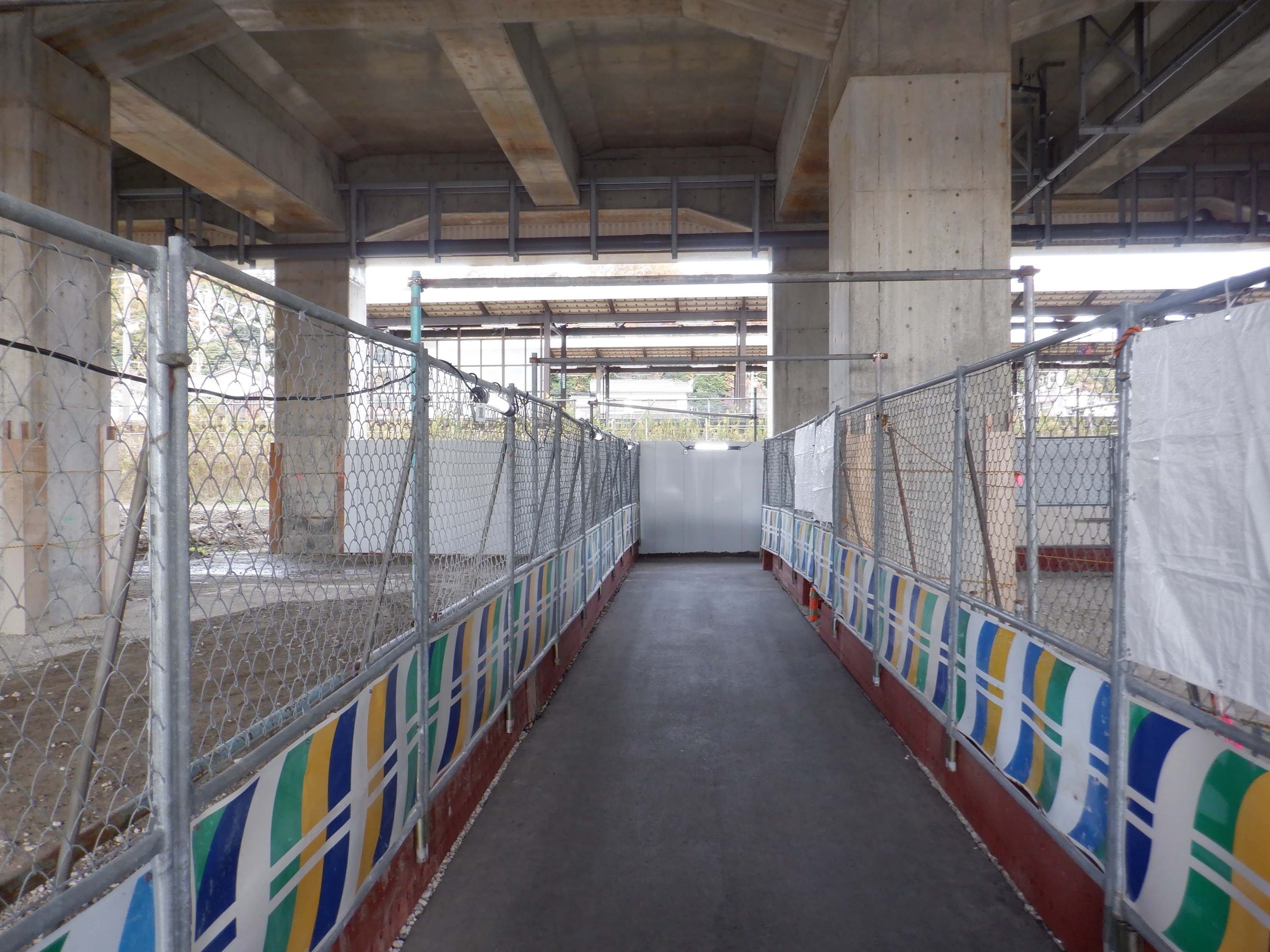 改札口から仮設通路へ。