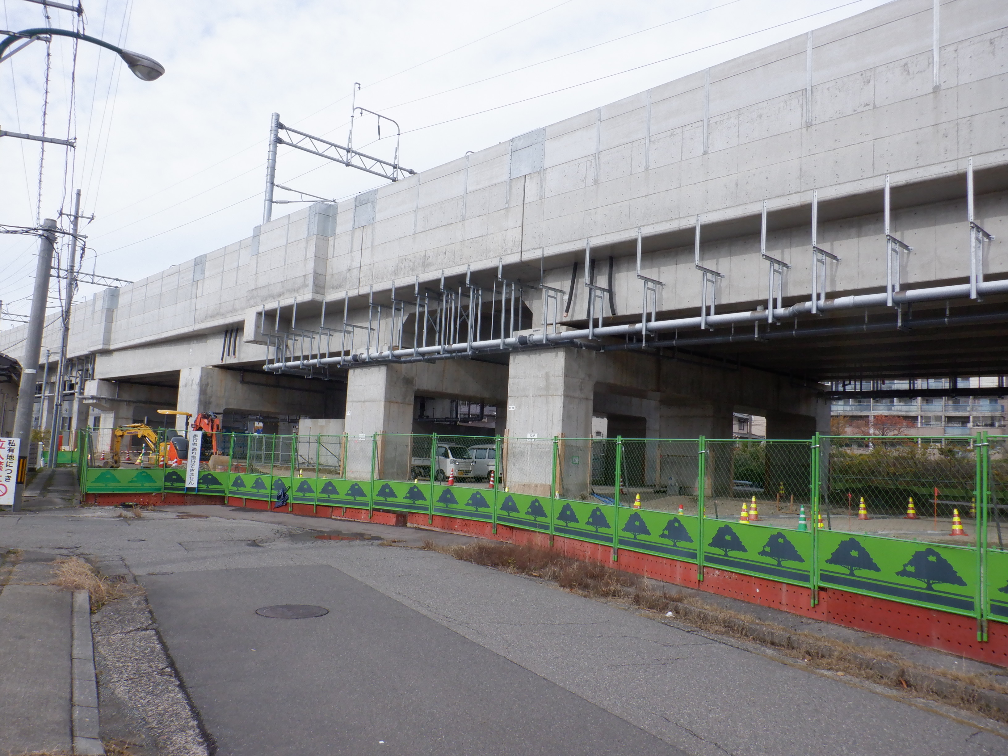 大聖寺駅側から見た新幹線高架。