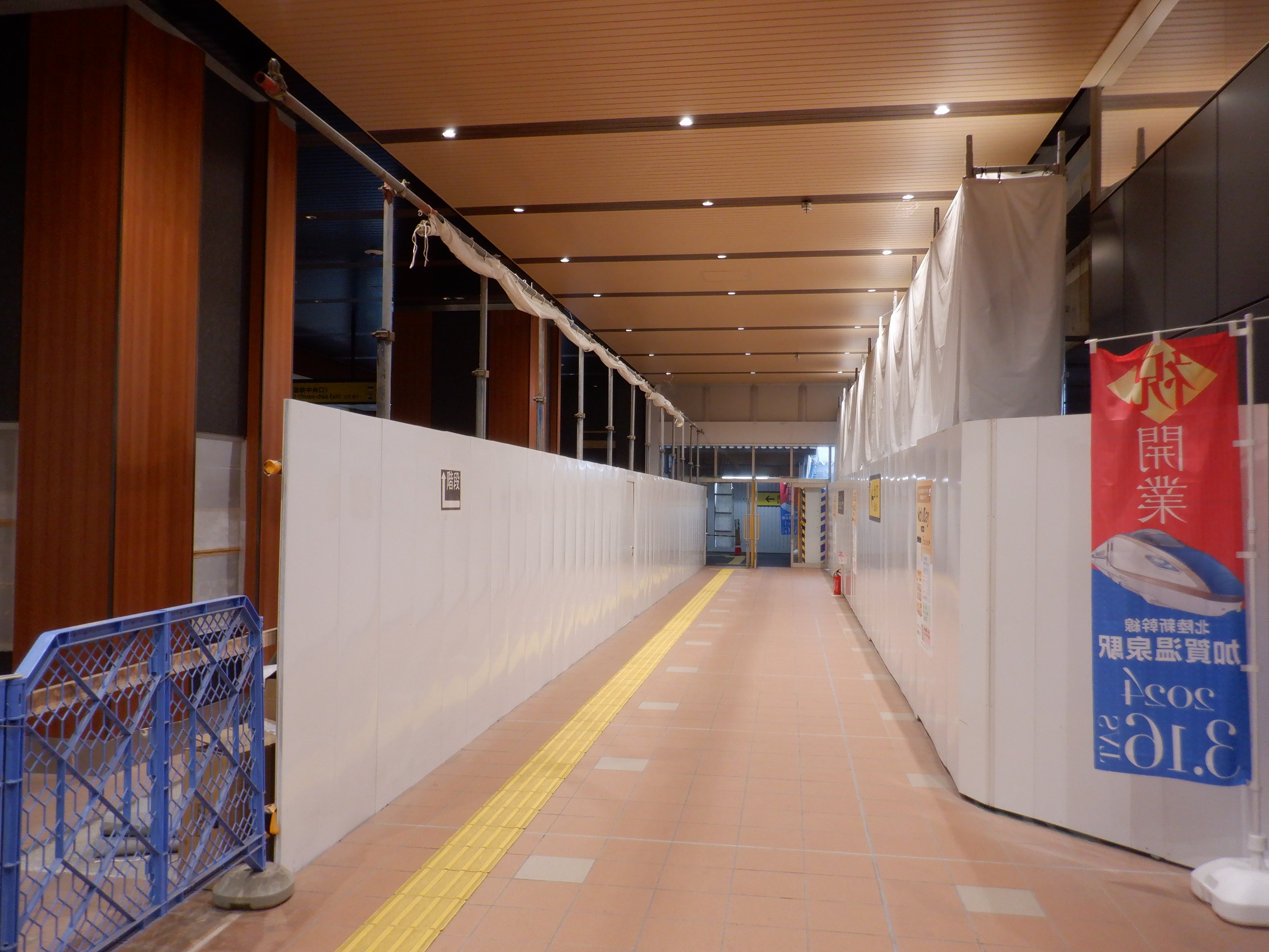 仮設通路となっている新幹線のりばコンコースとなるところ。
