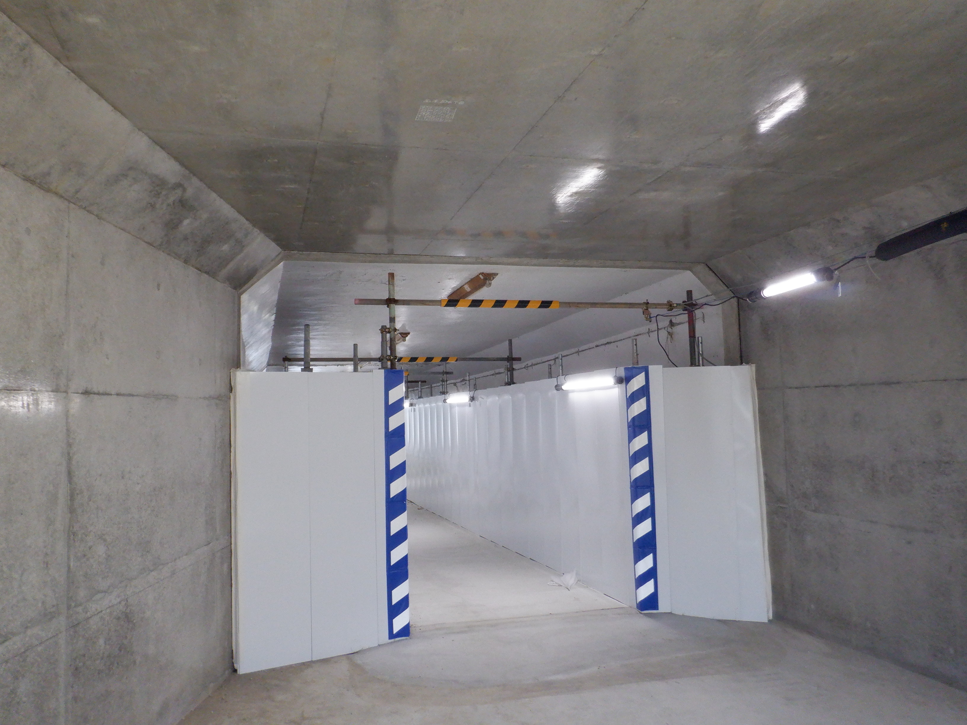 地下道の出入口、在来線の改札口となるところ。入口の上部の化粧板がはめ込まれました。