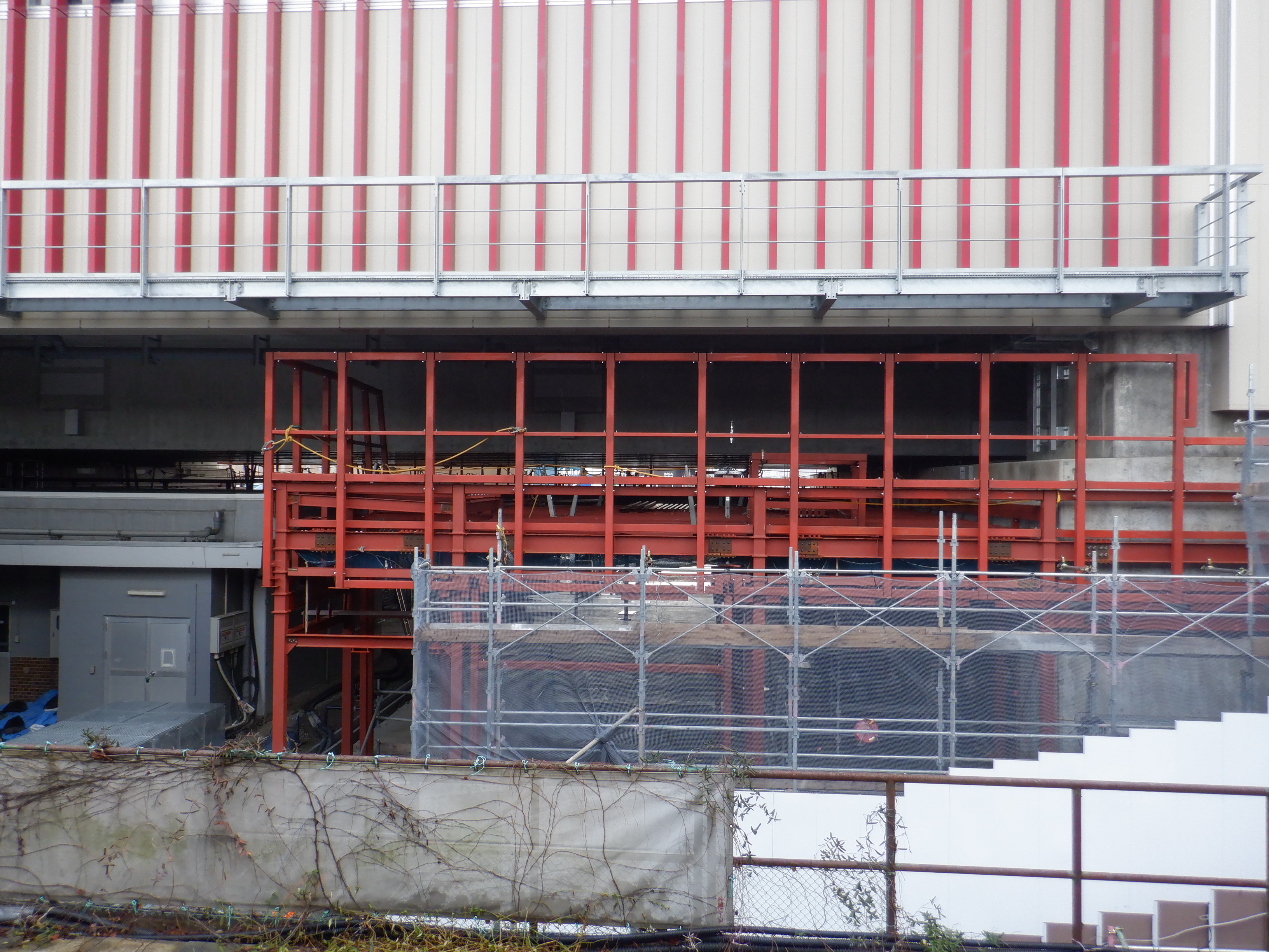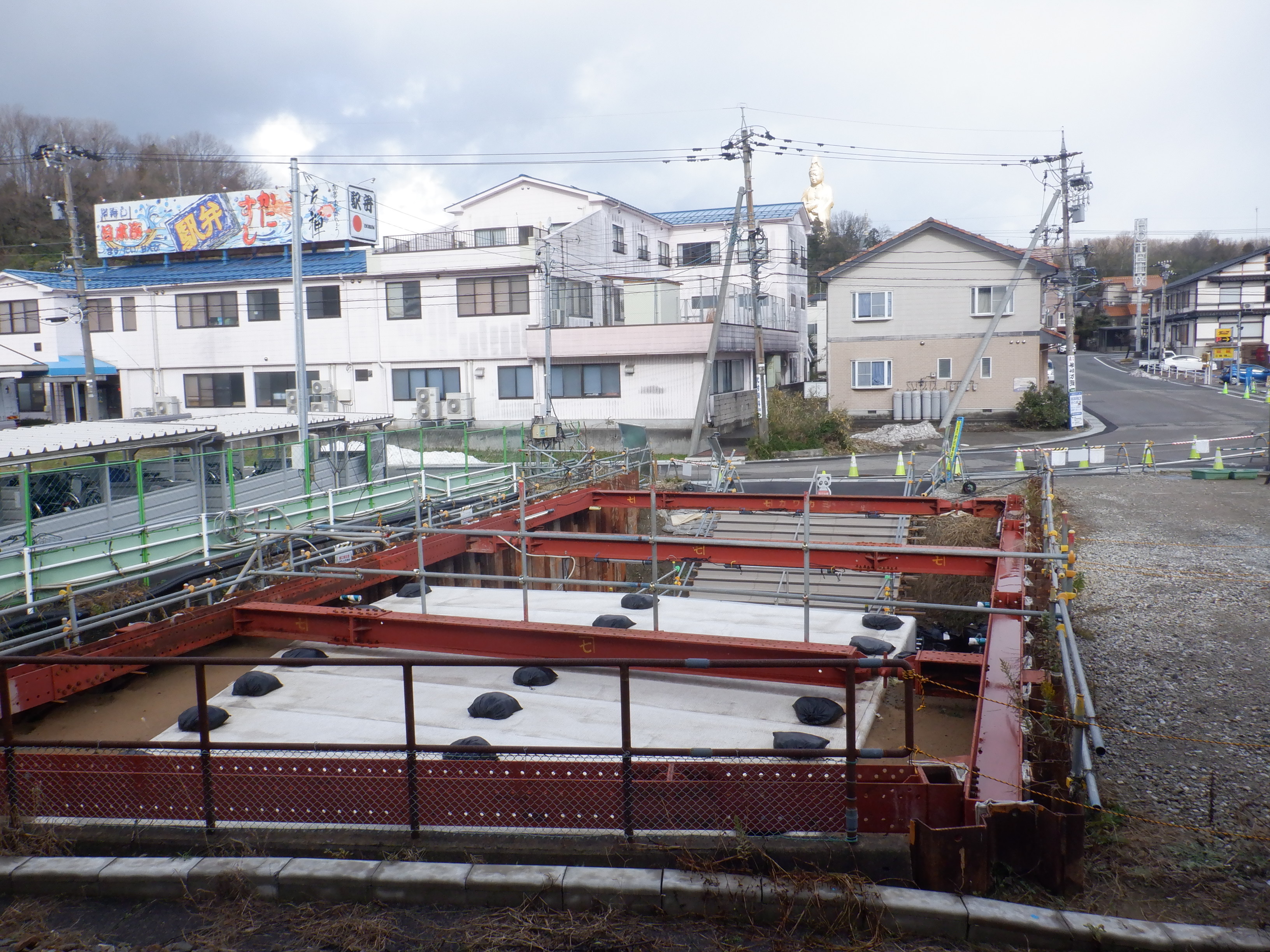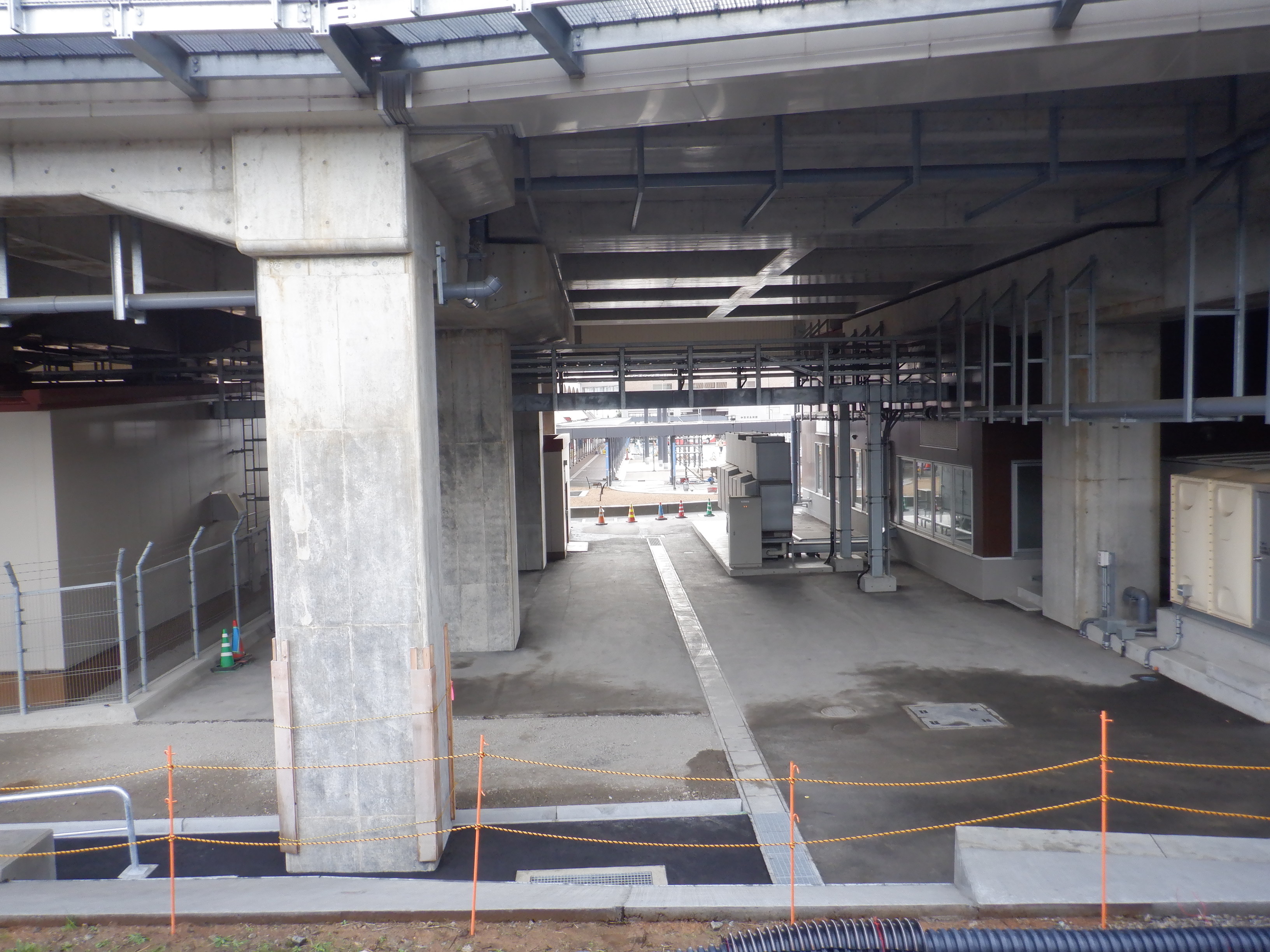 高架下部都市施設(コンビニ・待合室等)を建設中のところ。