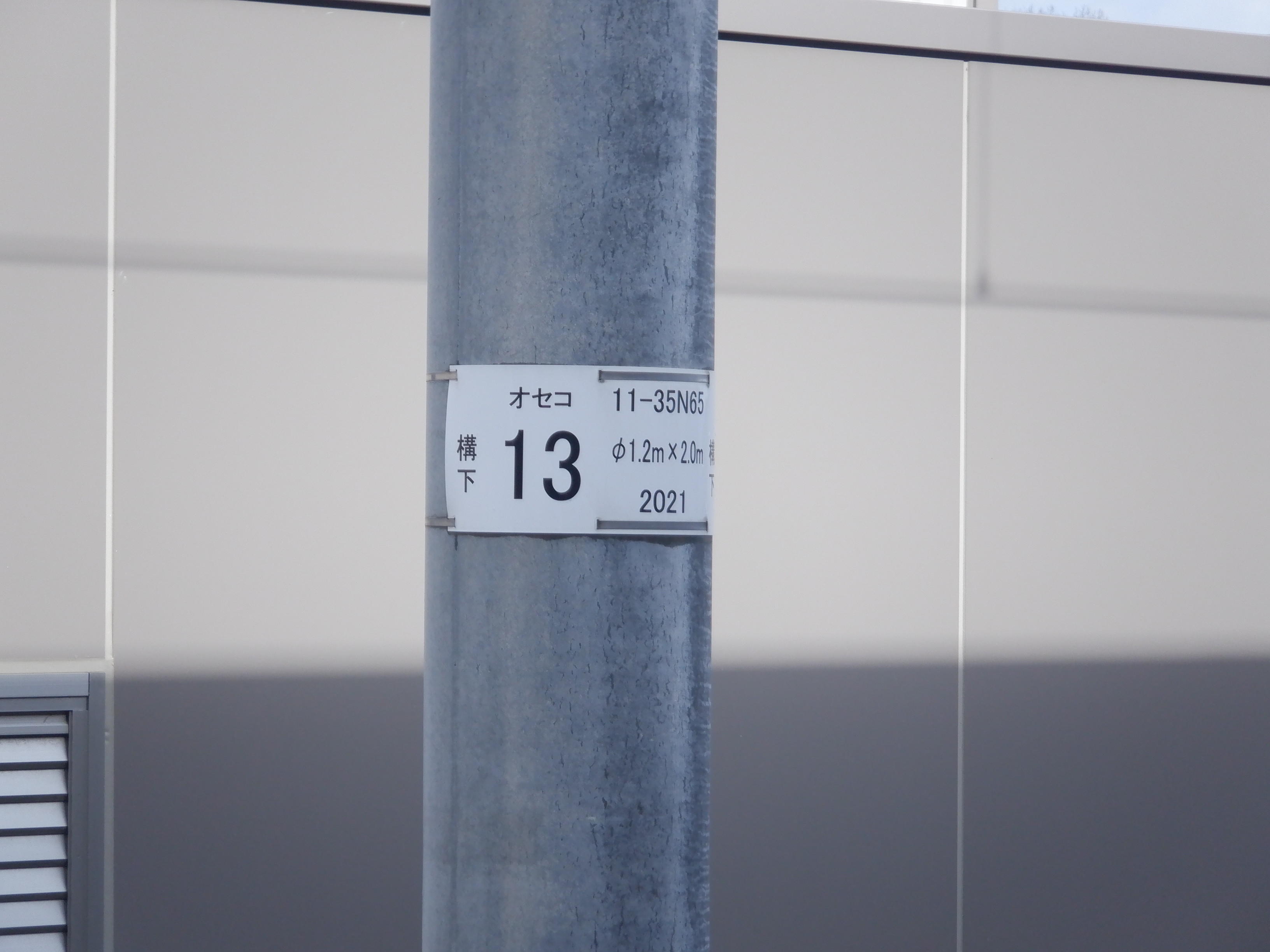 「オセコ」の表示があるものに差し替えられていない架線柱。