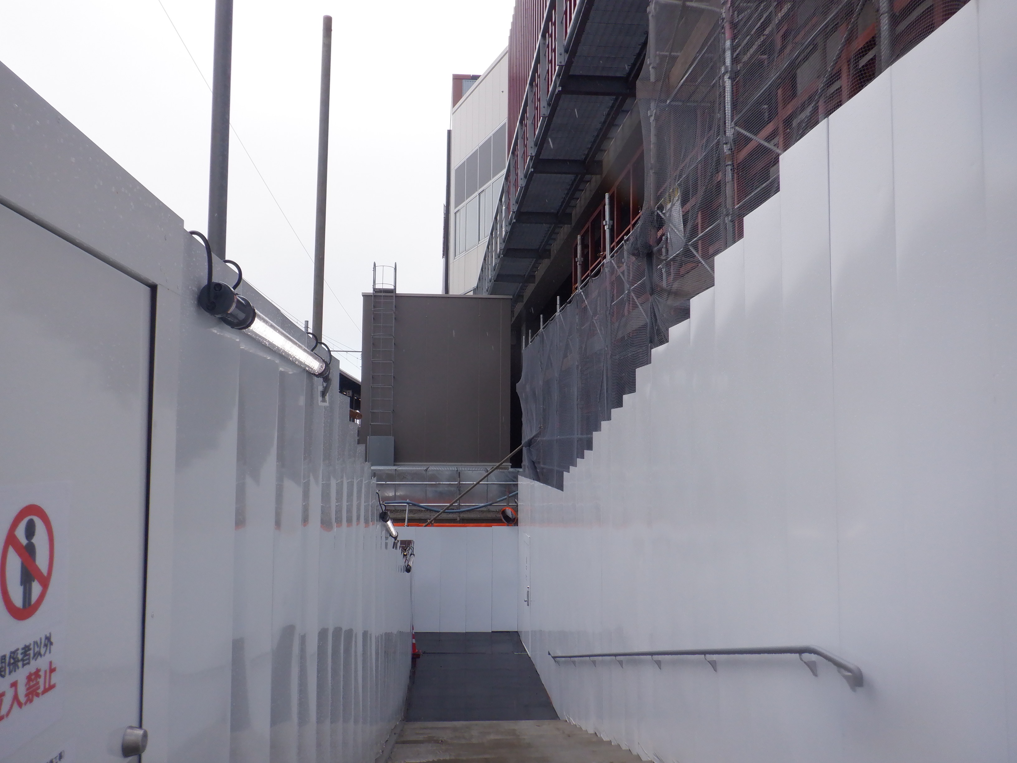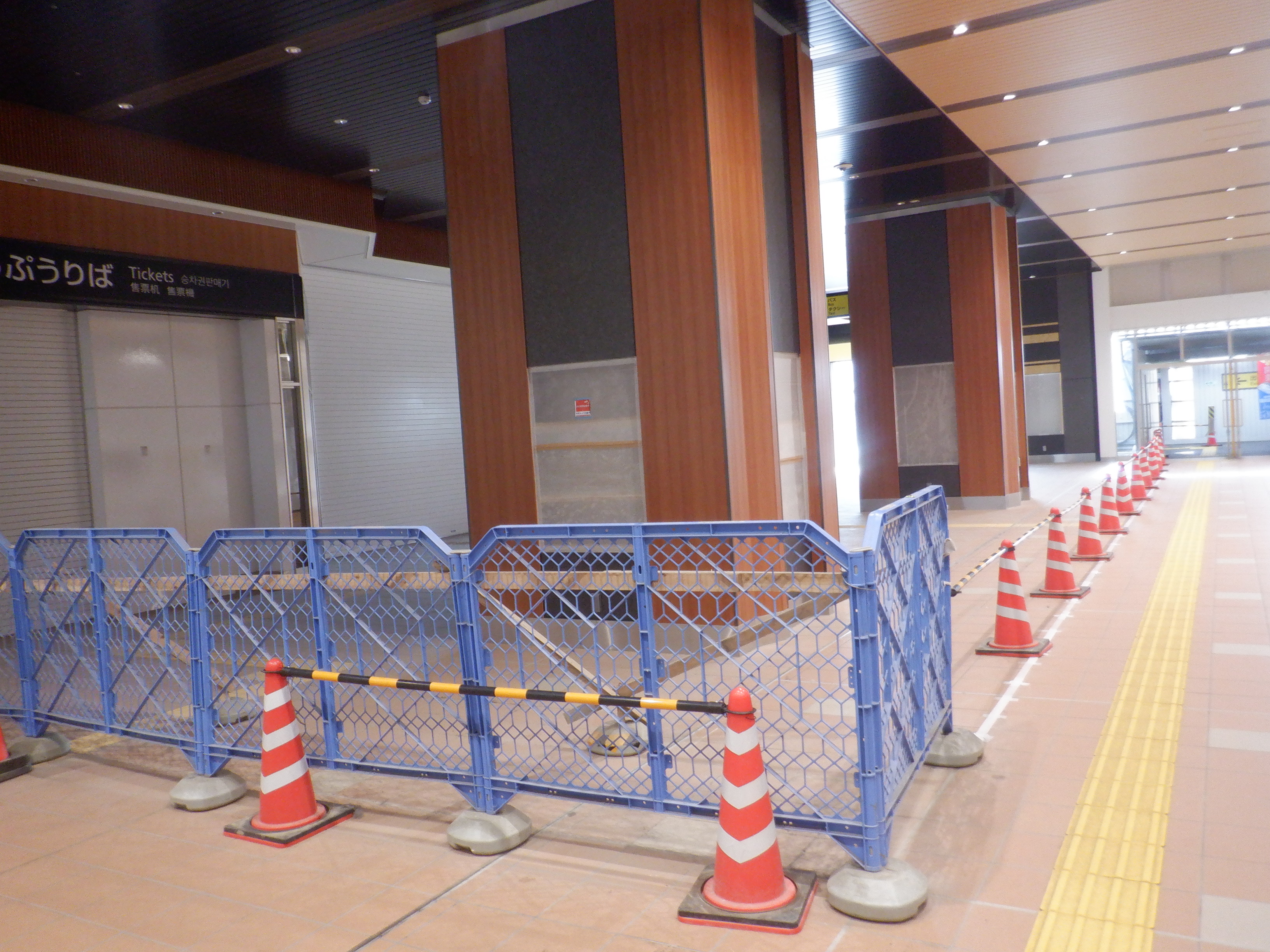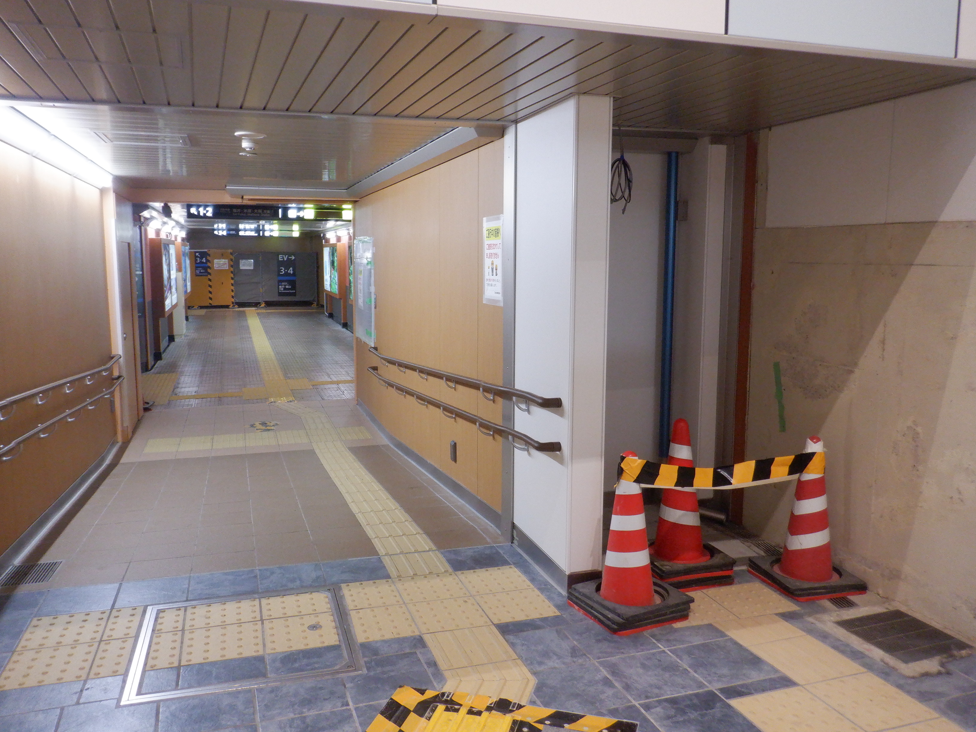 仮設通路となっている新幹線のりばコンコースとなるところ。