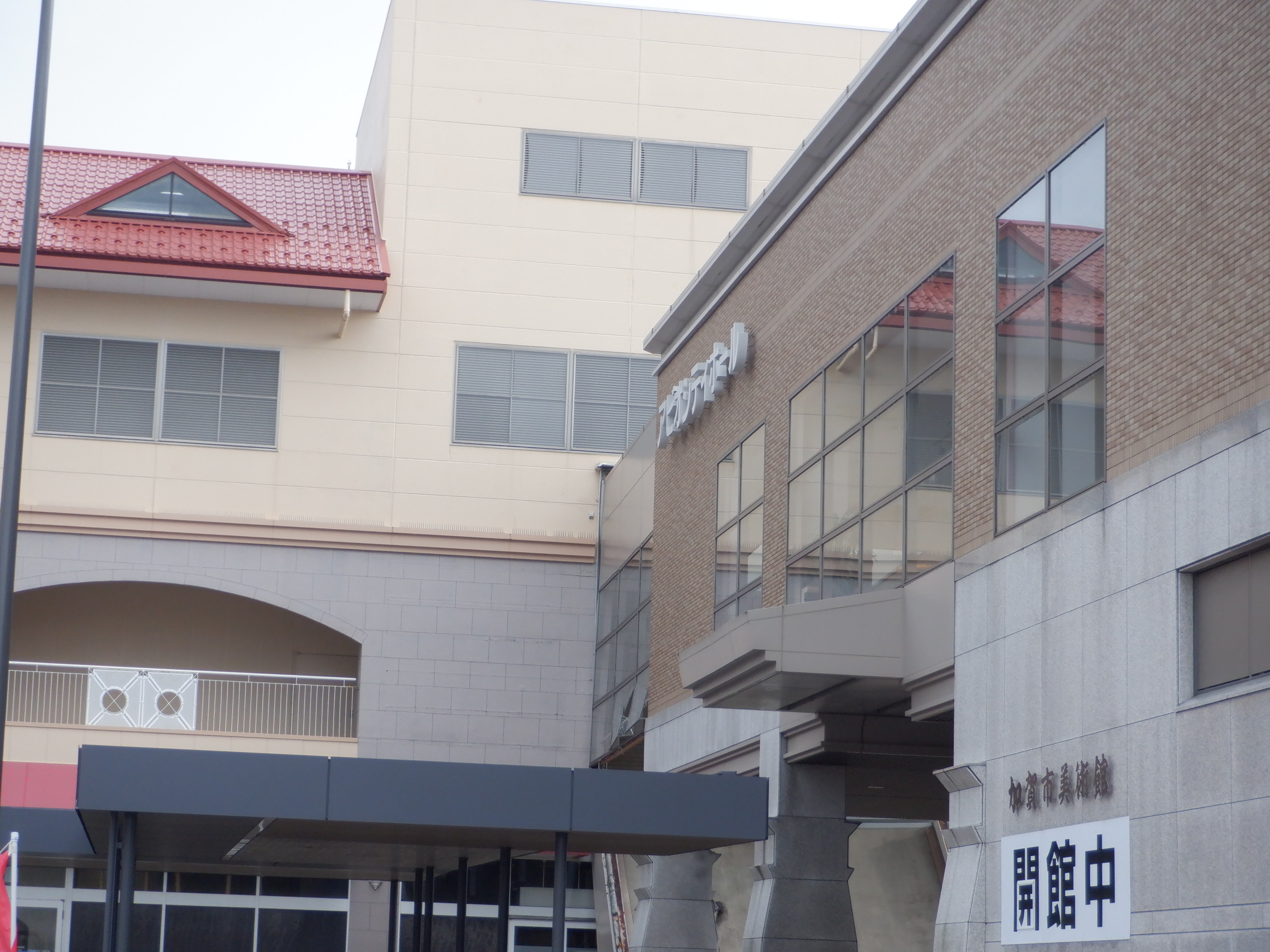 元日の能登半島地震により、アルプラザとアビオシティホールを結んでいた通路が落下しました。(構造上、そのようになっていたようです。)実はこの場所から毎回「アビオシティホールの前から」の画像の内1枚を撮っていました。