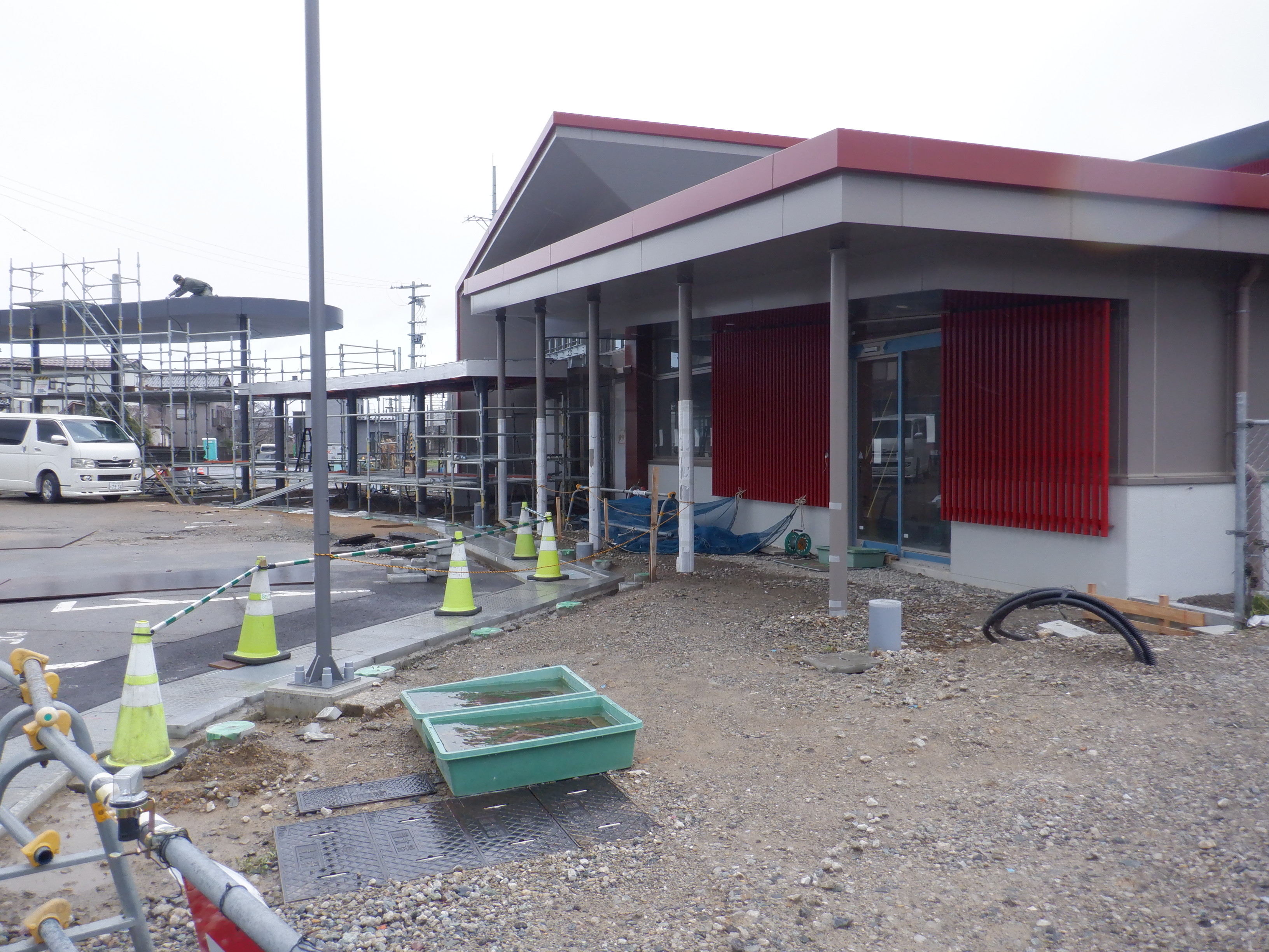 北口の駅前広場整備中の様子。