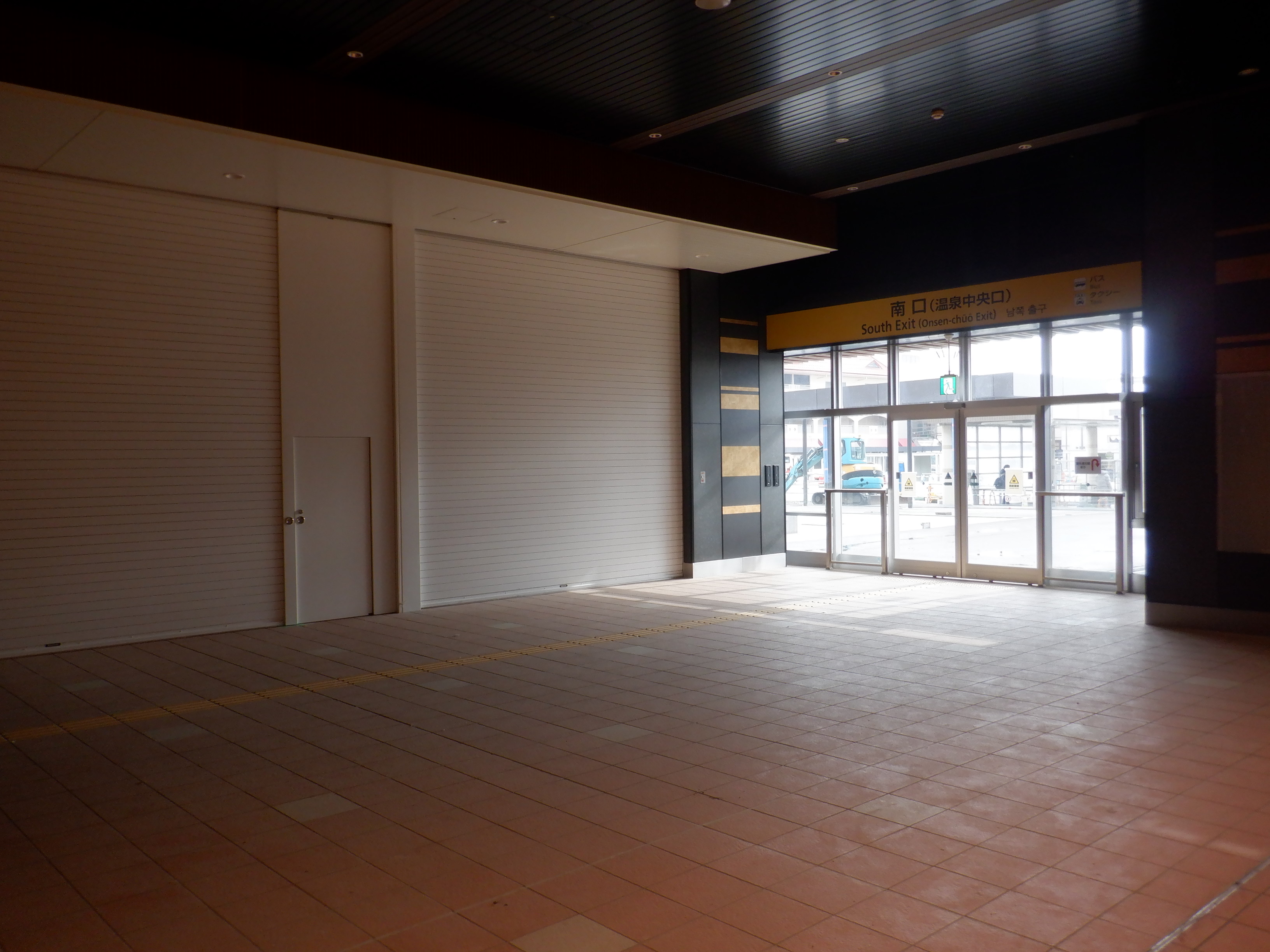トイレがある側の仮設駅舎出入口付近。