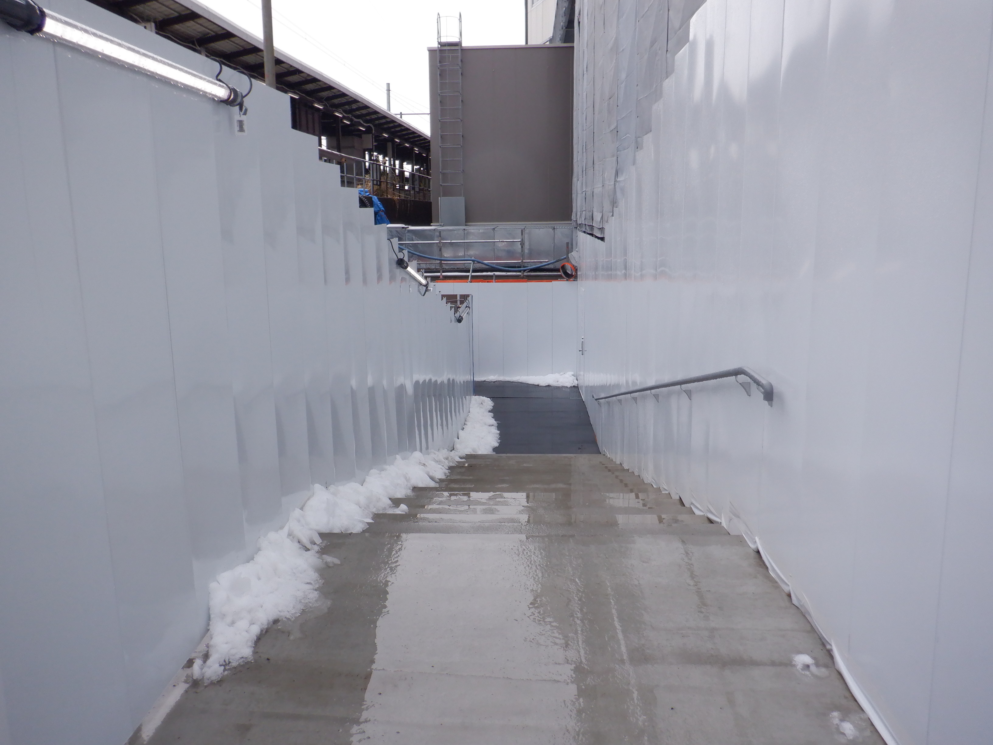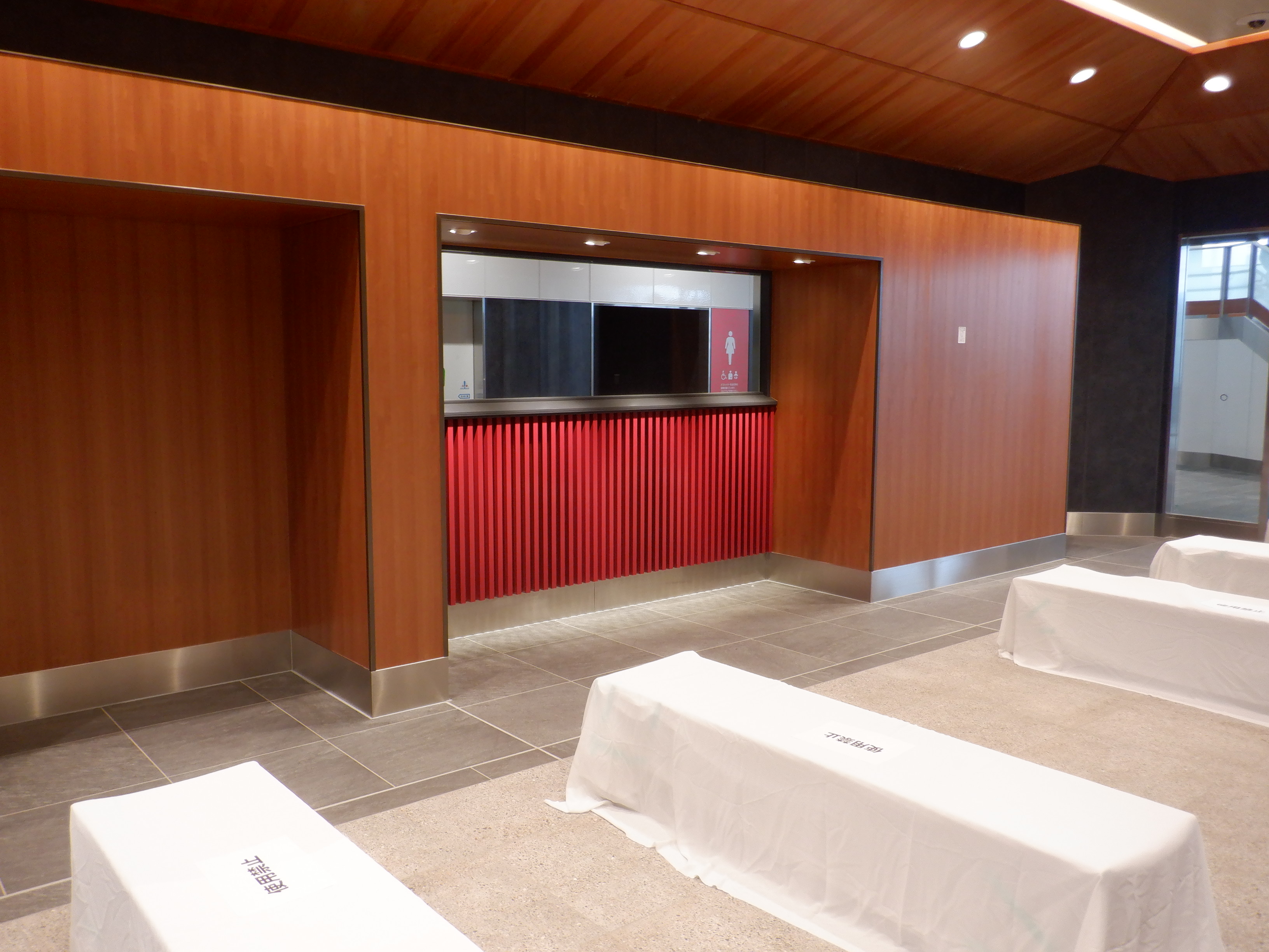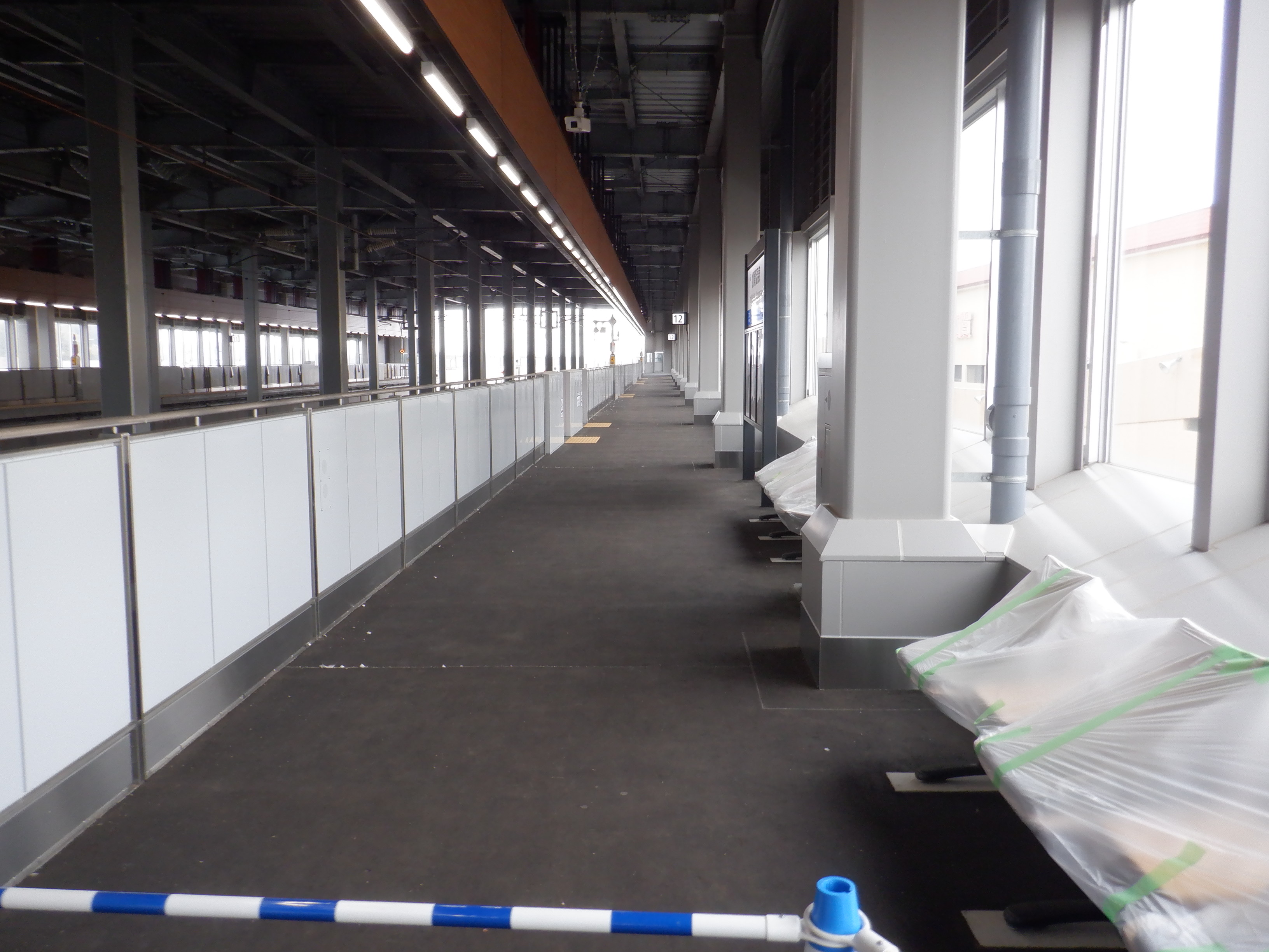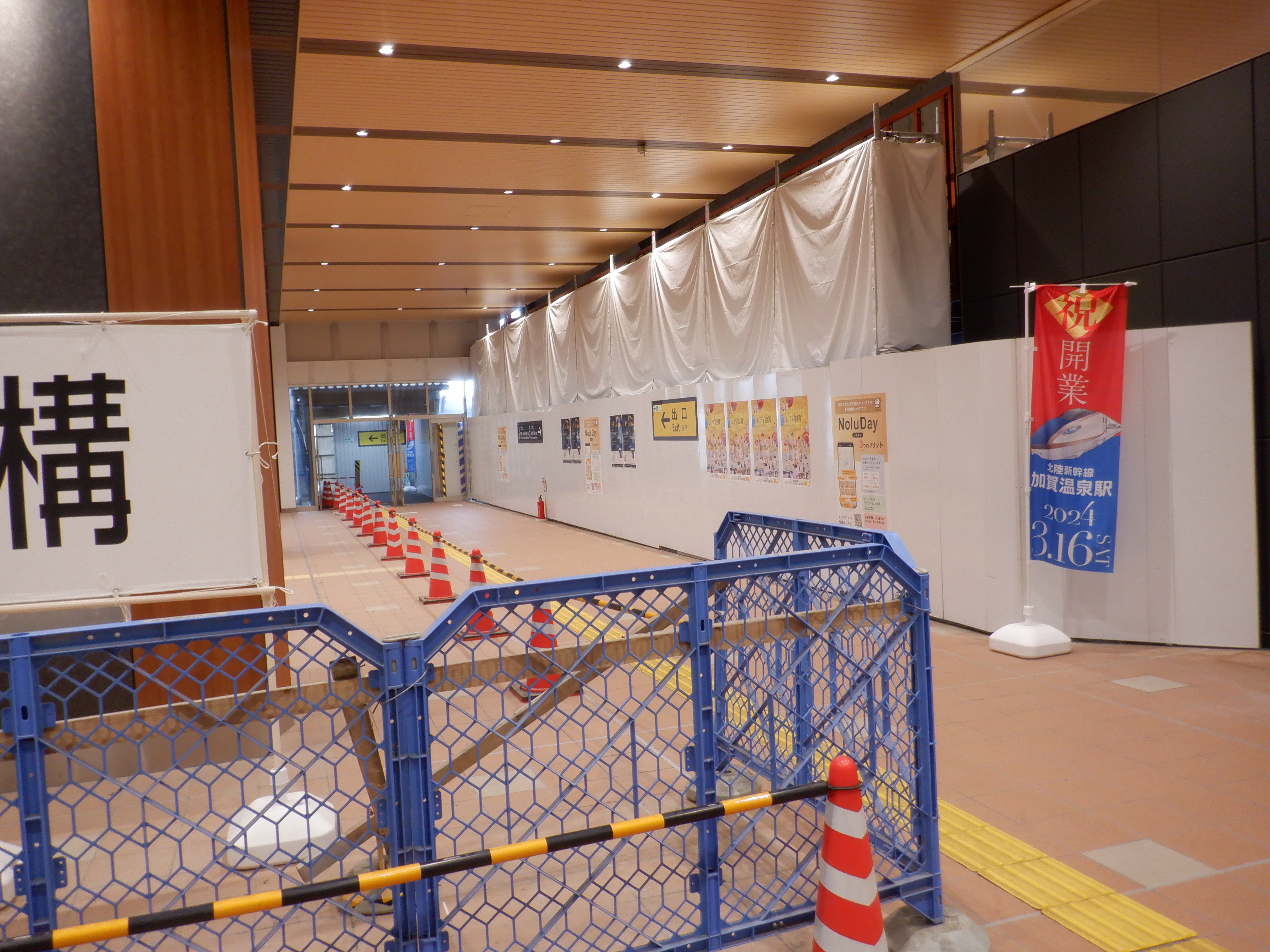 仮設通路となっている新幹線のりばコンコースとなるところ。今回はシャッターが開いていて、改札口とその先が見えます。珍しいです。