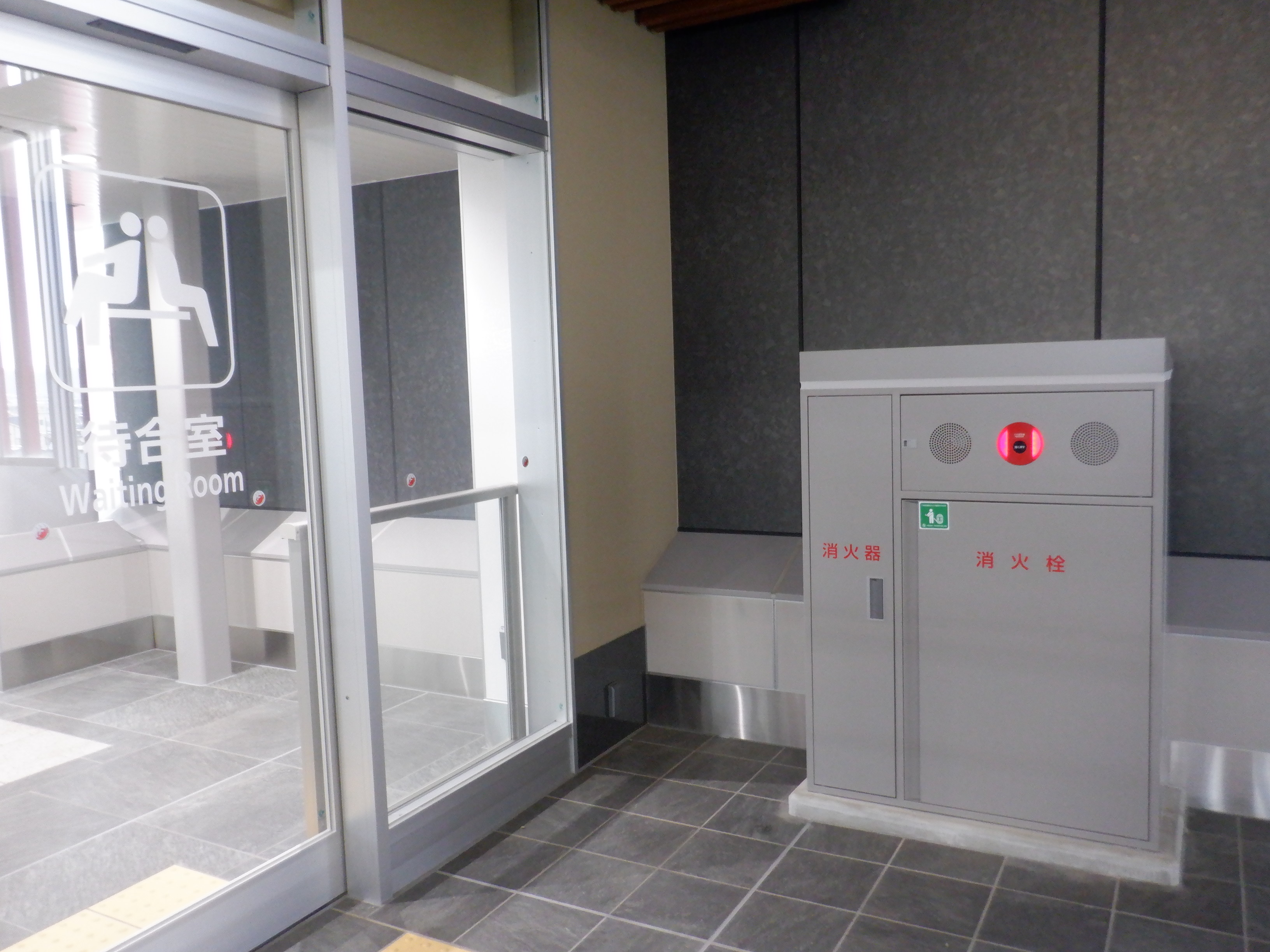 待合室とその前にある消火栓。