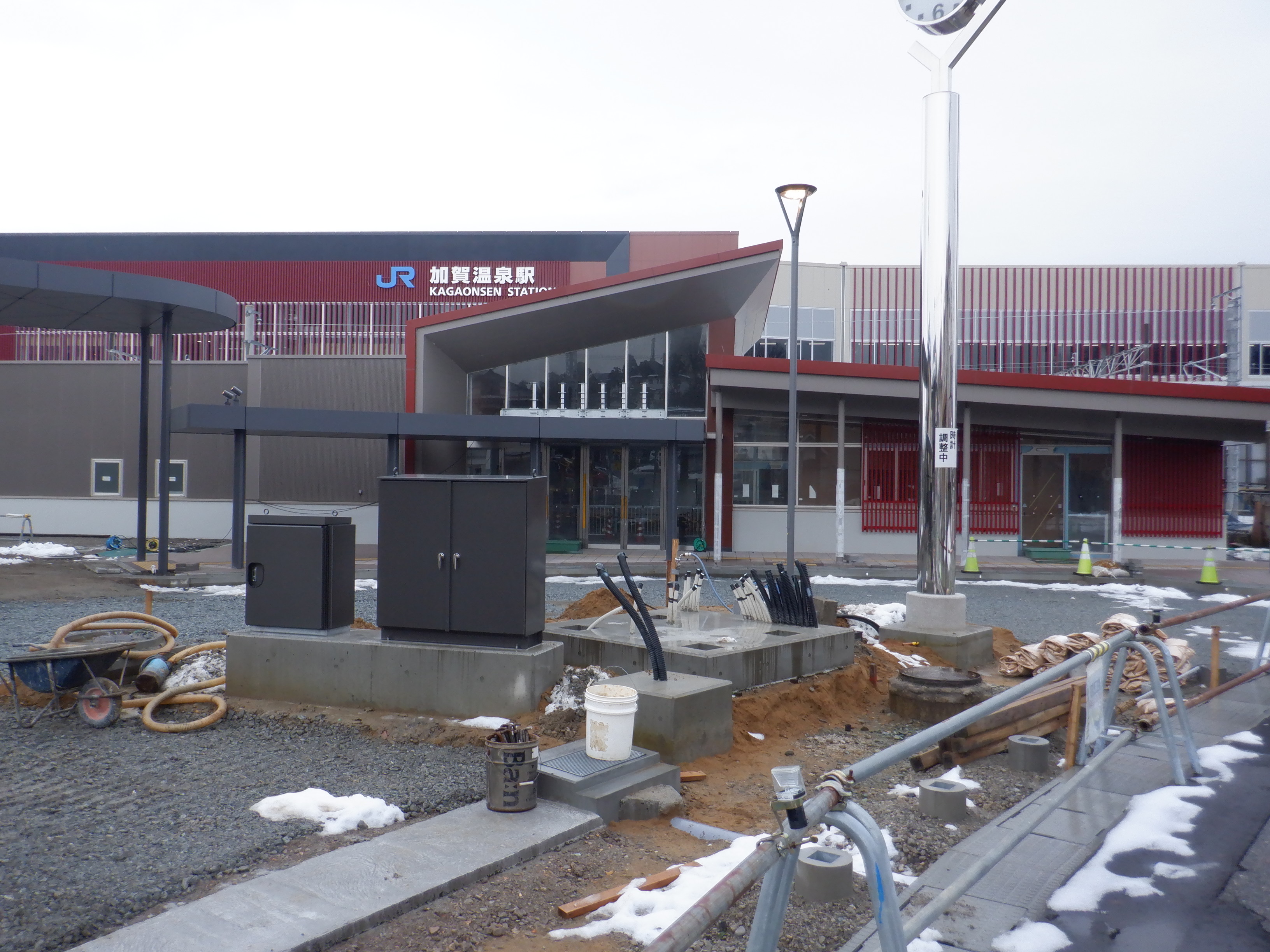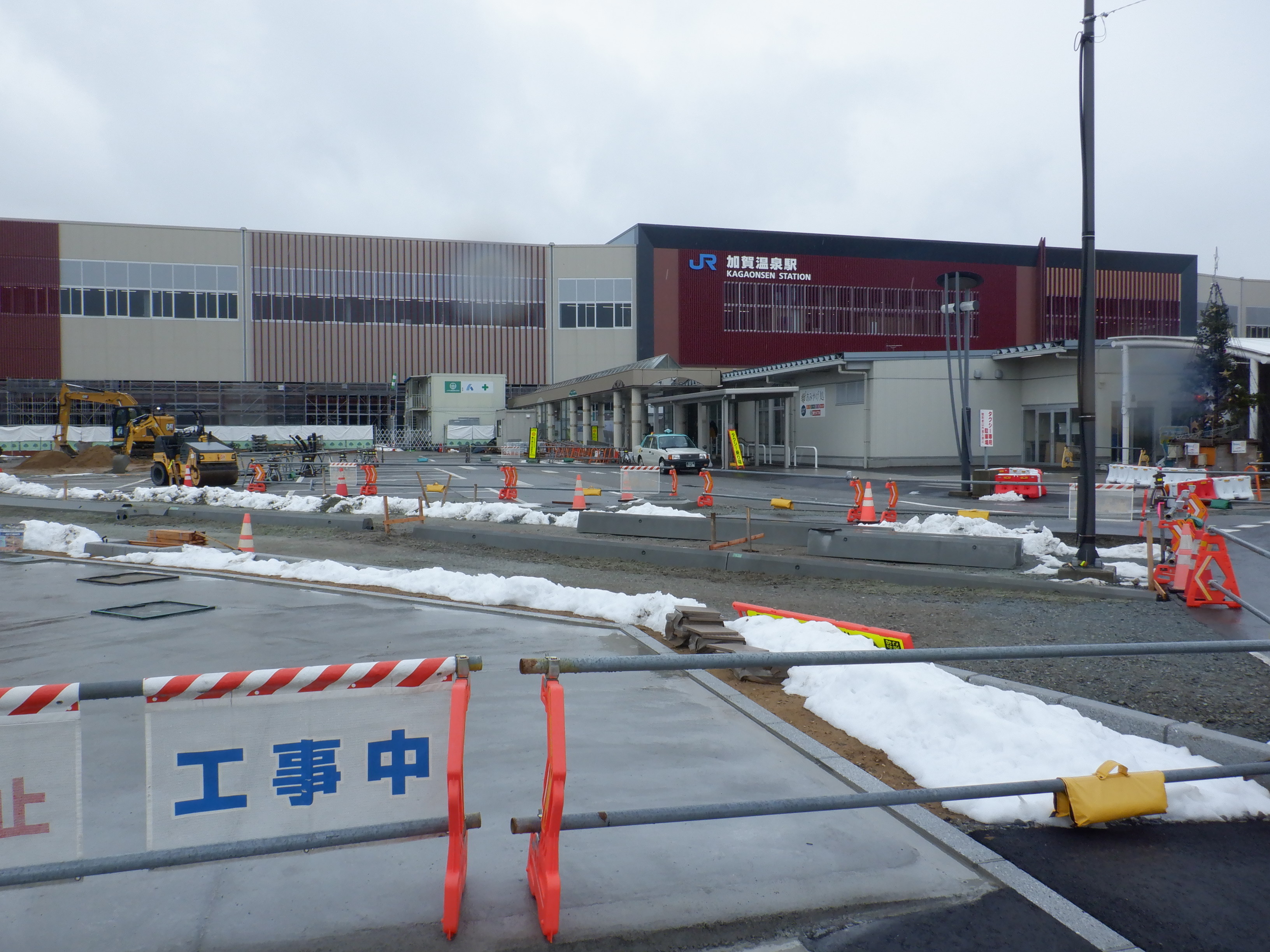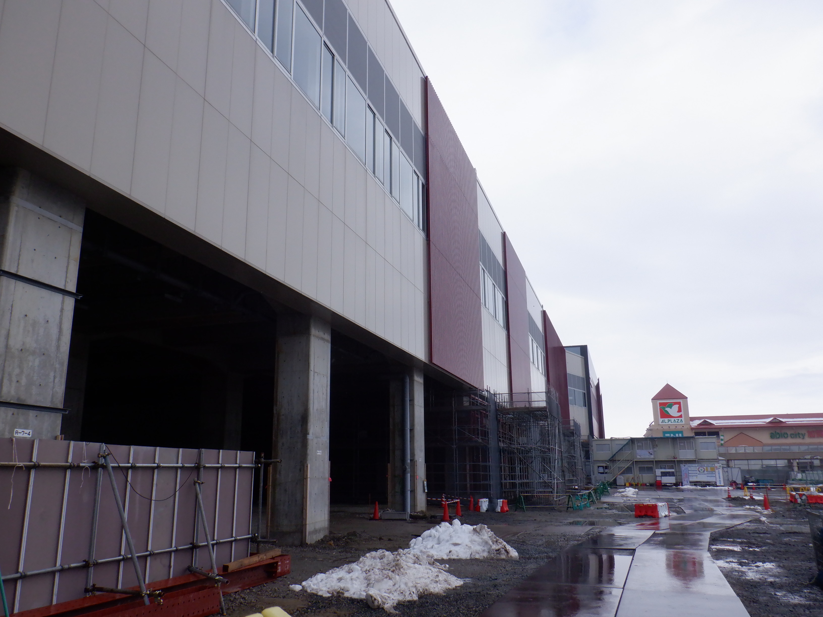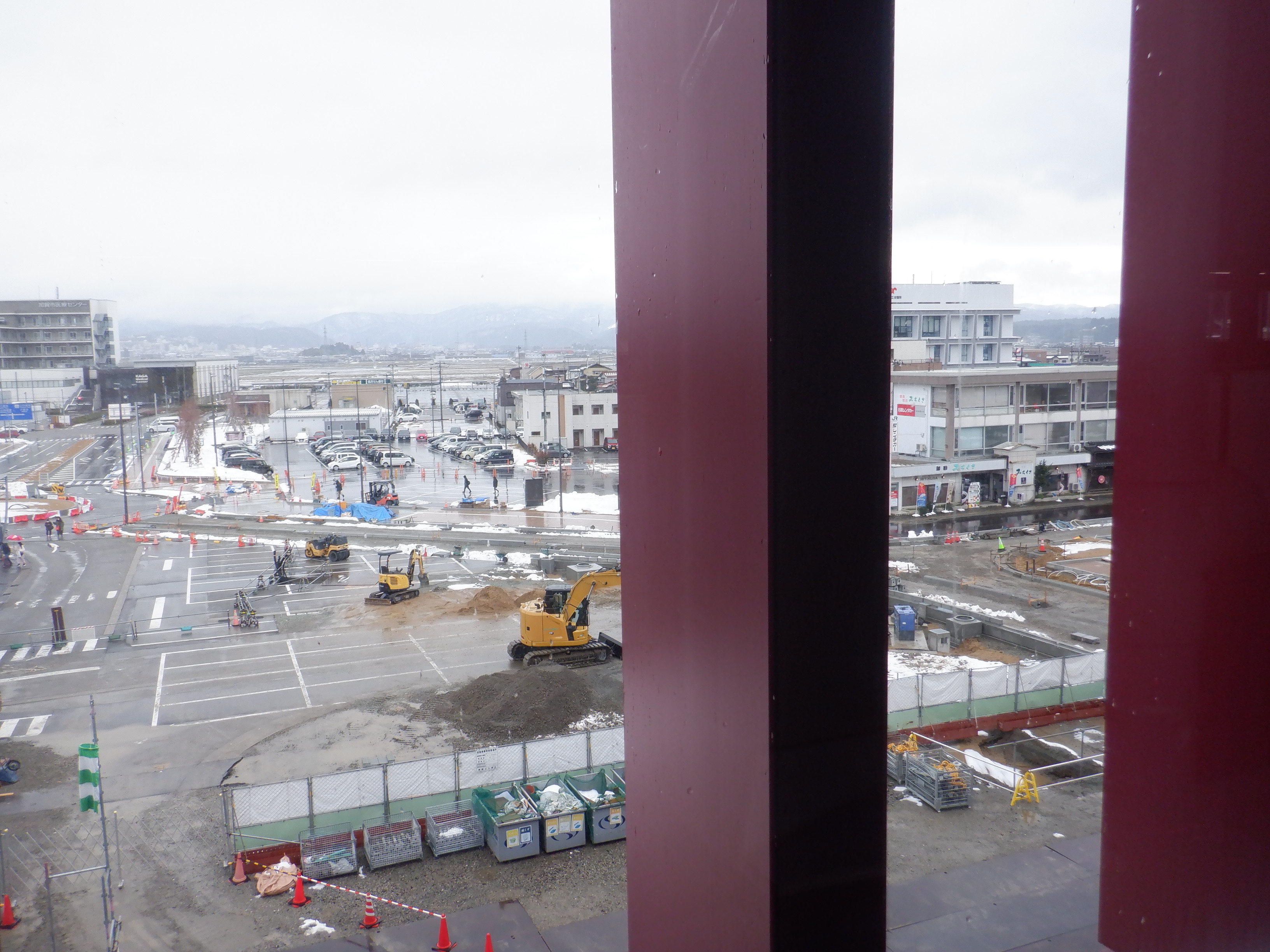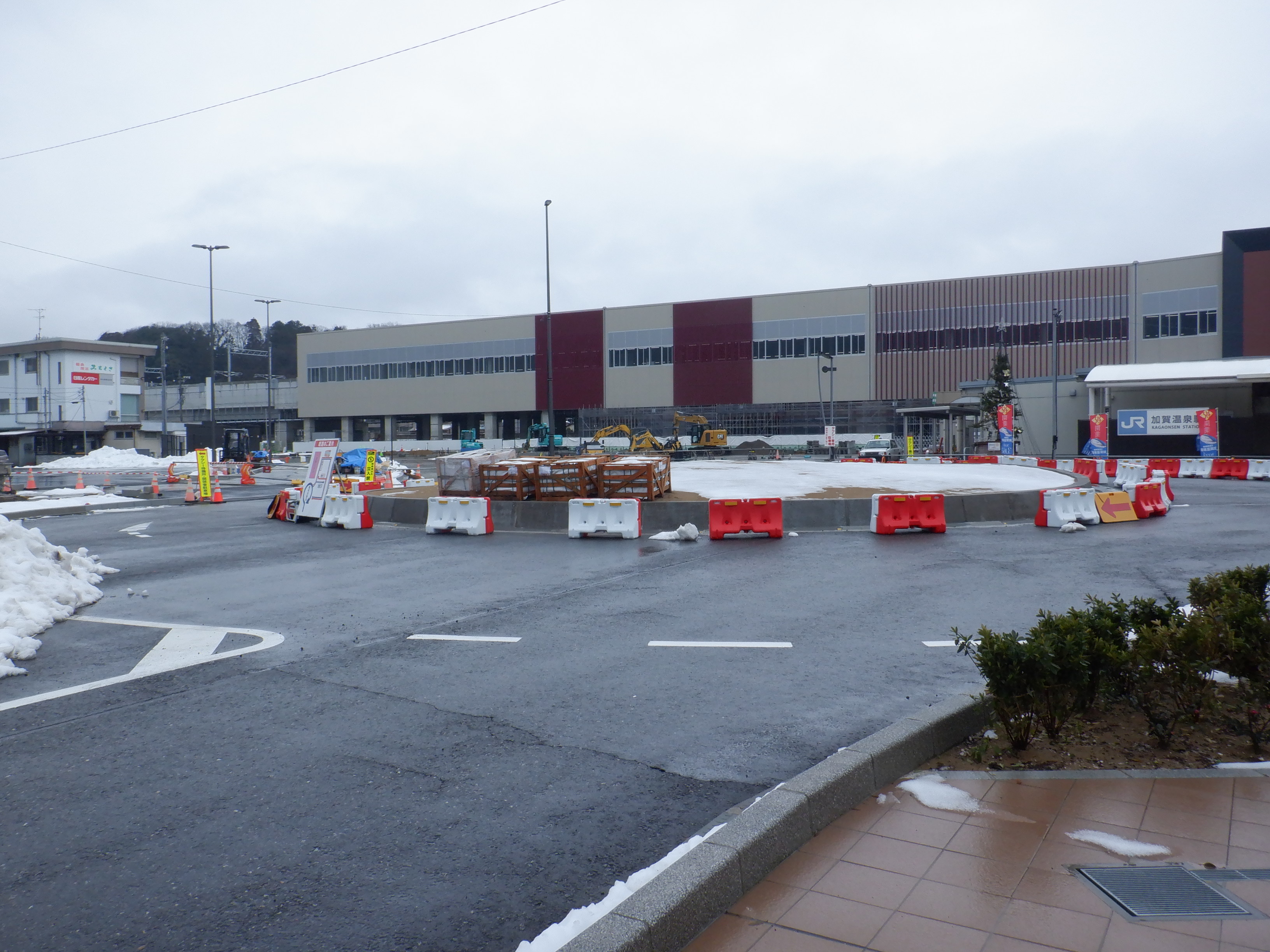 12番のりばから見た仮設駅舎とアルプラザの間の整備中のところ。