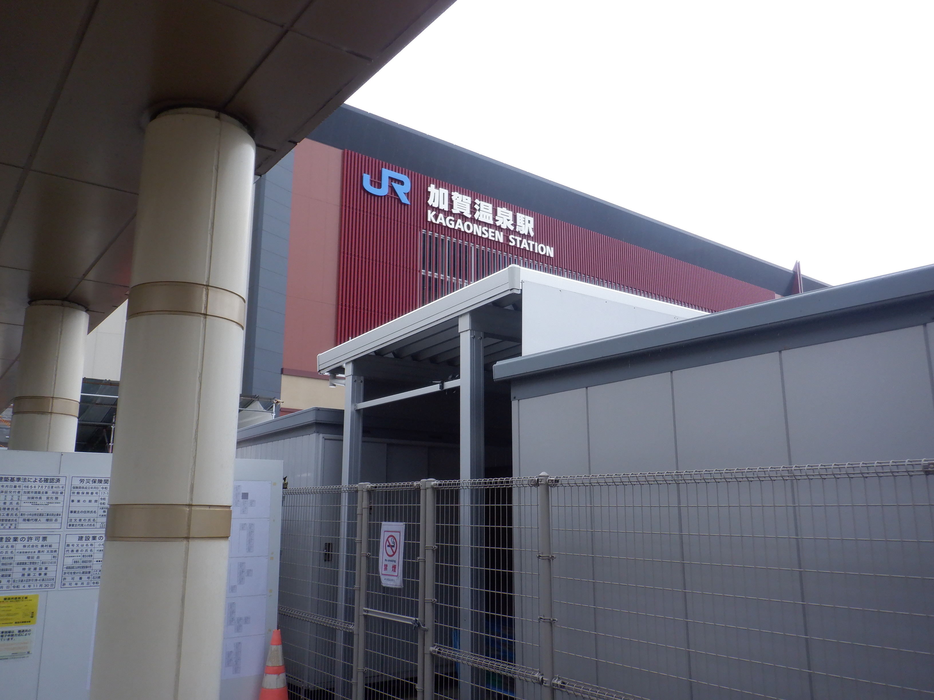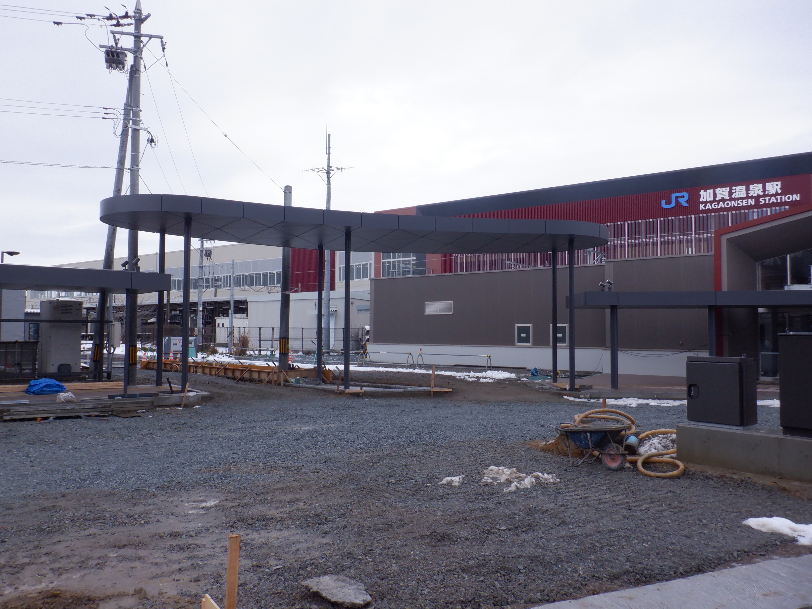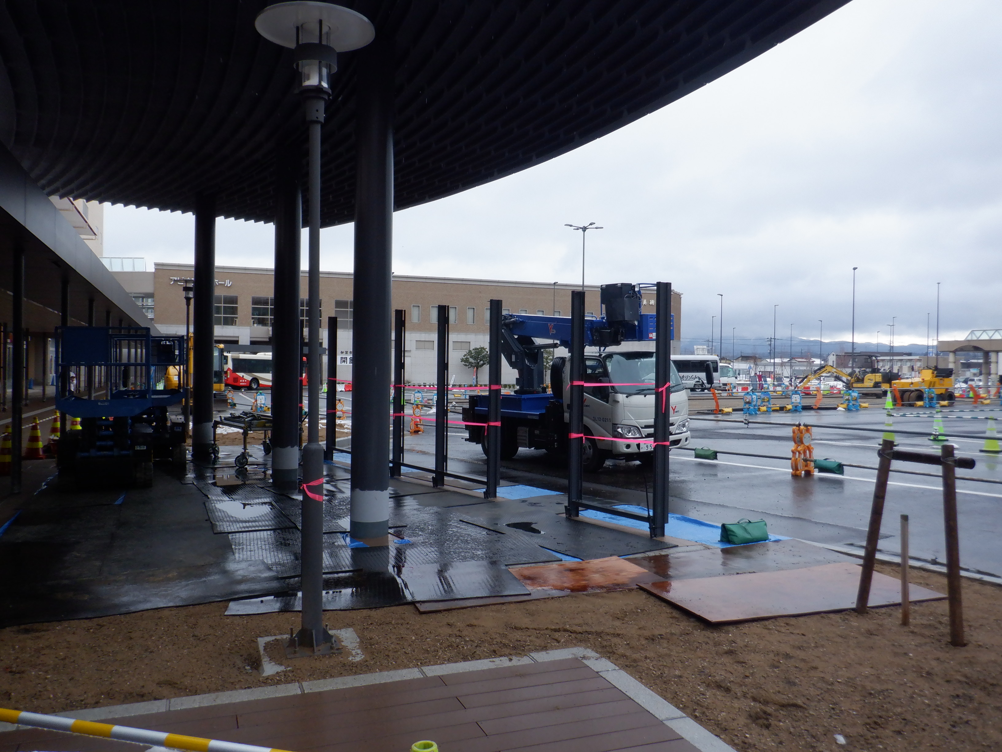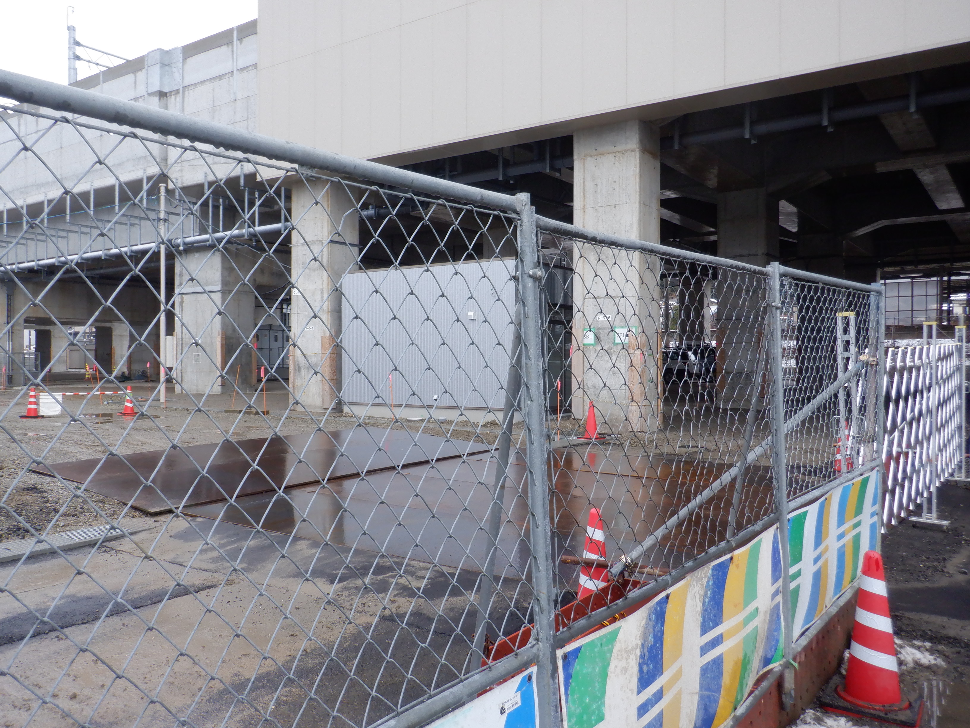 1・2番のりばから見た高架下部都市施設(コンビニ・待合室等)建設中の様子。