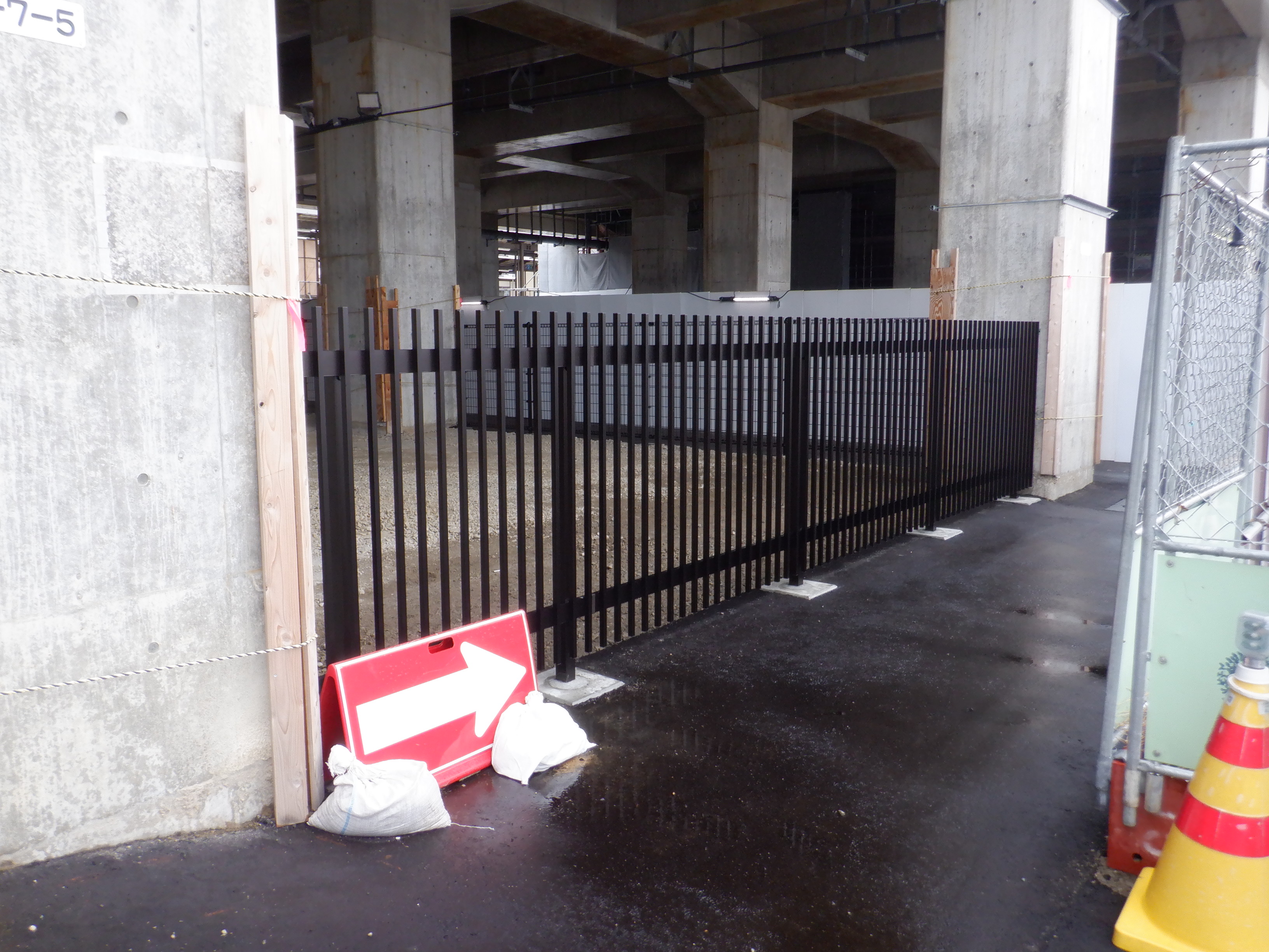 北口への迂回通路から見たレンタカー屋さんの建物となるところ。