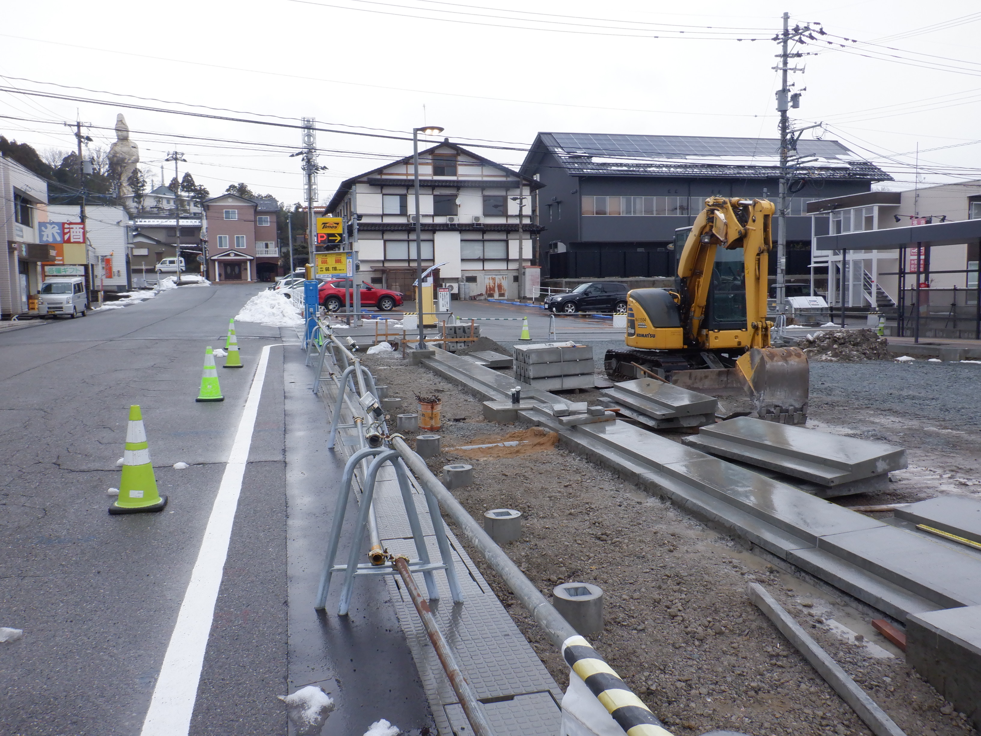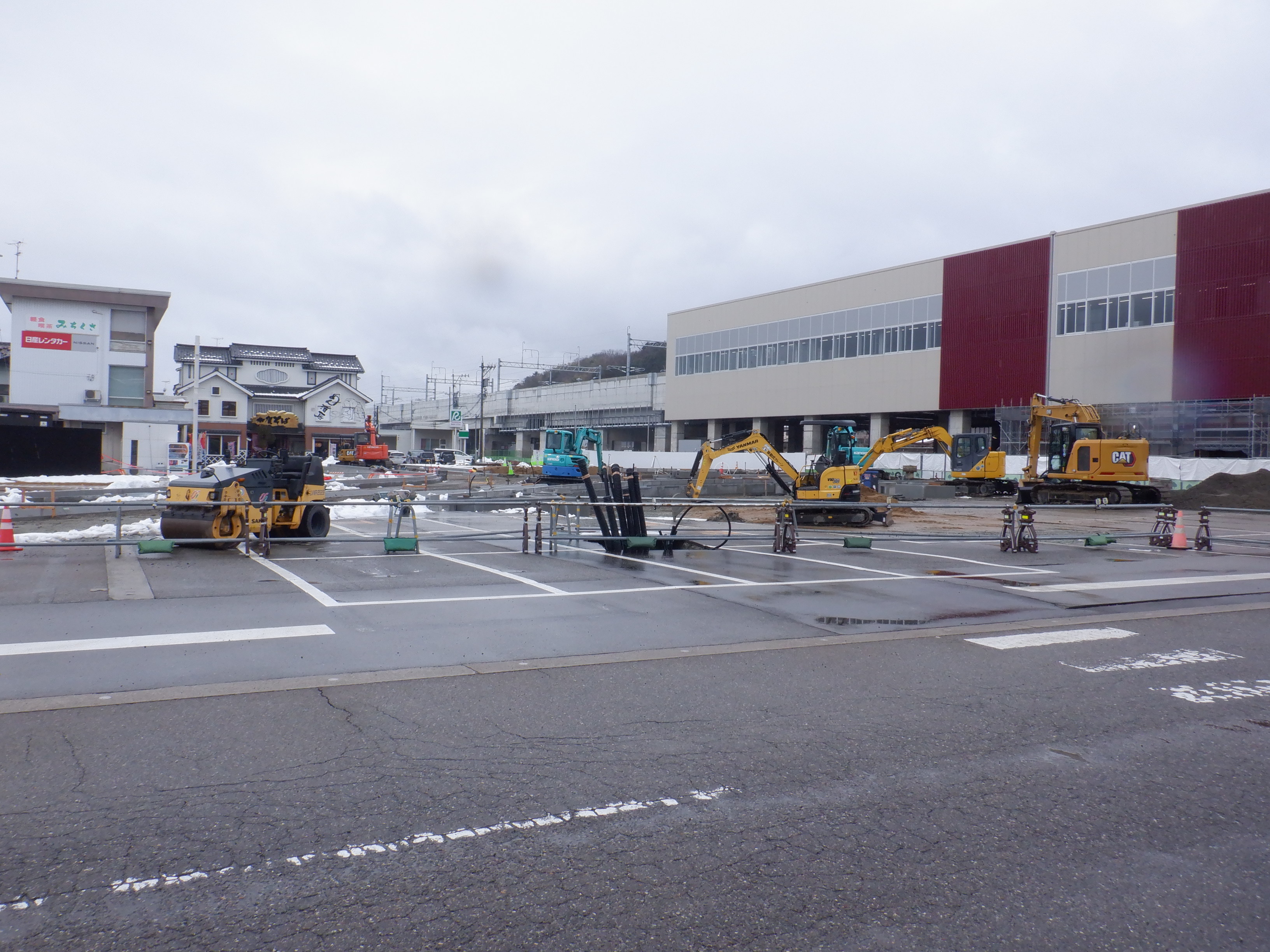 北口の駅前広場整備中の様子。
