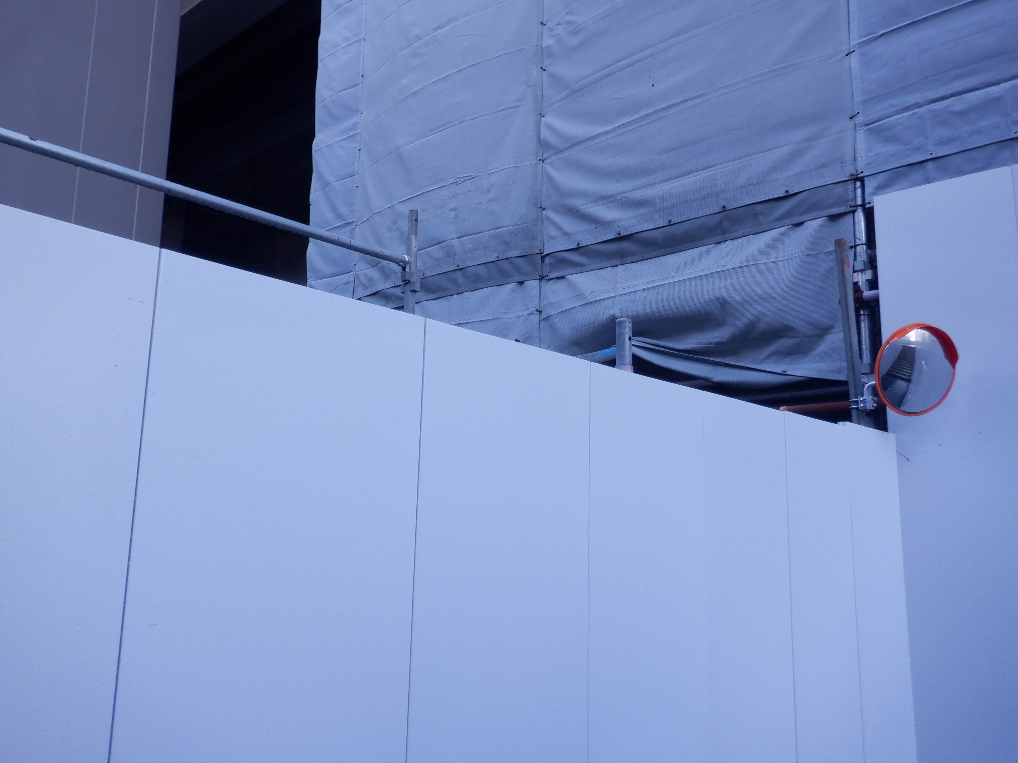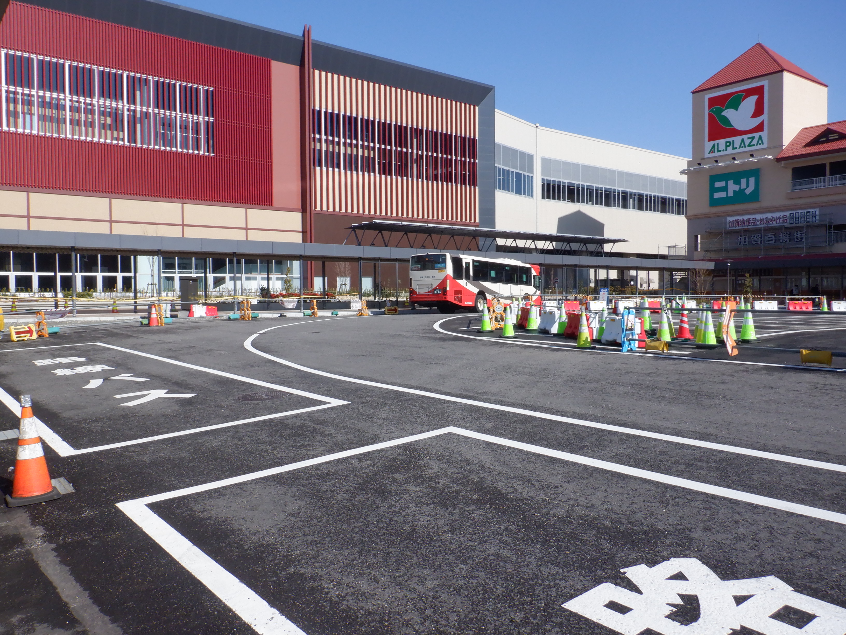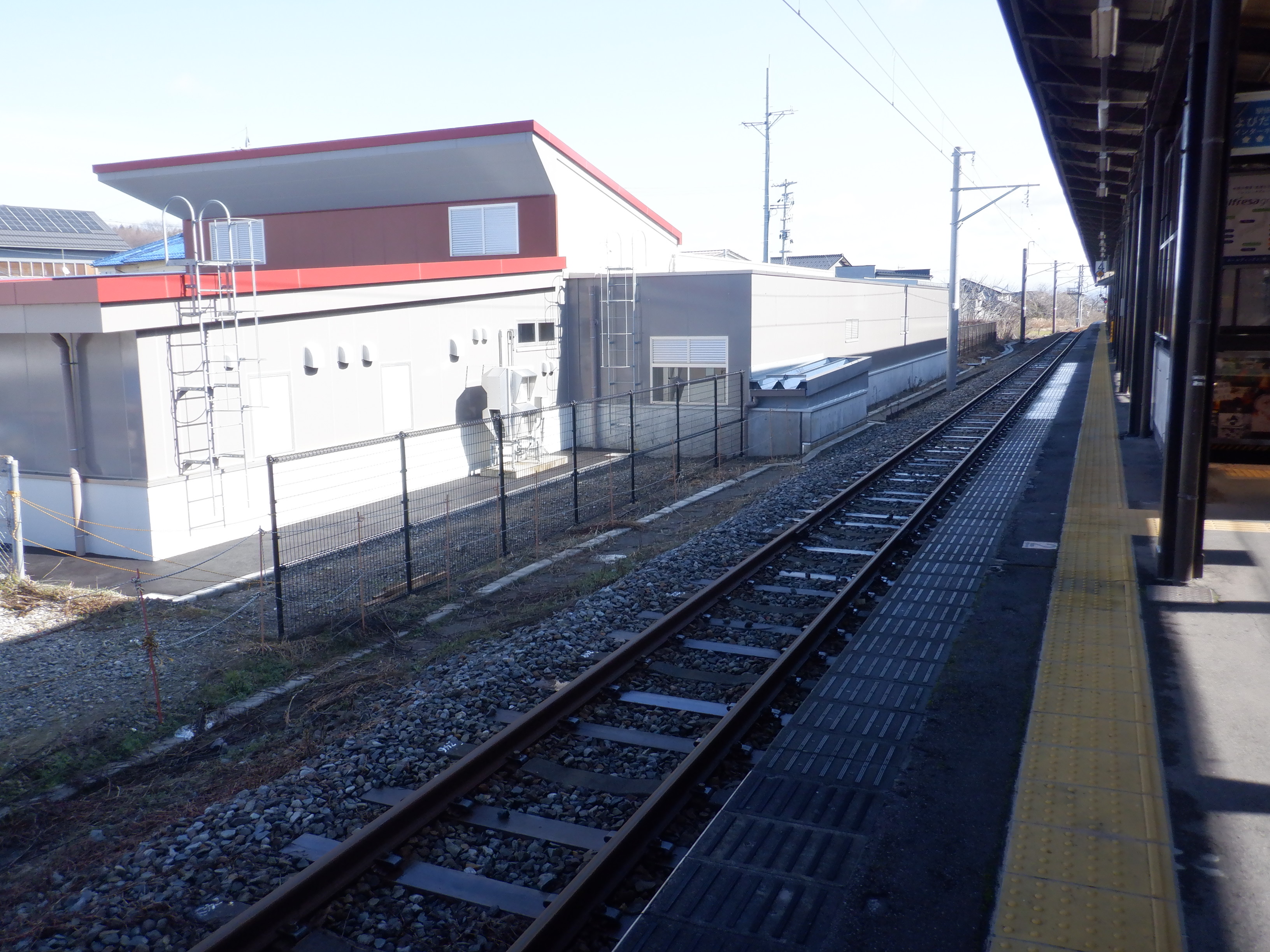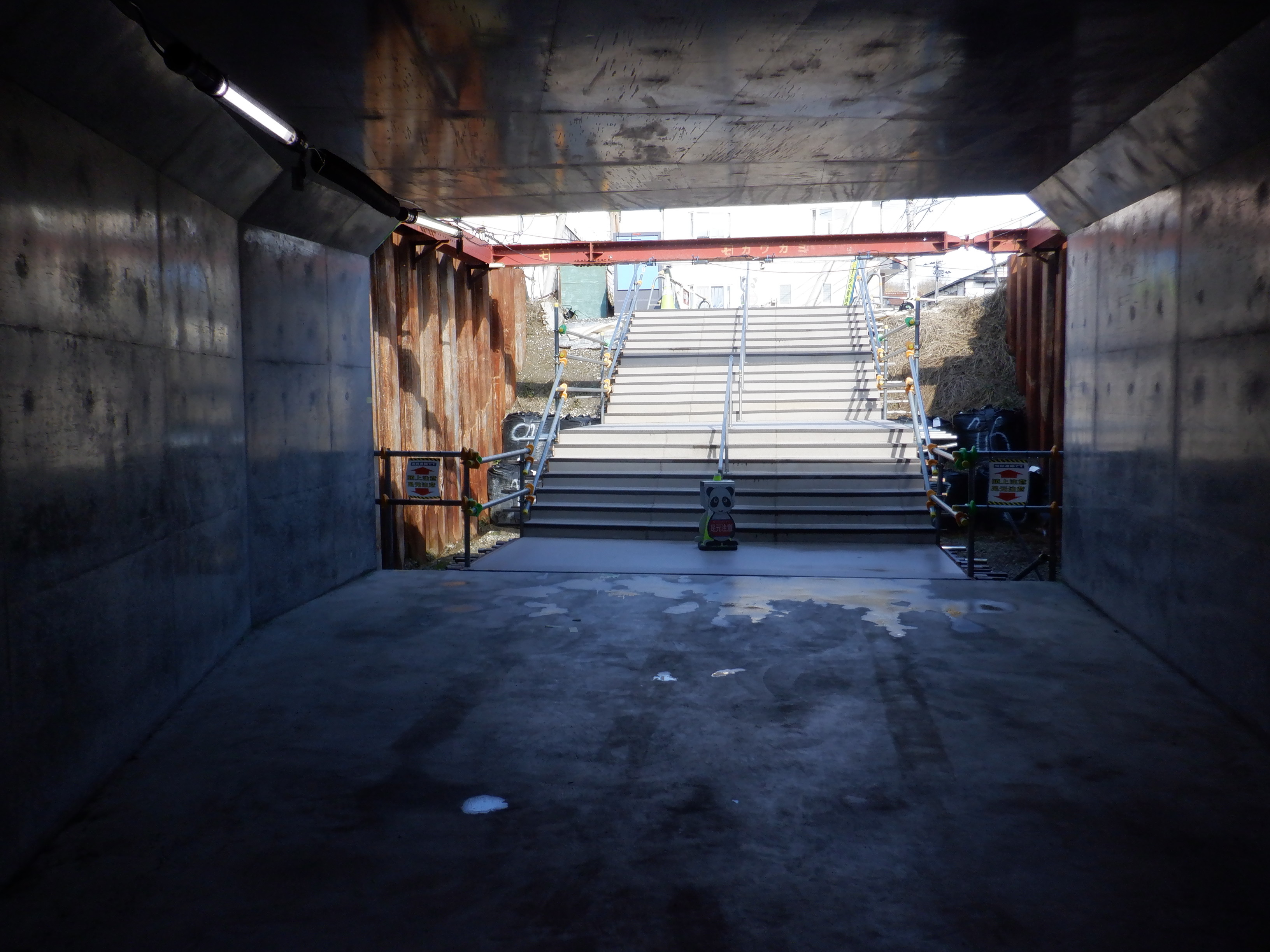 ホームの看板類は特に変化はありませんが、近距離券売機が撤去されるなど変化が出てきました。仮設駅舎とアルプラザの間の通路の整備が進んでいます。