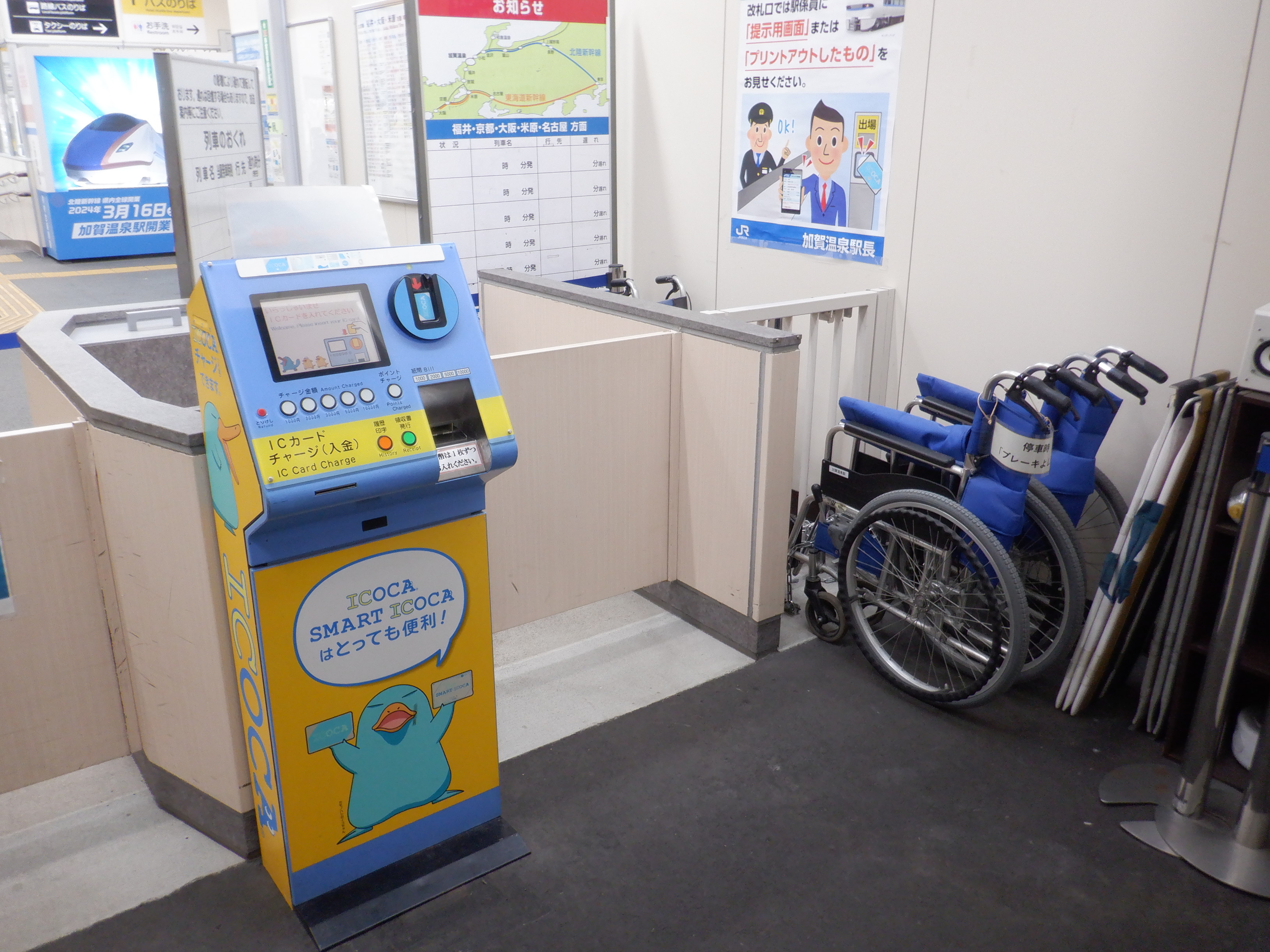 近距離の券売機が撤去され、改札口から入ったところにチャージ機が置かれました。