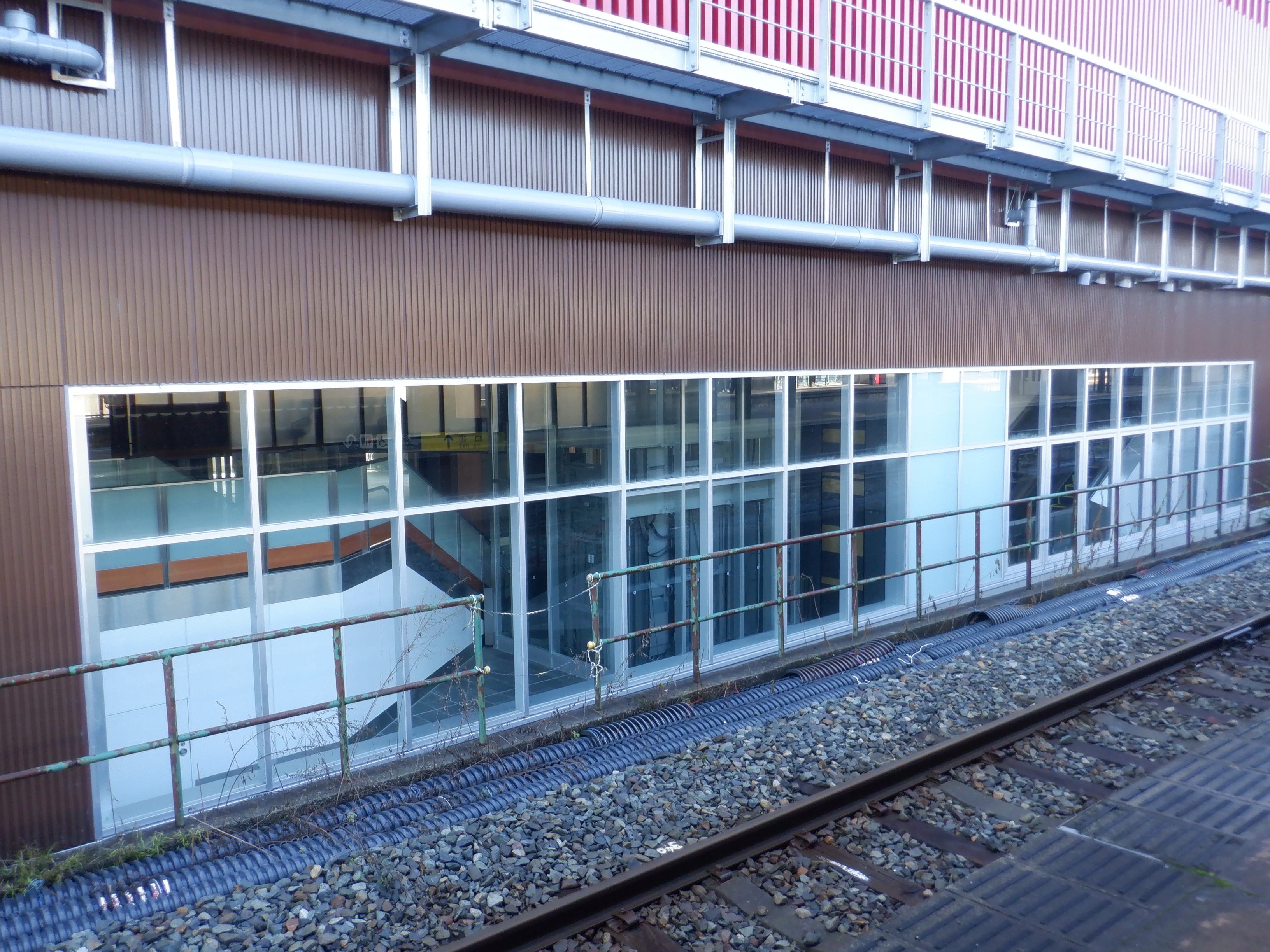 3・4番のりばから見た迂回通路出入口、在来線駅舎となるもの。